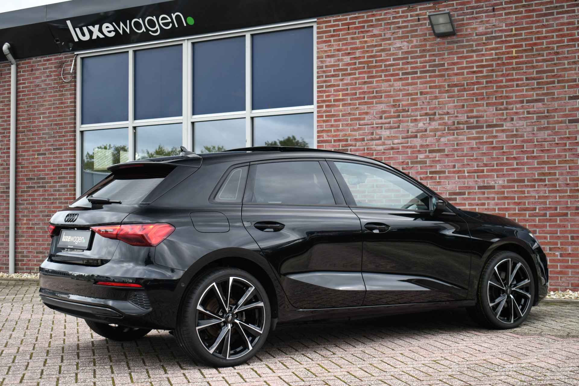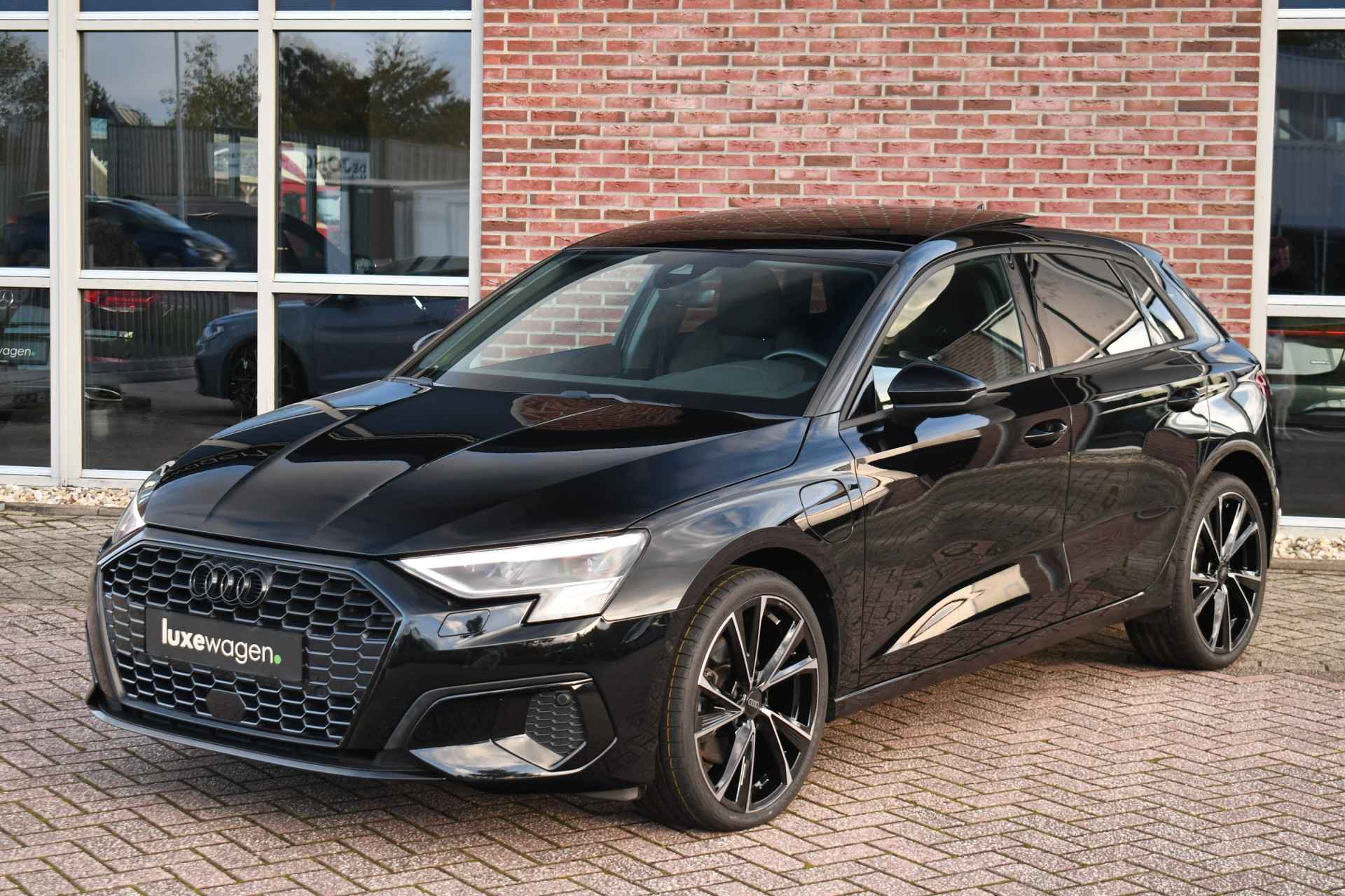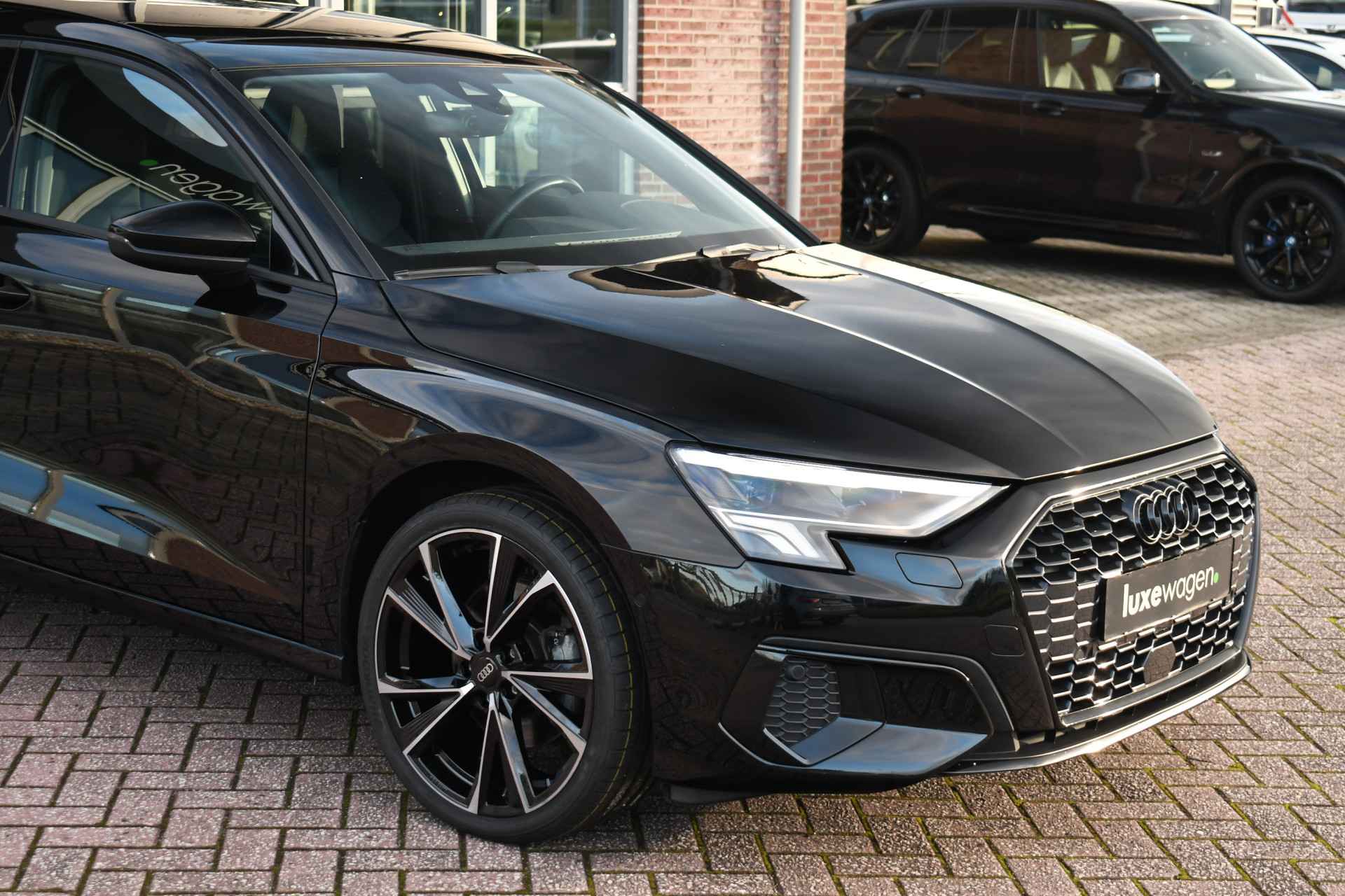 Deze A3 heeft veel opties, zoals panoramadak, adaptieve cruise control, S-zetels, 19 inch velgen, zwart glanspakket (optic black), stoelverwarming, Audi smartphone interface, etc!