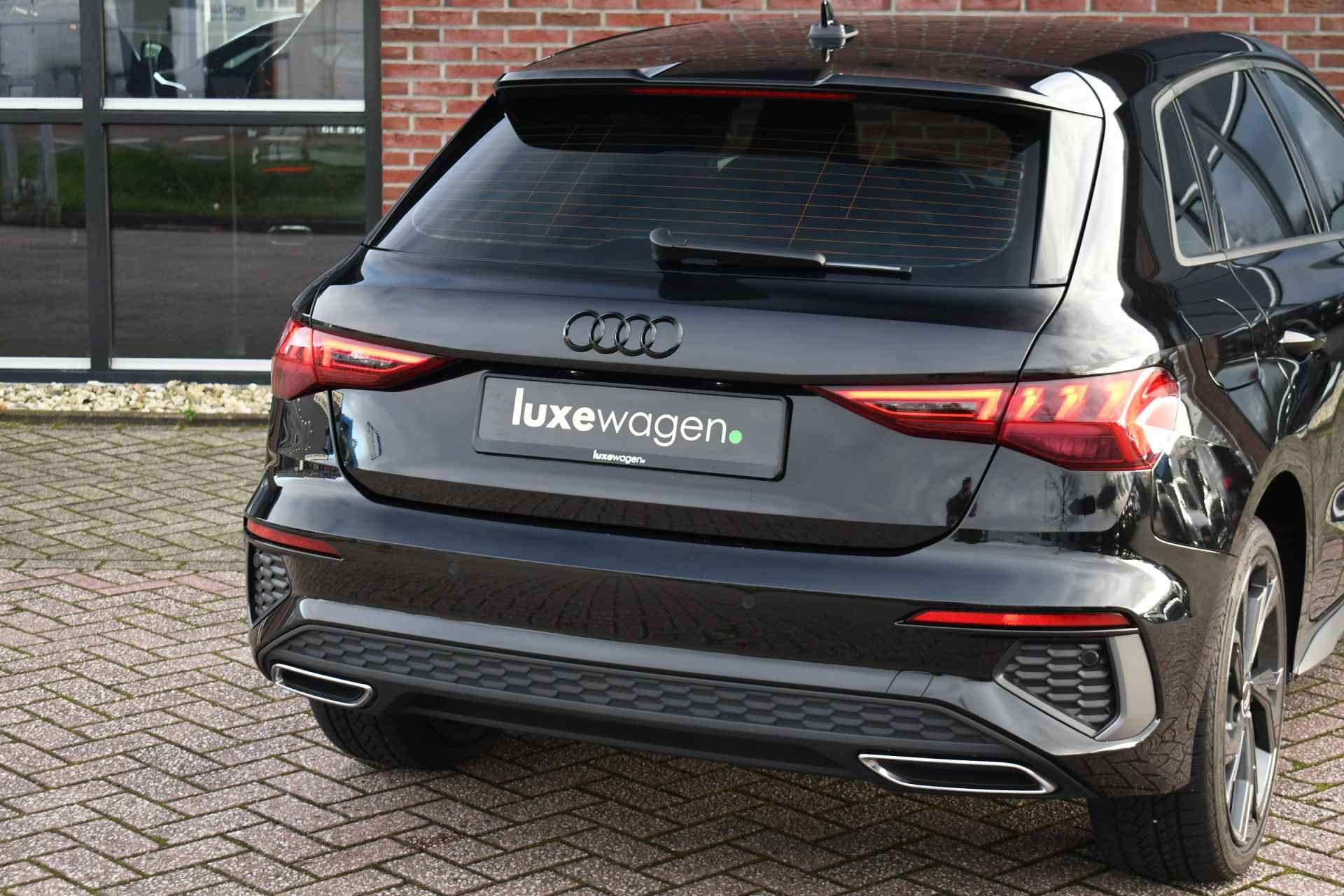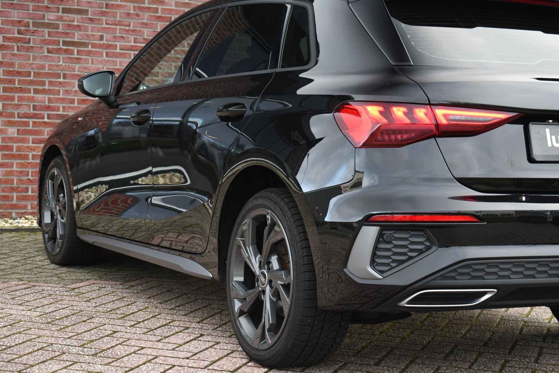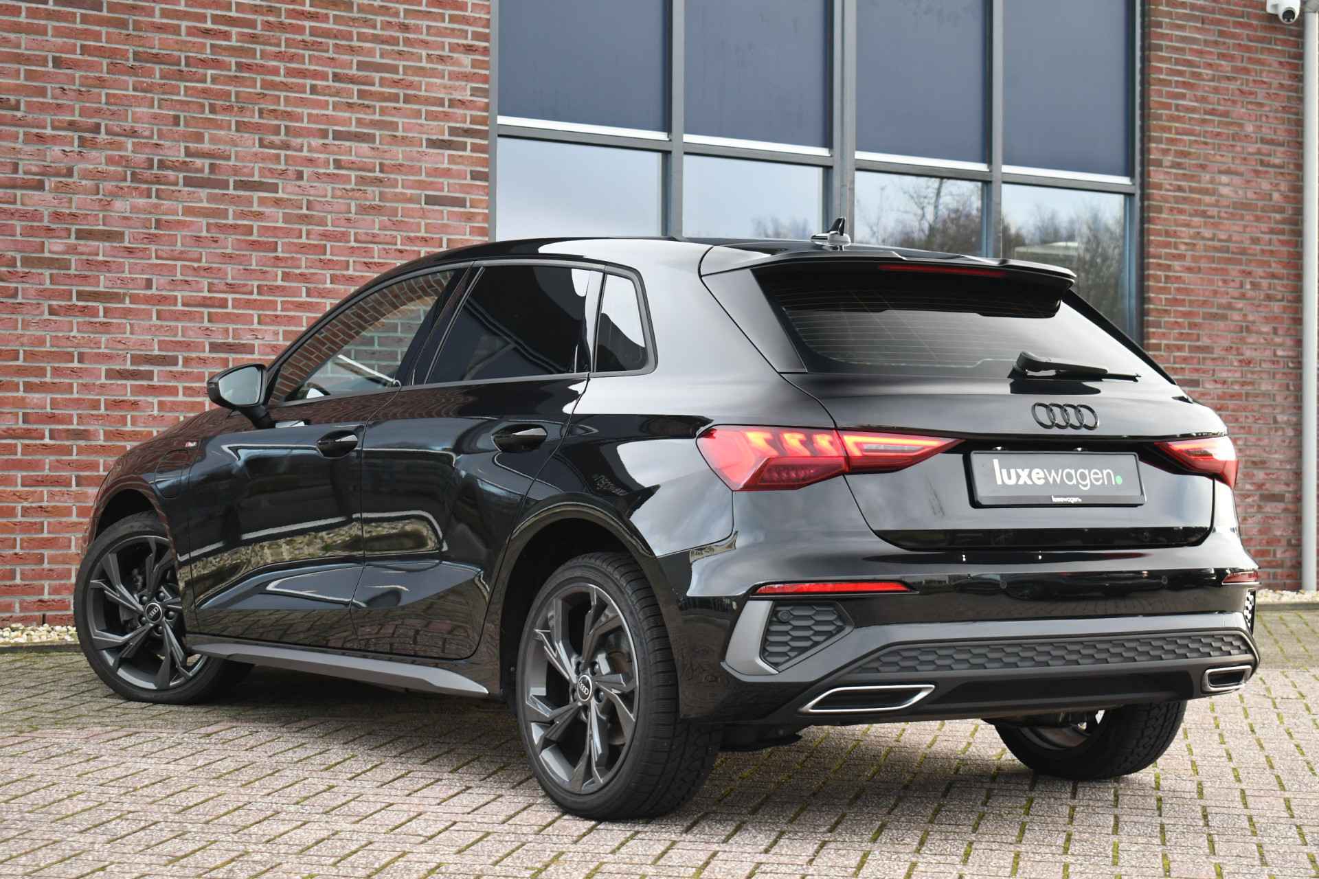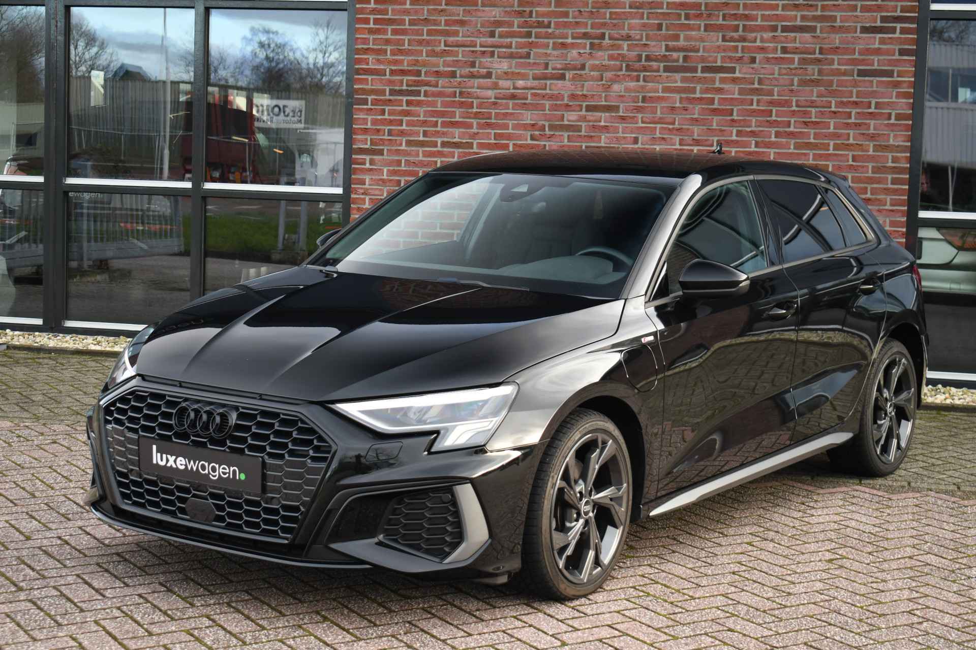 Leuke A3 Sportback met S-Line pakket, matrix LED koplampen met lopende knipperlichten achter, keyless entry, 18 inch velgen, alarm klasse 3, etc.