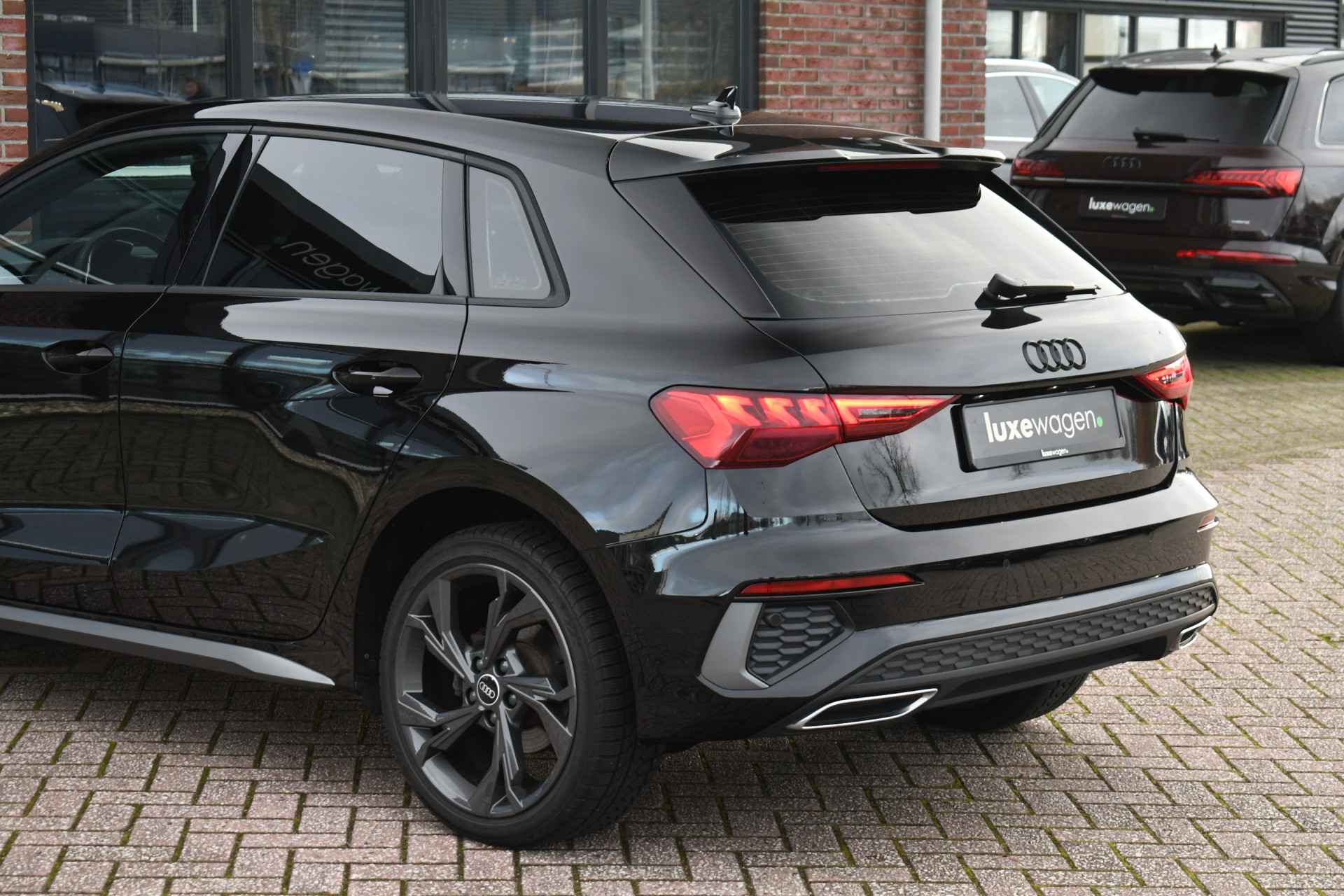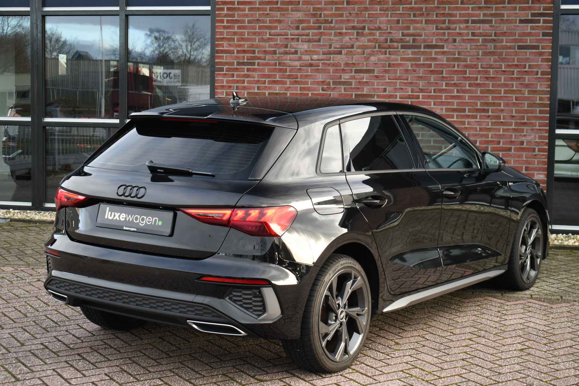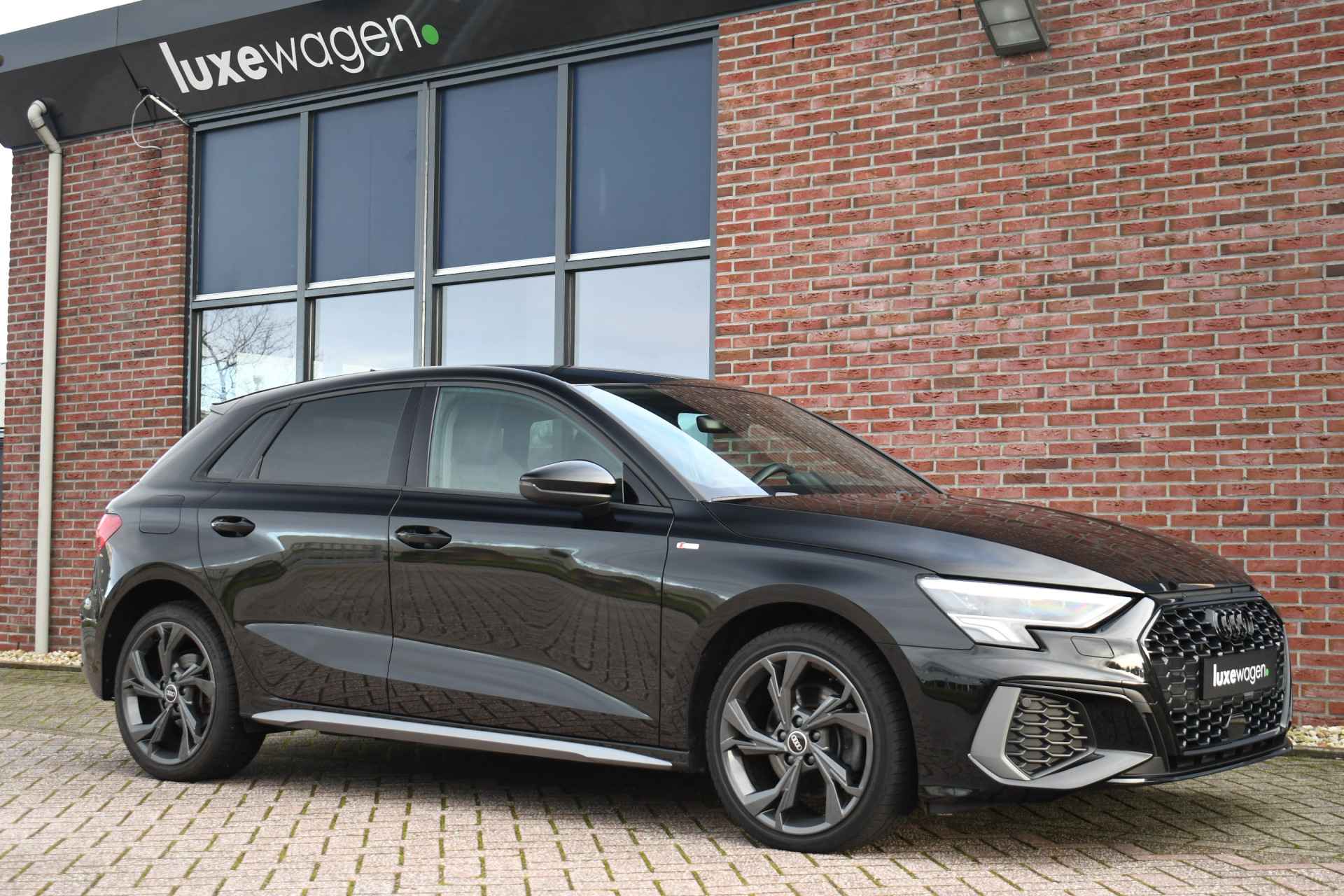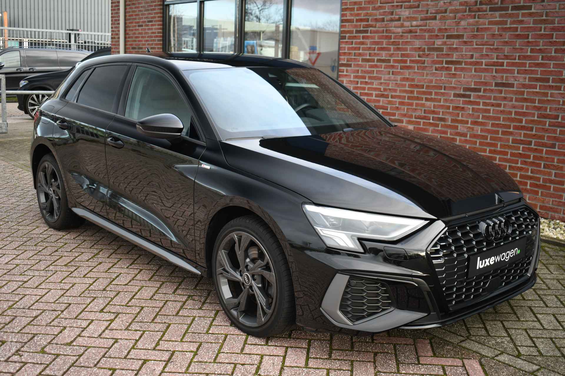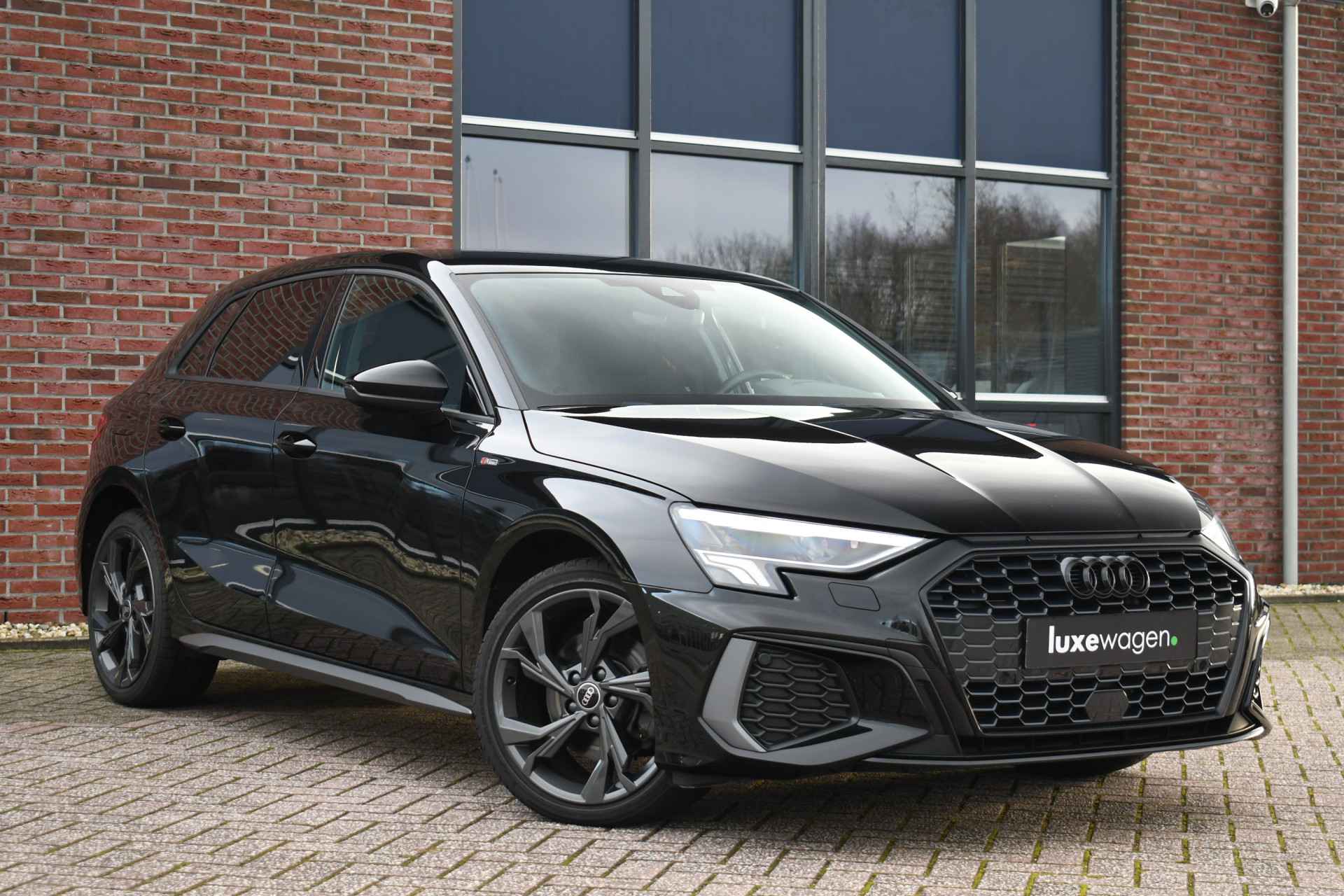 Leuke A3 Sportback met S-Line pakket, matrix LED koplampen met lopende knipperlichten achter, keyless entry, 18 inch velgen, alarm klasse 3, etc.