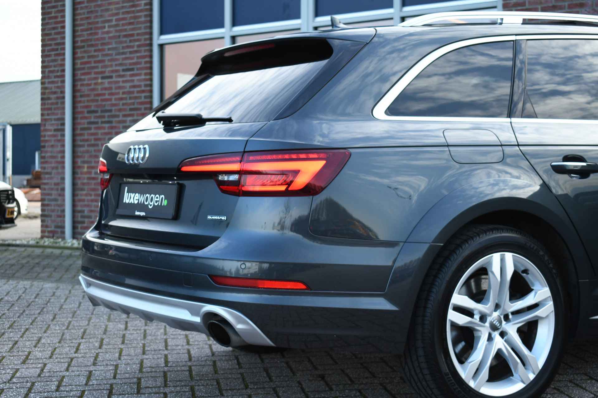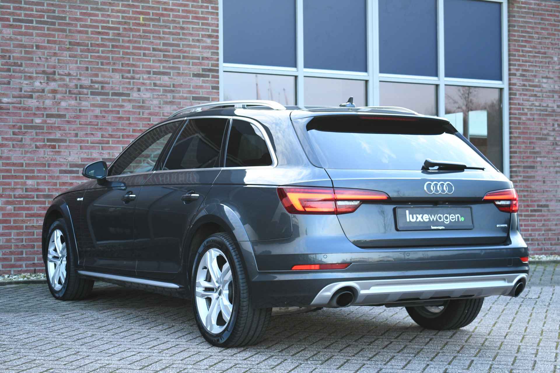 Veel voller worden ze niet! Super complete, dealer onderhouden A4 Allroad. Met o.a. panoramadak, head-up display, adaptieve cruise, matrix-LED met lopende knipperlichten voor en achter, adaptief onderstel (instelbare demping), zwarte hemel, bumpers in kleur, trekhaak, standkachel, etc etc!