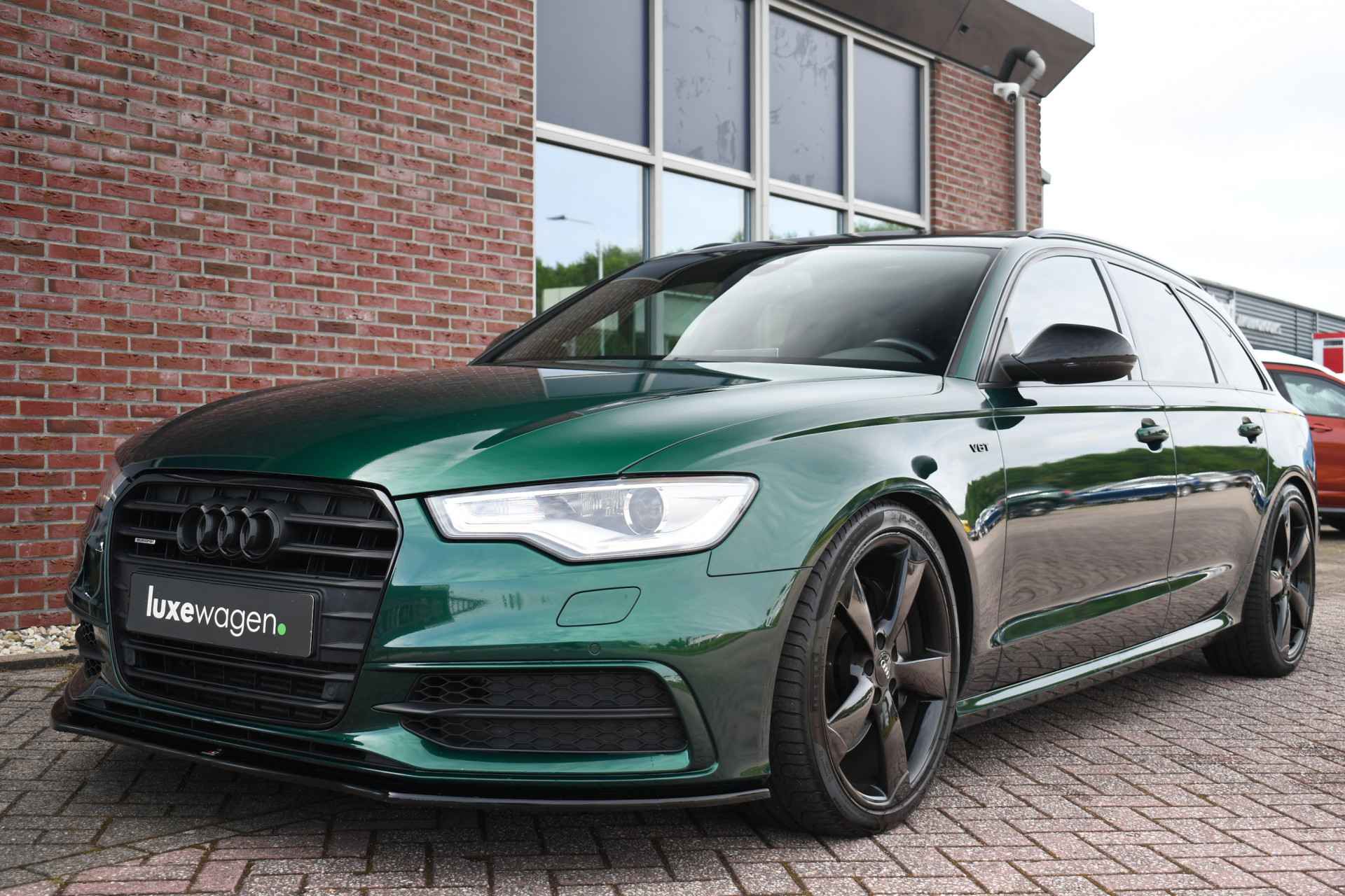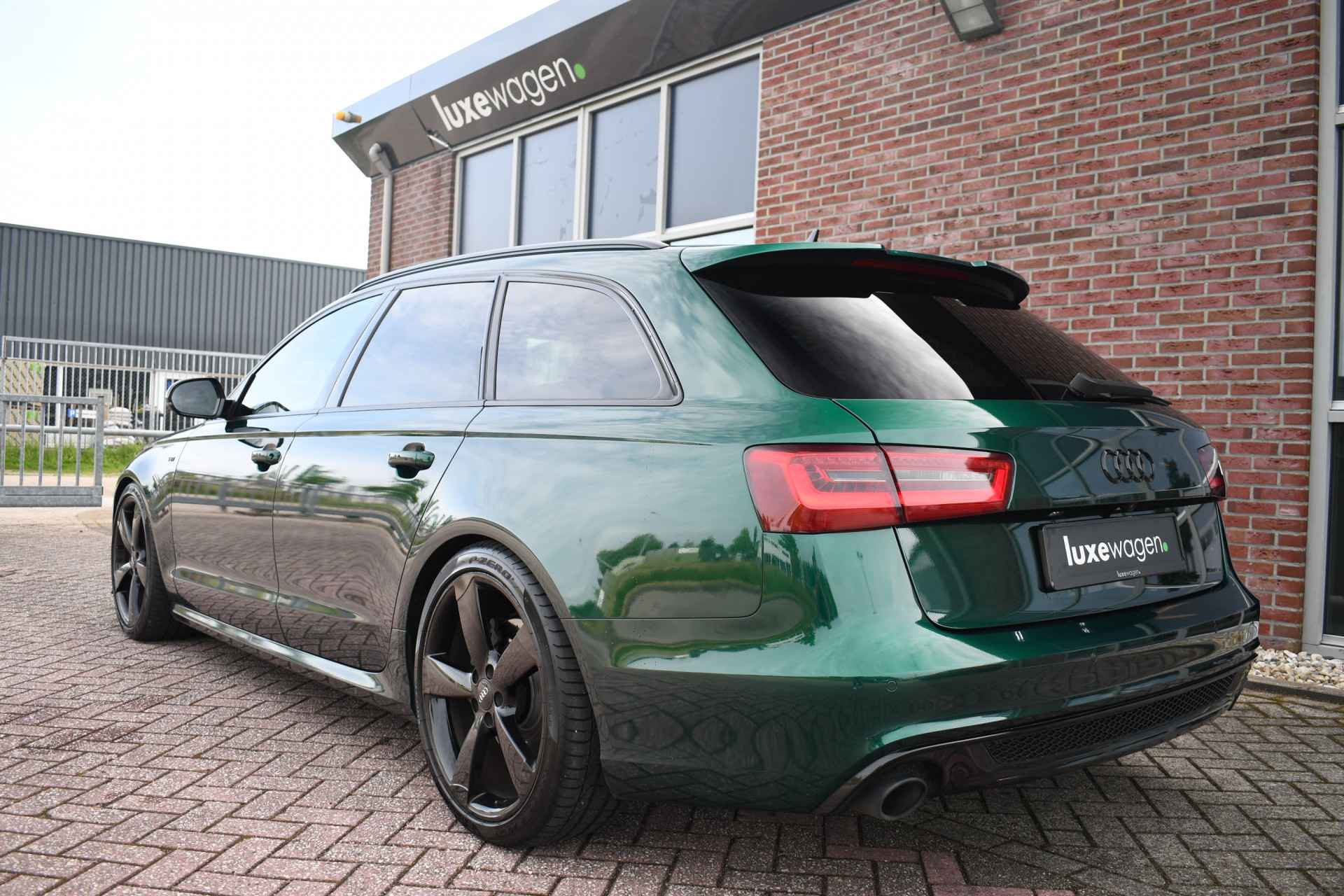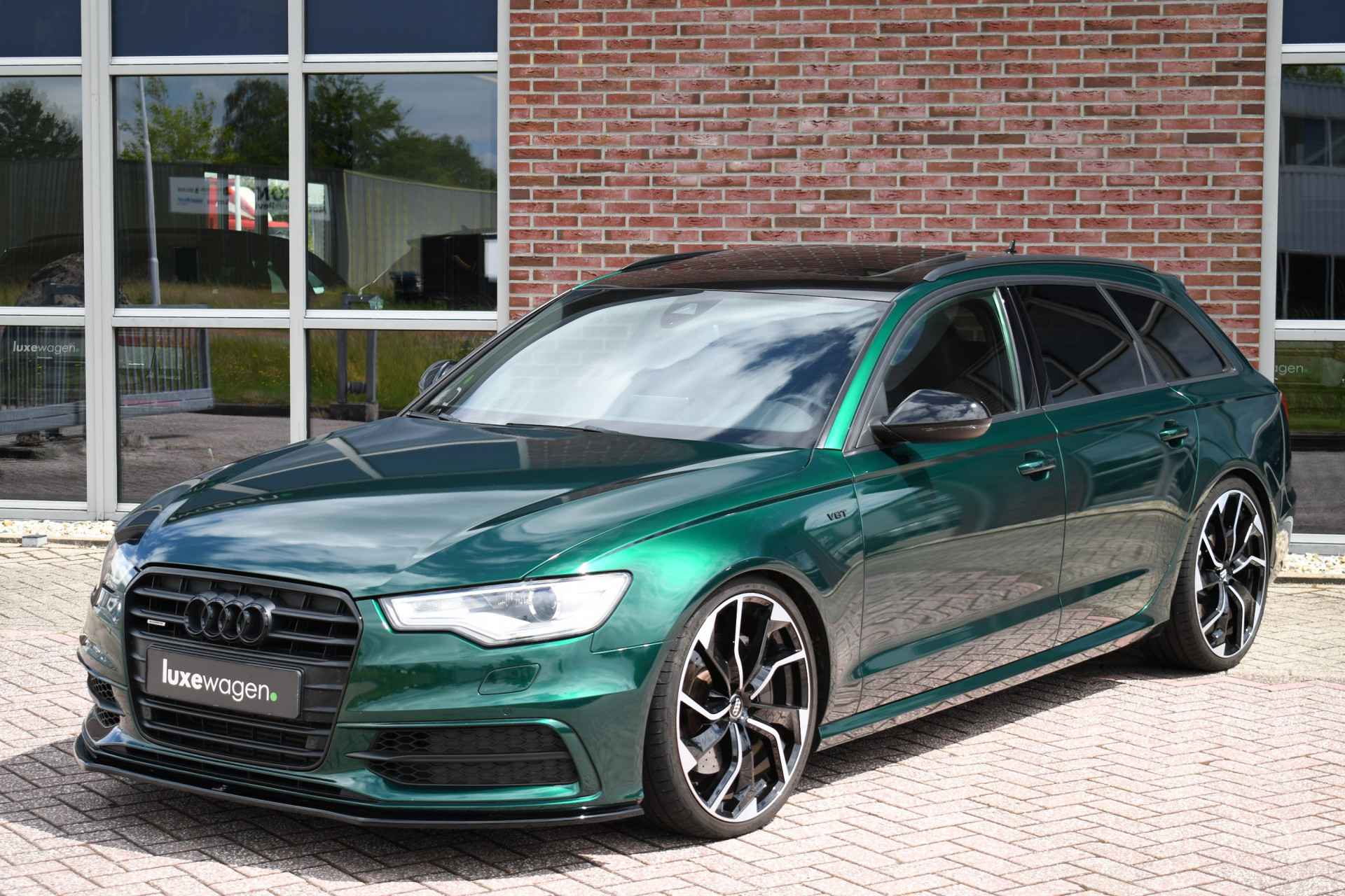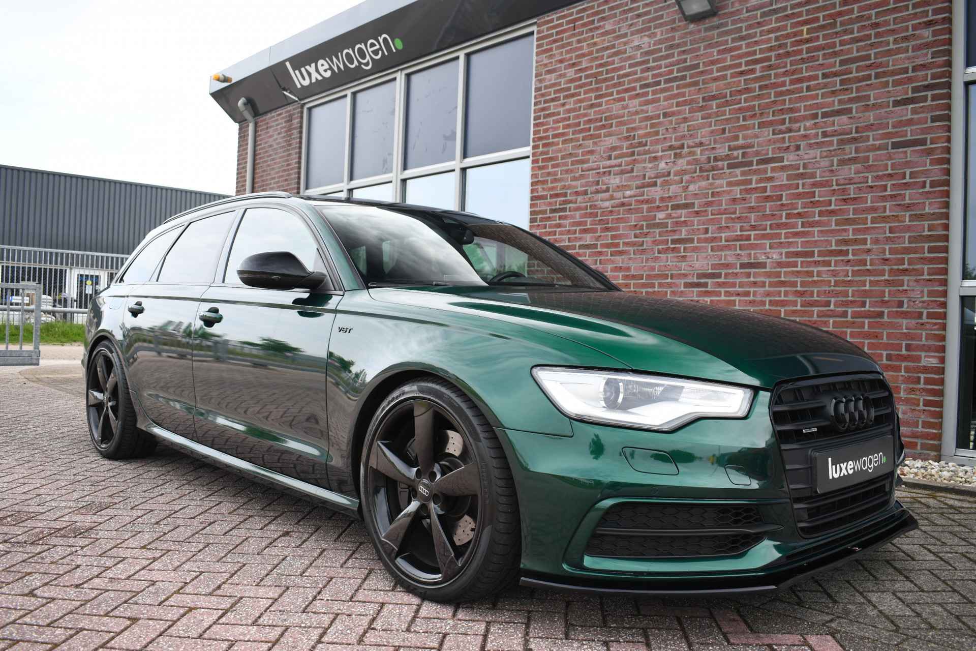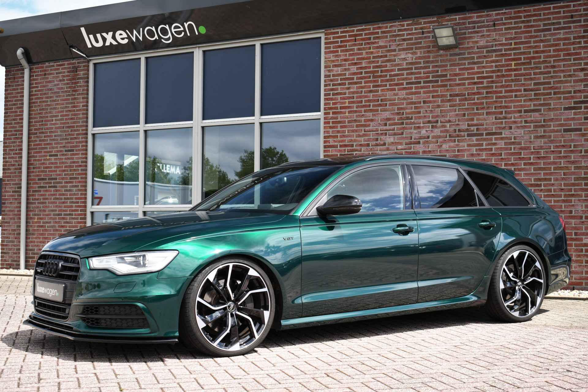 Let op, auto is niet altijd aanwezig! Bel of mail voor een afspraak. Unieke A6 Bi-Turbo voorzien van JD stage 2 met 400pk en Bentley-green wrap! HD-foto's van voor de wrap zijn aanwezig. Met o.a. panoramadak, S-zetels, luchtvering, optic-black af-fabriek, trekhaak, etc! Getoonde 21" velgen hebben een meerprijs, wordt standaard geleverd op de zwarte 20" rotor-velgen. Kijk op onze eigen website (luxewagen.nl) voor meer + HD-foto's. Niet alleen onze collectie is luxe, ook onze service! Met meer dan 15 jaar ervaring in de branche weten we dat service het belangrijkste is. Van goed en eerlijk advies voor de aankoop tot fantastische service na de aankoop. Ons team bestaat uit liefhebbers die hun vak verstaan. Dankzij rechtstreekse inkoop bij Duitse fabrikanten en importeurs bieden wij een zorgvuldig geselecteerd aanbod van dealer onderhouden en perfect uitgevoerde luxewagens, met een heldere historie. Leasen (ook starters/zzp-ers) en inruilen is geen probleem. Bel of stuur ons een bericht, we helpen u graag.