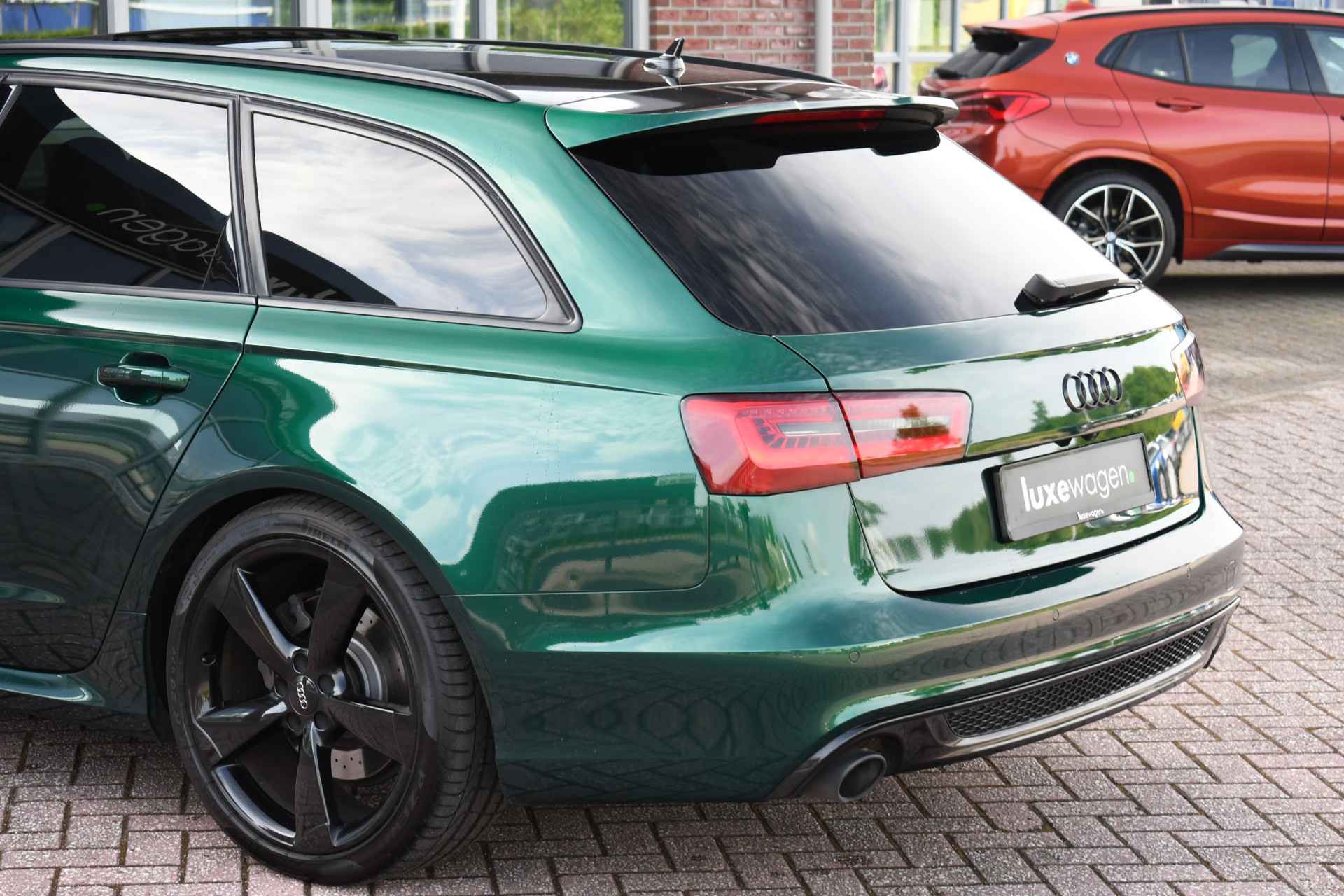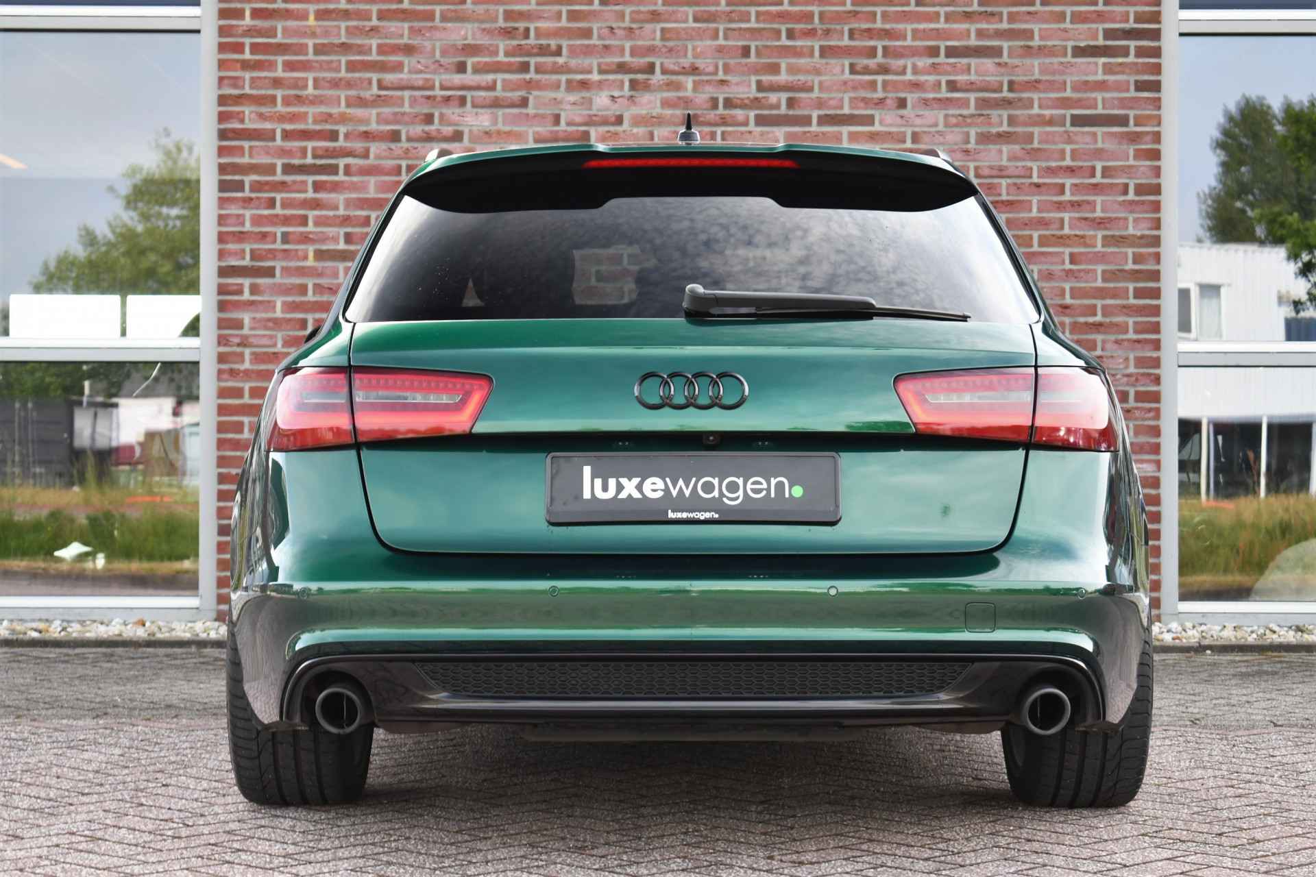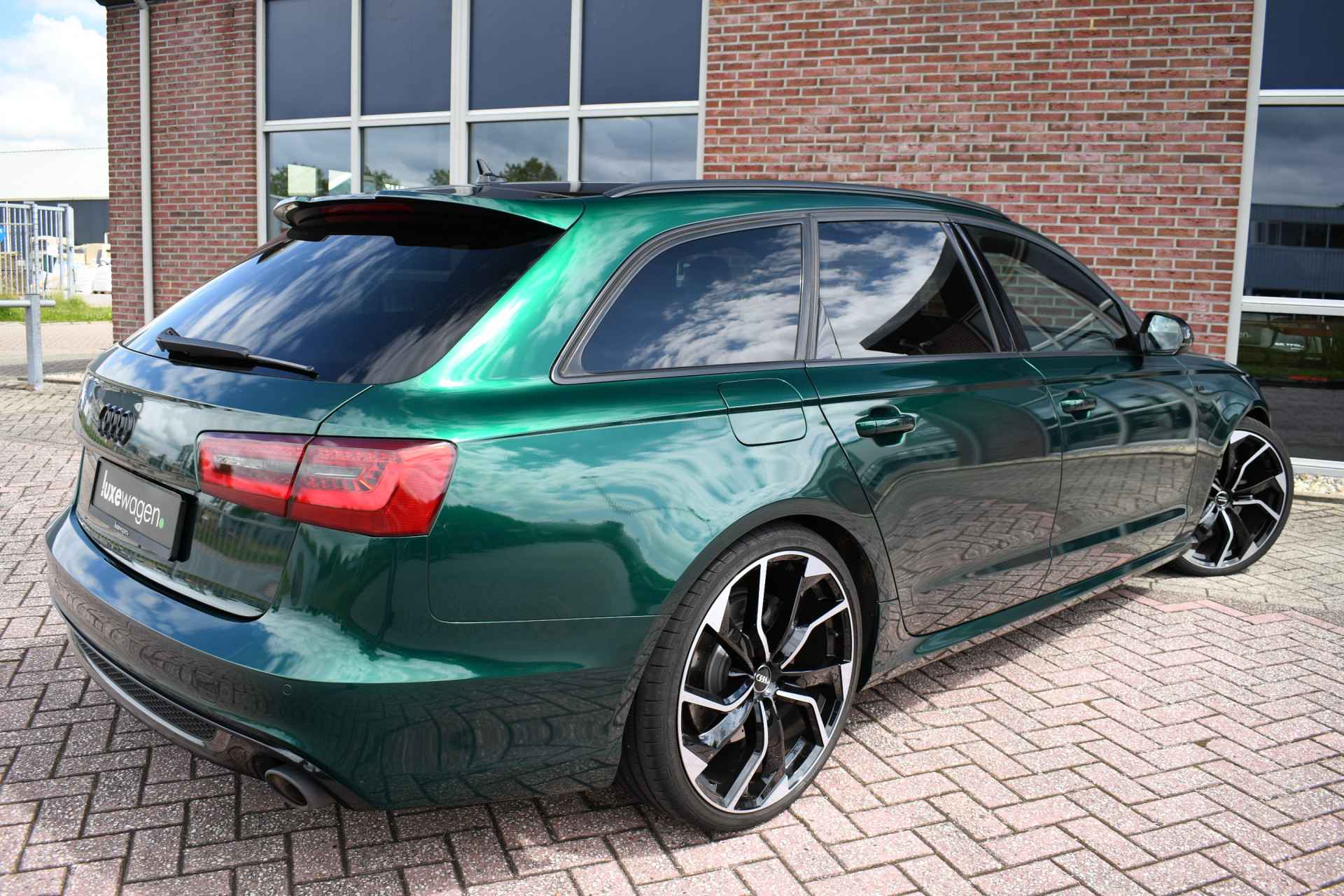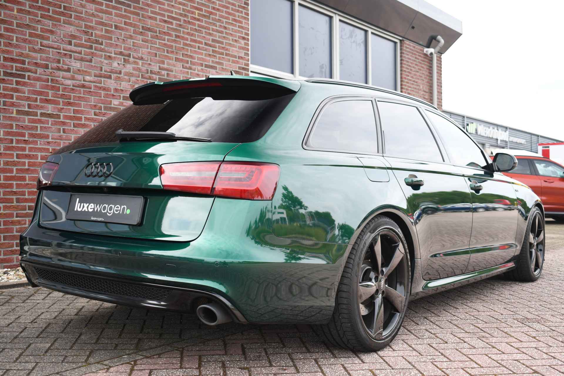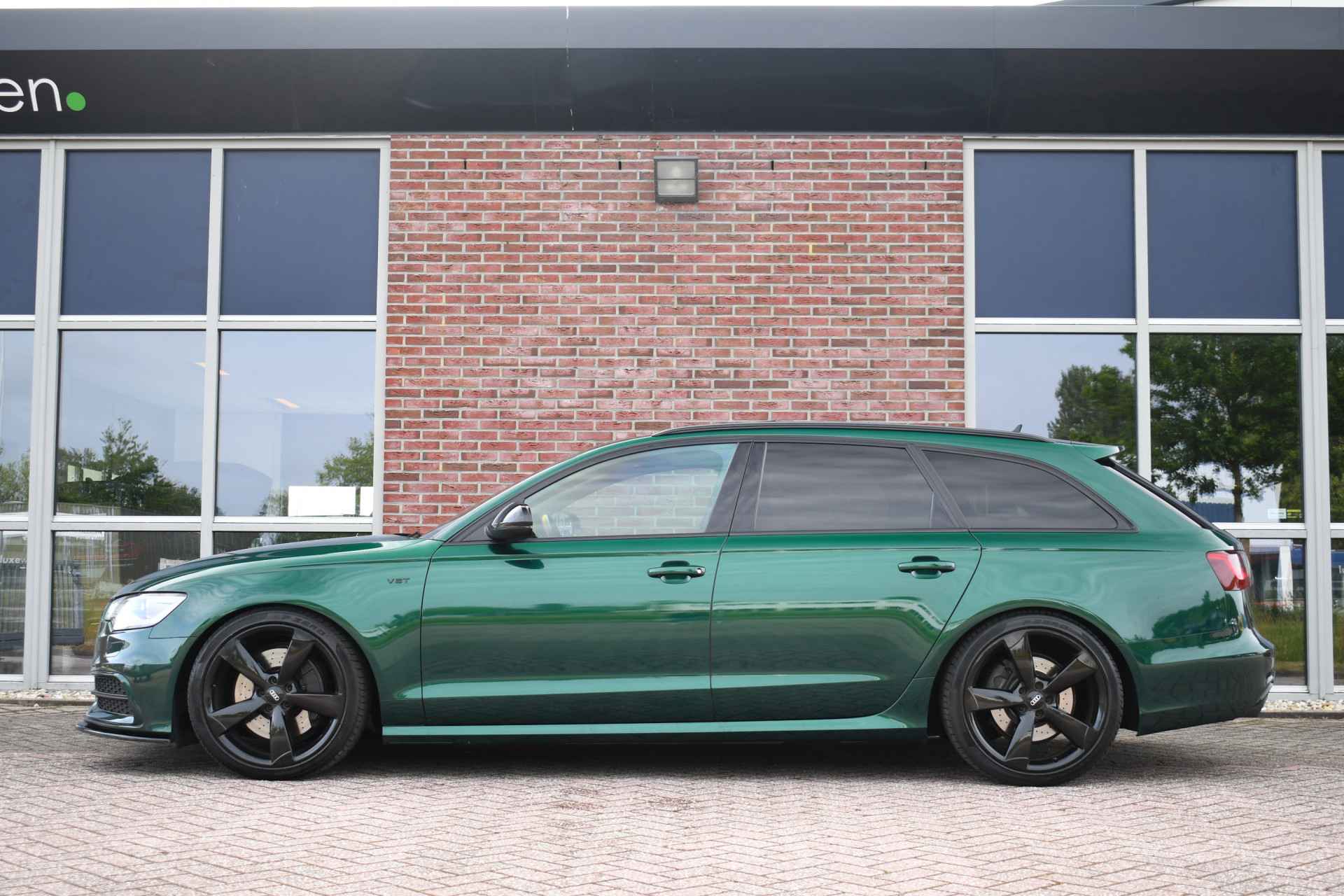 Let op, auto is niet altijd aanwezig! Bel of mail voor een afspraak. Unieke A6 Bi-Turbo voorzien van JD stage 2 met 400pk en Bentley-green wrap! HD-foto's van voor de wrap zijn aanwezig. Met o.a. panoramadak, S-zetels, luchtvering, optic-black af-fabriek, trekhaak, etc! Getoonde 21" velgen hebben een meerprijs, wordt standaard geleverd op de zwarte 20" rotor-velgen. Kijk op onze eigen website (luxewagen.nl) voor meer + HD-foto's. Niet alleen onze collectie is luxe, ook onze service! Met meer dan 15 jaar ervaring in de branche weten we dat service het belangrijkste is. Van goed en eerlijk advies voor de aankoop tot fantastische service na de aankoop. Ons team bestaat uit liefhebbers die hun vak verstaan. Dankzij rechtstreekse inkoop bij Duitse fabrikanten en importeurs bieden wij een zorgvuldig geselecteerd aanbod van dealer onderhouden en perfect uitgevoerde luxewagens, met een heldere historie. Leasen (ook starters/zzp-ers) en inruilen is geen probleem. Bel of stuur ons een bericht, we helpen u graag.