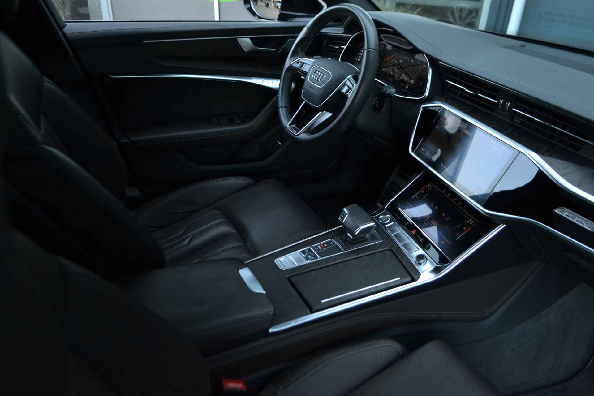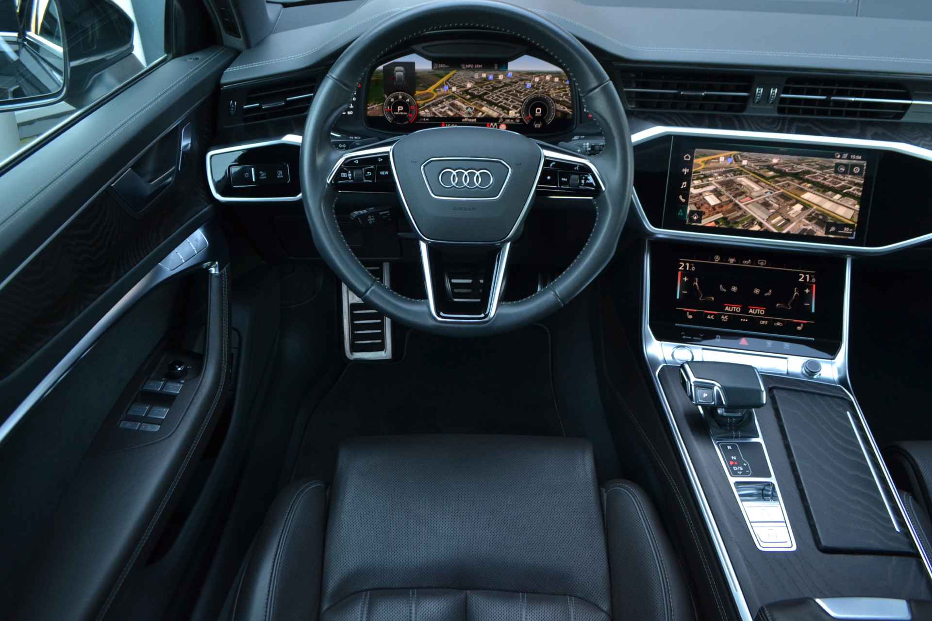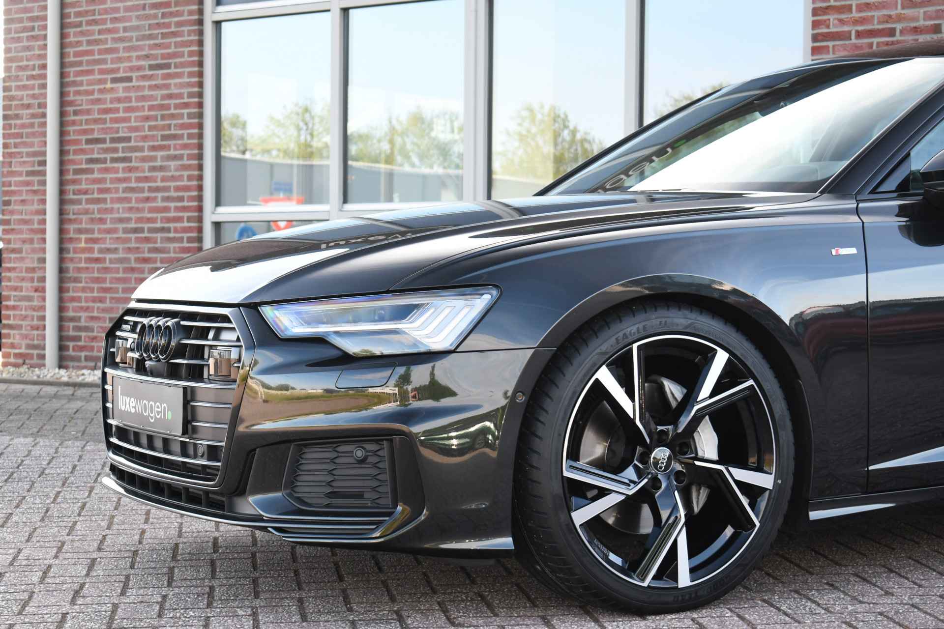 BIjzonder stijvolle A6 met veel opties zoals S-Line pakket, panoramadak, HD-matrix LED-koplampen met lopende knipperlichten voor en achter, 3D camerasysteem, contourstoelen met leder Valcona, leder dashboard, etc! Nieuwprijs 126.374,-. Getoonde 21" velgen hebben een meerprijs, wordt standaard geleverd op de originele 19" velgen. Keurig dealer onderhouden en afkomstig van de eerste eigenaar.