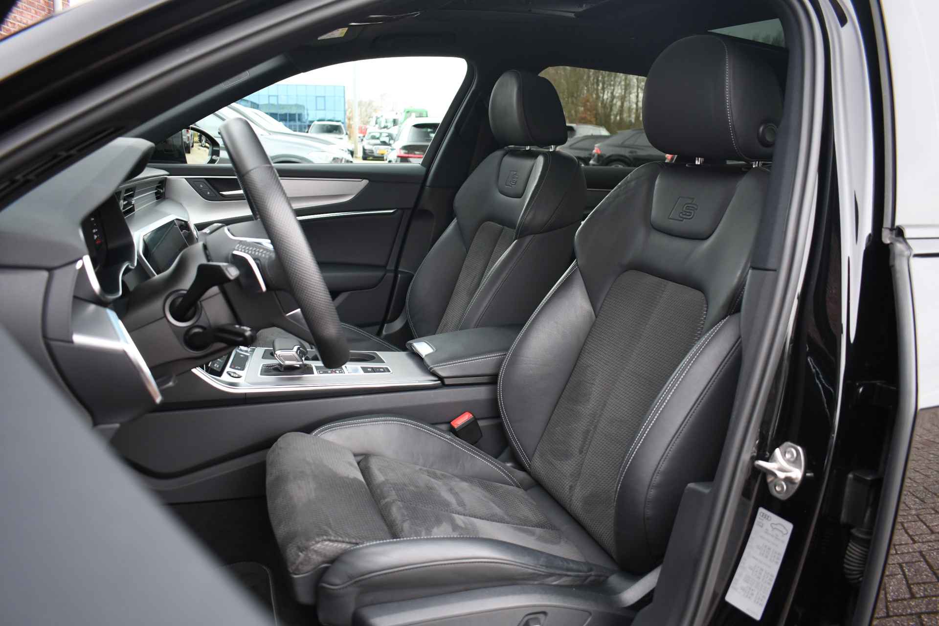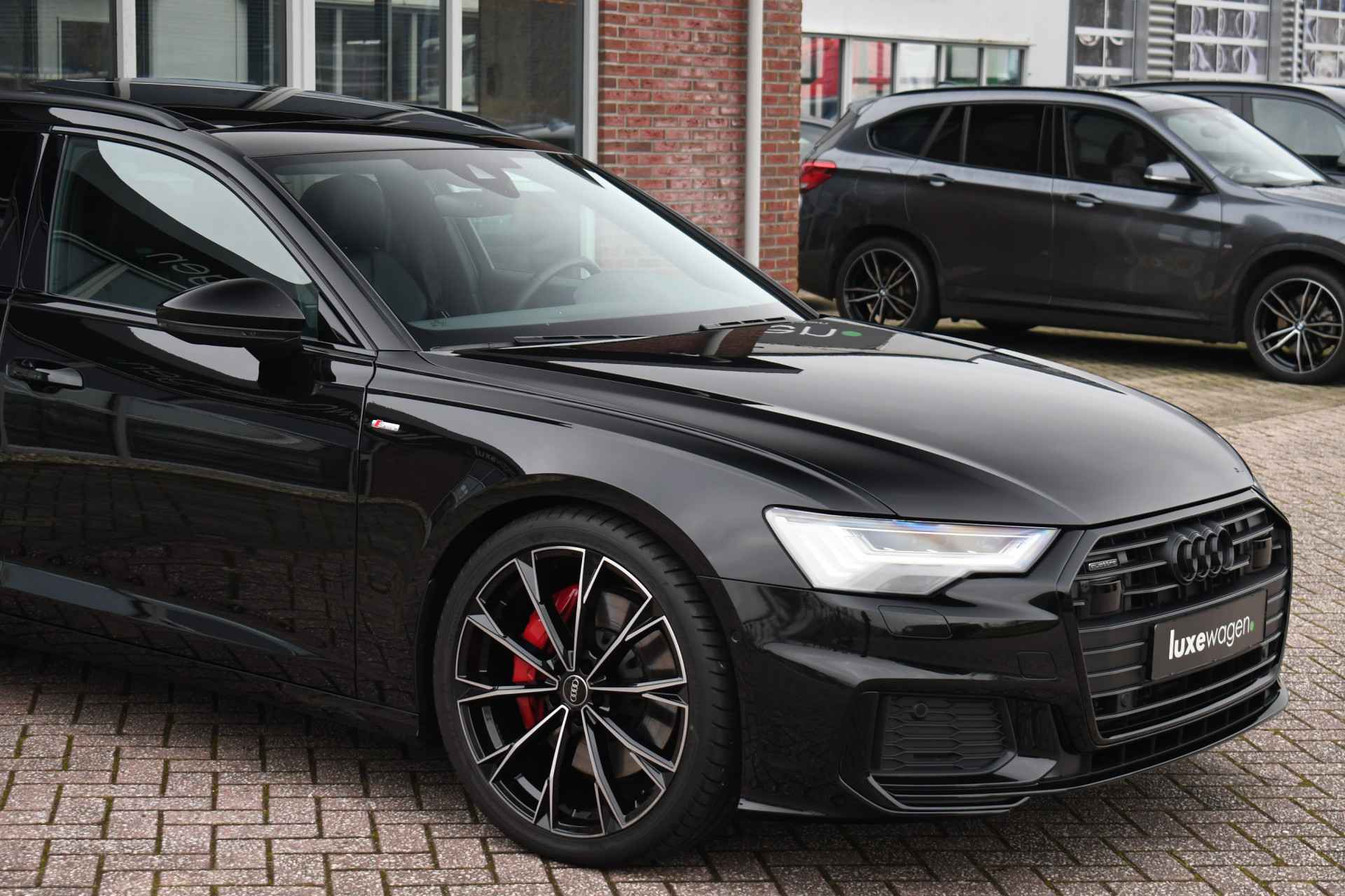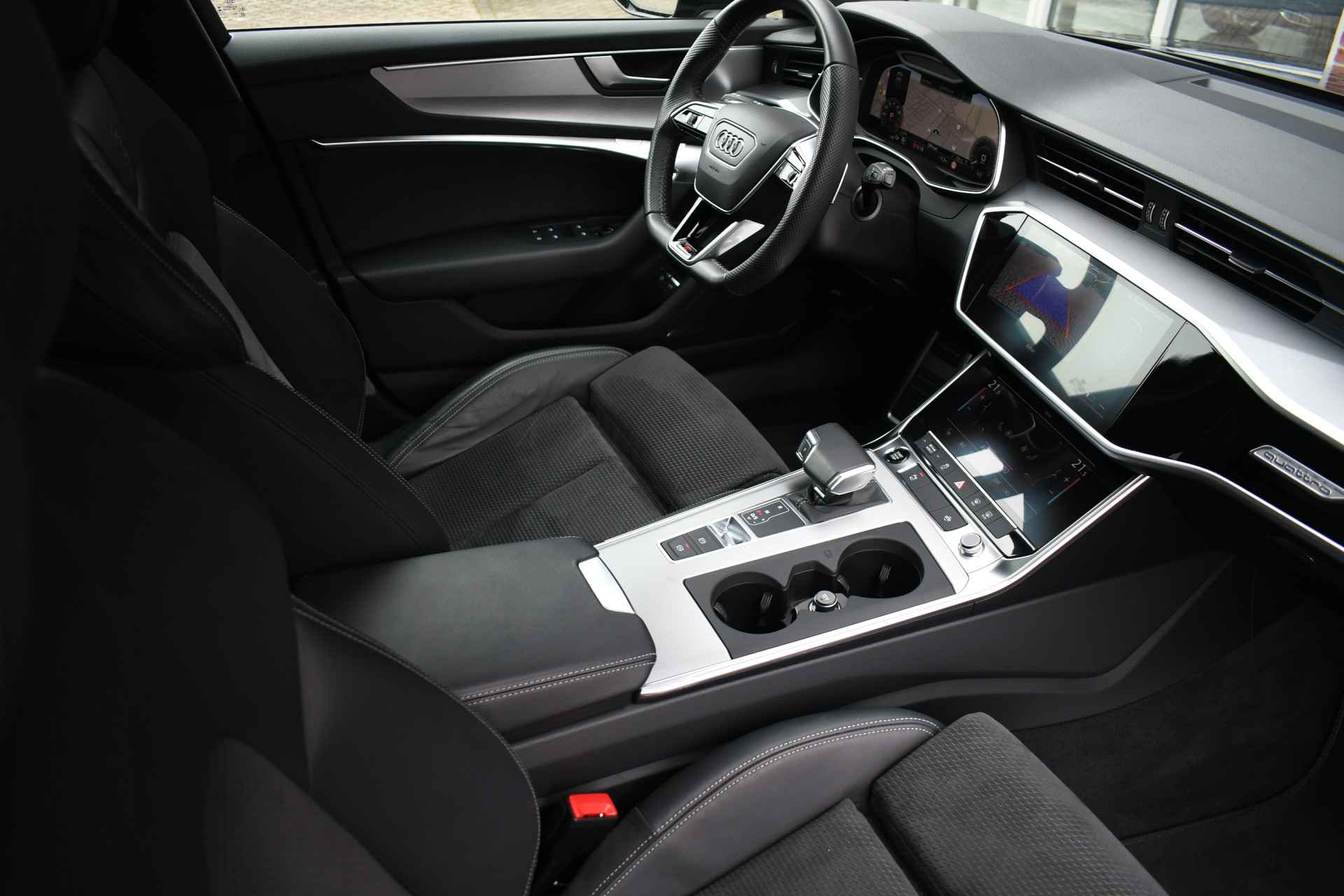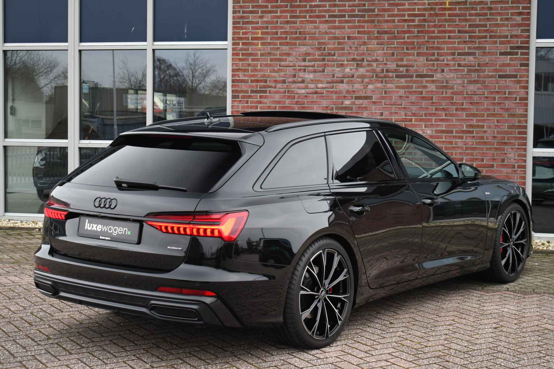 Getoonde 21 inch velgen hebben een meerprijs, auto komt binnen op de originele Audi Sport 20 inch velgen conform foto nr. 10. Gave A6 Avant, compleet met: panoramadak, wegklapbare trekhaak, adaptieve cruise control, bang en olufsen, HD-matrix LED, elektrische verstelbare zetels, black-optic met logo's, zwarte hemel etc.