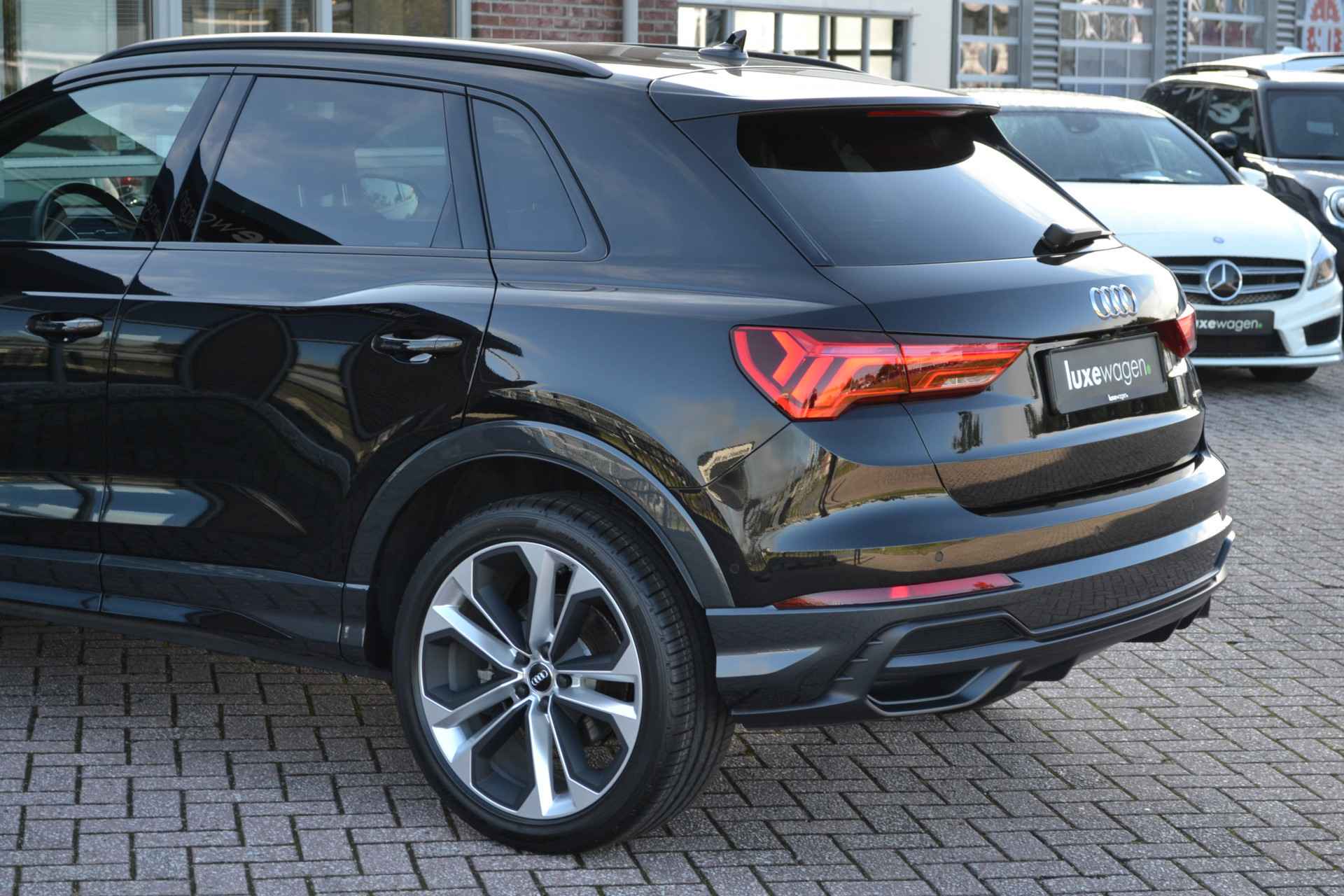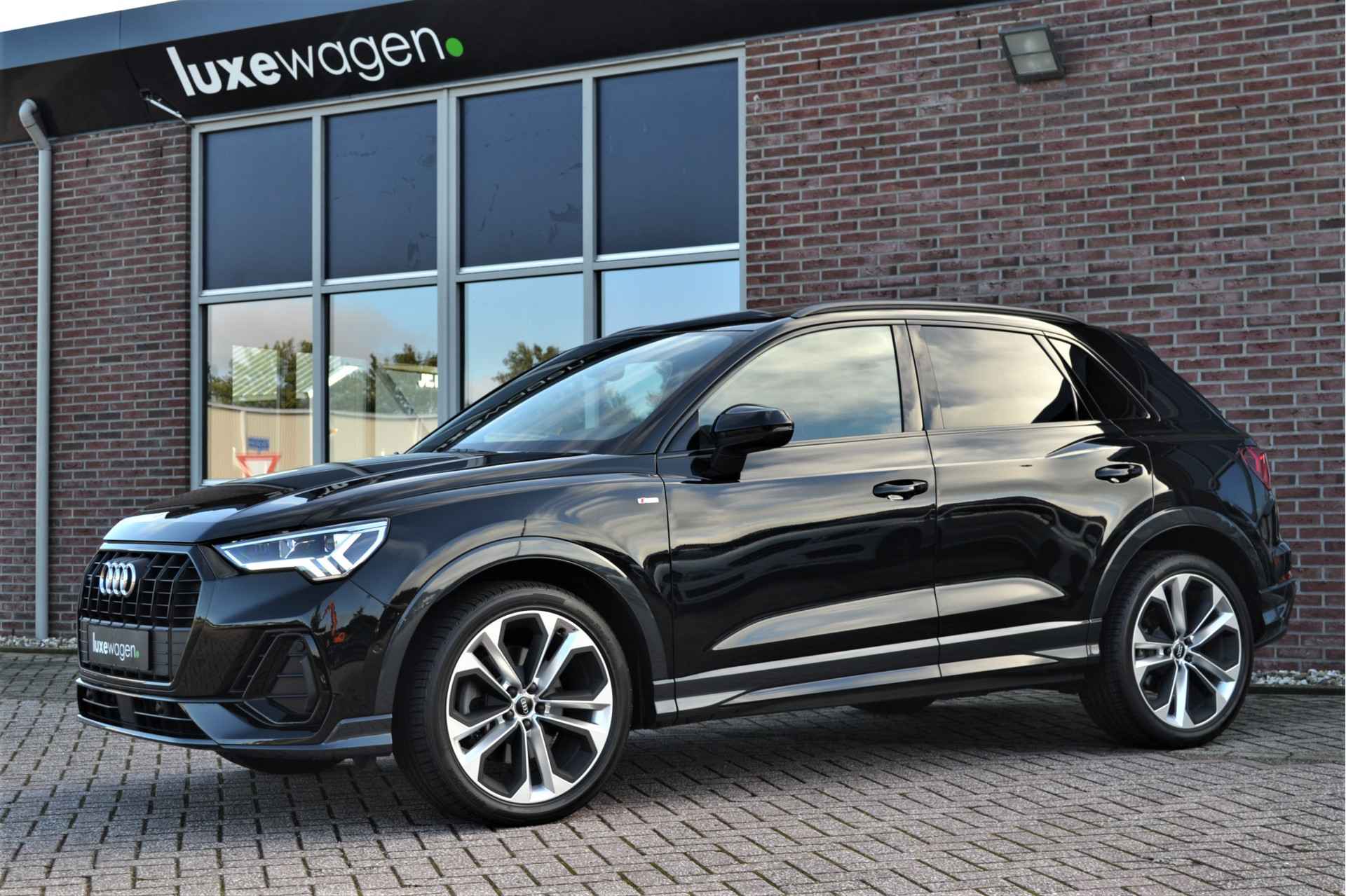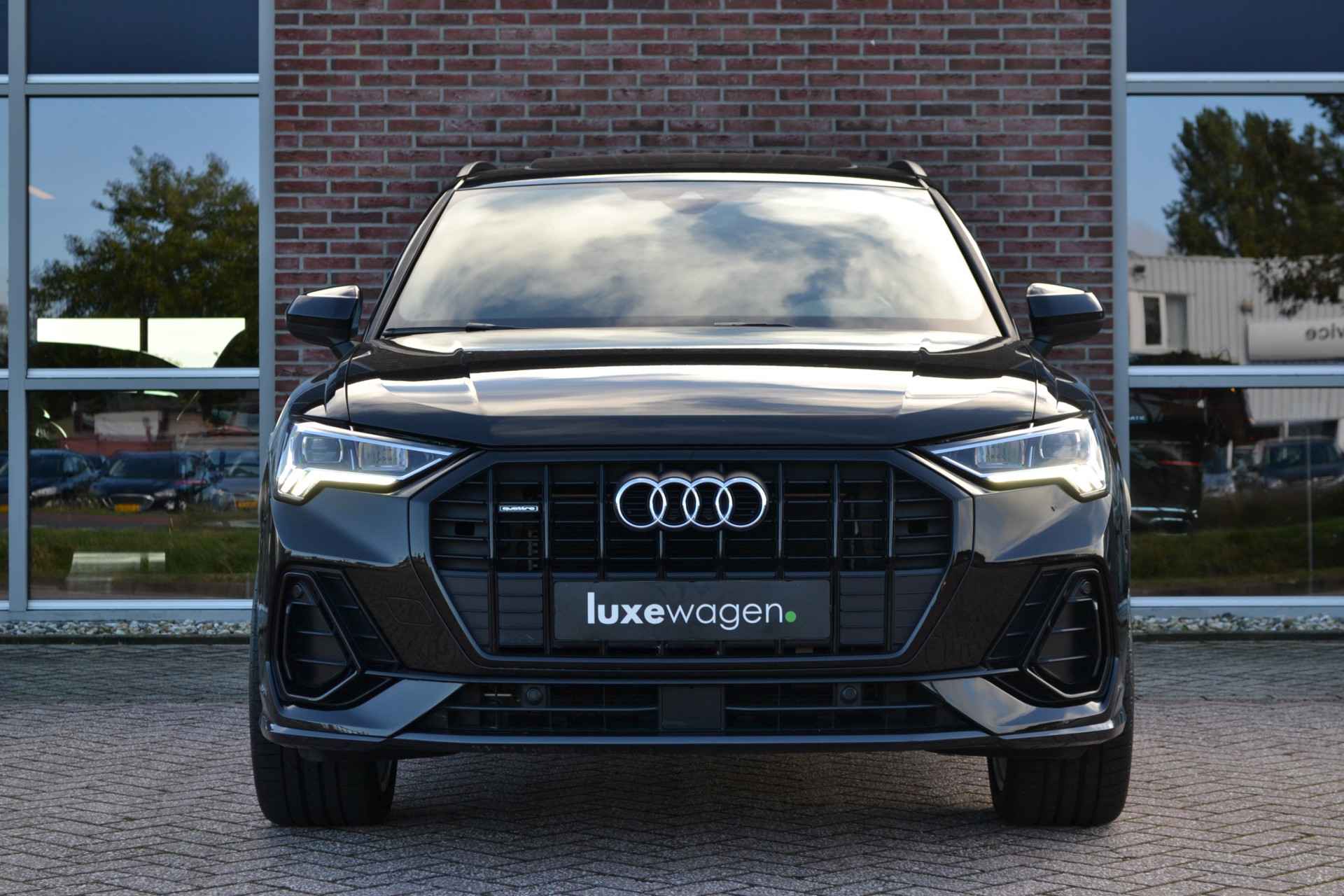 Perfect samengestelde Q3 40 (2.0L) TFSI quattro met 190pk. Nieuwprijs eur. 78.100,-. Met S-Line interieur en exterieur, panoramadak, matrix-LED met lopende knipperlichten, adaptieve cruise control, achteruitrijcamera, glanspakket zwart (optic black), lane- en side assist, etc!