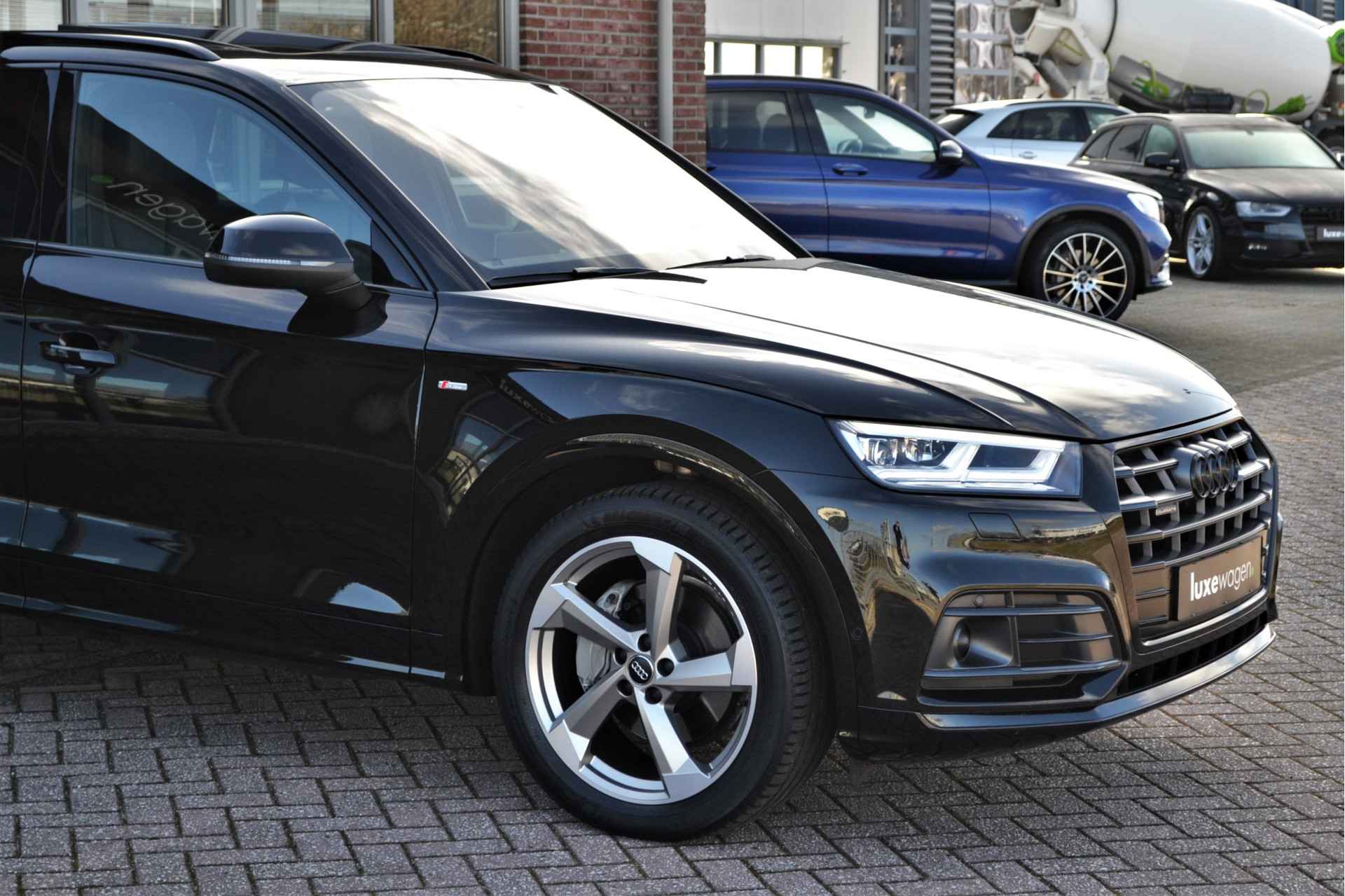 Deze bijzonder luxe Q5 heeft o.a. S-Line exterieur, panoramadak, luchtvering(!), adaptieve cruise control, head-up display, standkachel, matrix-LED, virtual cockpit, achteruitrijcamera, side assist, 20" velgen, elektrische best.stoel met zwart leder Milano, zwarte hemelbekleding, etc!