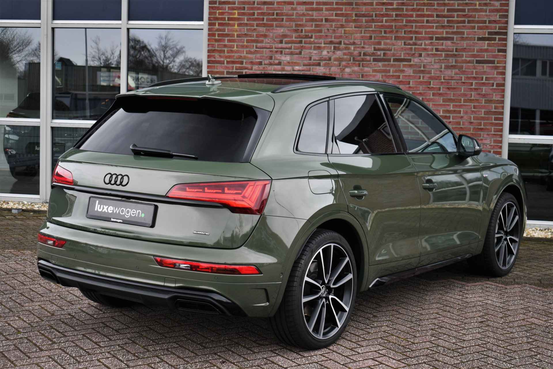 Deze hybride (facelift) Q5 is o.a. voorzien van S-Line exterieur, panoramadak, luchtvering, wegklapbare trekhaak (2000kg trekken), 21 inch velgen, elektrisch verstelbare stoelen, optic-black incl logo's, adaptieve cruise control, 360 graden camerasysteem, etc! Half-tarief wegenbelasting en interessante fiscale waarde.