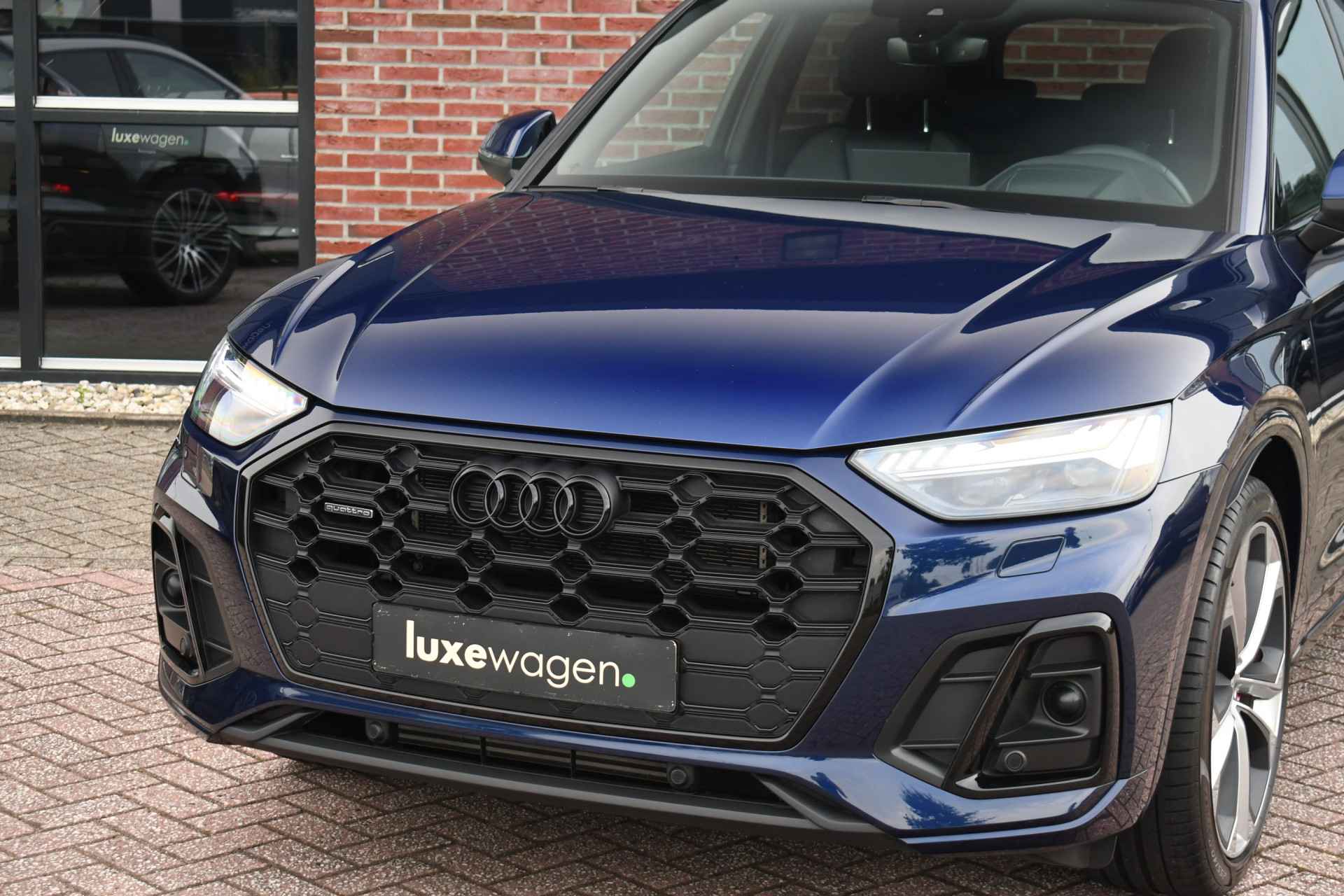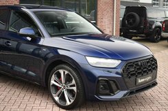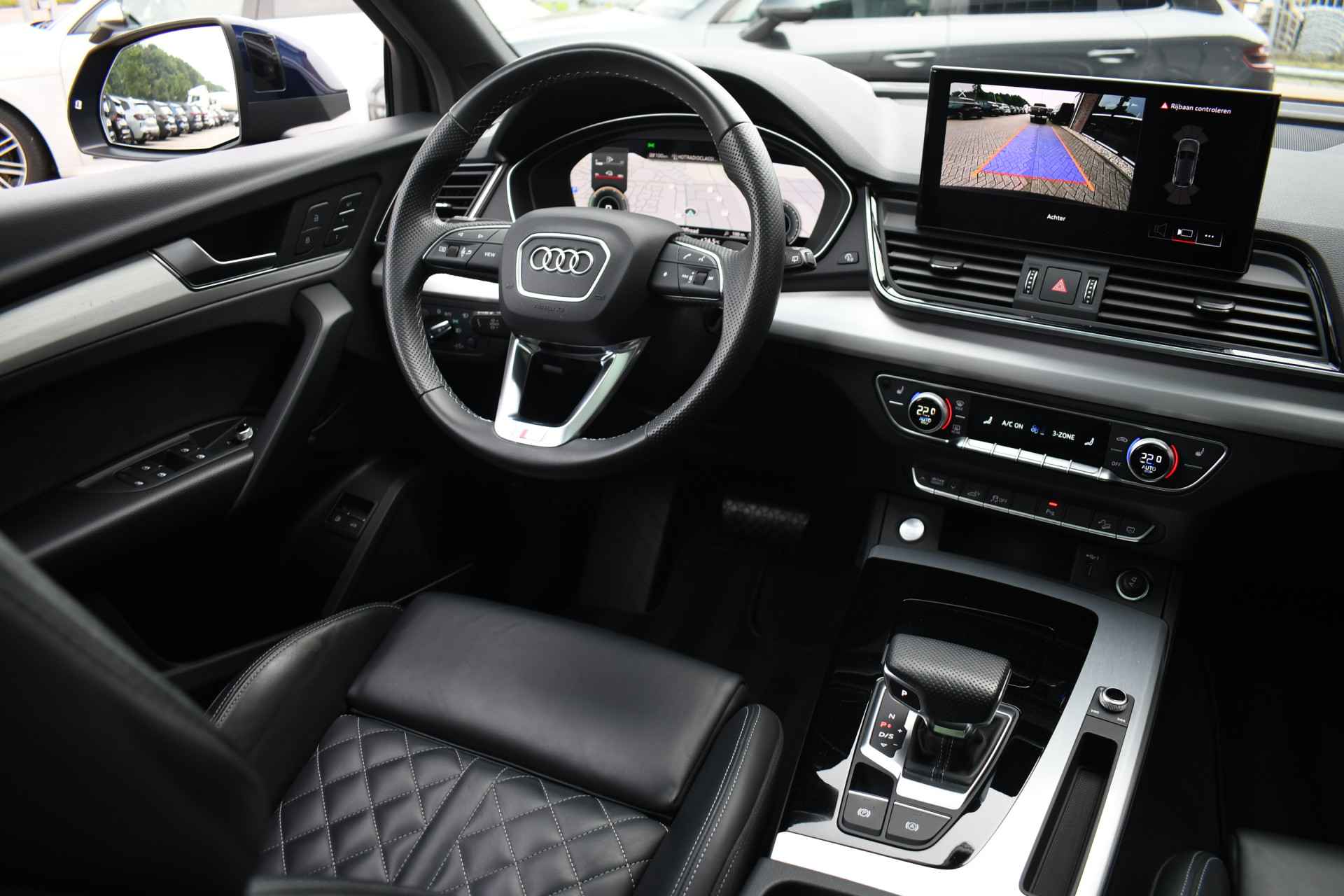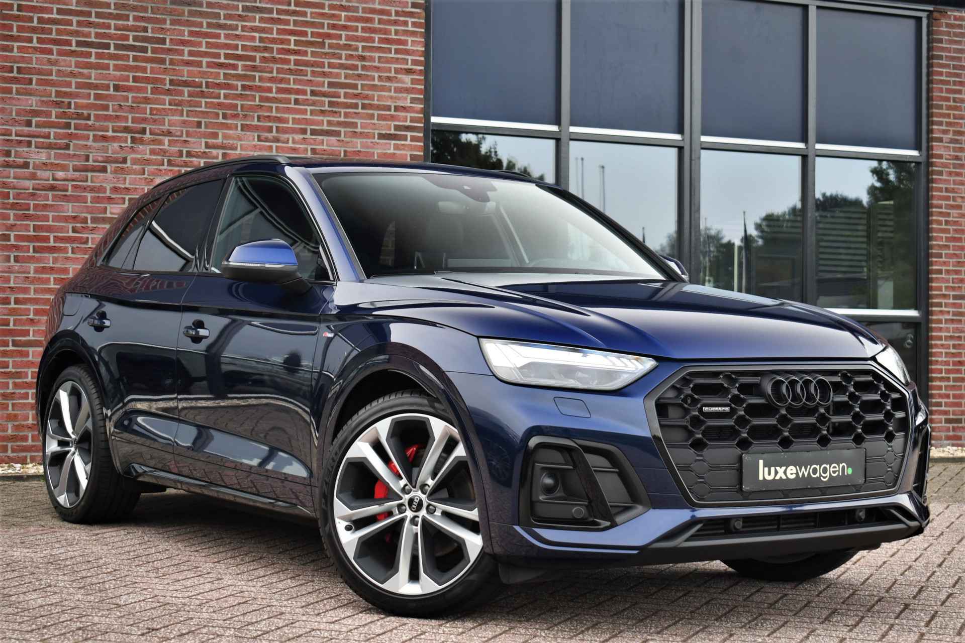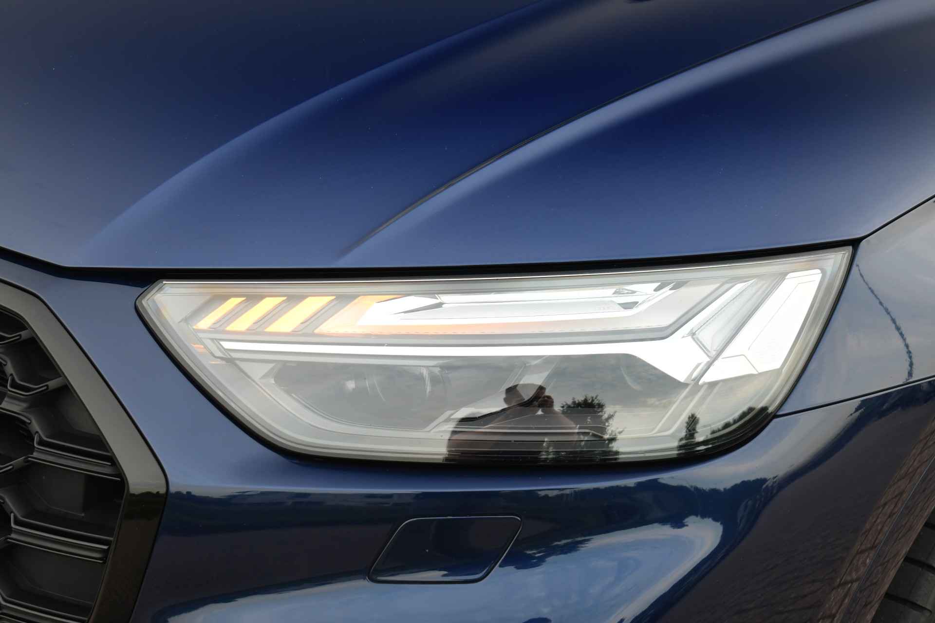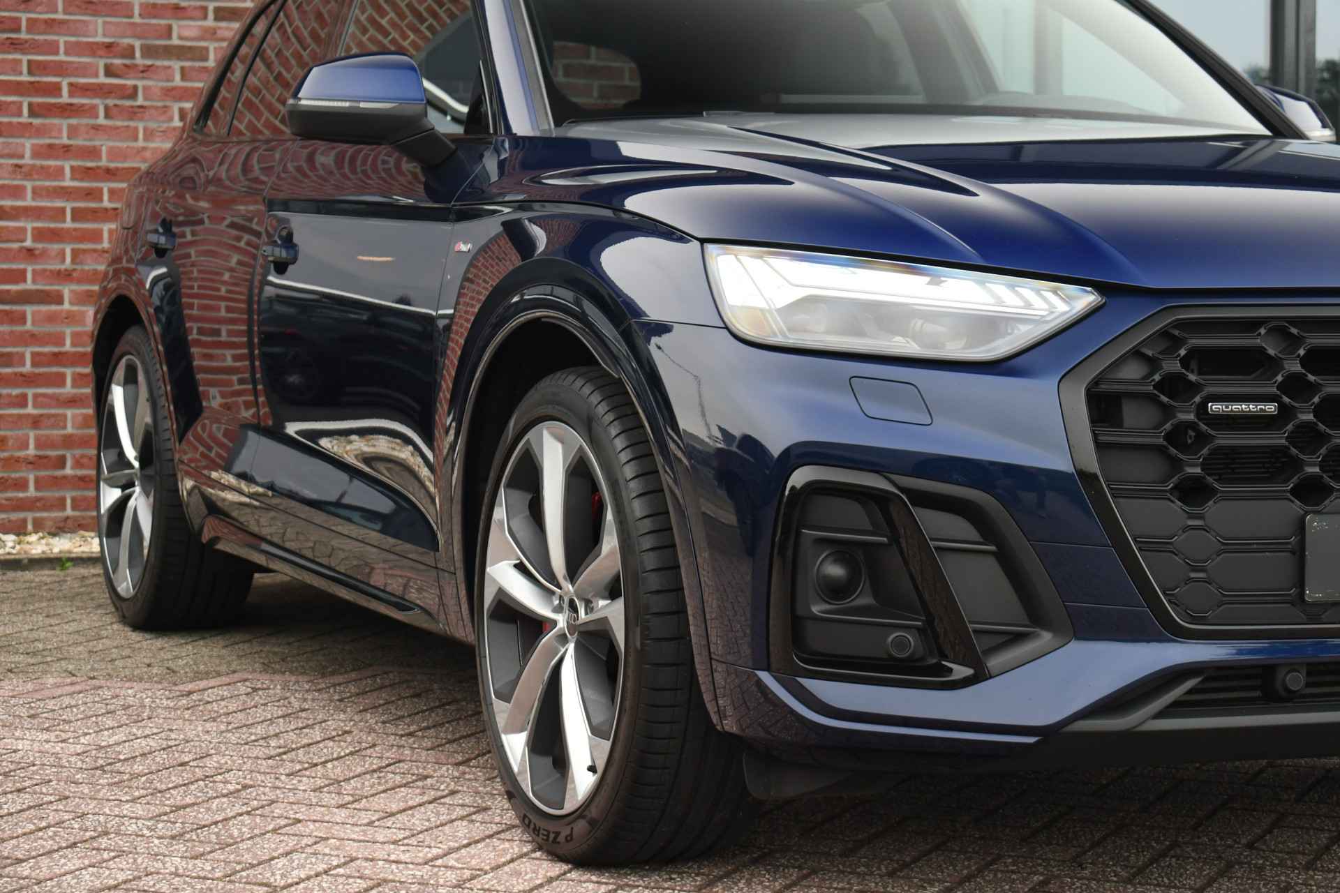 Deze bomvolle 2022 Q5 in het Navarra blauw komt van de eerste eigenaar en is dealer onderhouden. Met o.a. S-Line exterieur en interieur, panoramadak, luchtvering (!), wegklapbare trekhaak, adaptieve cruise control. head-up display, bang & olufsen audio, 21 inch velgen, black-optic, elektrische verstelbare stoelen met massage functie, etc!