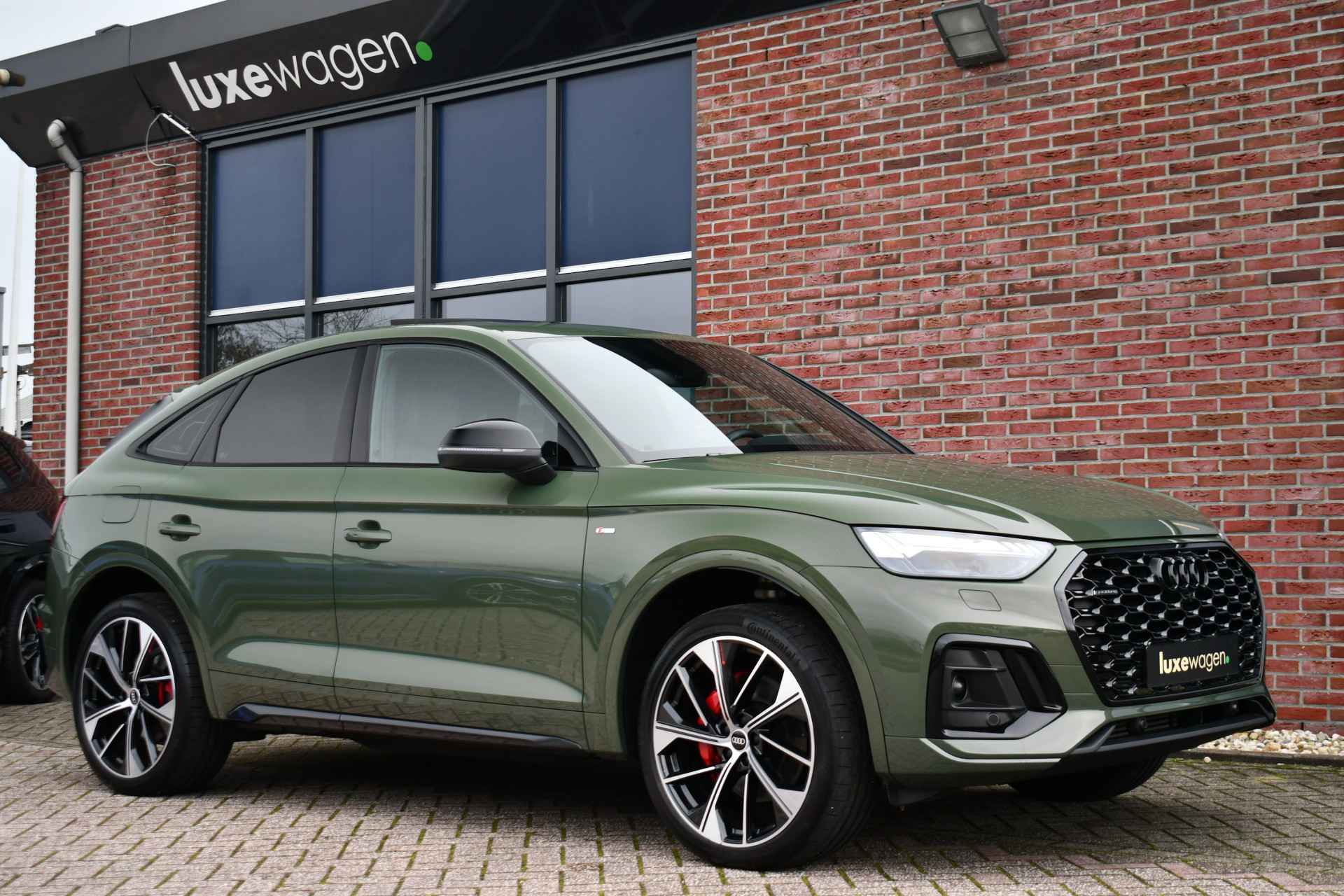 Deze Q5 Sportback - in de Audi Exclusive lak Distrikt Grün - heeft weinig kilometers, is afkomstig van de eerste eigenaar en compleet dealer onderhouden. Compleet met: S-Line exterieur en interieur (S Edition), panoramadak, adaptieve cruise control, elektrisch verstelbare zetels met massage en met geheugen voor de bestuurder, head-up display, elektrische trekhaak, 21 inch originele velgen, etc! BTW-auto.