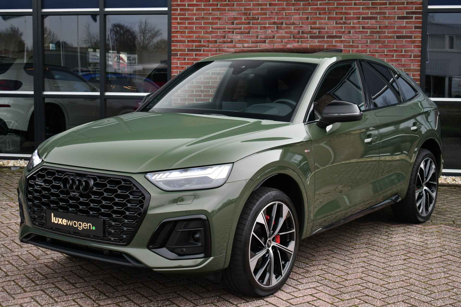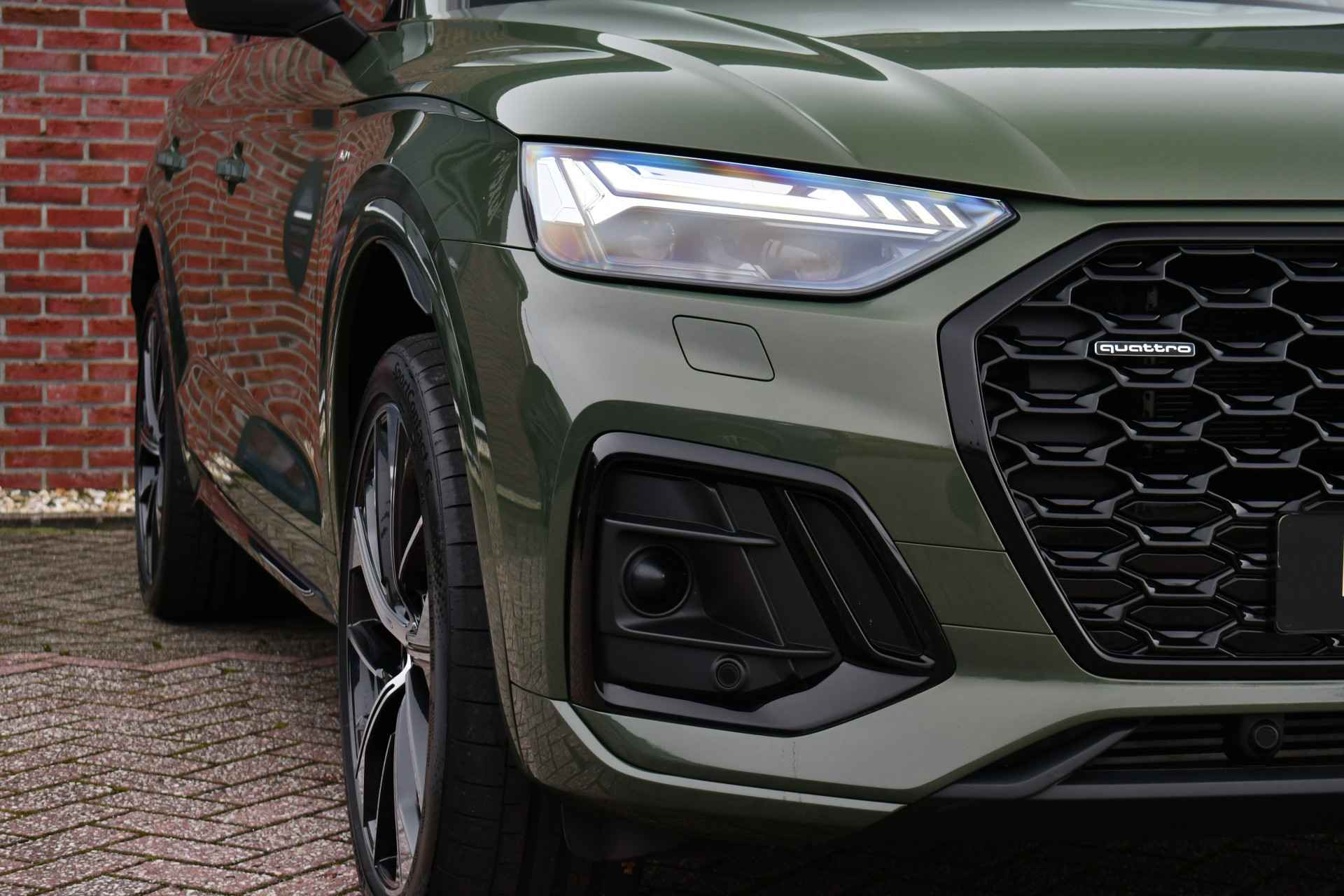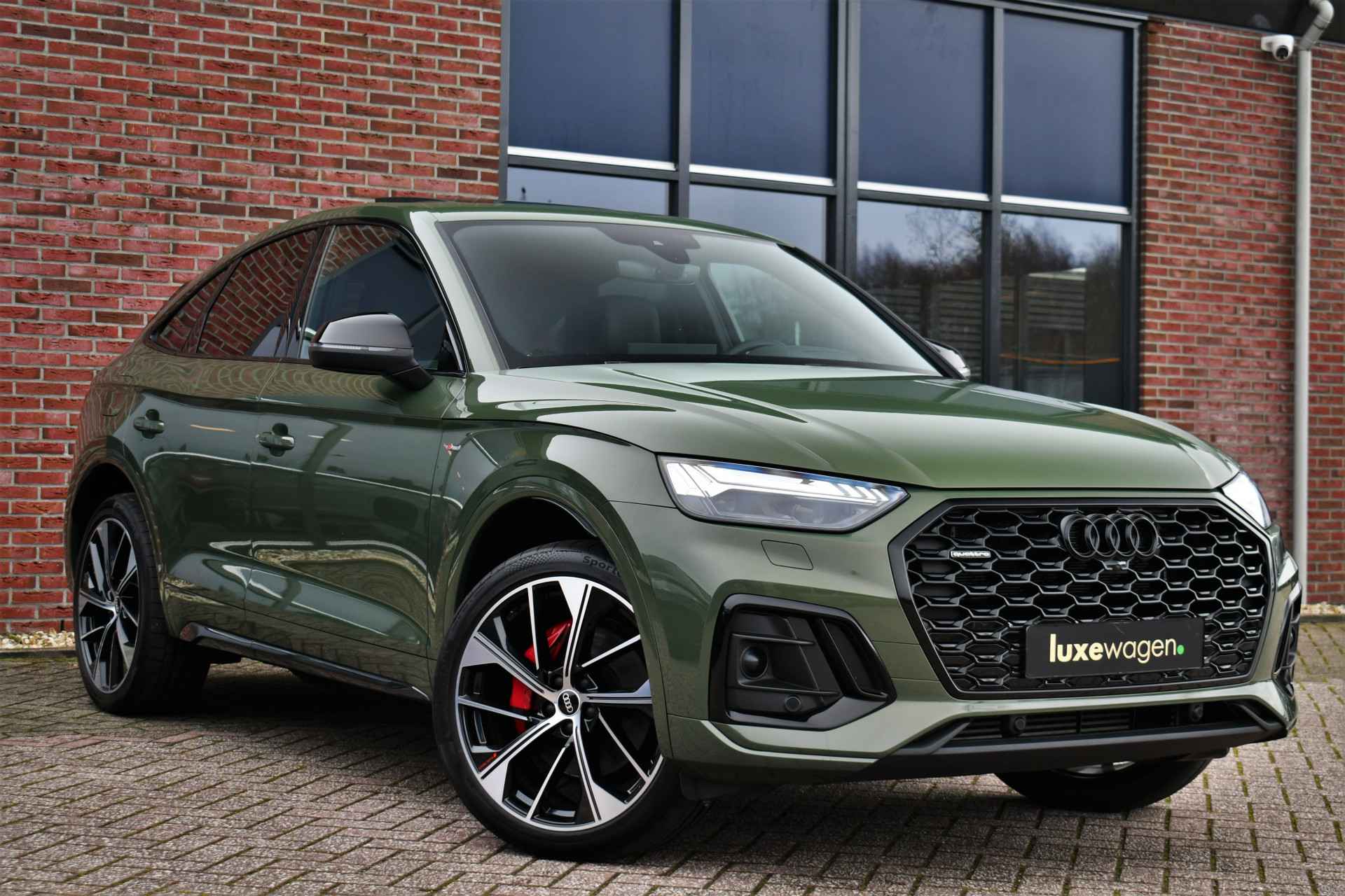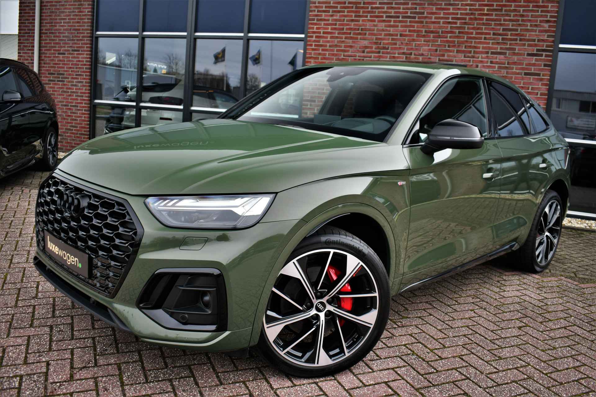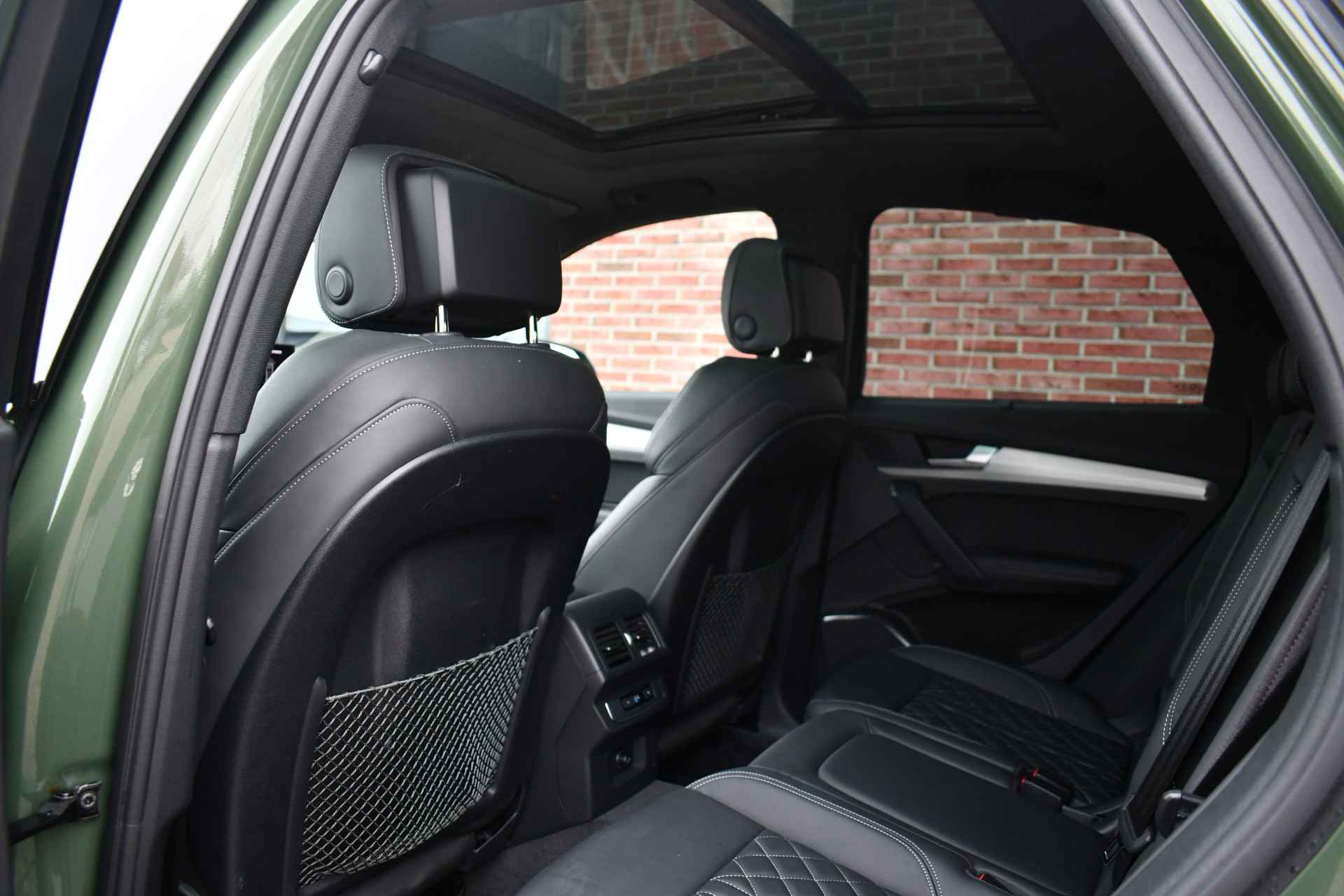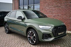 Deze Q5 Sportback - in de Audi Exclusive lak Distrikt Grün - heeft weinig kilometers, is afkomstig van de eerste eigenaar en compleet dealer onderhouden. Compleet met: S-Line exterieur en interieur (S Edition), panoramadak, adaptieve cruise control, elektrisch verstelbare zetels met massage en met geheugen voor de bestuurder, head-up display, elektrische trekhaak, 21 inch originele velgen, etc! BTW-auto.