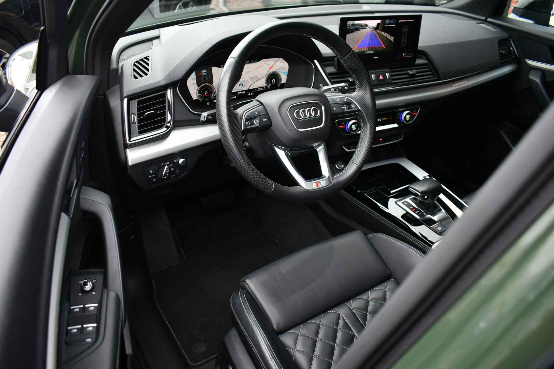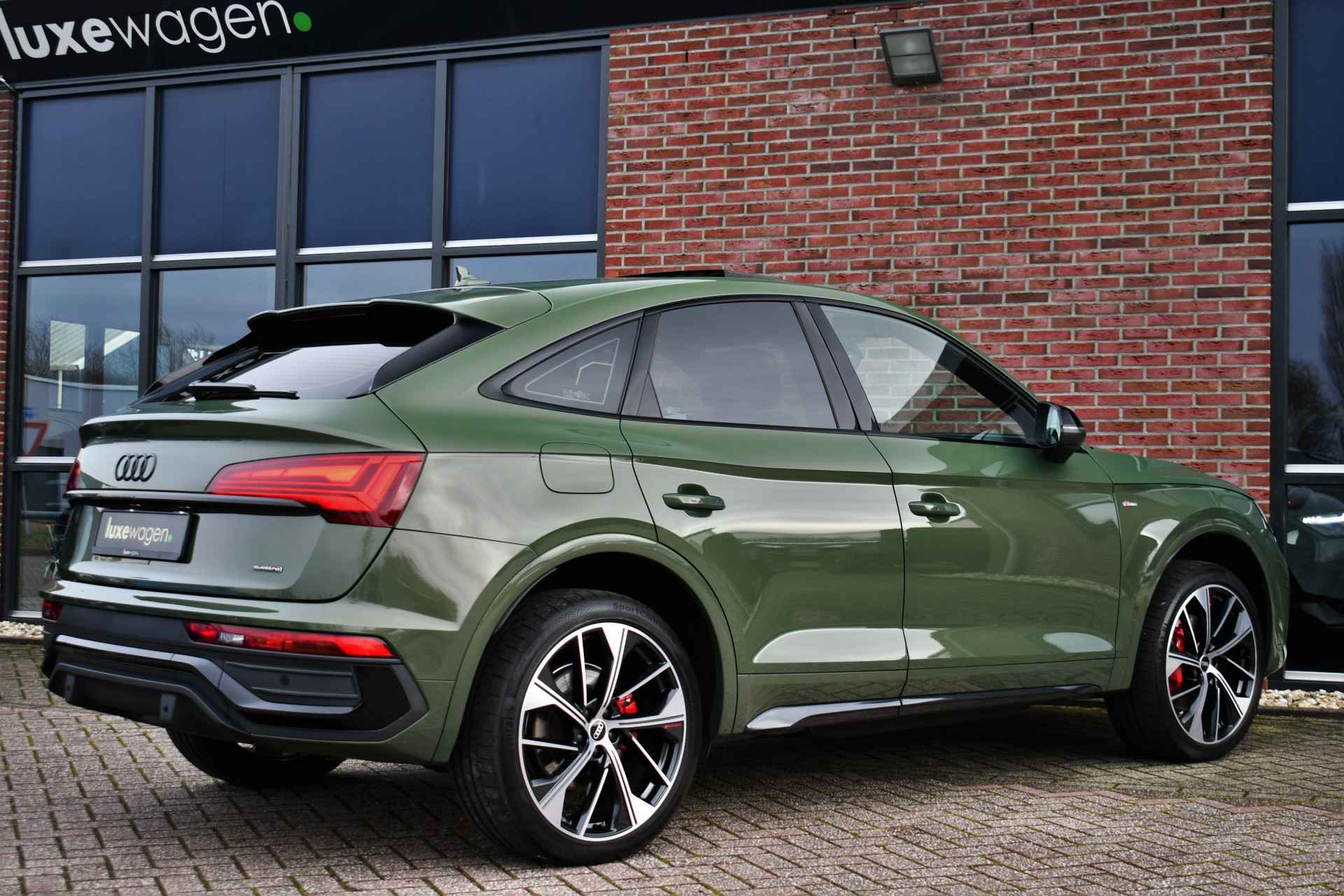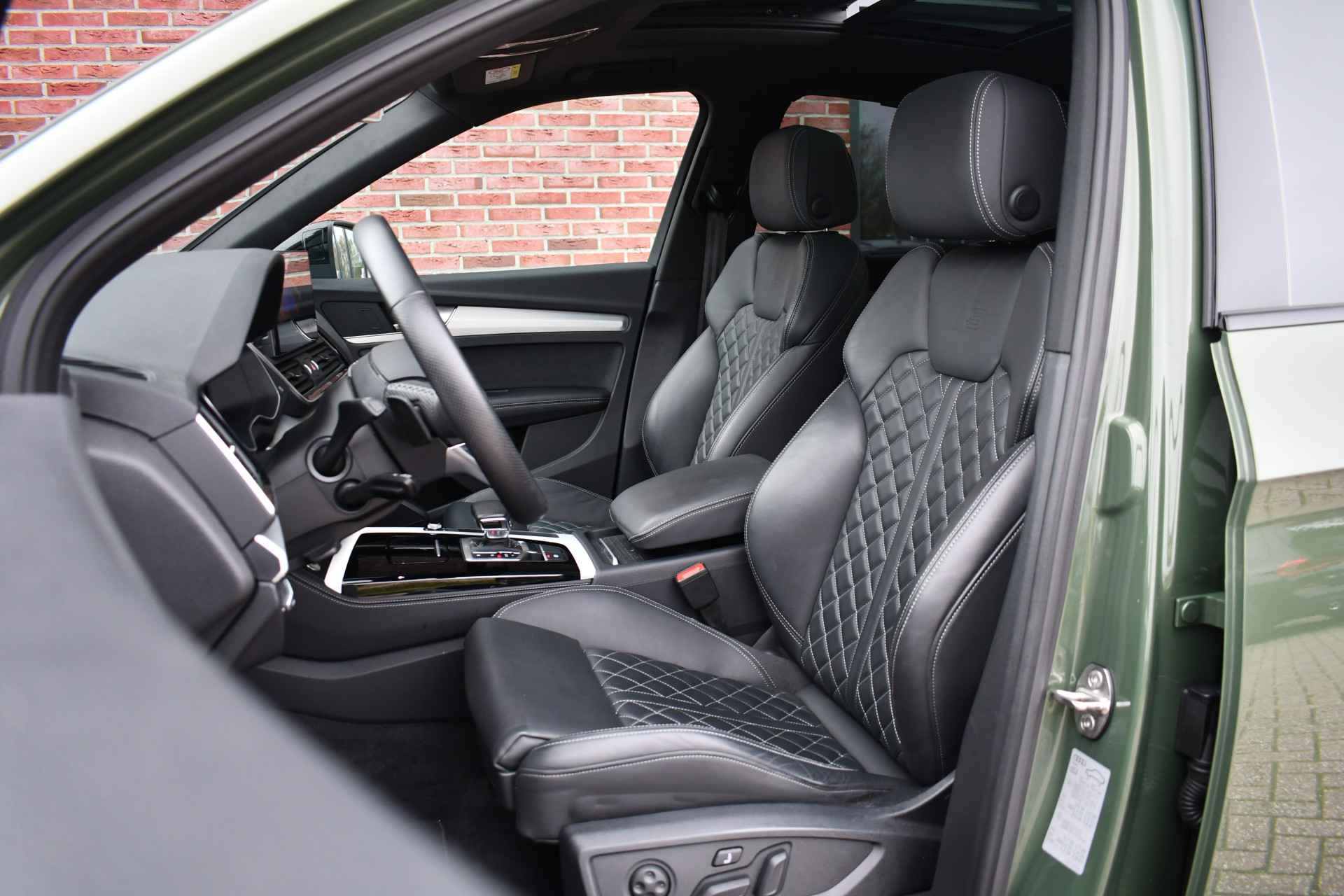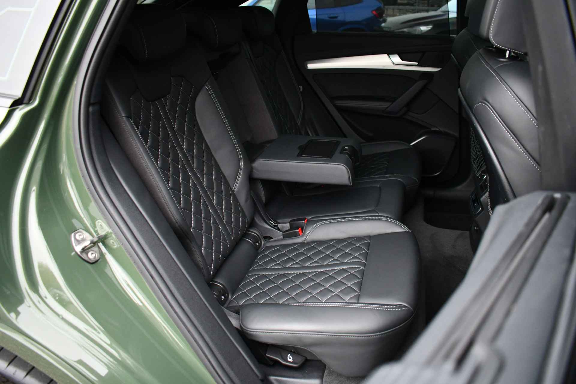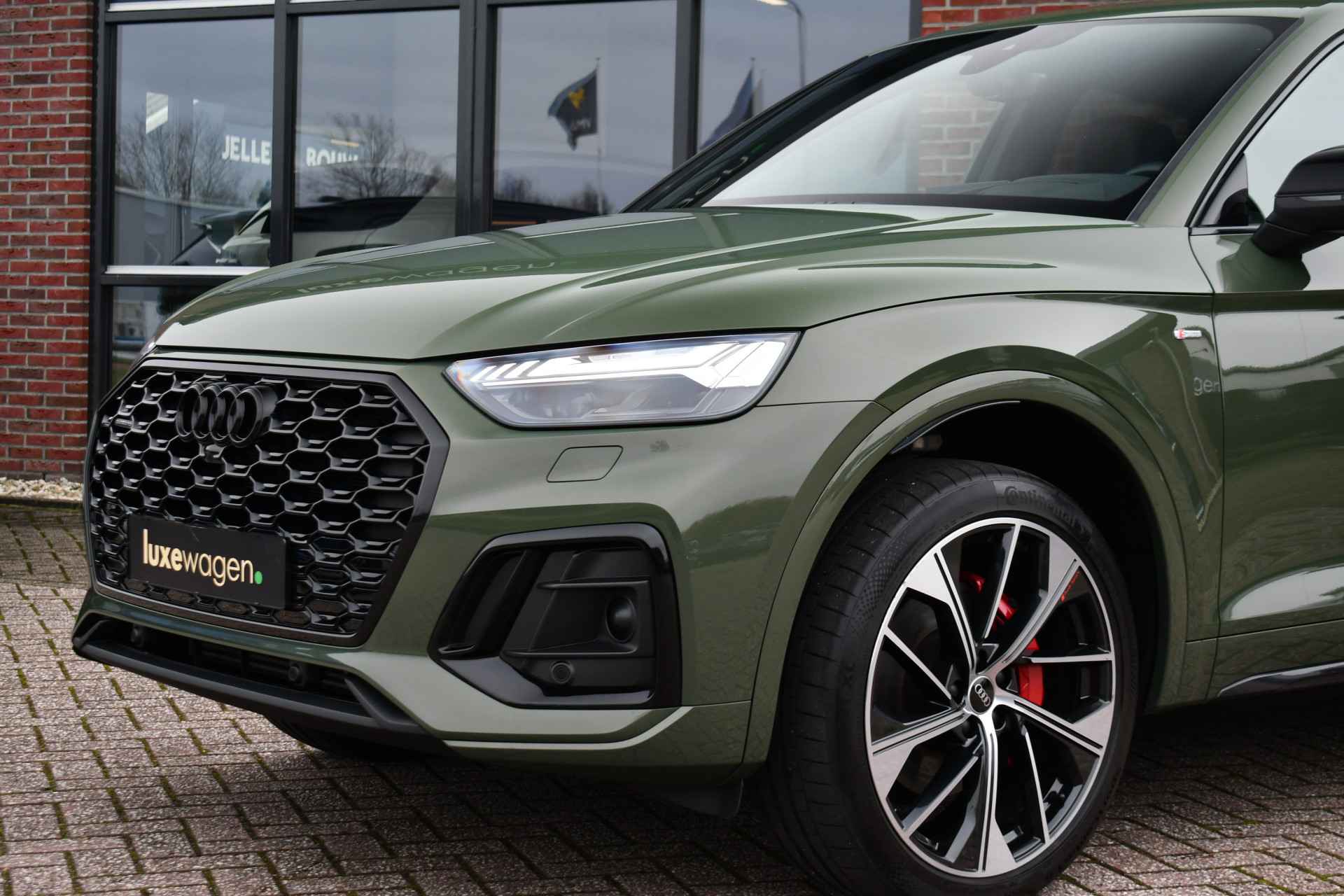 Deze Q5 Sportback - in de Audi Exclusive lak Distrikt Grün - heeft weinig kilometers, is afkomstig van de eerste eigenaar en compleet dealer onderhouden. Compleet met: S-Line exterieur en interieur (S Edition), panoramadak, adaptieve cruise control, elektrisch verstelbare zetels met massage en met geheugen voor de bestuurder, head-up display, elektrische trekhaak, 21 inch originele velgen, etc! BTW-auto.