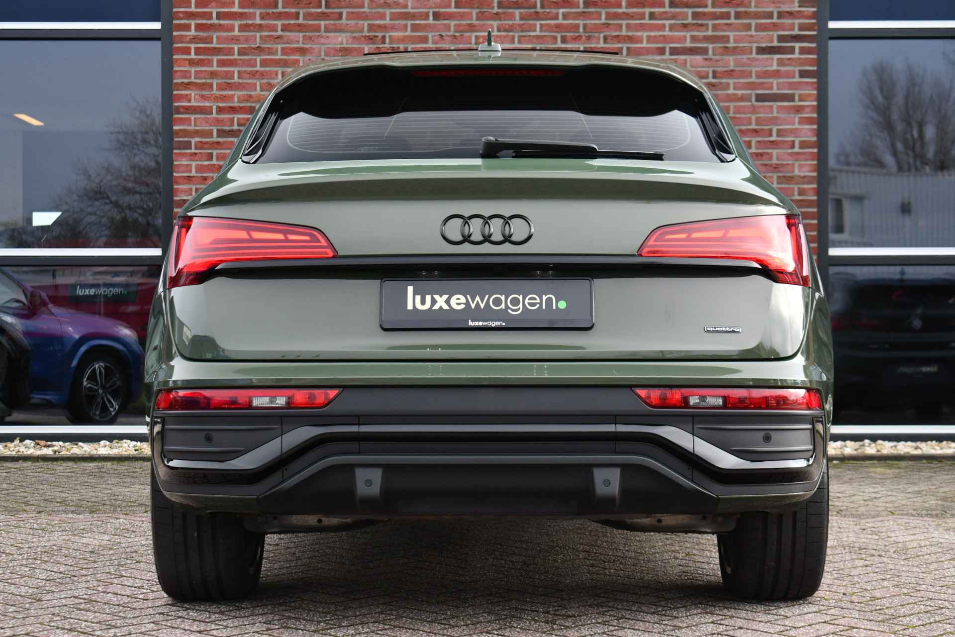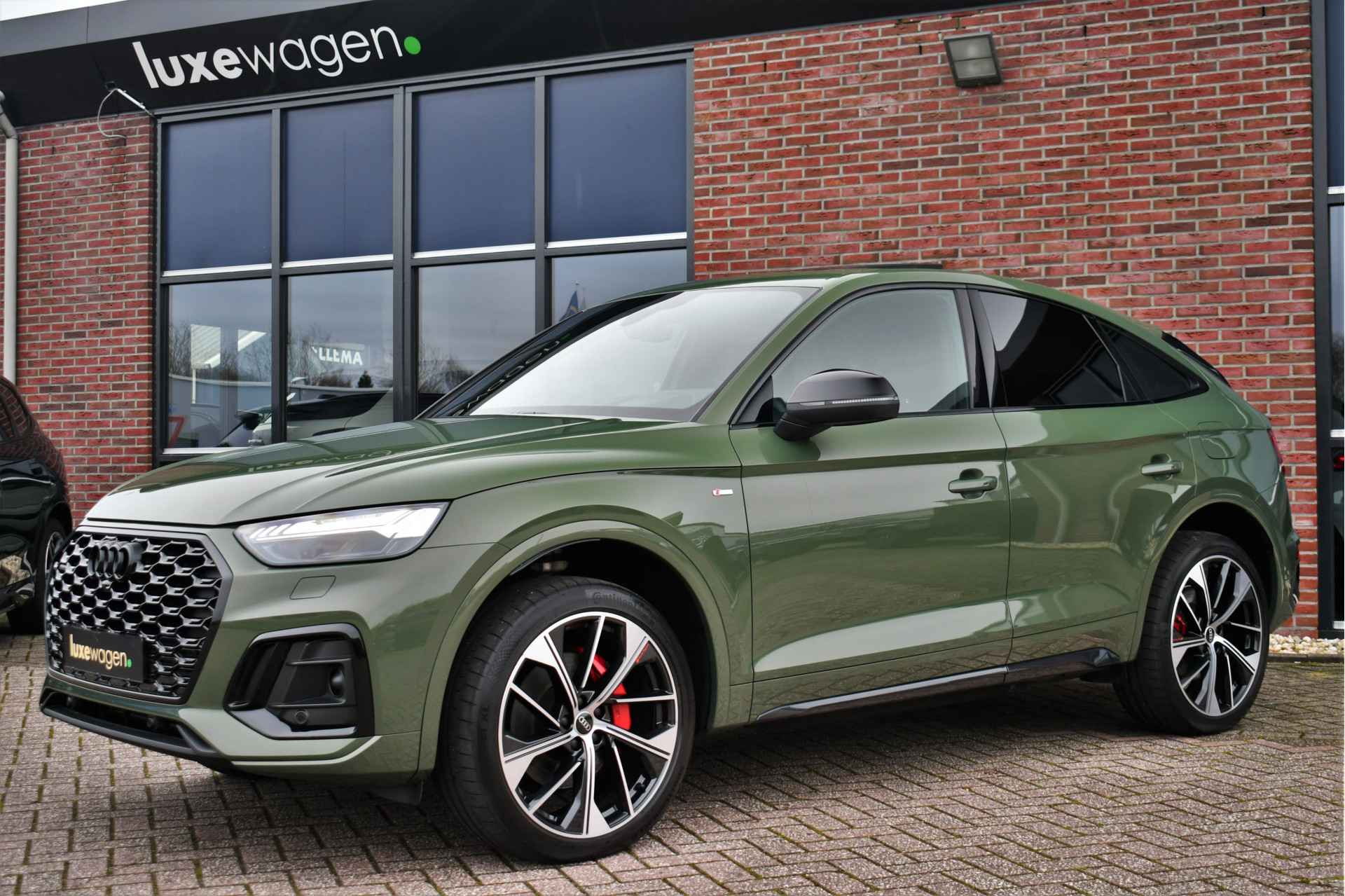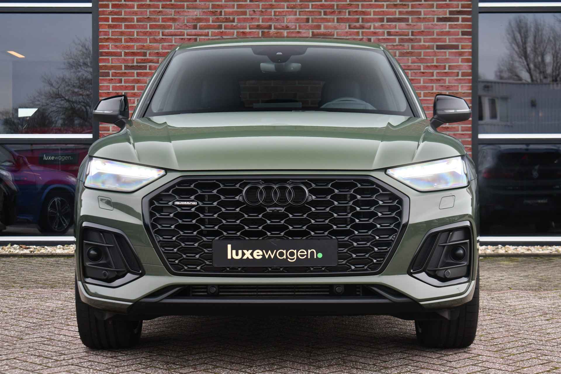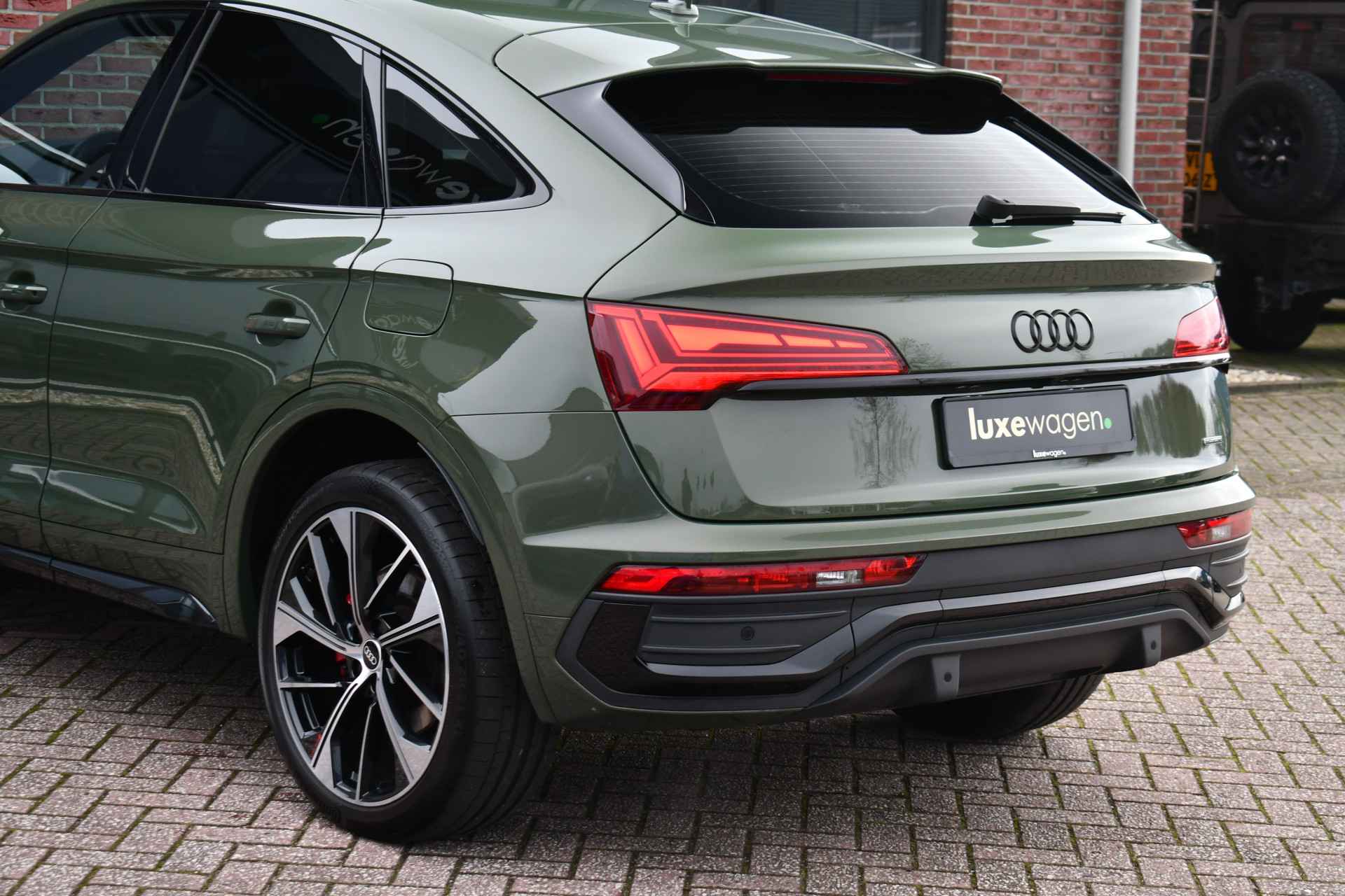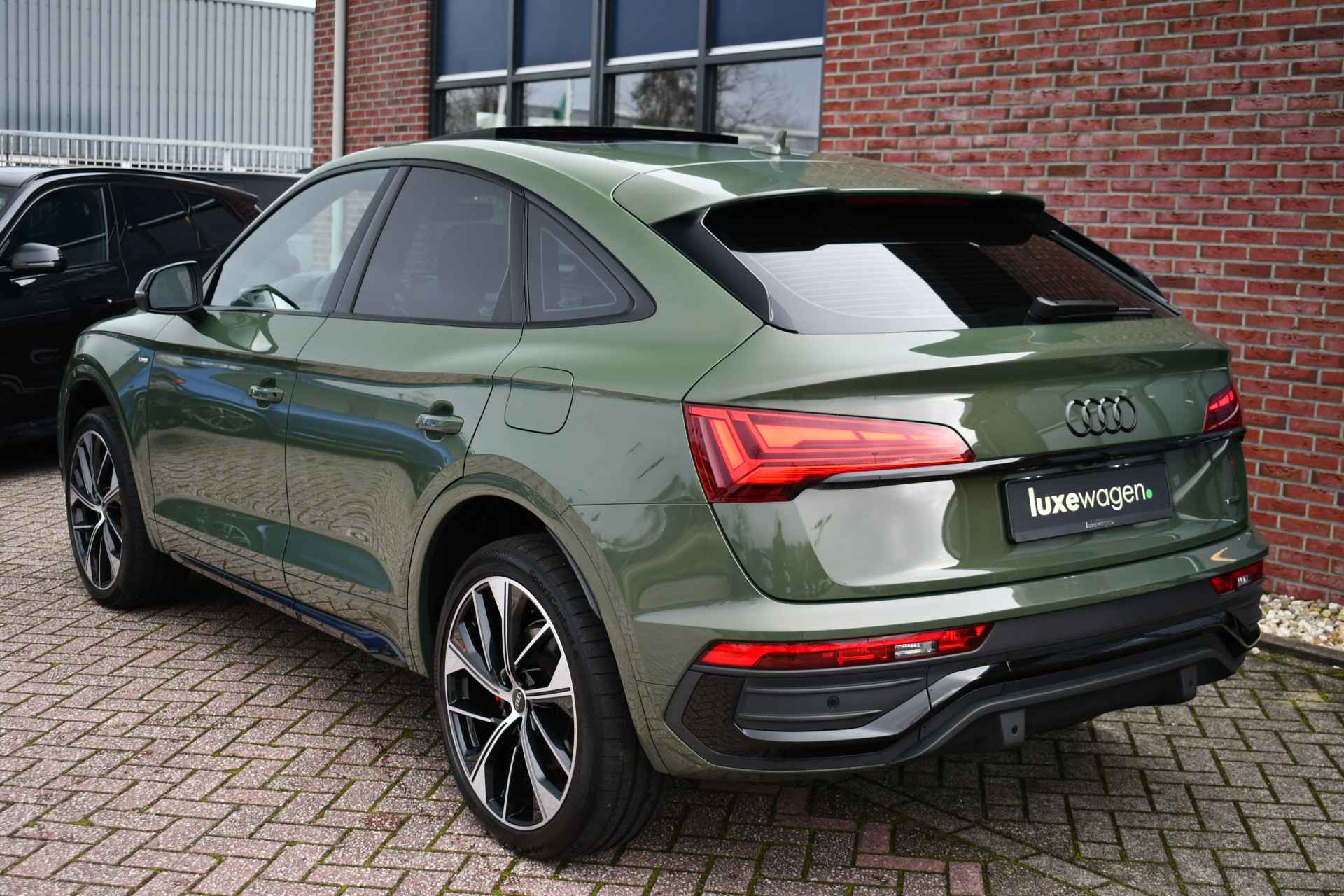 Deze Q5 Sportback - in de Audi Exclusive lak Distrikt Grün - heeft weinig kilometers, is afkomstig van de eerste eigenaar en compleet dealer onderhouden. Compleet met: S-Line exterieur en interieur (S Edition), panoramadak, adaptieve cruise control, elektrisch verstelbare zetels met massage en met geheugen voor de bestuurder, head-up display, elektrische trekhaak, 21 inch originele velgen, etc! BTW-auto.
