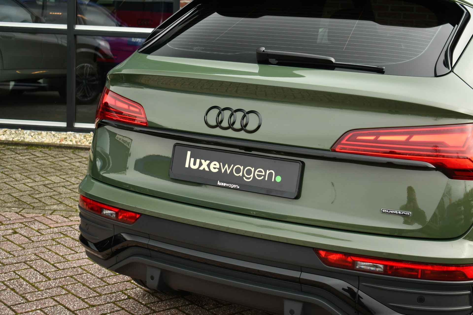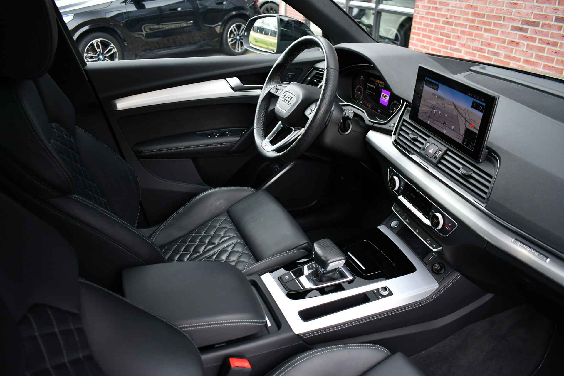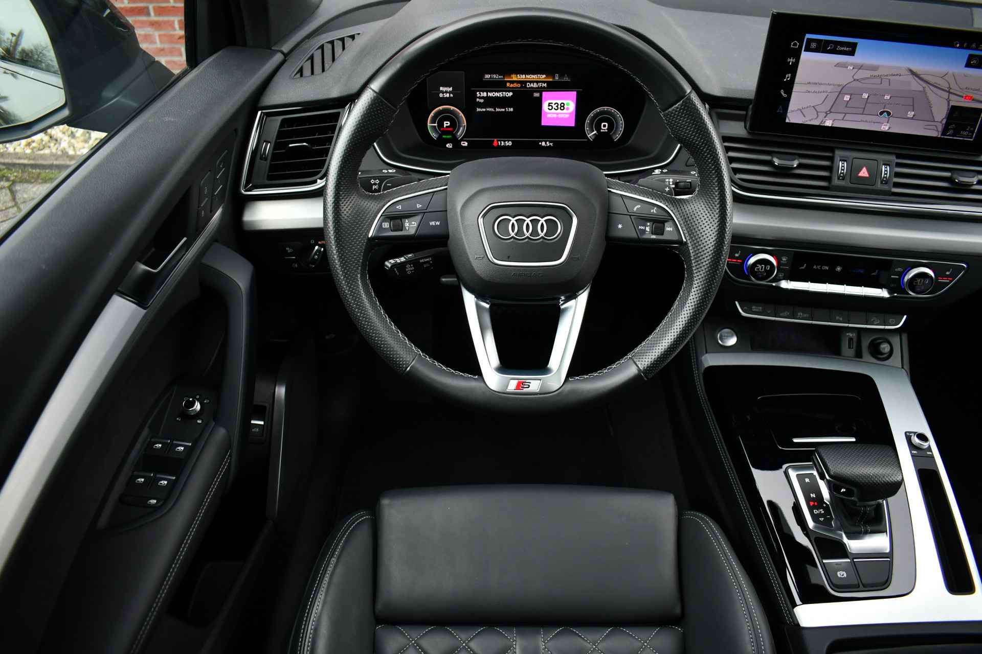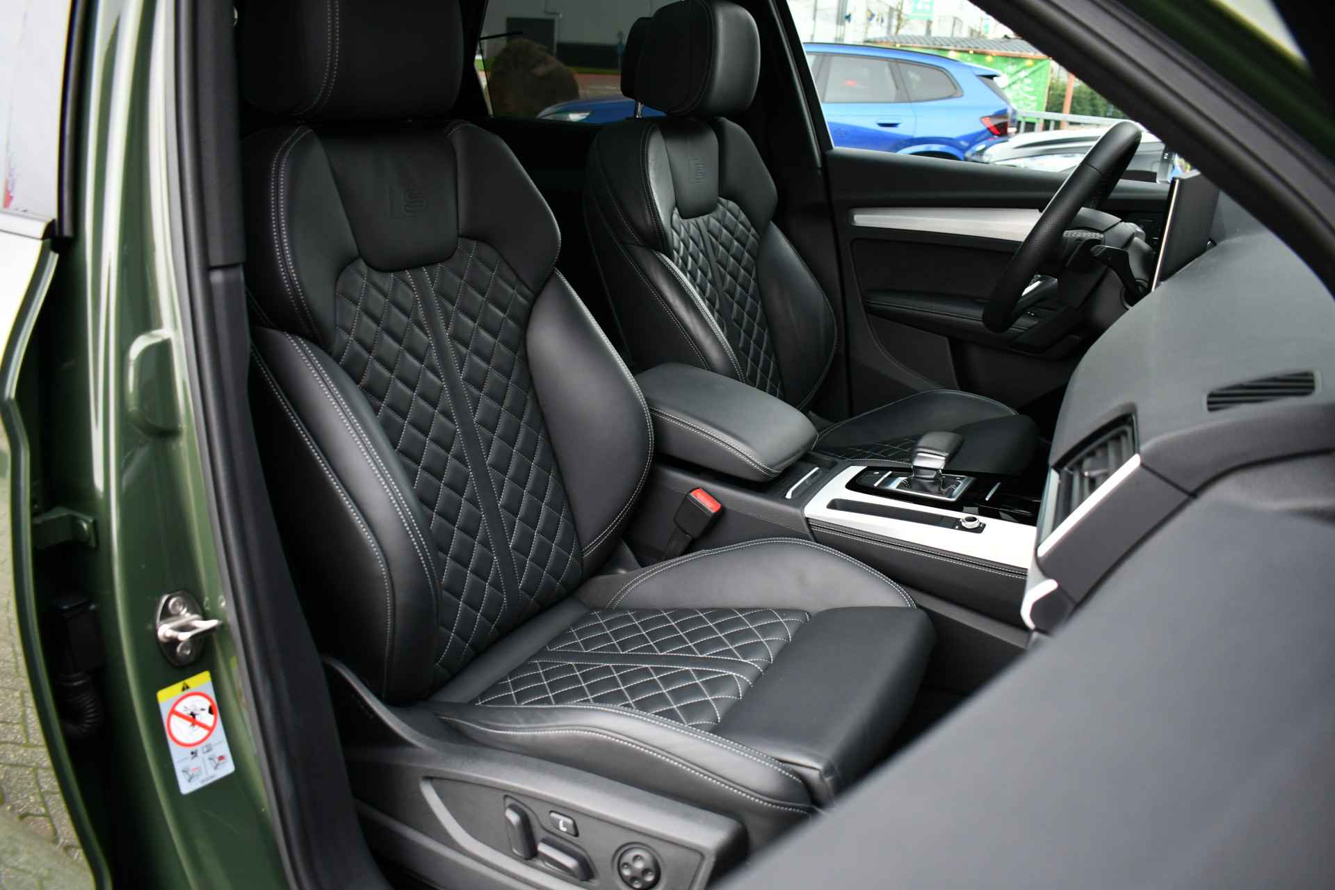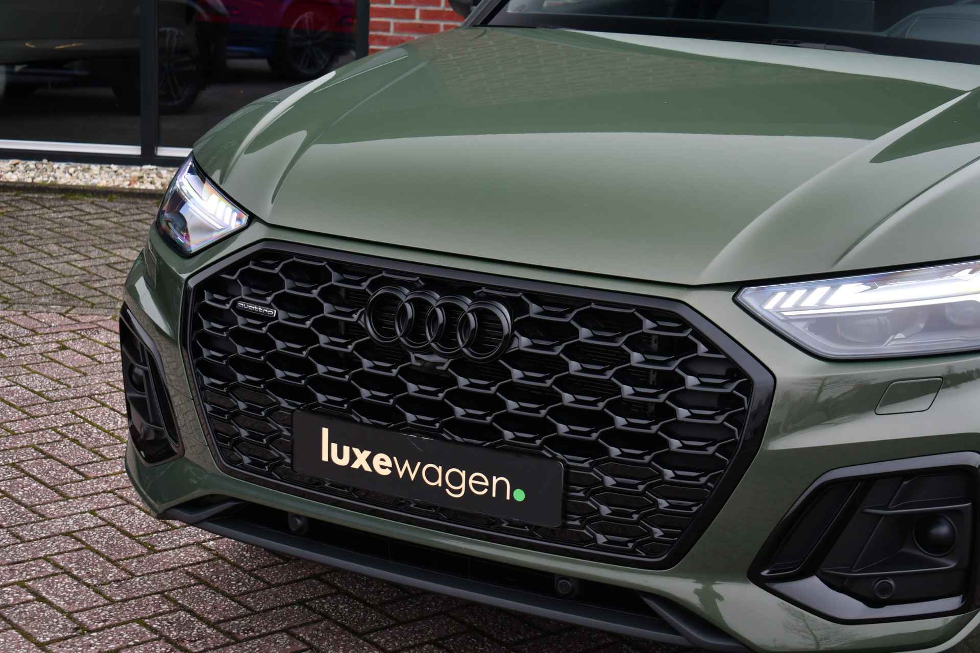 Deze Q5 Sportback - in de Audi Exclusive lak Distrikt Grün - heeft weinig kilometers, is afkomstig van de eerste eigenaar en compleet dealer onderhouden. Compleet met: S-Line exterieur en interieur (S Edition), panoramadak, adaptieve cruise control, elektrisch verstelbare zetels met massage en met geheugen voor de bestuurder, head-up display, elektrische trekhaak, 21 inch originele velgen, etc! BTW-auto.