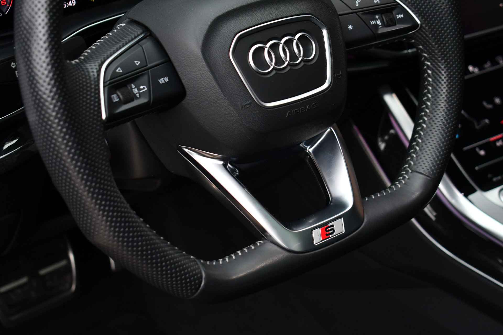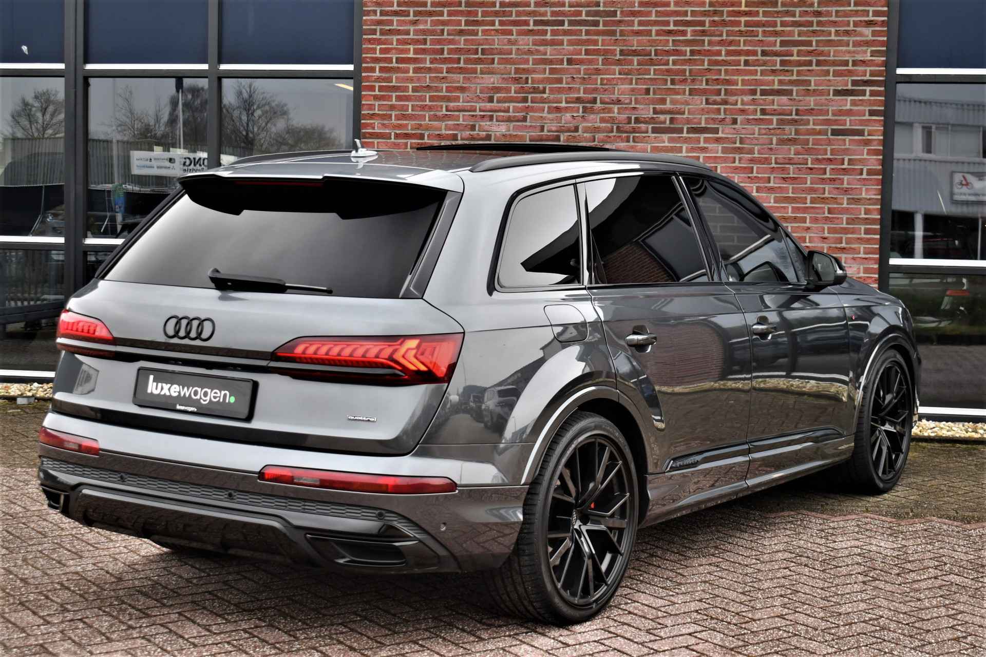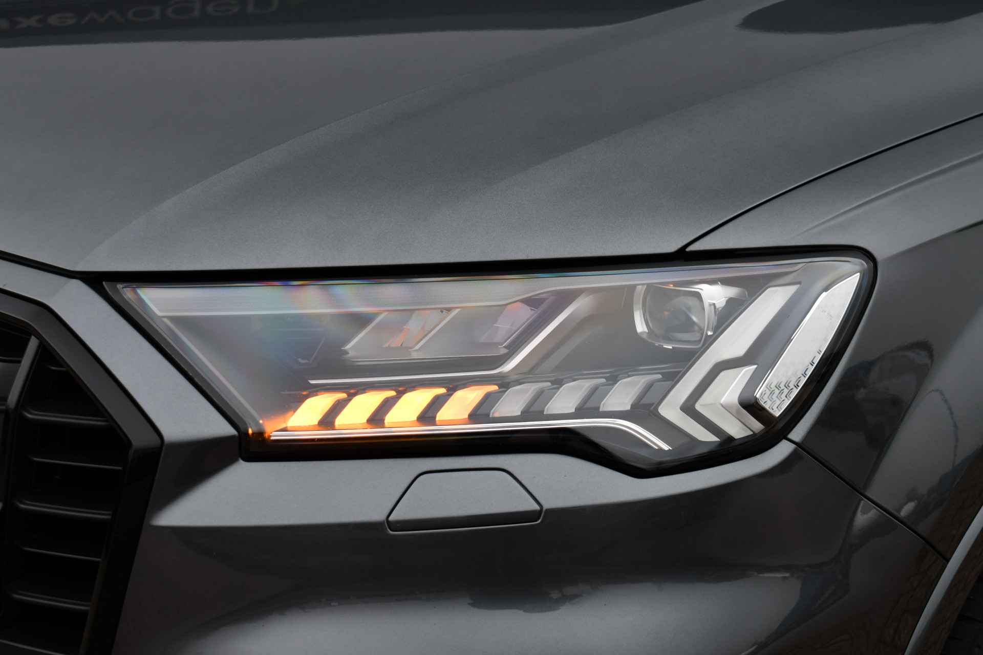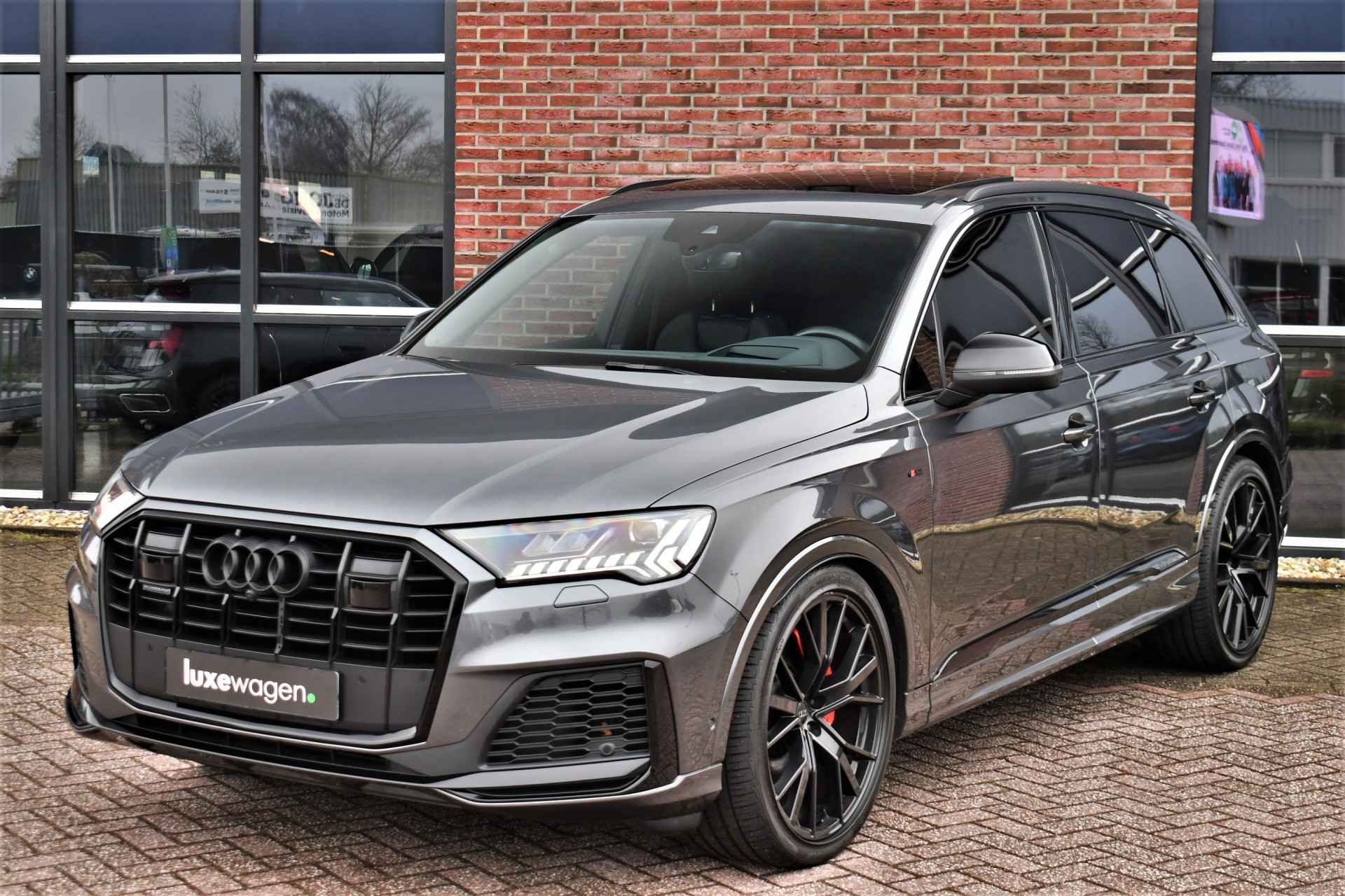 Bijzonder luxe Q7 50 TDI met 7 zitplaatsen en keurig dealeronderhouden. Compleet met: S-Line exterieur en interieur, panoramadak, luchtvering, nappa lederen bekleding met ruitstiksel. adaptieve cruise control, voorstoelen elektrisch verstelbaar (1x memory), 4x stoelverwarming, meesturende achteras, head-up display, BOSE audio, 22 inch wielen, glanspakket / optic black, standkachel met afstandbediening, etc!
