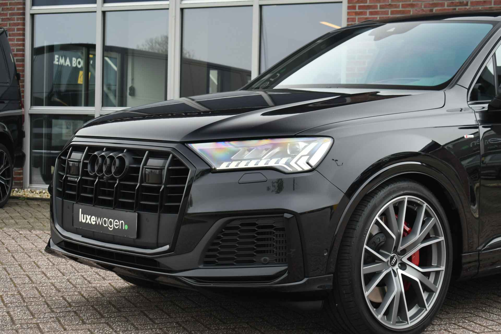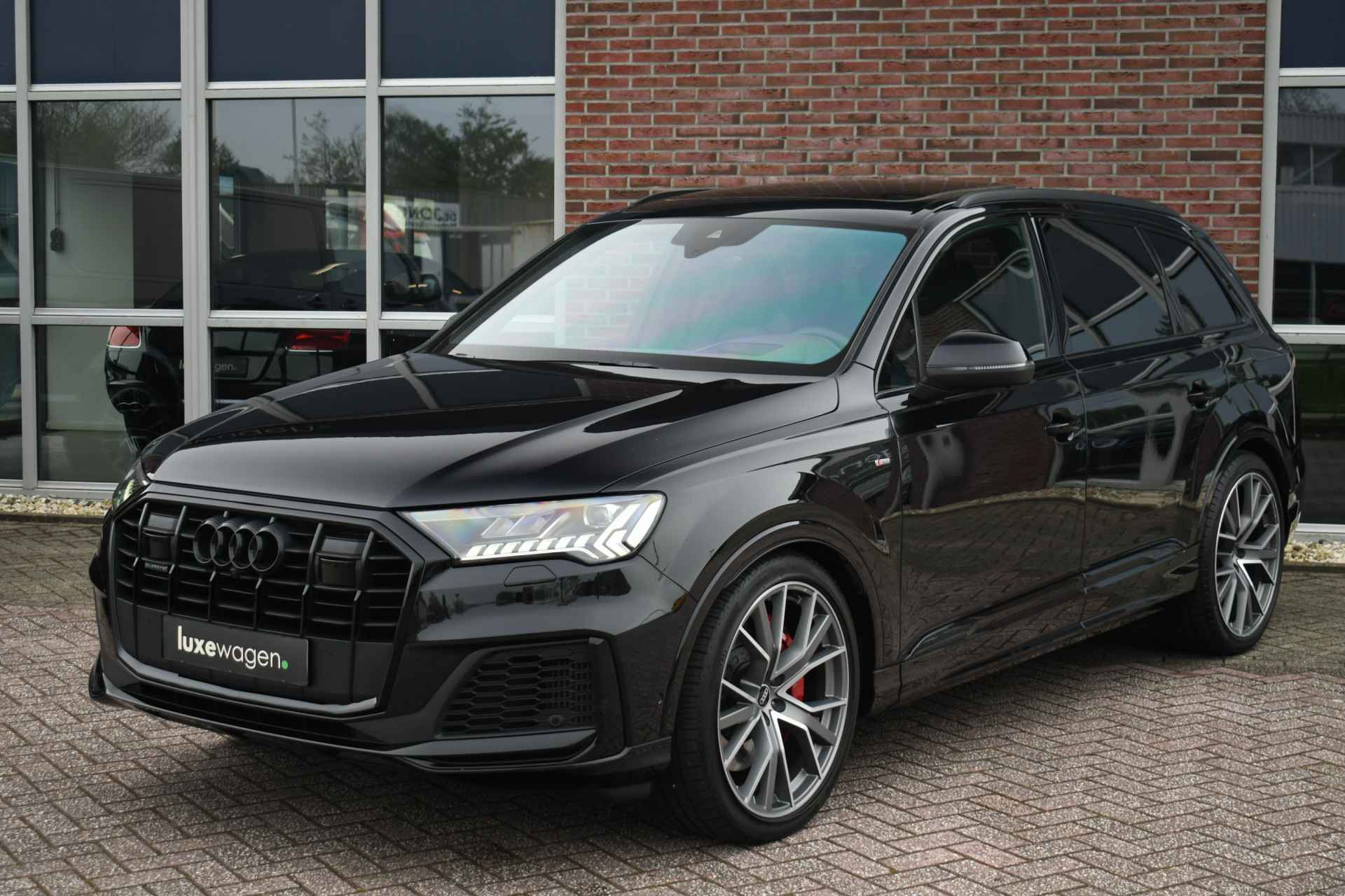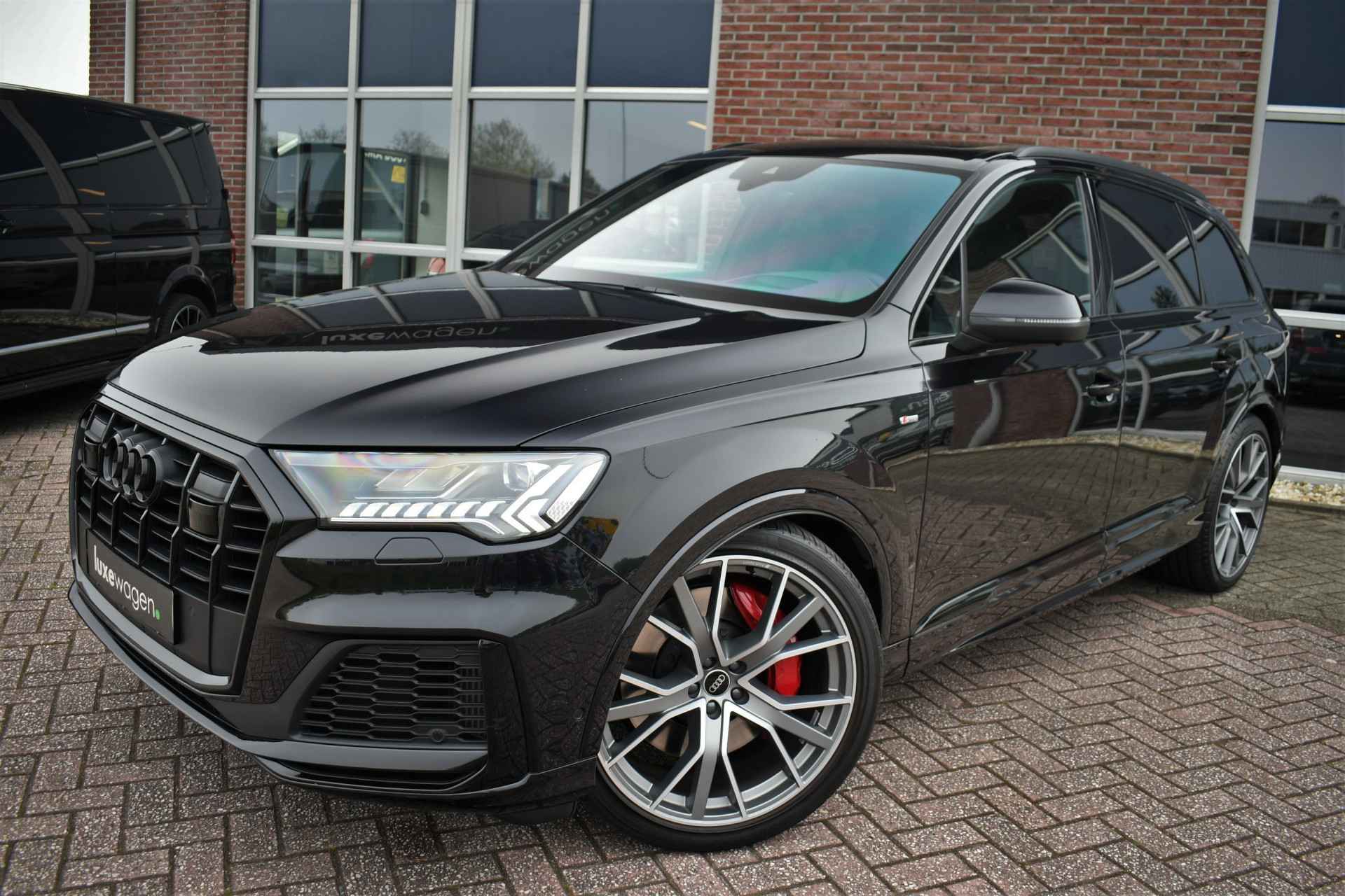 Prijs is rijklaar inclusief 12 maand BOVAG garantie en inruilen is altijd mogeijk. Geen afleveringskosten of 'internet meeneemprijzen'! Perfect uitgevoerde hybride Q7, met o.a.: panoramadak, 22 inch originele Audi velgen, S-zetels met ruitstiksel, elektrische trekhaak, head-up display(!), adaptieve cruise control, bang & olufsen audio, 360 graden (top view) camerasysteem, compleet optic black, etc! Compleet dealer onderhouden en afkomstig van de eerste eigenaar.