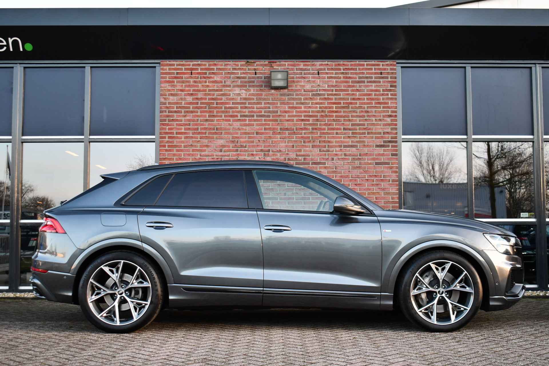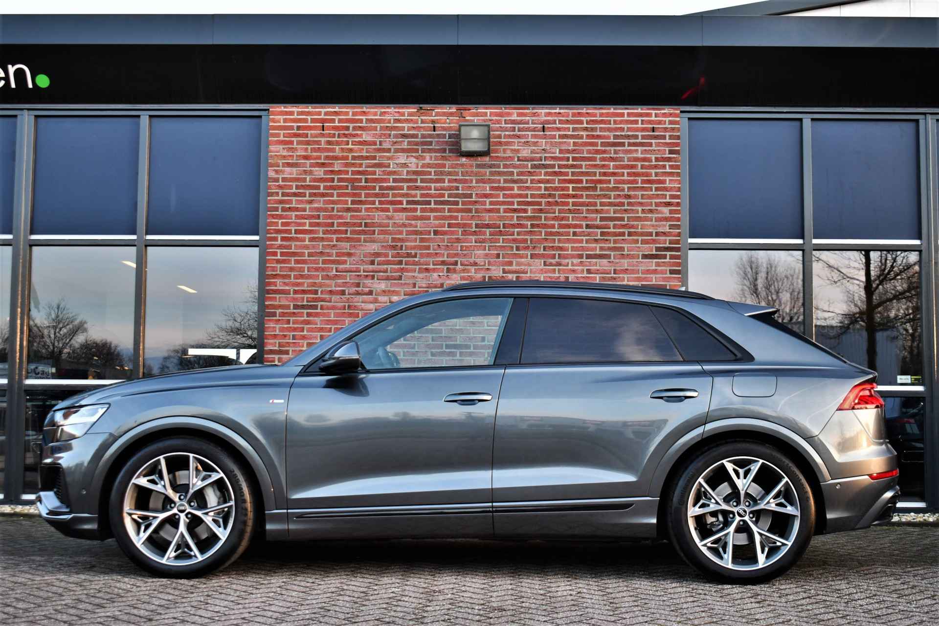 Zeer nette Q8, afkomstig van de eerste eigenaar en dealer onderhouden. Compleet met: S-Line interieur en exterieur, panoramadak, adaptieve cruise control, bang & olufsen audio, 22 inch velgen, glanspakket zwart (black optic), stuurwiel- en achterbankverwarming, etc!