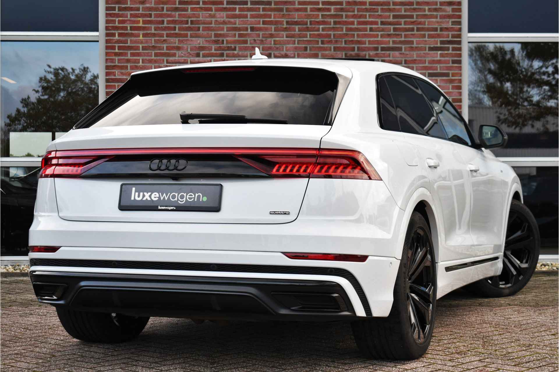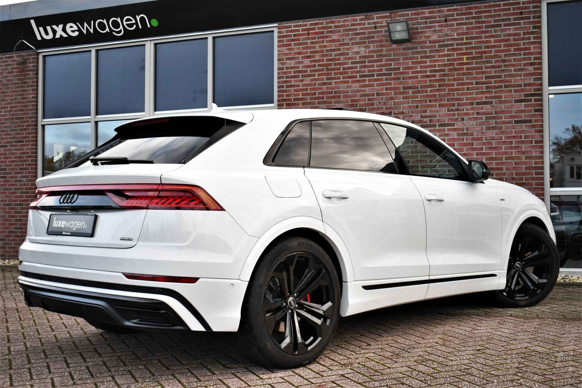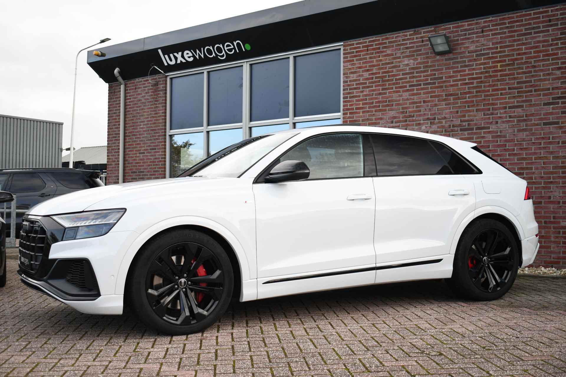 Deze Q8 is helemaal vol opties: S-Line interieur, exterieur en onderstel(luchtvering), panoramadak, head-up display, Bang & Olufsen, 360 graden camera, elektrische trekhaak, adaptieve cruise control, soft-close, matrix-LED, 22 inch zwarte velgen, optic black incl logo's, luchtvering, etc!