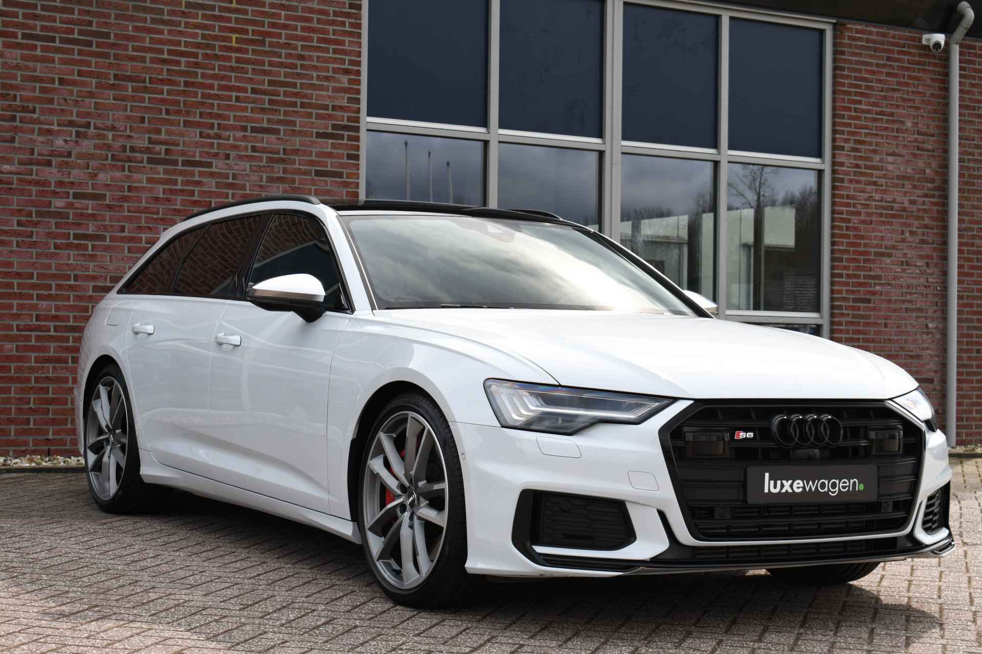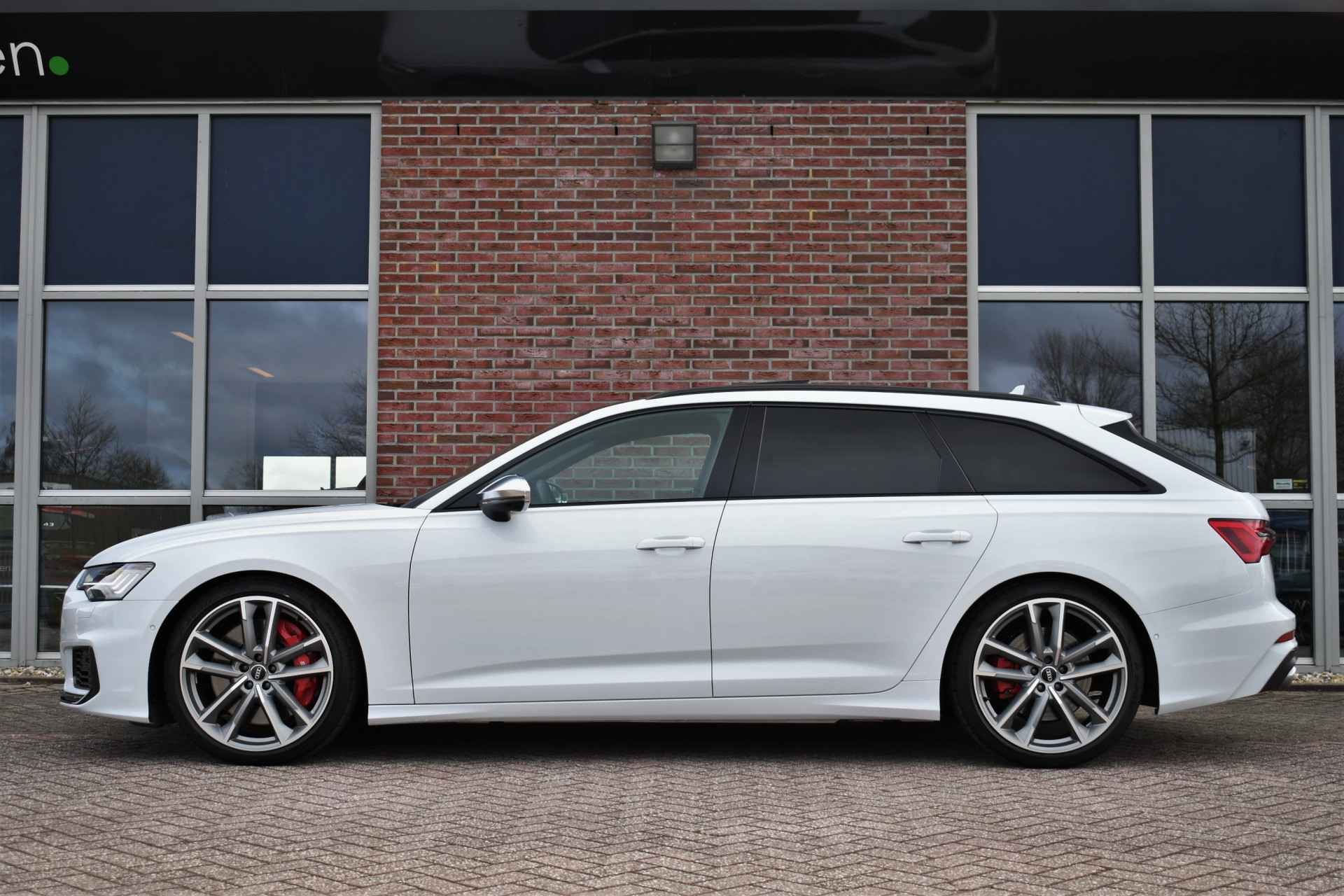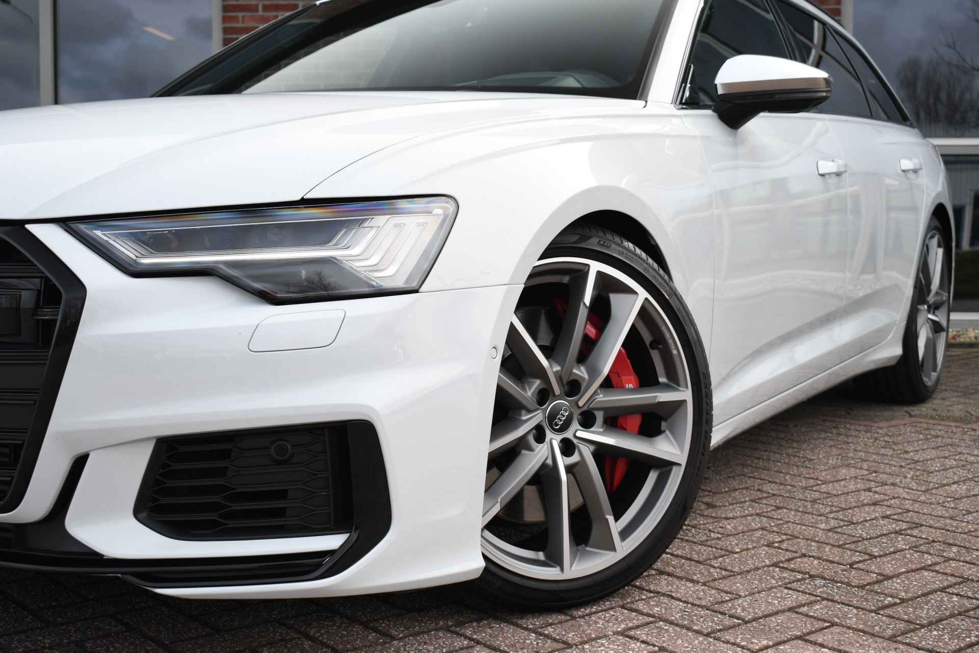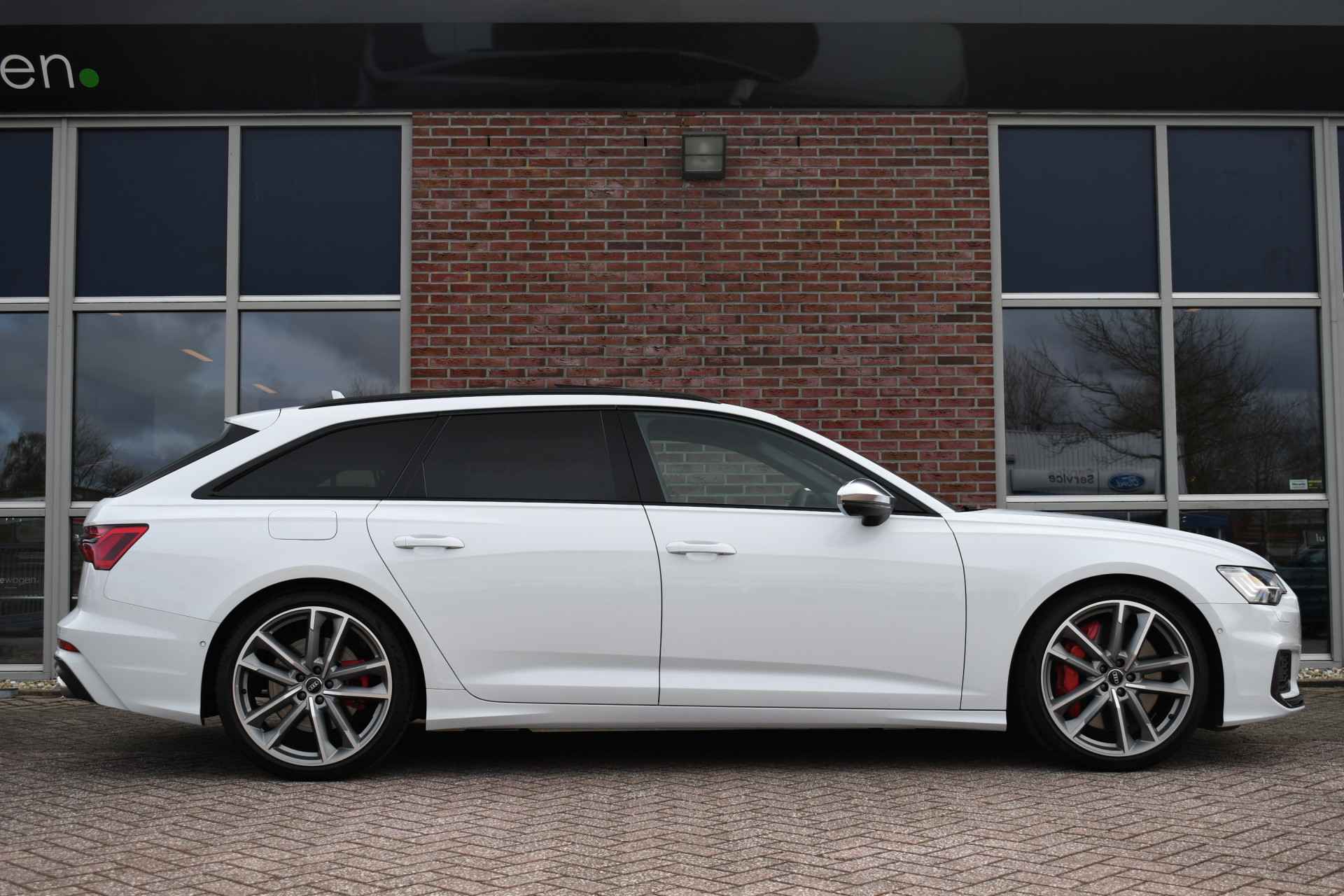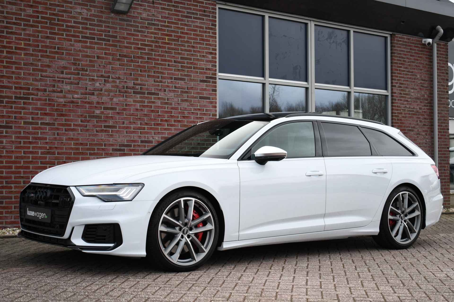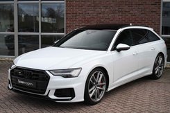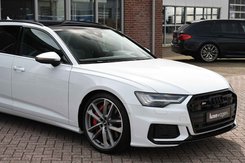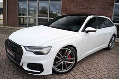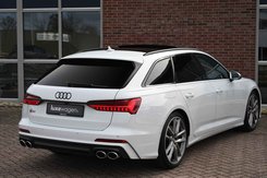 Bomvolle Audi S6 Avant 350pk TDI quattro in het Gletsjer (parelmoer) wit. Compleet met panoramadak, luchtvering, s-zetels met ruitstiksel, head-up display, 3D-camera's, 4-wielbesturing, standkachel, 21 inch velgen, etc, etc! Nieuwprijs eur. 140.395,- (NL)