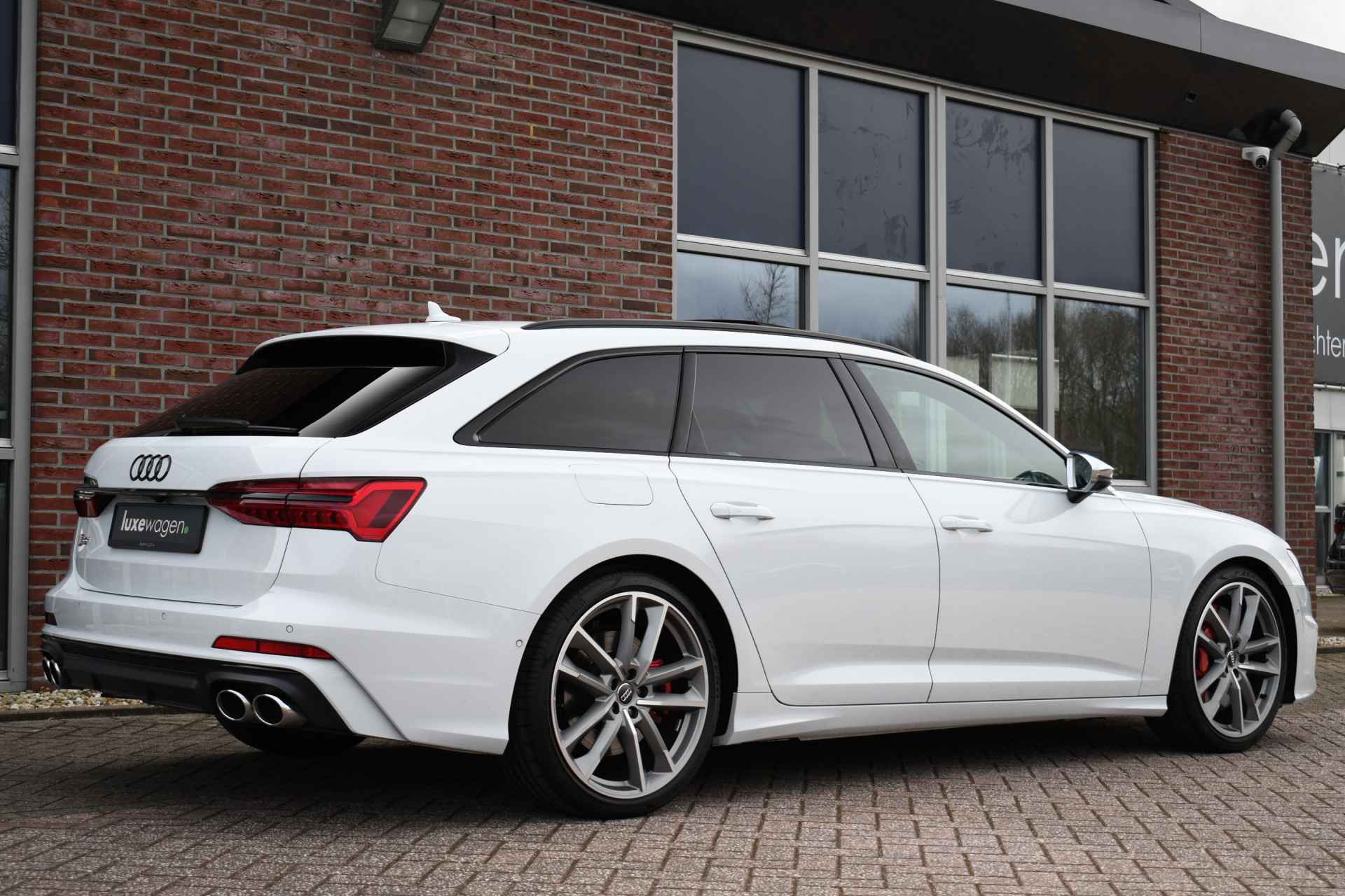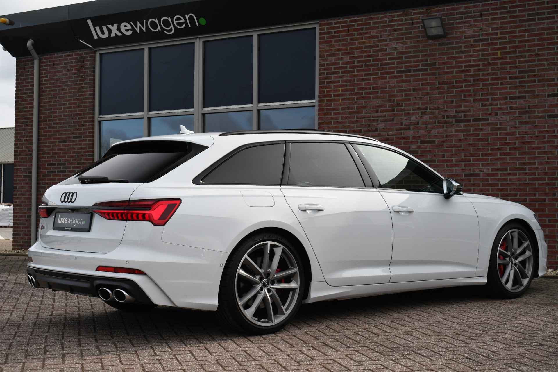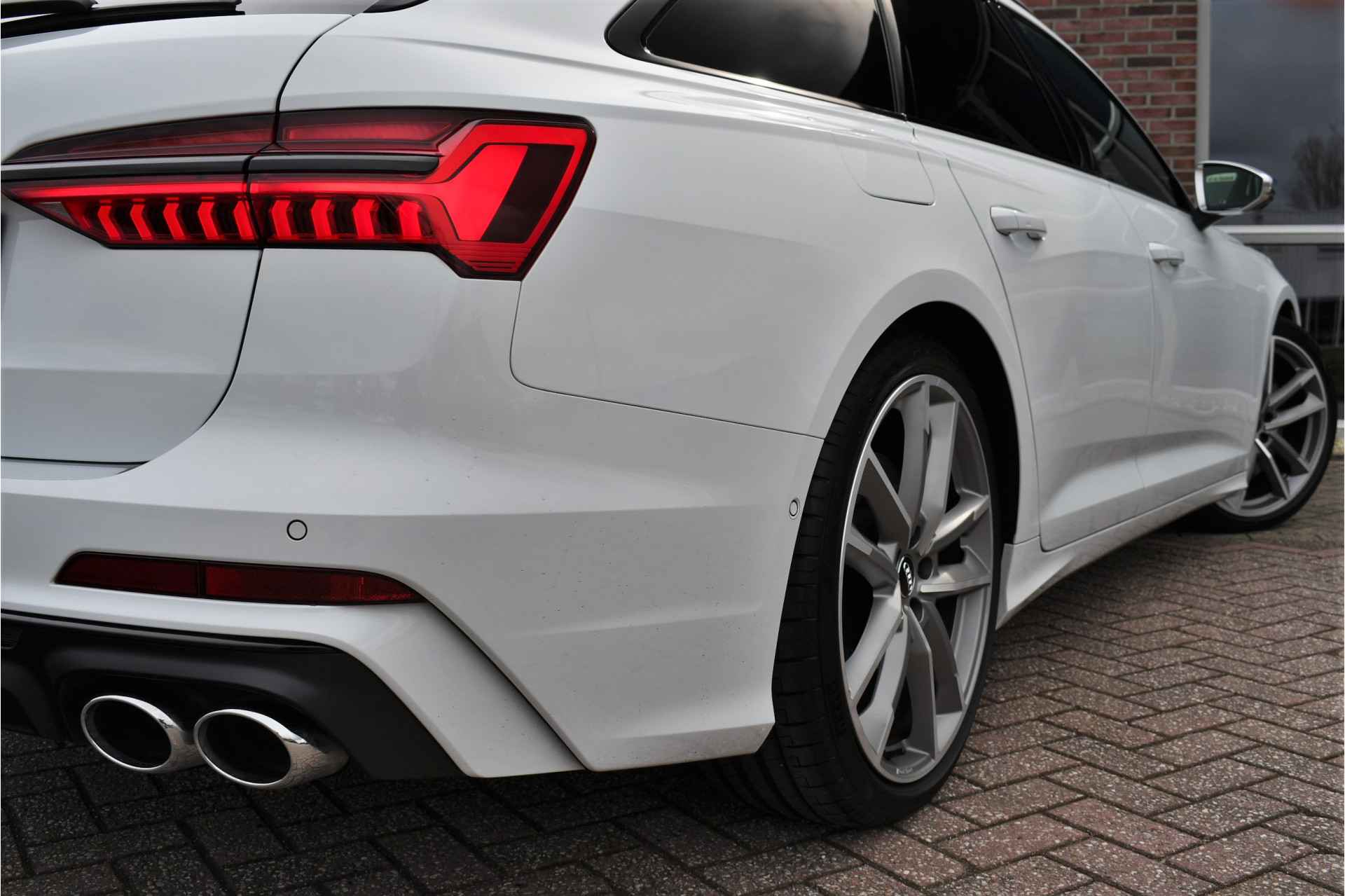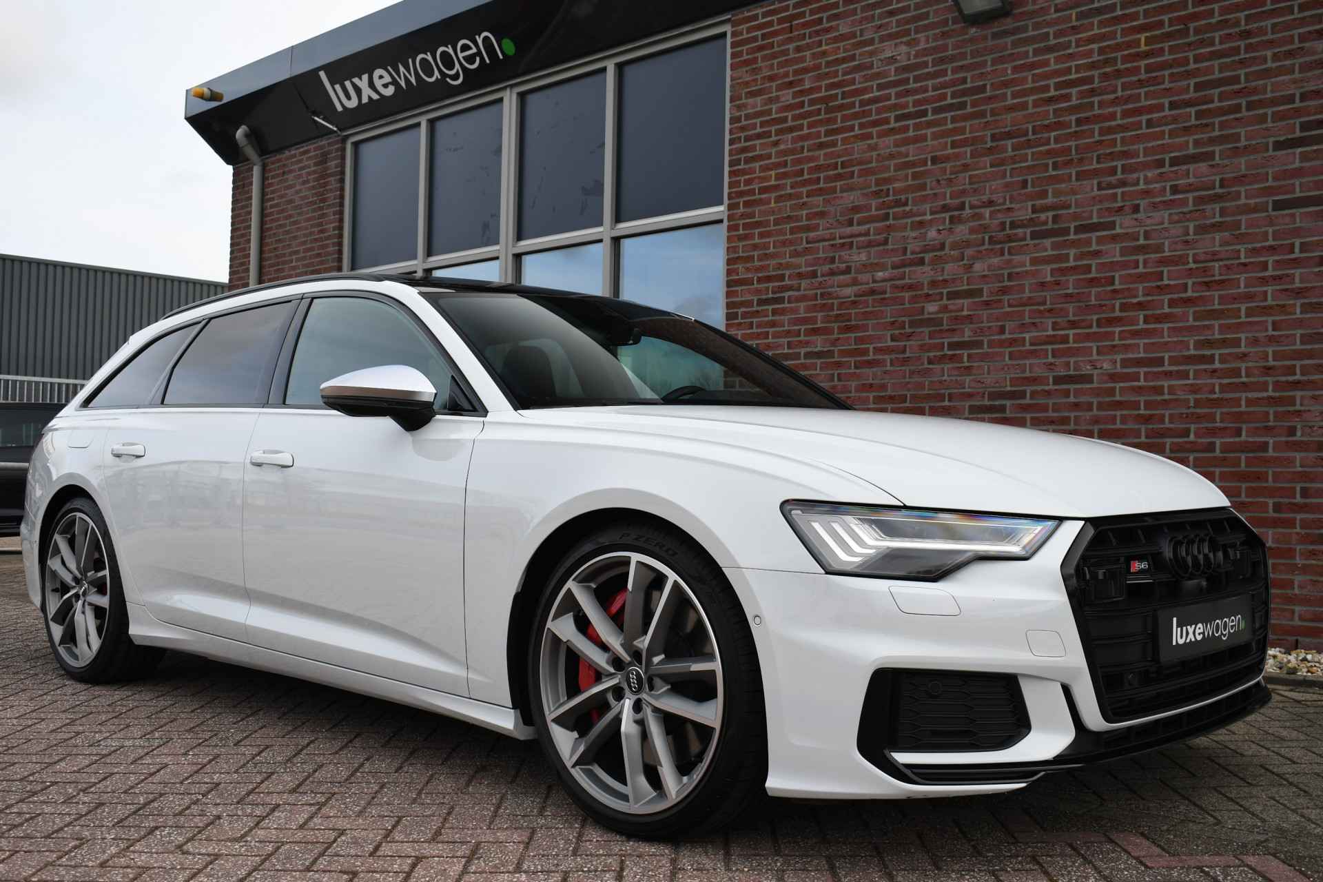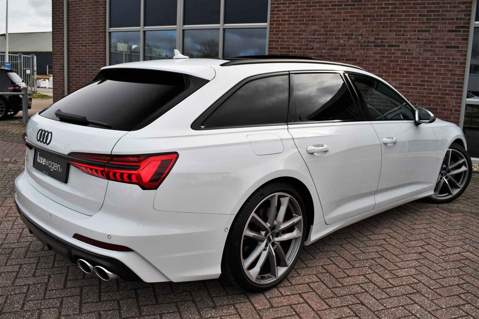 Bomvolle Audi S6 Avant 350pk TDI quattro in het Gletsjer (parelmoer) wit. Compleet met panoramadak, luchtvering, s-zetels met ruitstiksel, head-up display, 3D-camera's, 4-wielbesturing, standkachel, 21 inch velgen, etc, etc! Nieuwprijs eur. 140.395,- (NL)