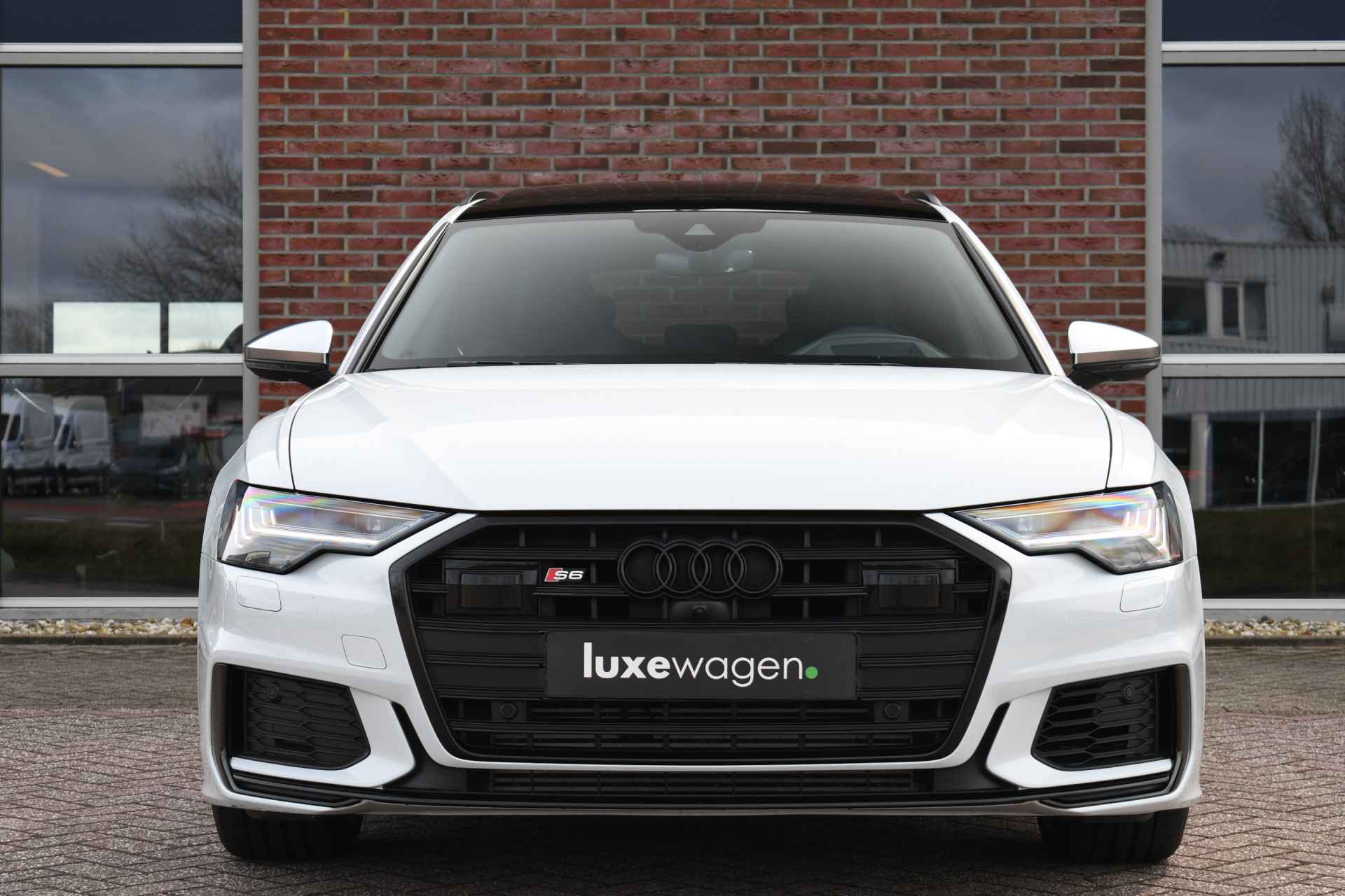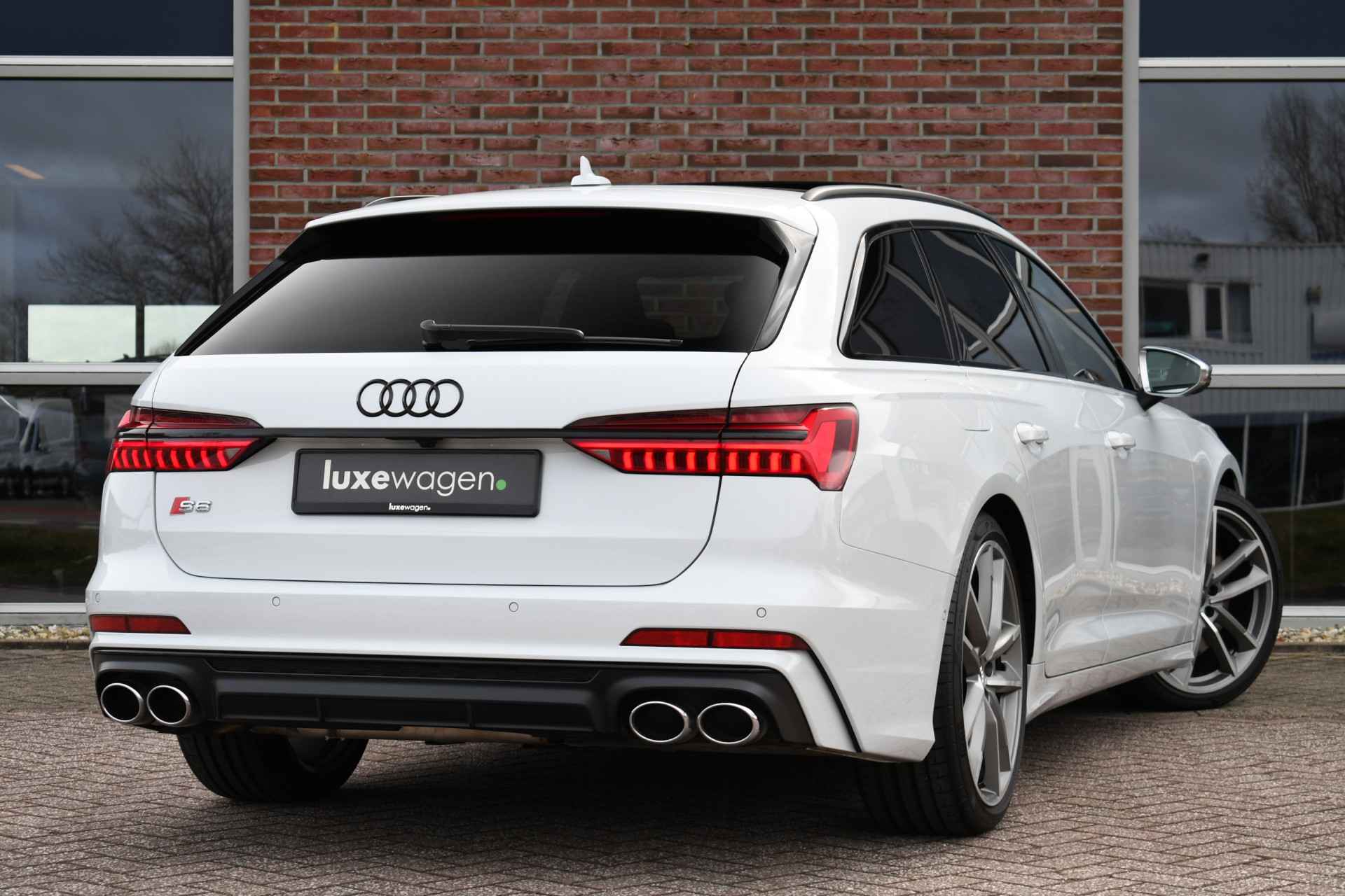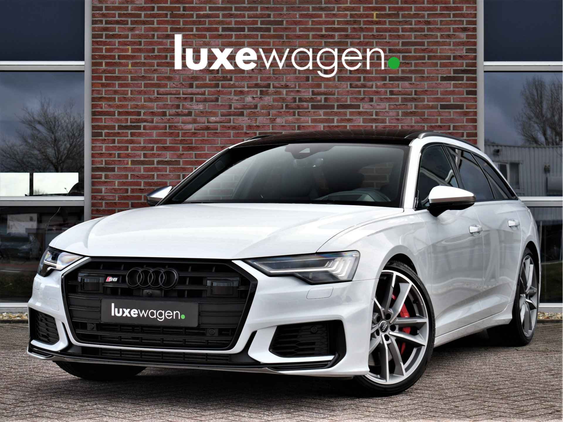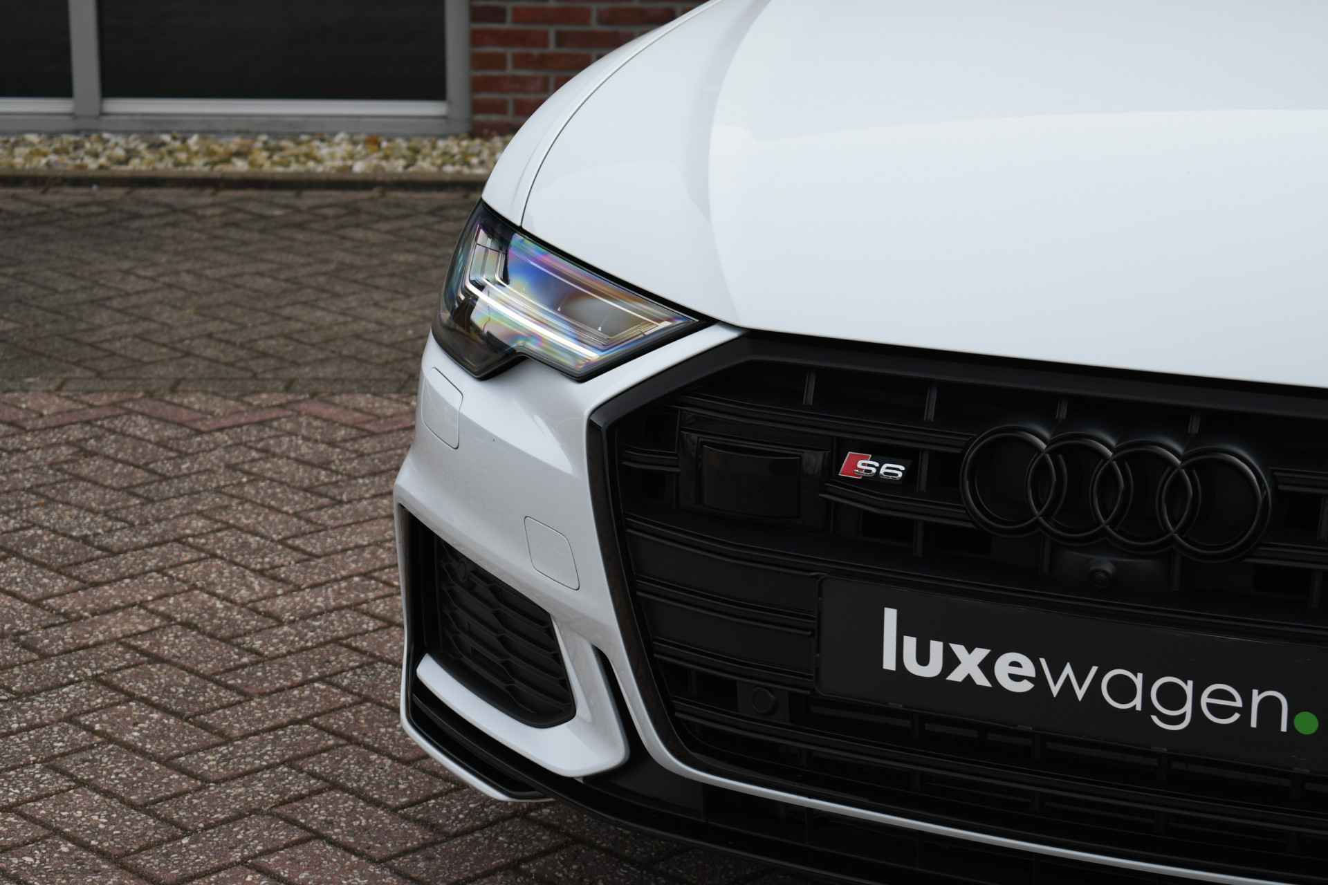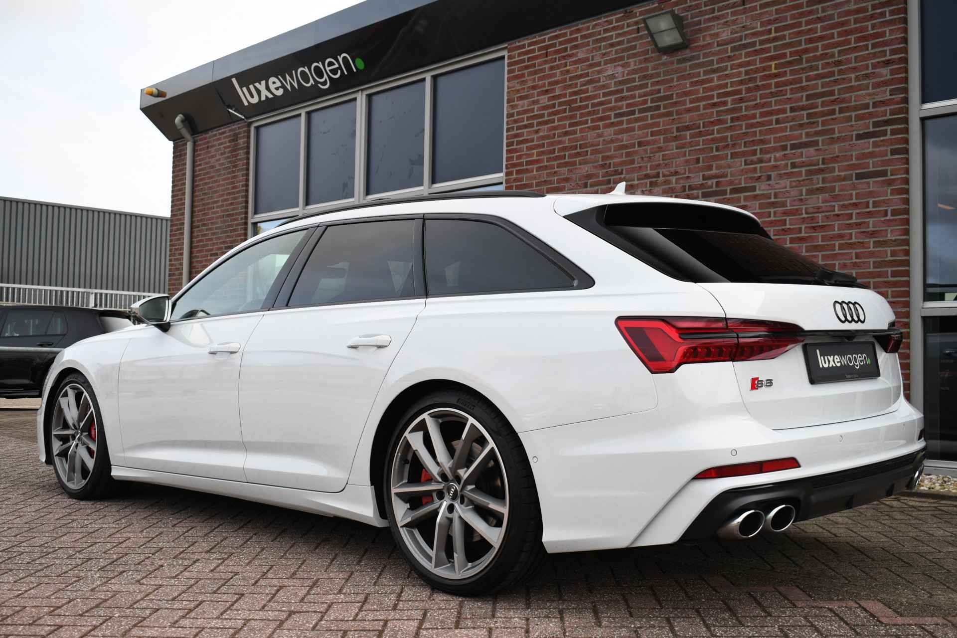 Bomvolle Audi S6 Avant 350pk TDI quattro in het Gletsjer (parelmoer) wit. Compleet met panoramadak, luchtvering, s-zetels met ruitstiksel, head-up display, 3D-camera's, 4-wielbesturing, standkachel, 21 inch velgen, etc, etc! Nieuwprijs eur. 140.395,- (NL)