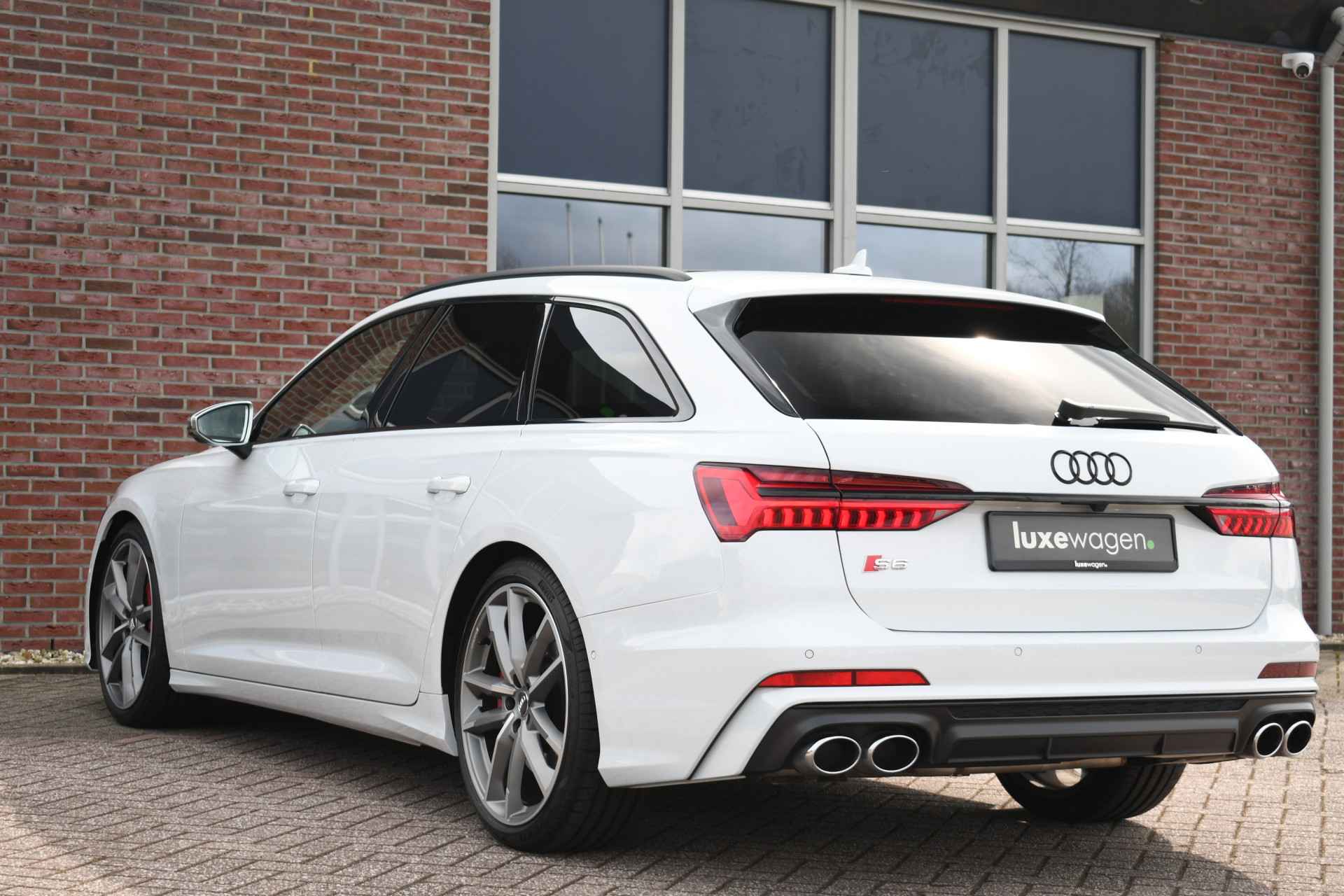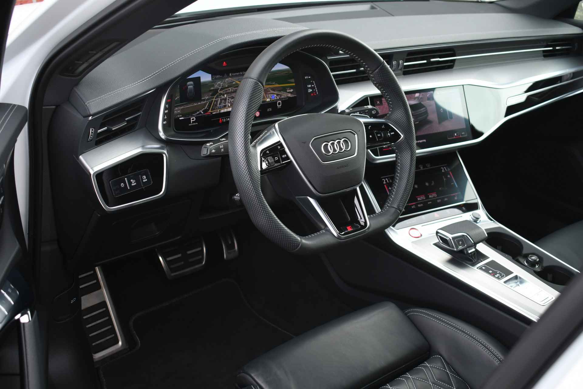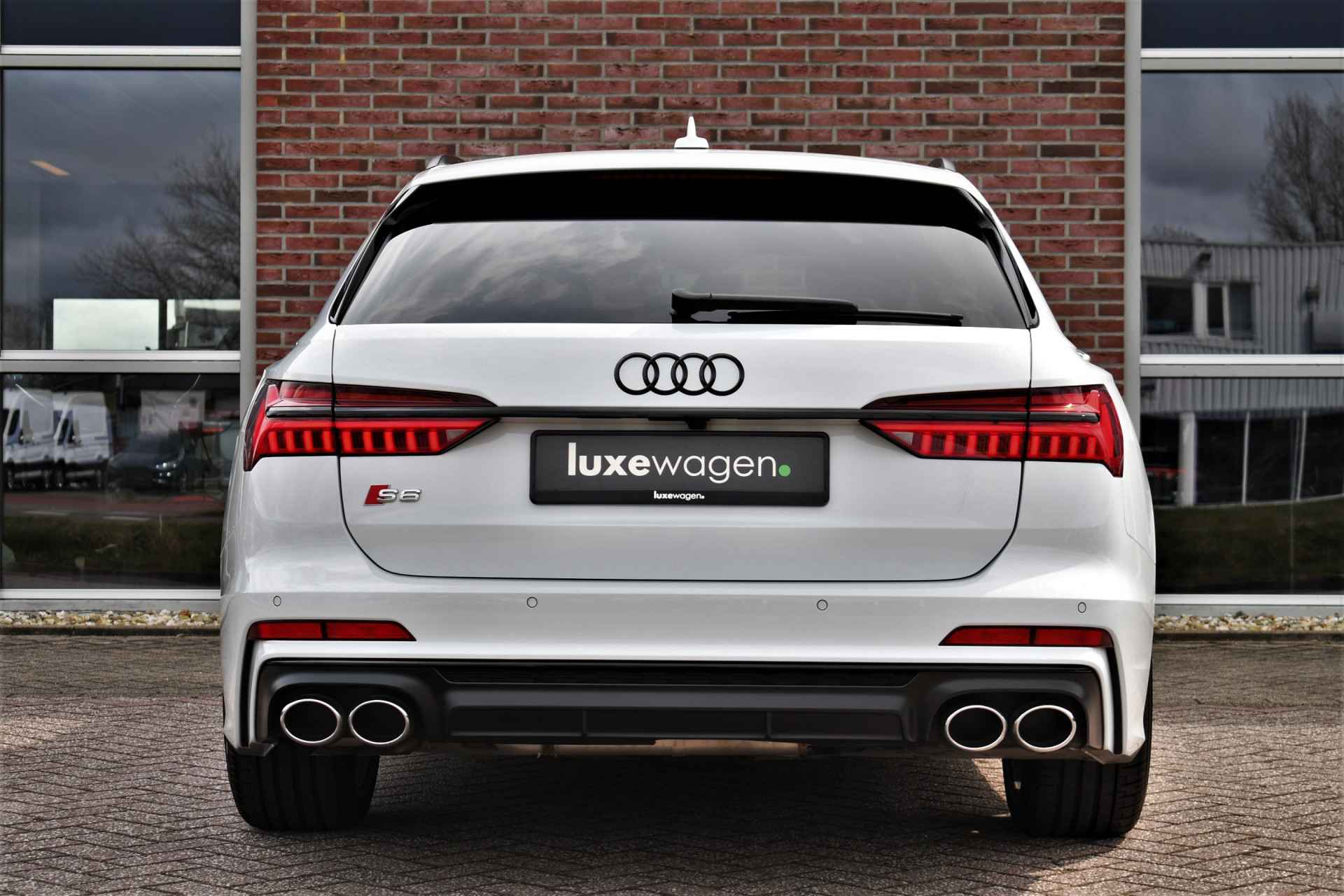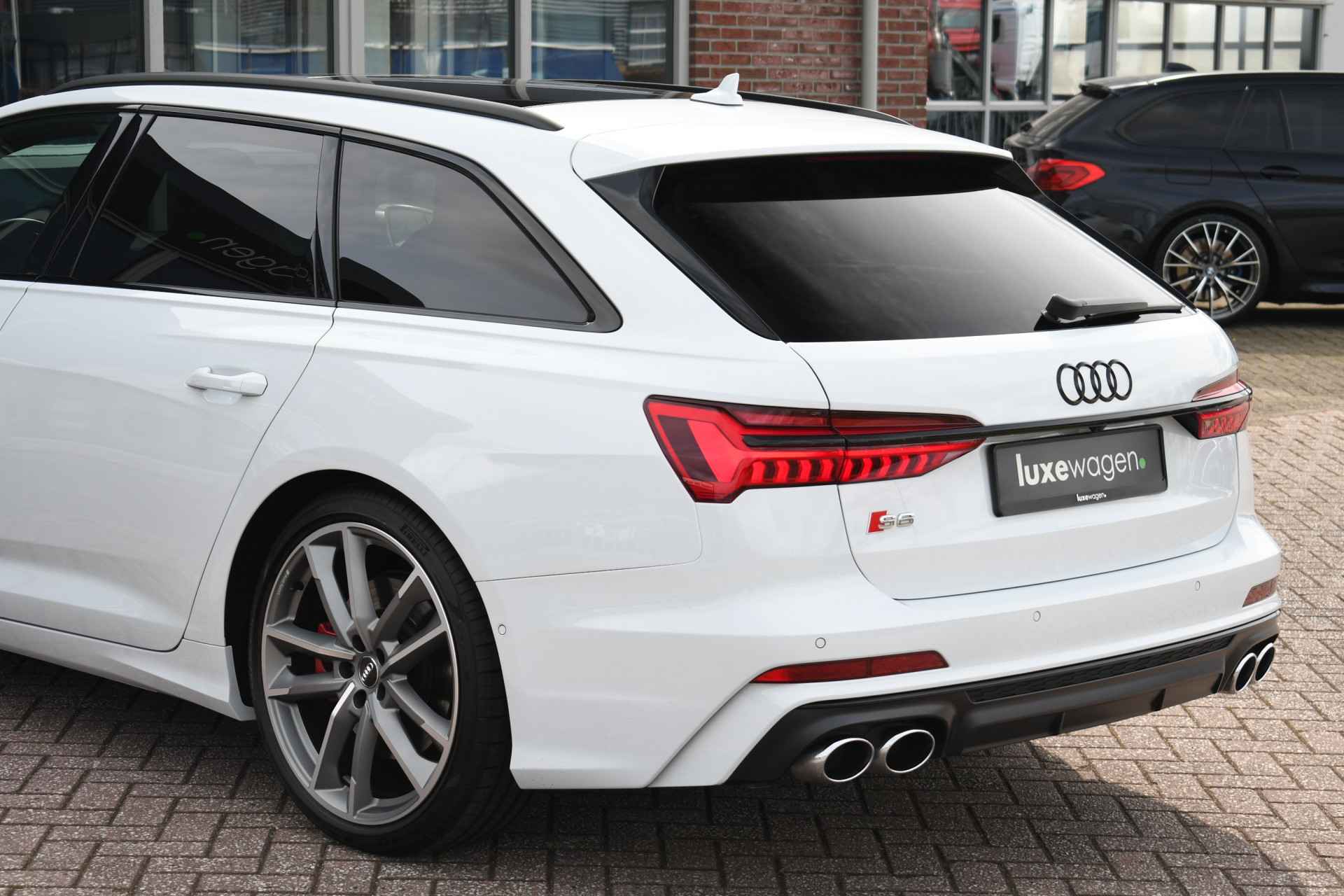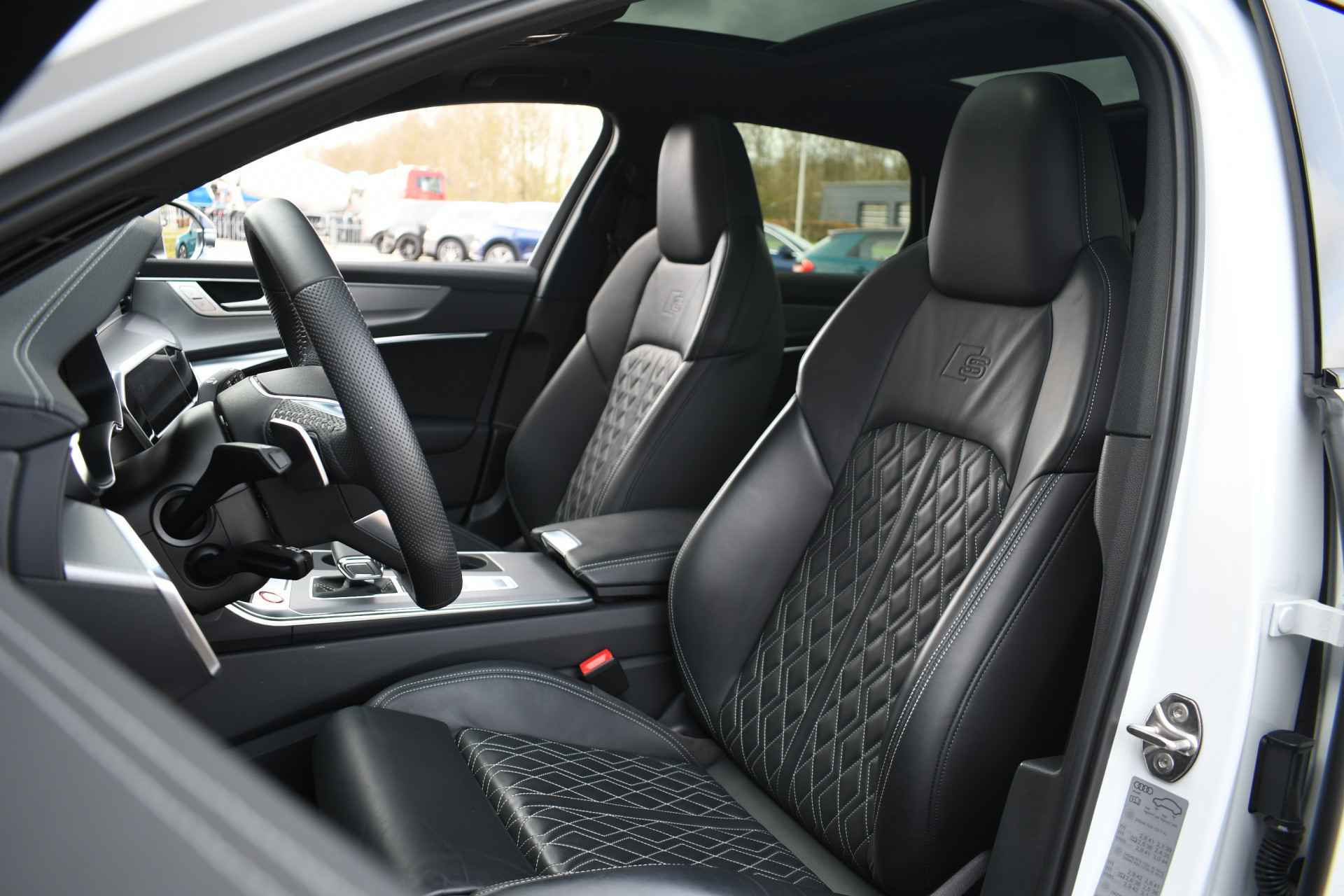 Bomvolle Audi S6 Avant 350pk TDI quattro in het Gletsjer (parelmoer) wit. Compleet met panoramadak, luchtvering, s-zetels met ruitstiksel, head-up display, 3D-camera's, 4-wielbesturing, standkachel, 21 inch velgen, etc, etc! Nieuwprijs eur. 140.395,- (NL)