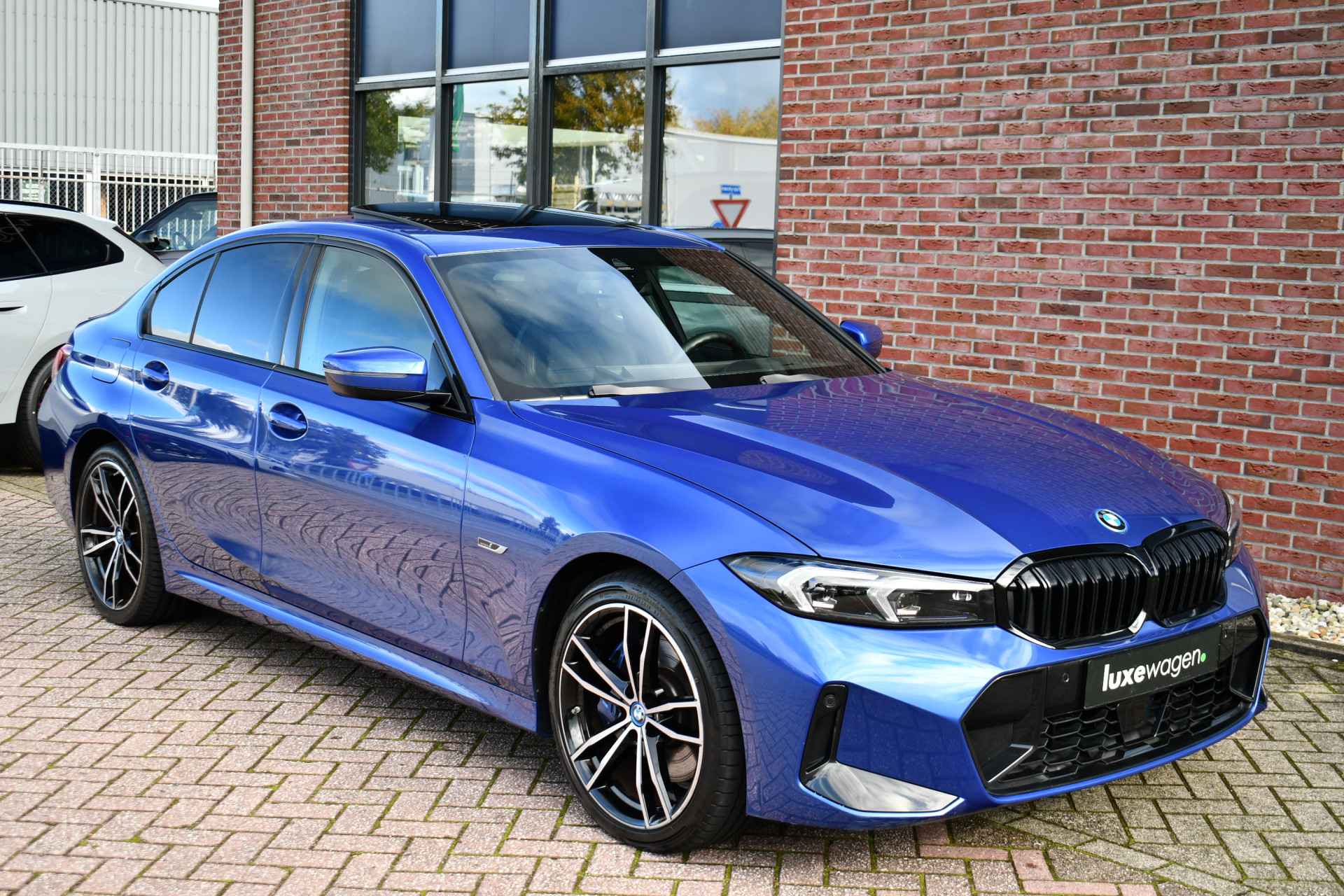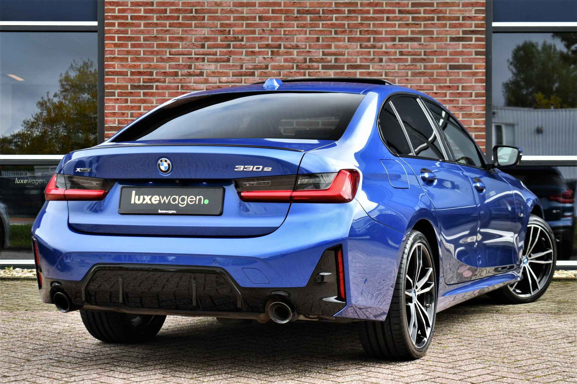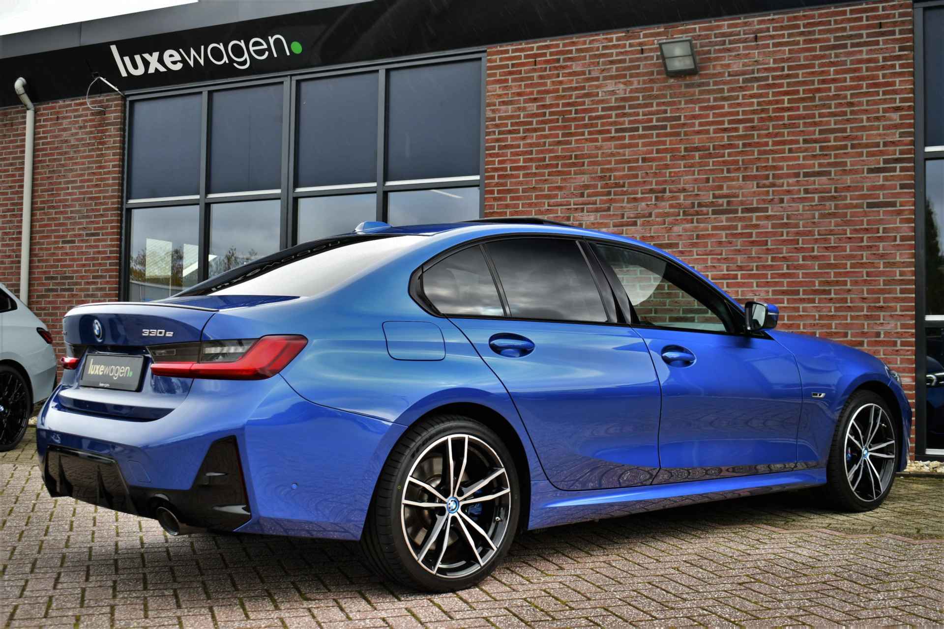 Deze unieke, Portimao blauwe 330e xDrive Limousine is ol opties, met: M-Sportpakket Pro, M-zetels (uniek!), elektrisch glazen (panorama) dak, elektrisch verstelbare stoelen met geheugen voor bestuurder, adaptieve cruise control, head-up display, HiFi audio met dab, elektrische achterklep, camera achter, 19 inch (originele) velgen, etc!