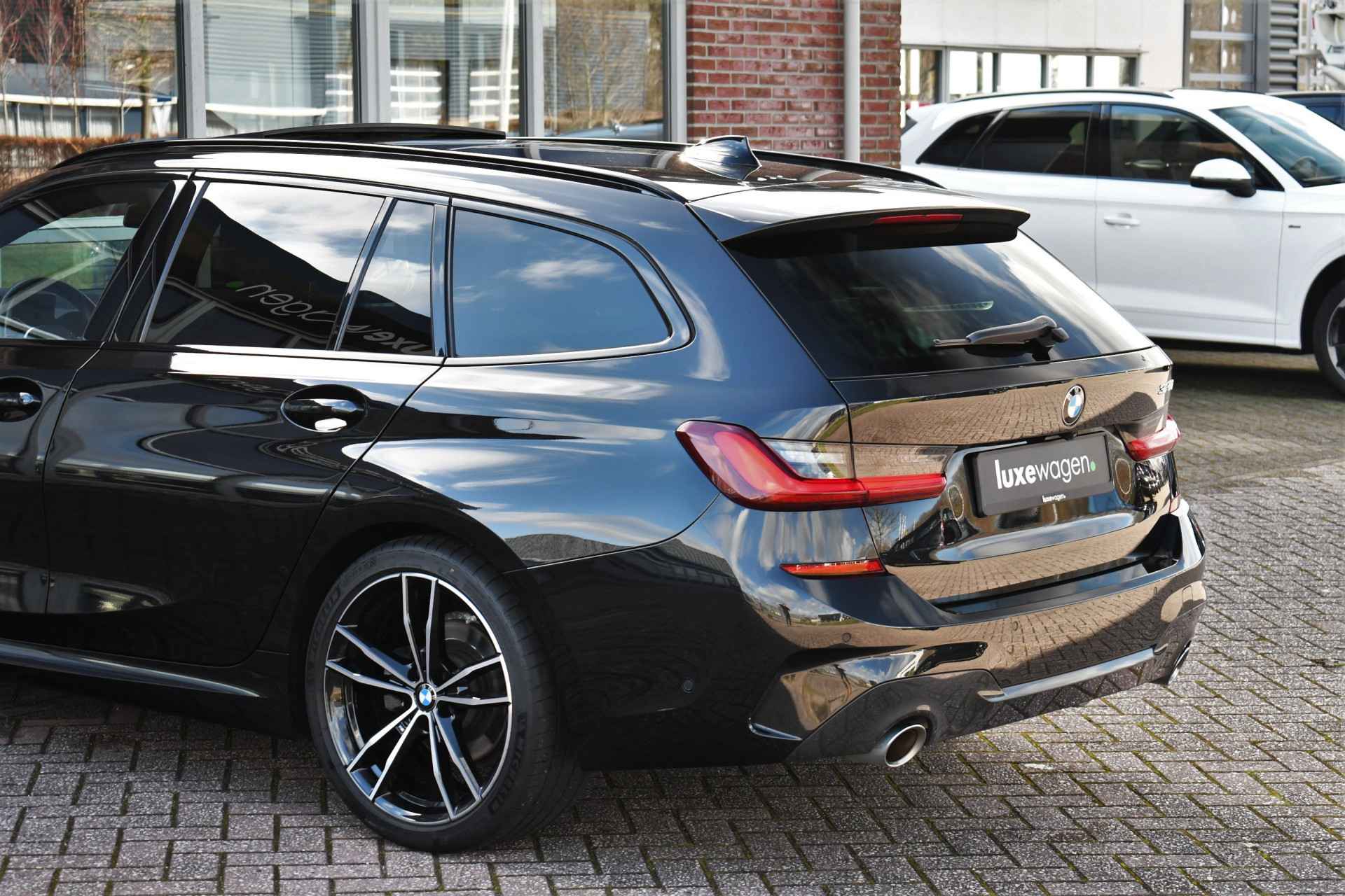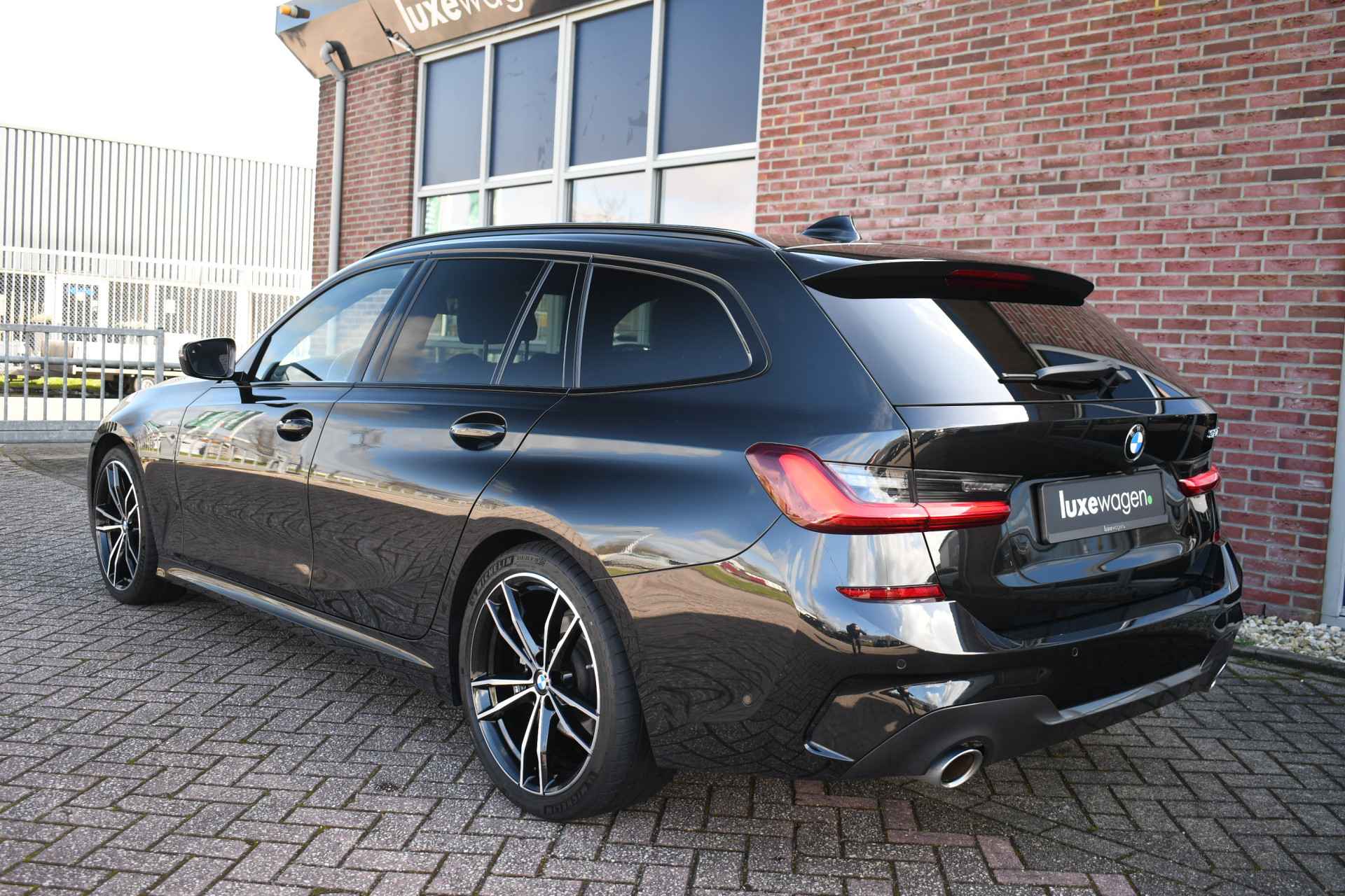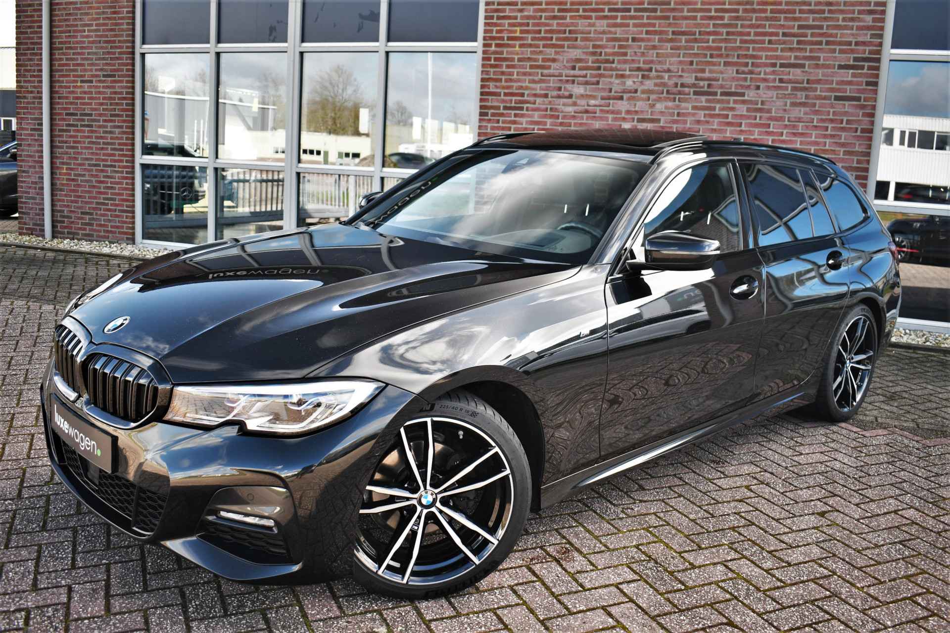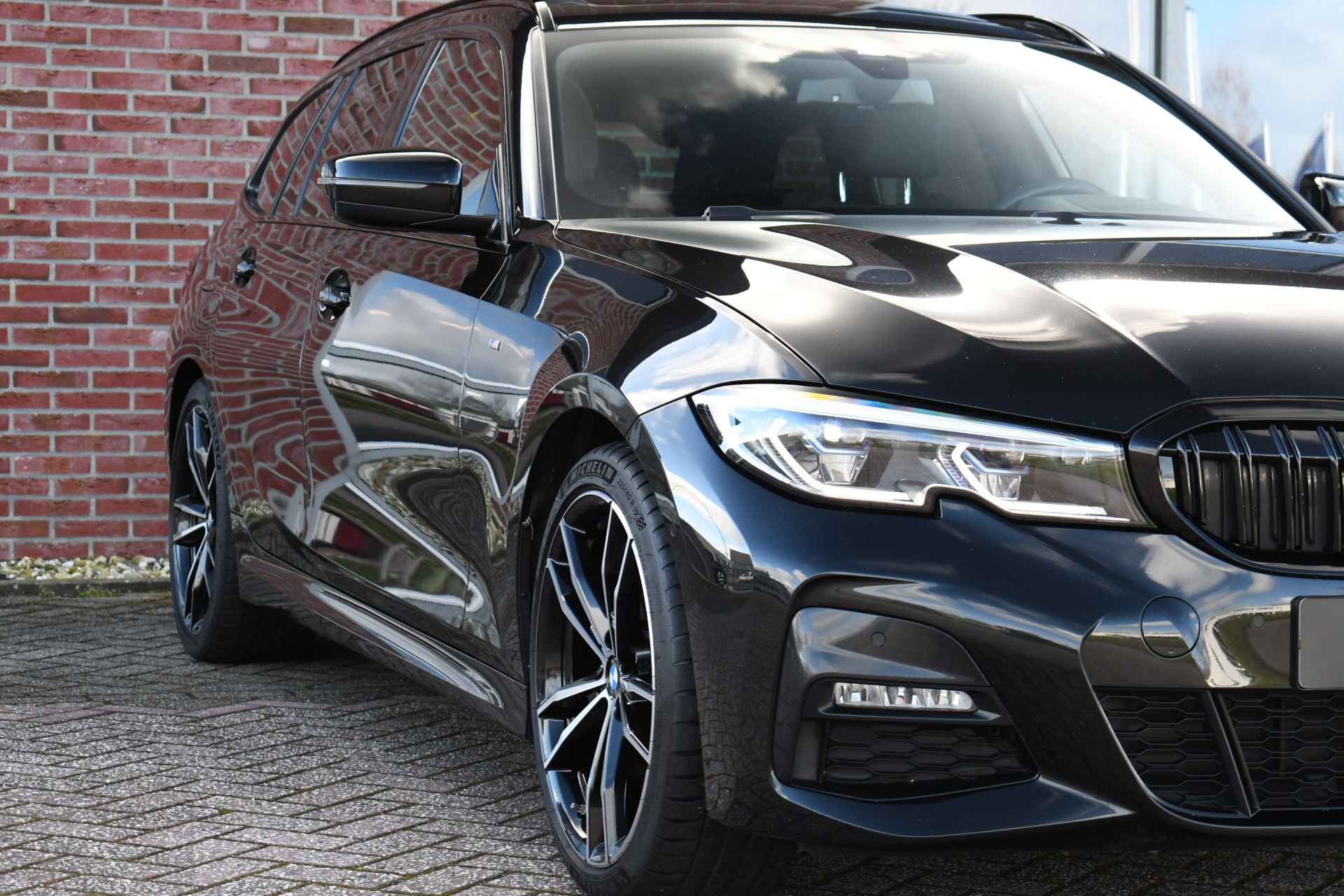 Deze stoer uitgevoerde 320i Touring is zeer compleet met o.a. M-Sportpakket, panoramadak, adaptieve cruise control elektrische trekhaak, head-up display, elektrische zetels met memory, Live Cockpit, Laser-LED, compleet shadow line, etc!