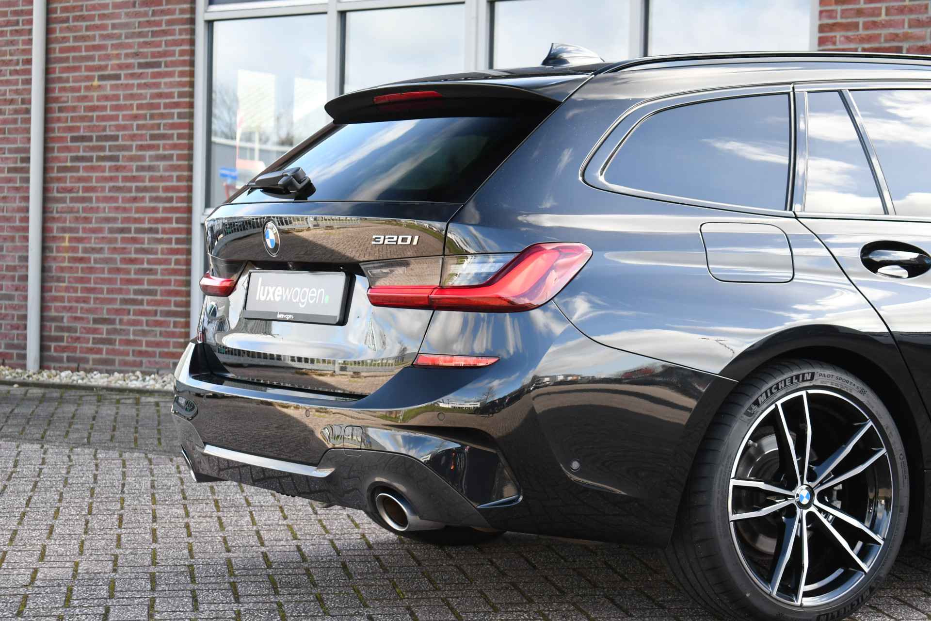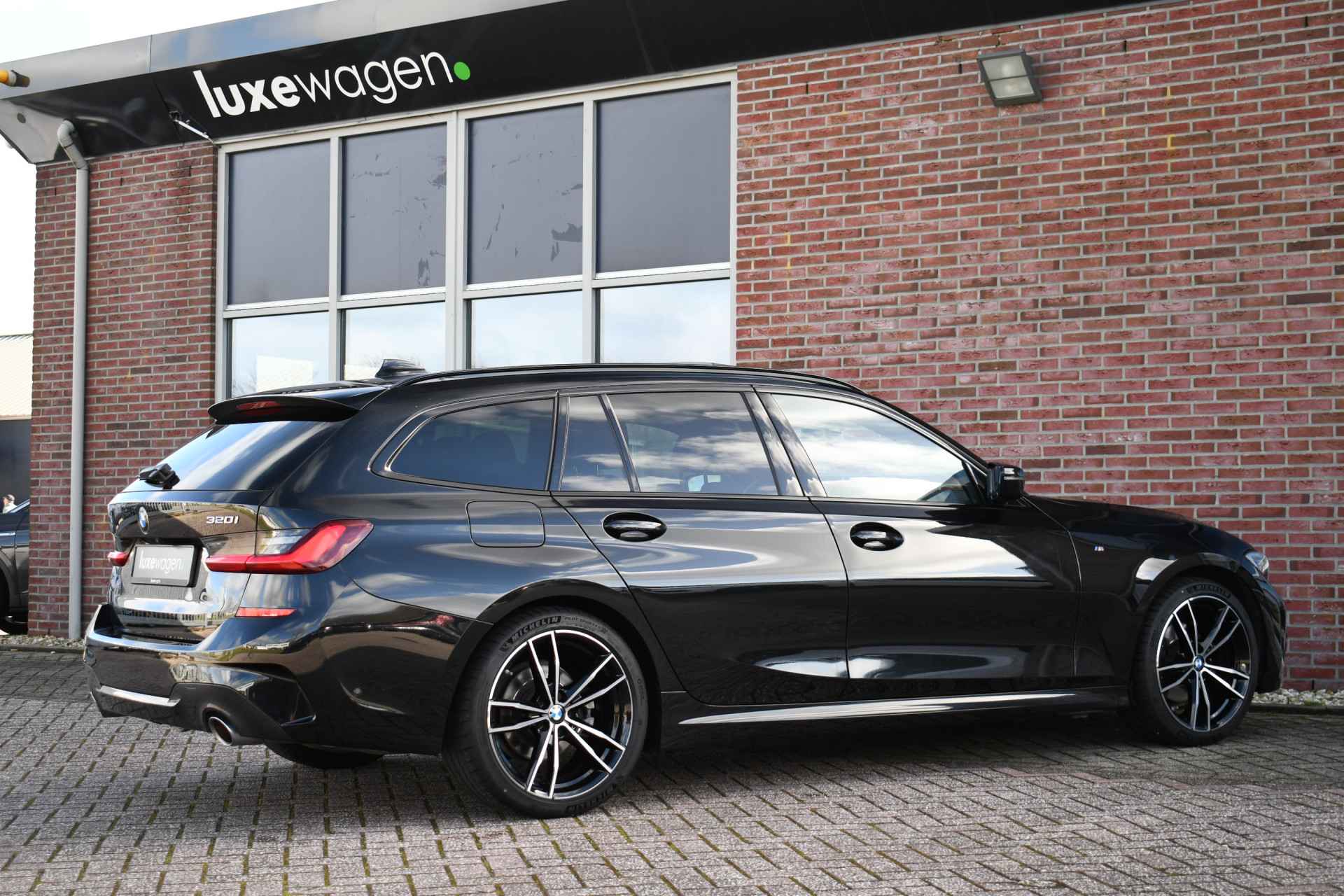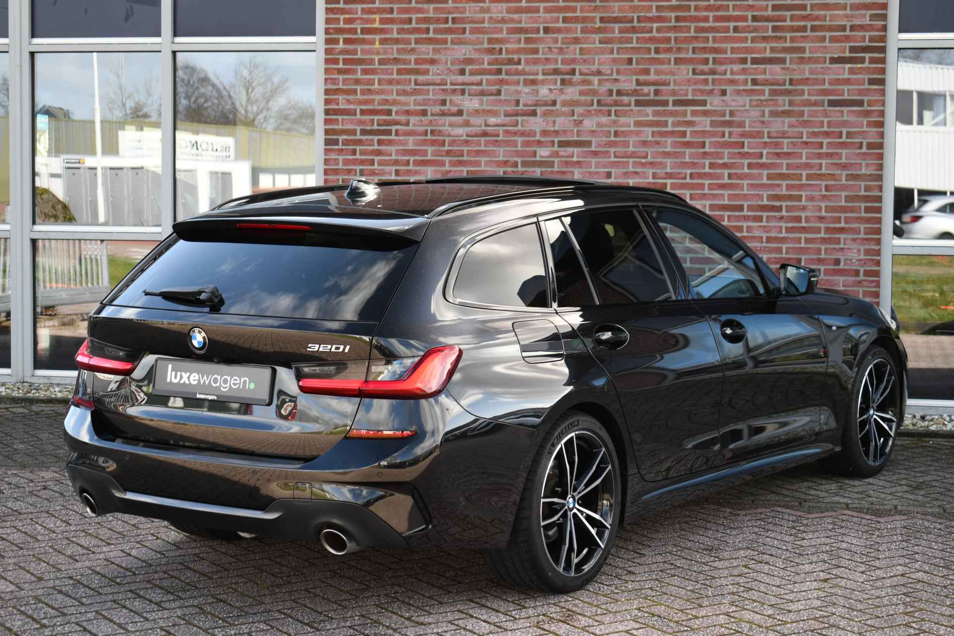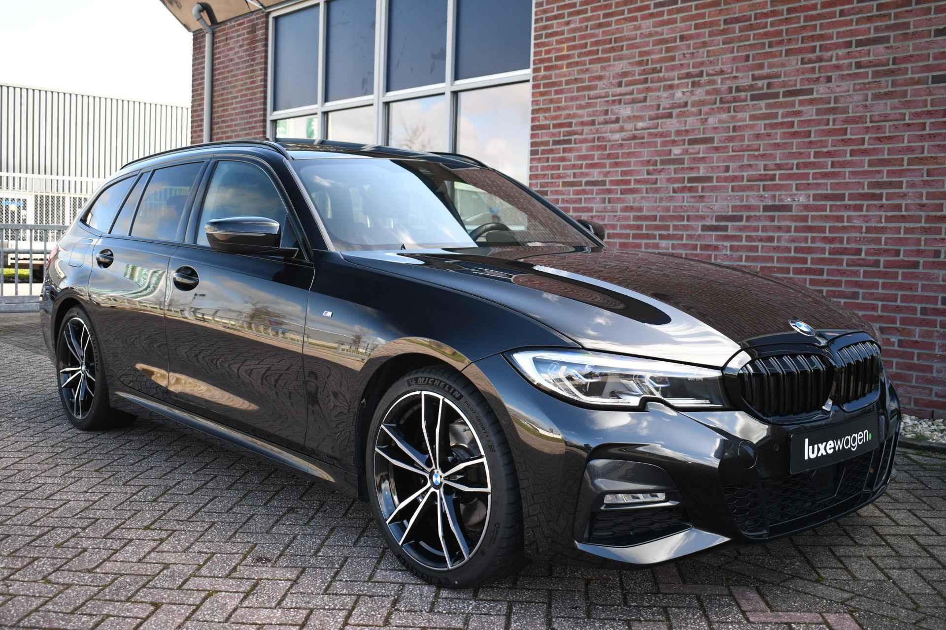 Deze stoer uitgevoerde 320i Touring is zeer compleet met o.a. M-Sportpakket, panoramadak, adaptieve cruise control elektrische trekhaak, head-up display, elektrische zetels met memory, Live Cockpit, Laser-LED, compleet shadow line, etc!