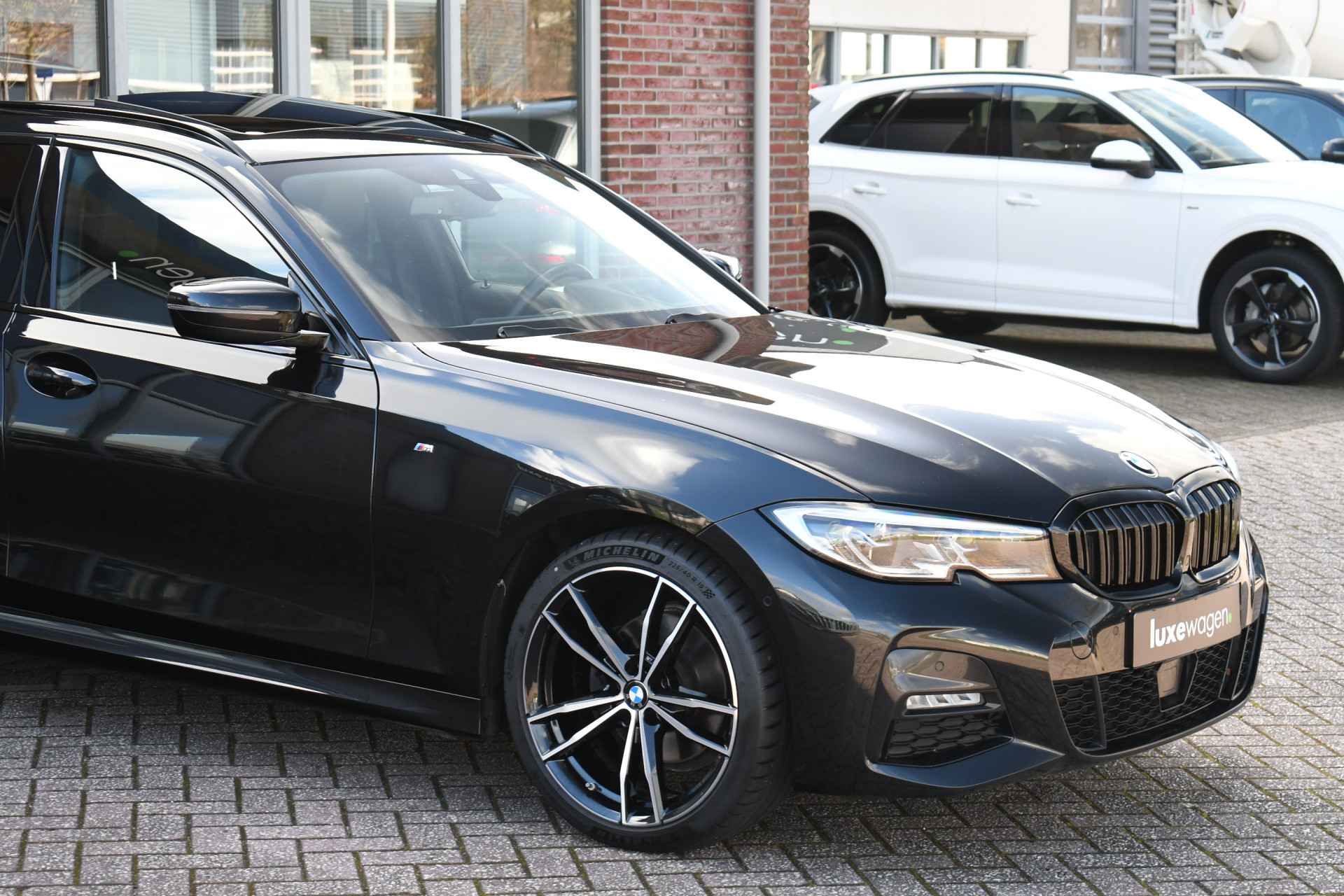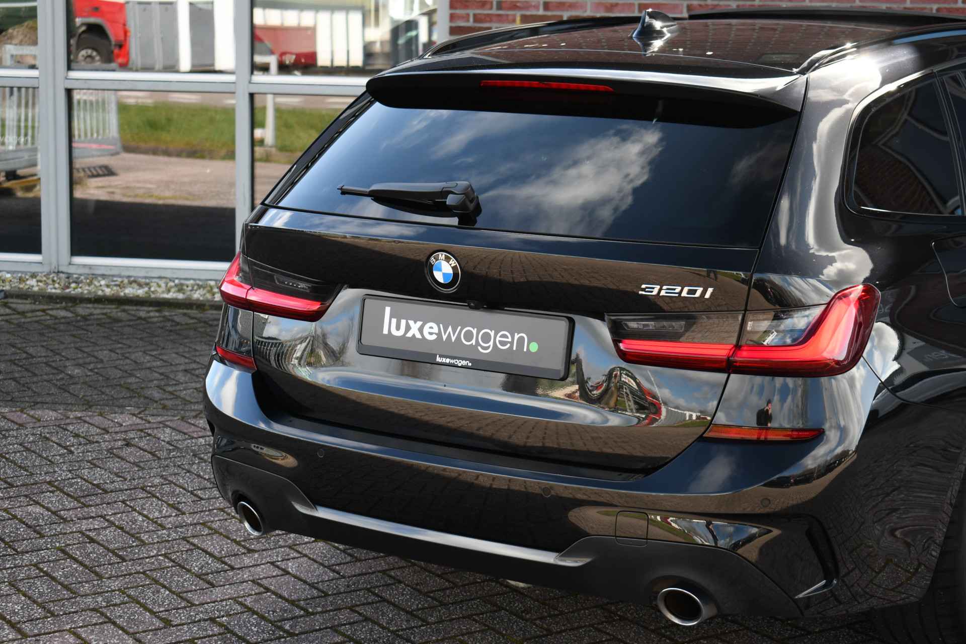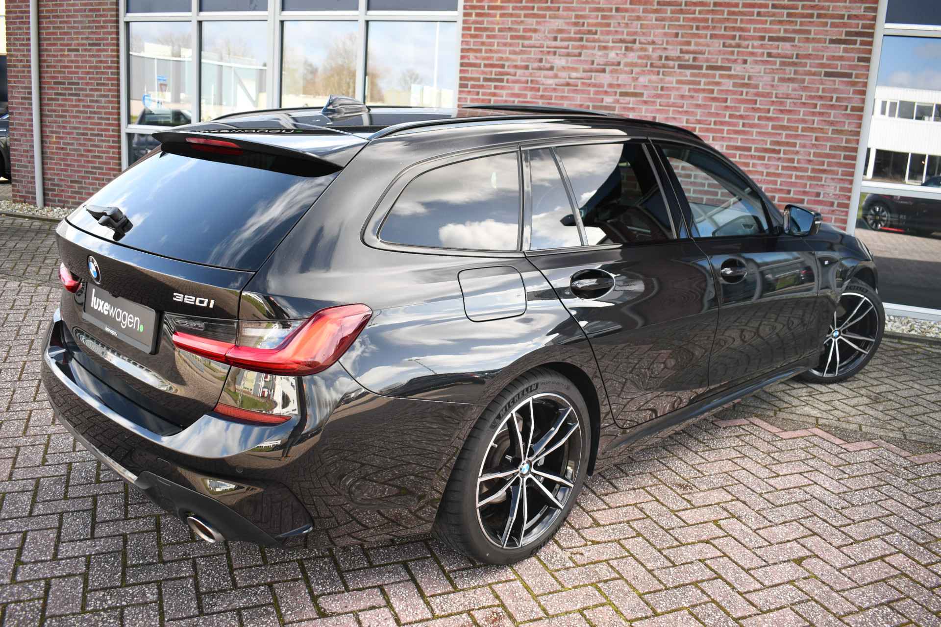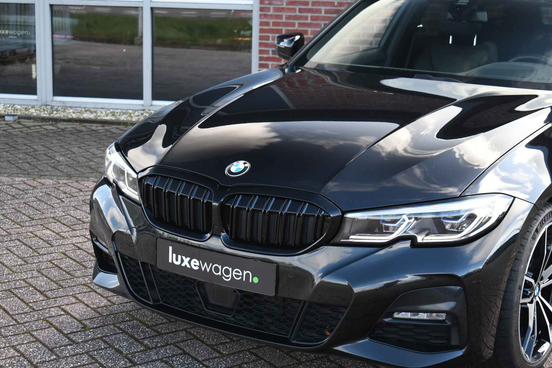 Deze stoer uitgevoerde 320i Touring is zeer compleet met o.a. M-Sportpakket, panoramadak, adaptieve cruise control elektrische trekhaak, head-up display, elektrische zetels met memory, Live Cockpit, Laser-LED, compleet shadow line, etc!