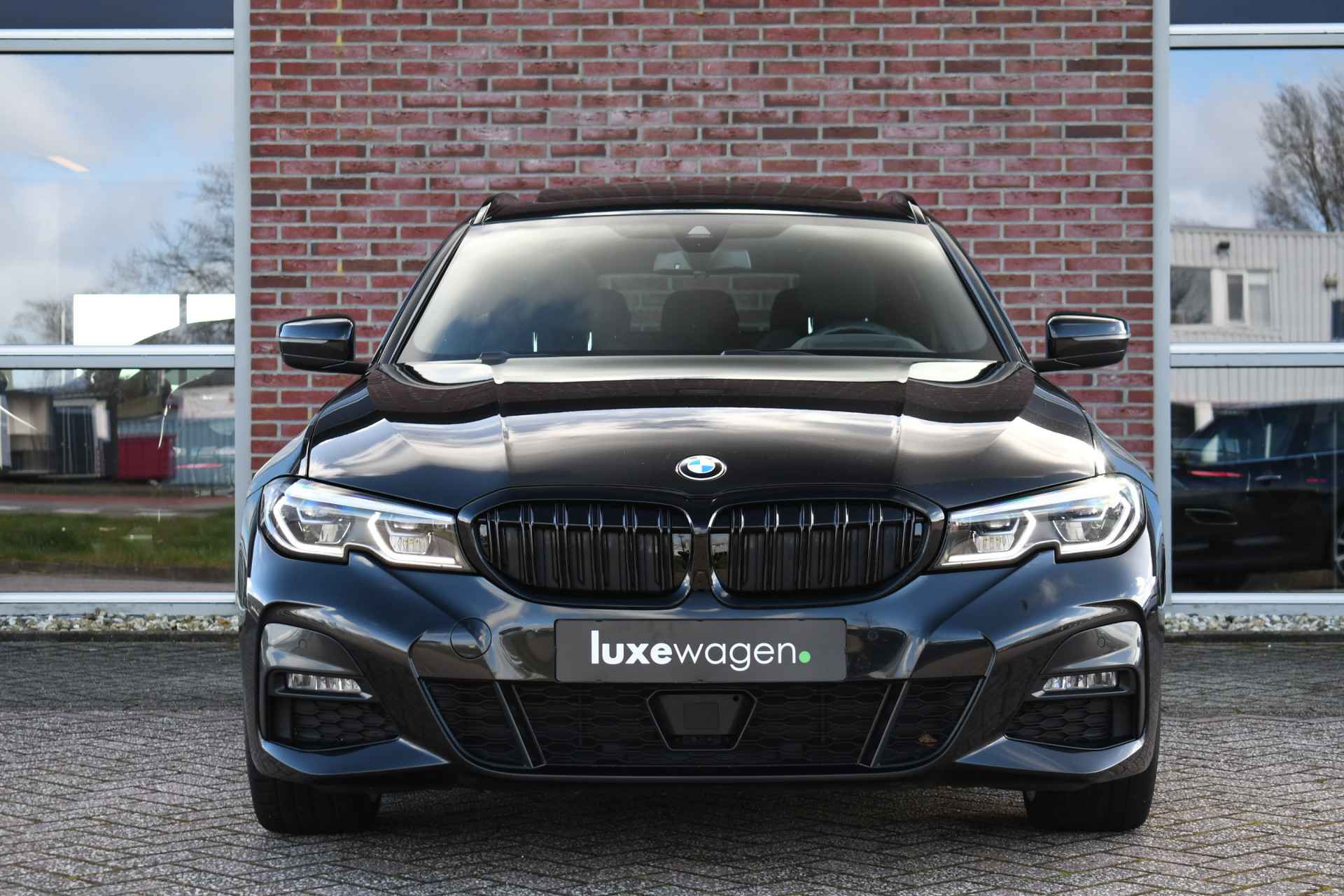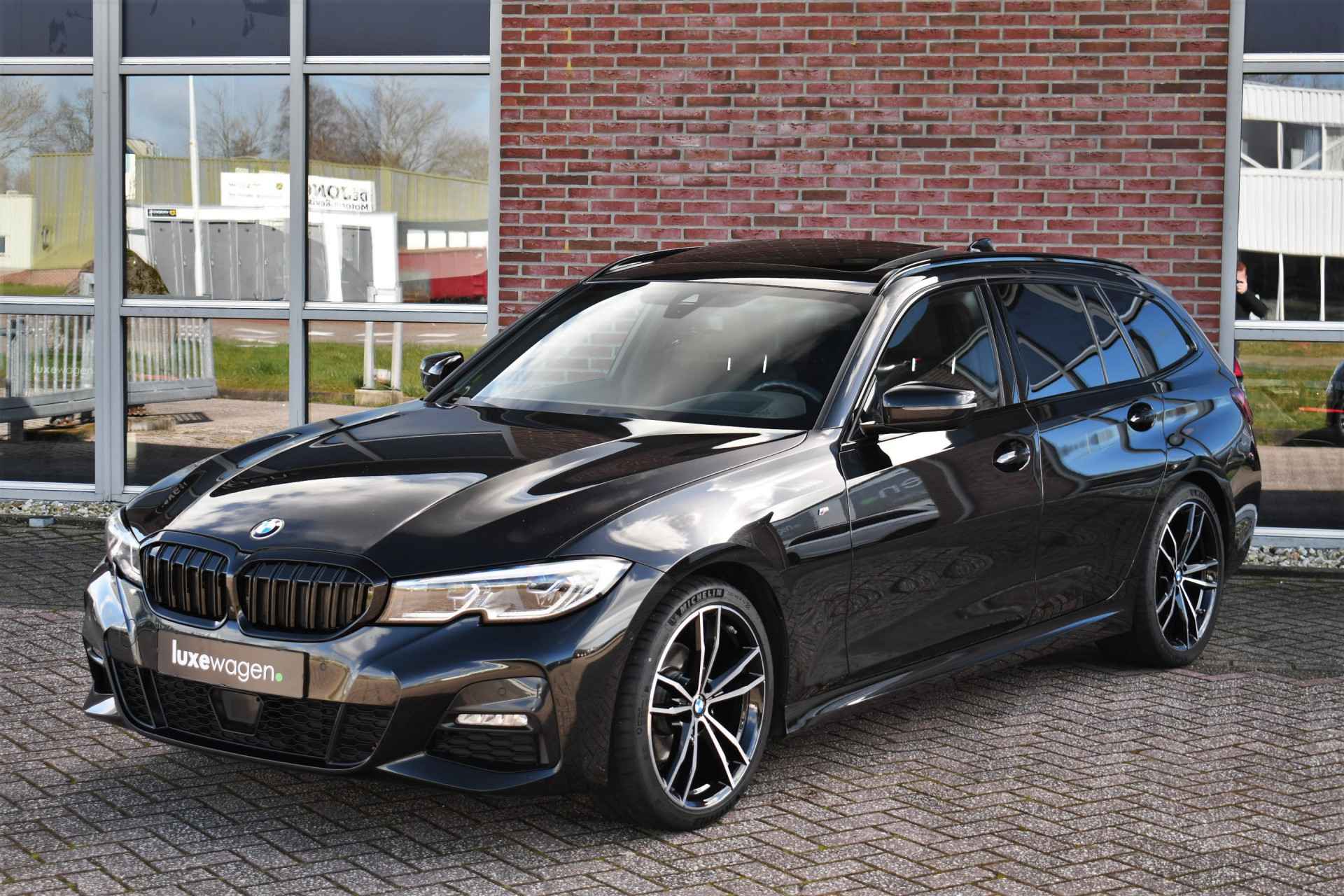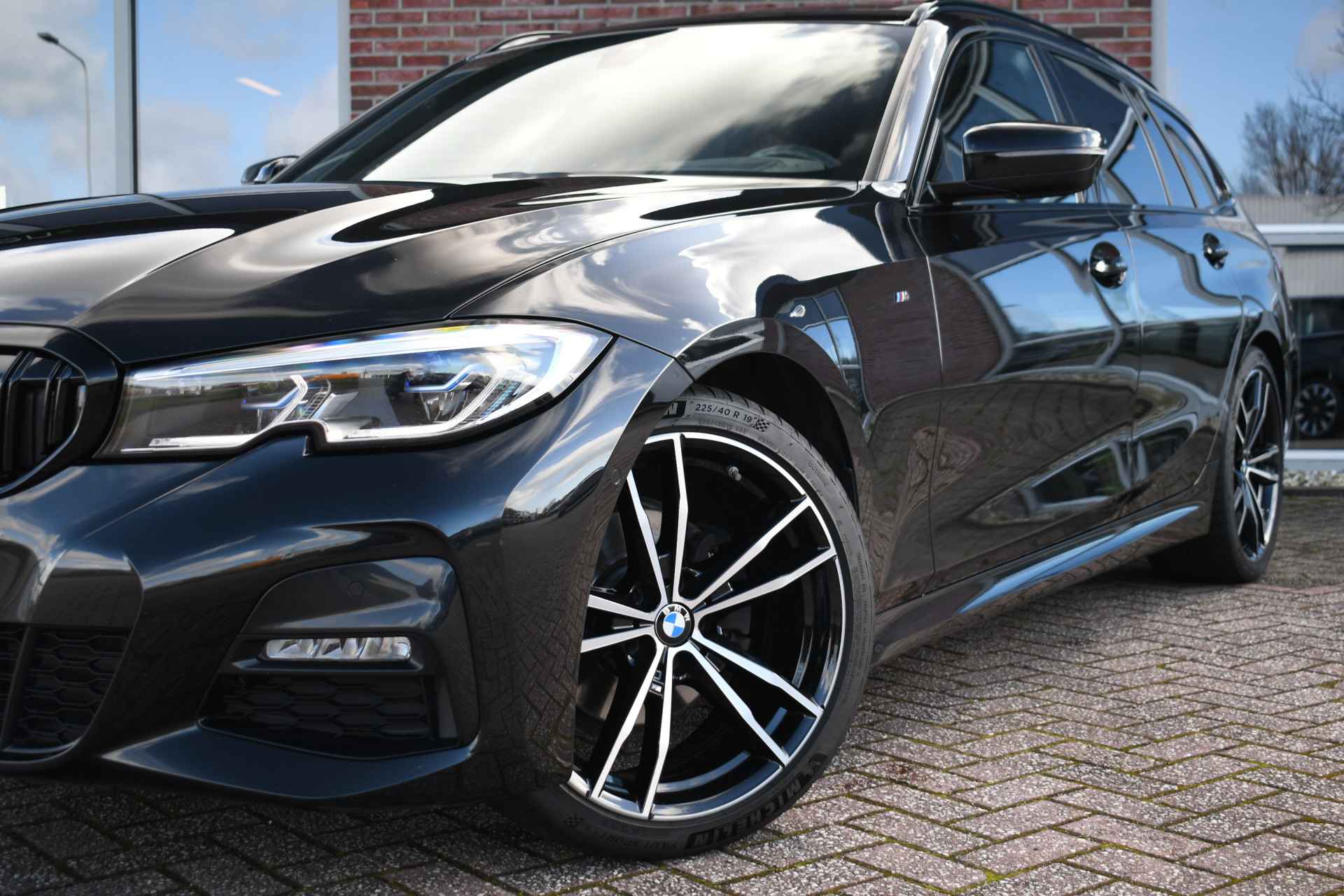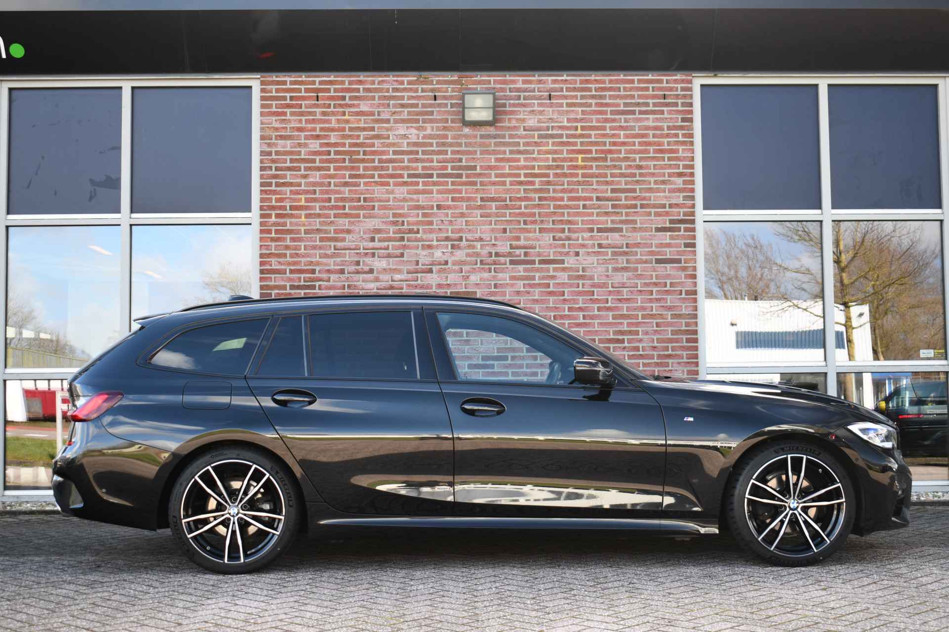 Deze stoer uitgevoerde 320i Touring is zeer compleet met o.a. M-Sportpakket, panoramadak, adaptieve cruise control elektrische trekhaak, head-up display, elektrische zetels met memory, Live Cockpit, Laser-LED, compleet shadow line, etc!