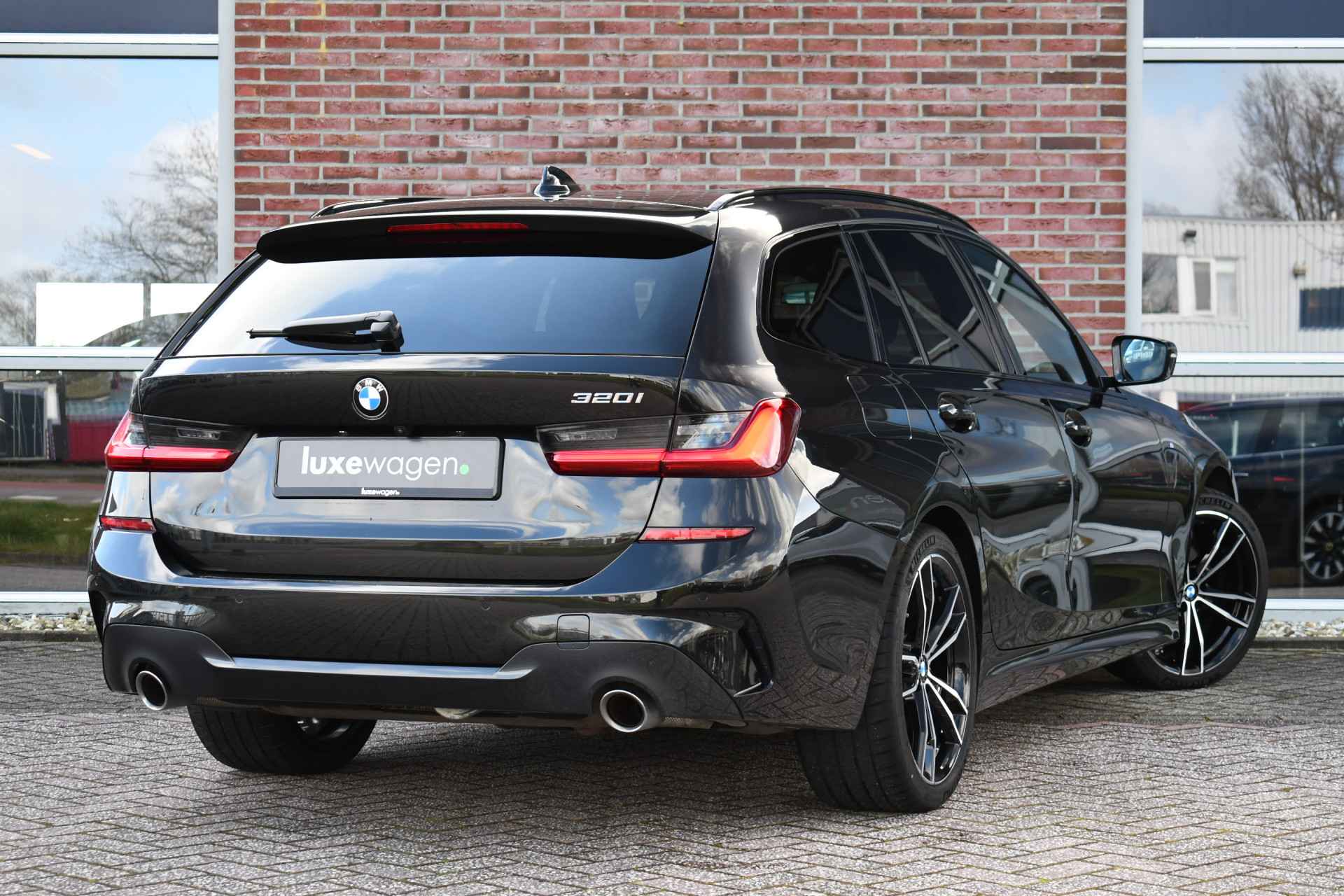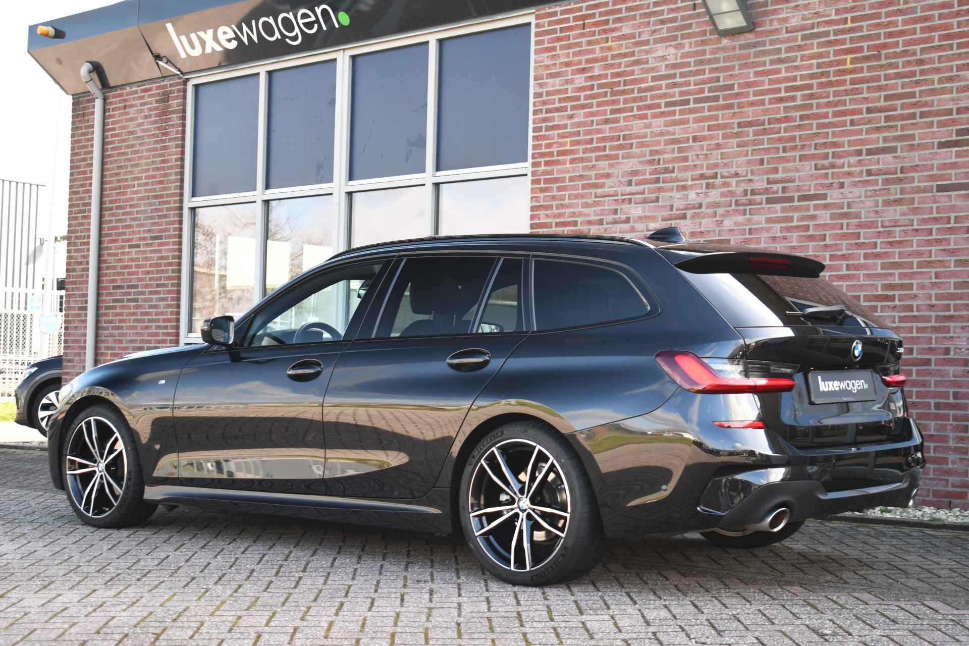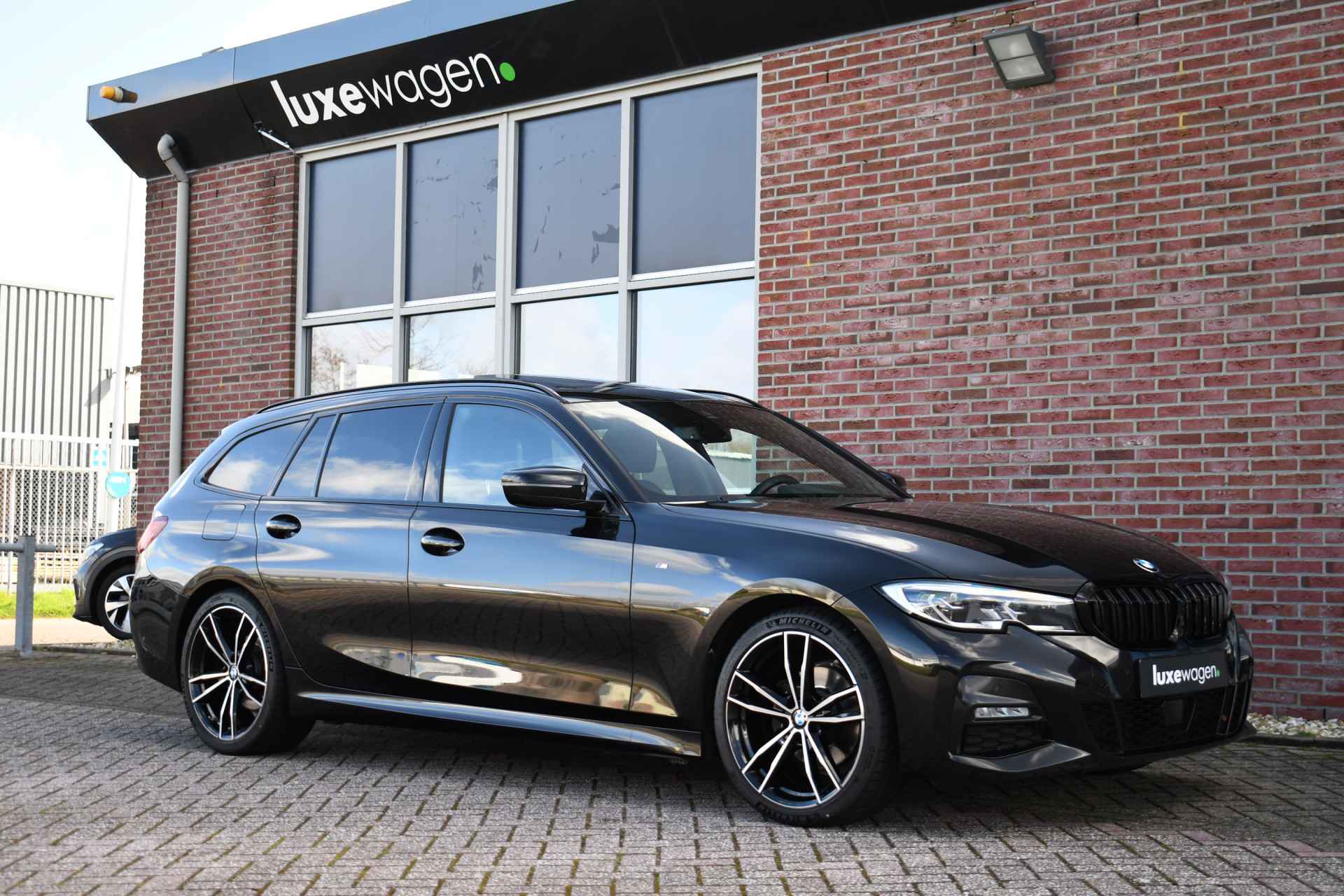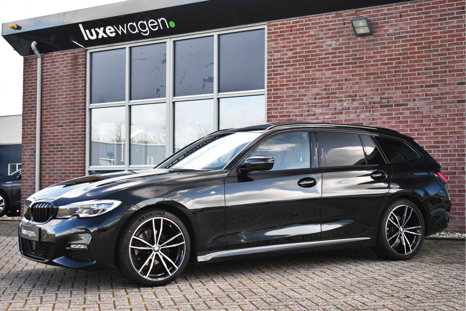 Deze stoer uitgevoerde 320i Touring is zeer compleet met o.a. M-Sportpakket, panoramadak, adaptieve cruise control elektrische trekhaak, head-up display, elektrische zetels met memory, Live Cockpit, Laser-LED, compleet shadow line, etc!