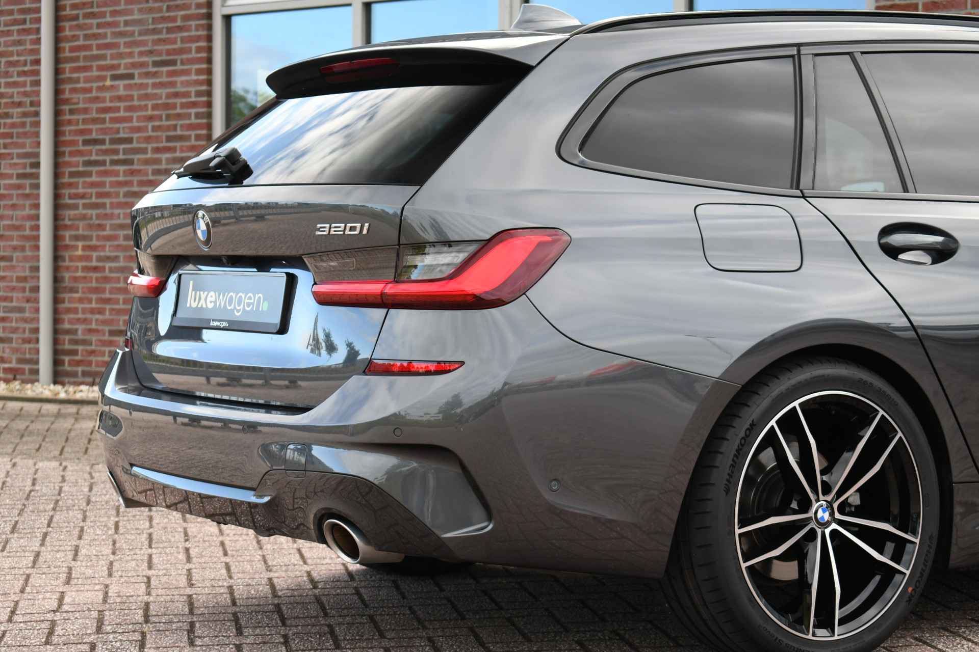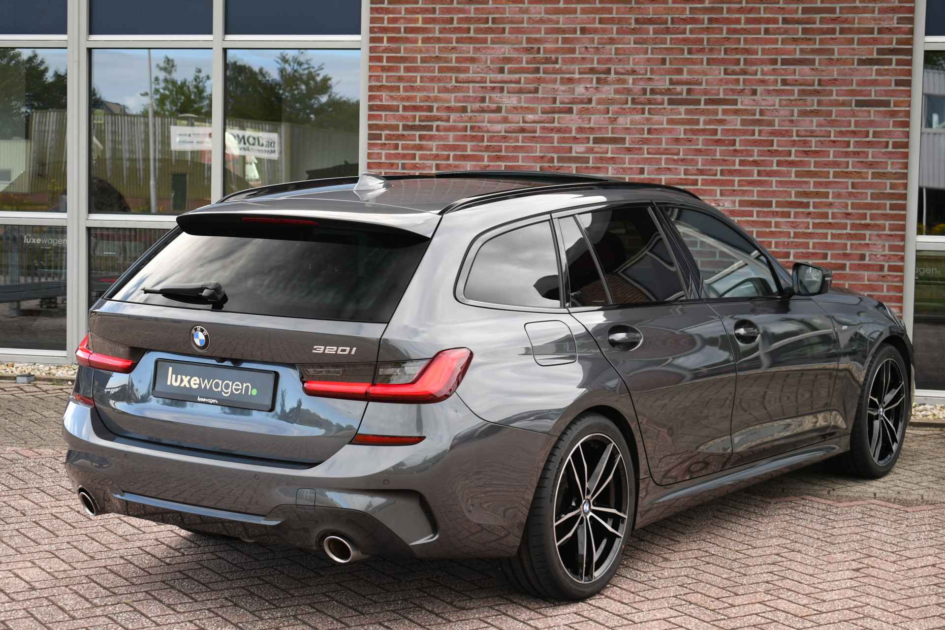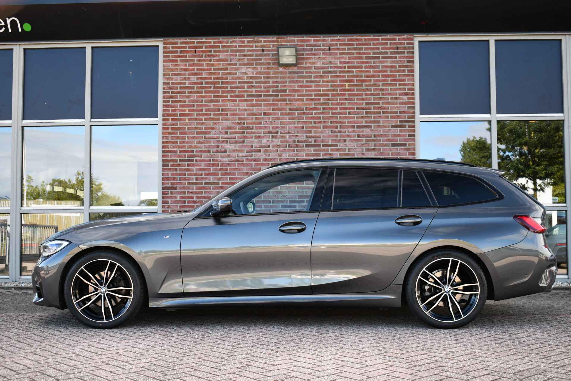 Bomvolle 320i Touring M-Sport compleet met o.a. M-Sportpakket, panoramadak, head-up display, adaptieve cruise, laser-LED, 19 inch velgen, zwart leder, elektrische verstelbare stoelen met geheugen voor bestuurder, elektrische trekhaak etc!