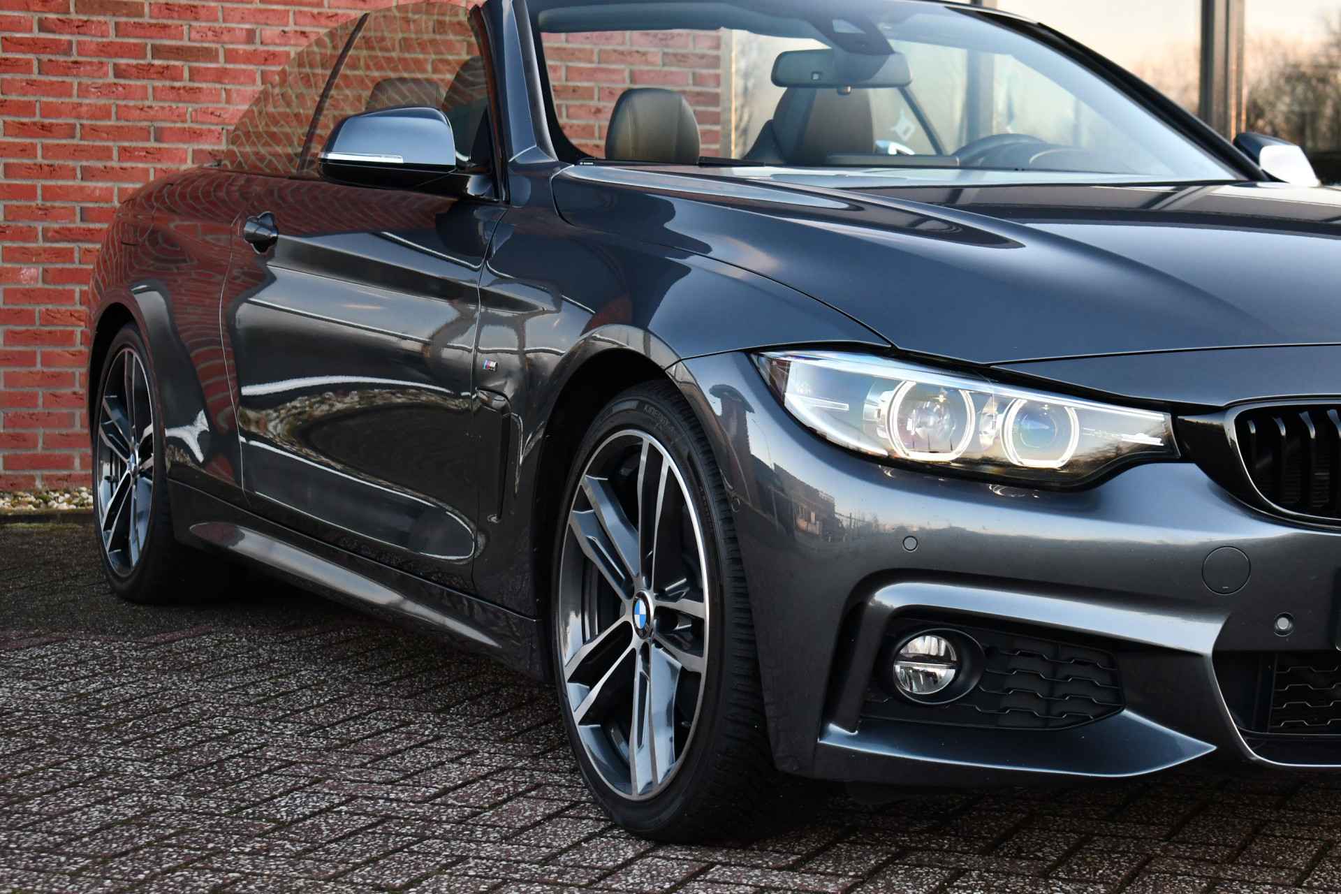 Deze Nederlandse geleverde 440i cabriolet staat nu in onze showroom! Mineral grau met zwart leder. Compleet met M-Sportpakket, camera achter, head-up display, harman/kardon, apple carplay, elektrisch verstelbare stoelen, nek- en stuurverwarming, etc!