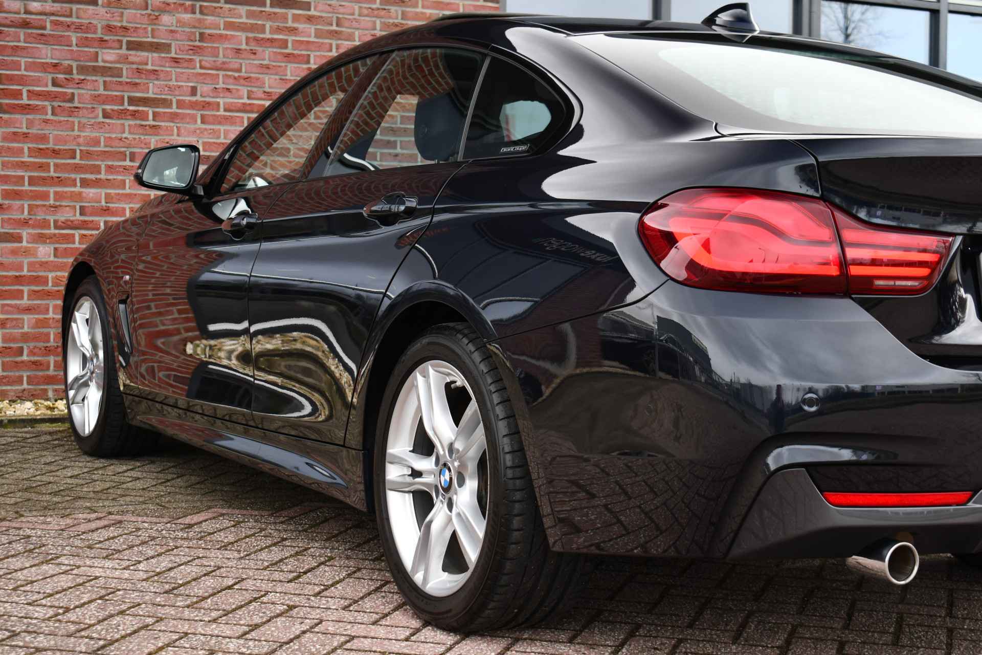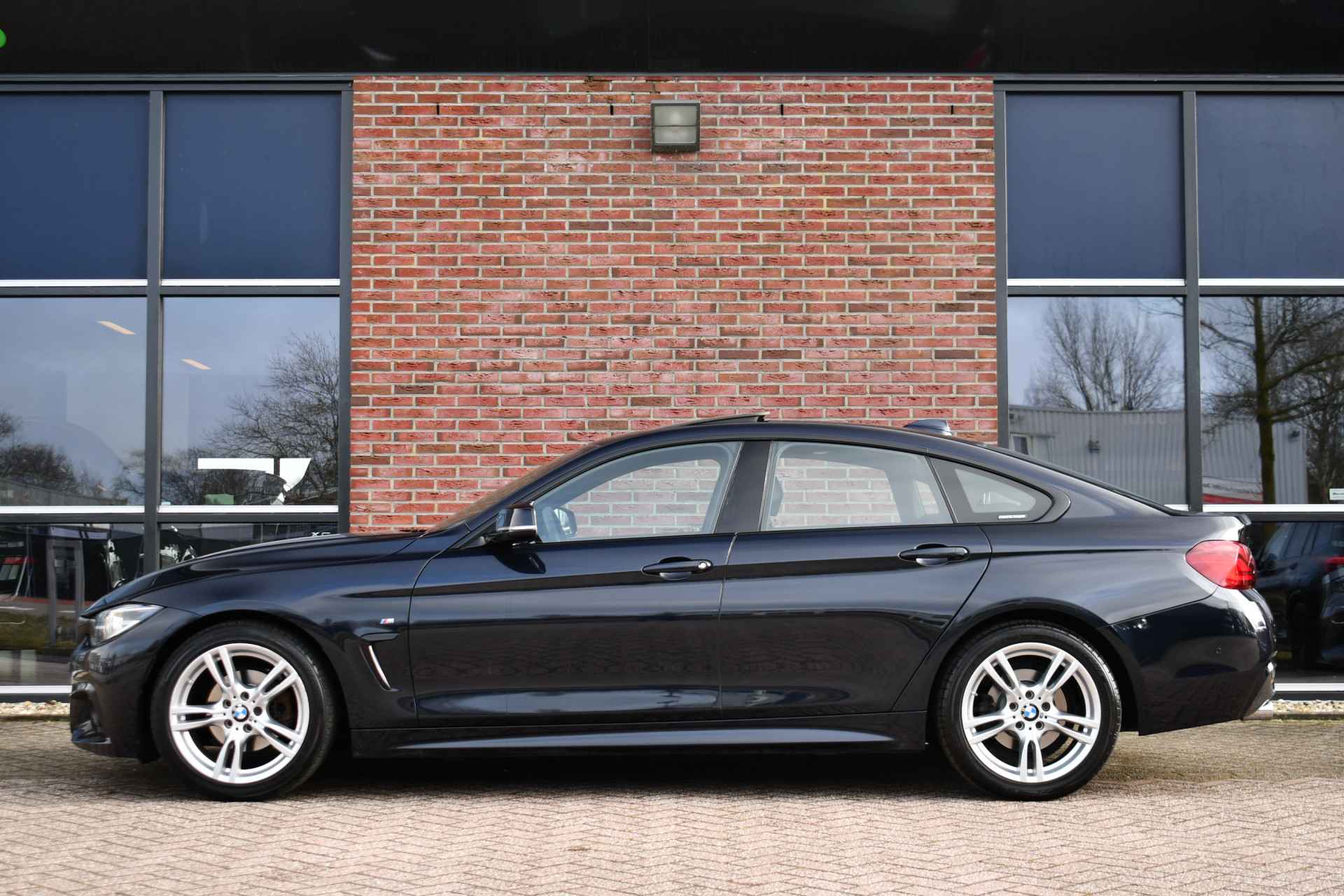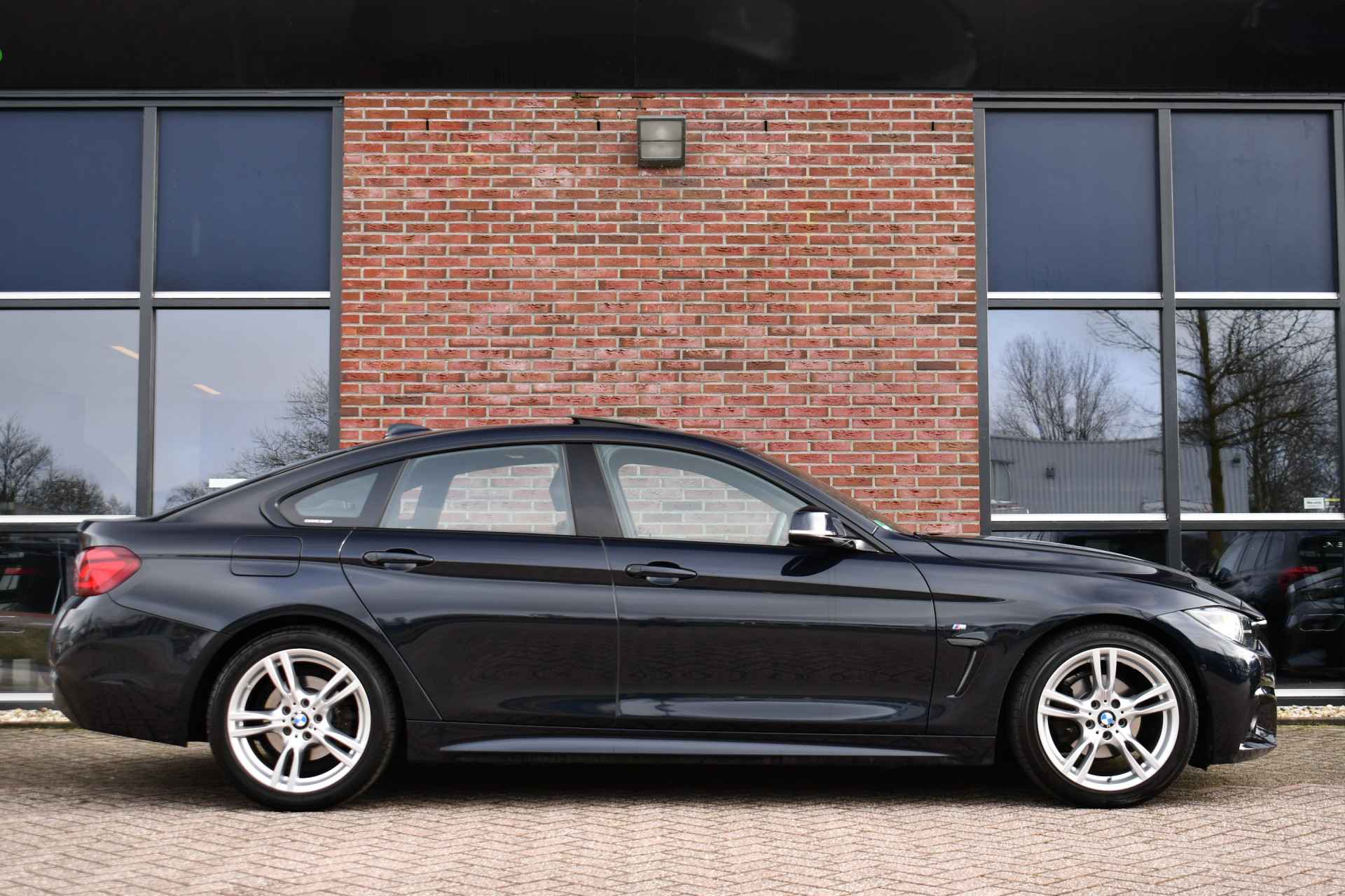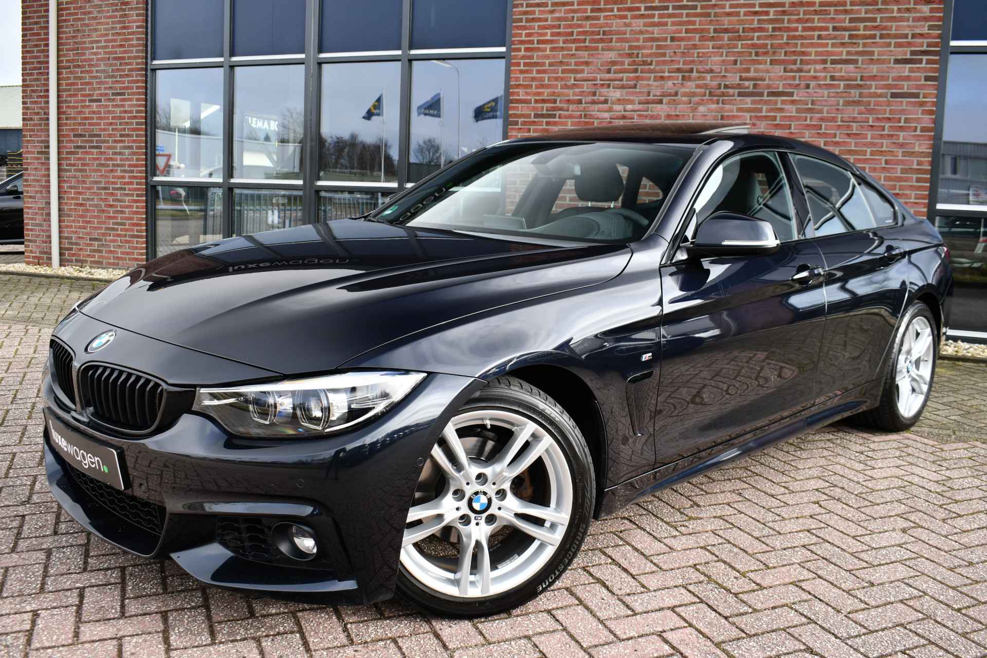 Nederlands geleverde 4-serie Gran Coupe in de kleur Carbon zwart, keurig onderhouden en compleet met: M-Sport pakket, elektrisch glazen dak, head-up display, camera achter, HiFi met DAB en compleet shadow line!