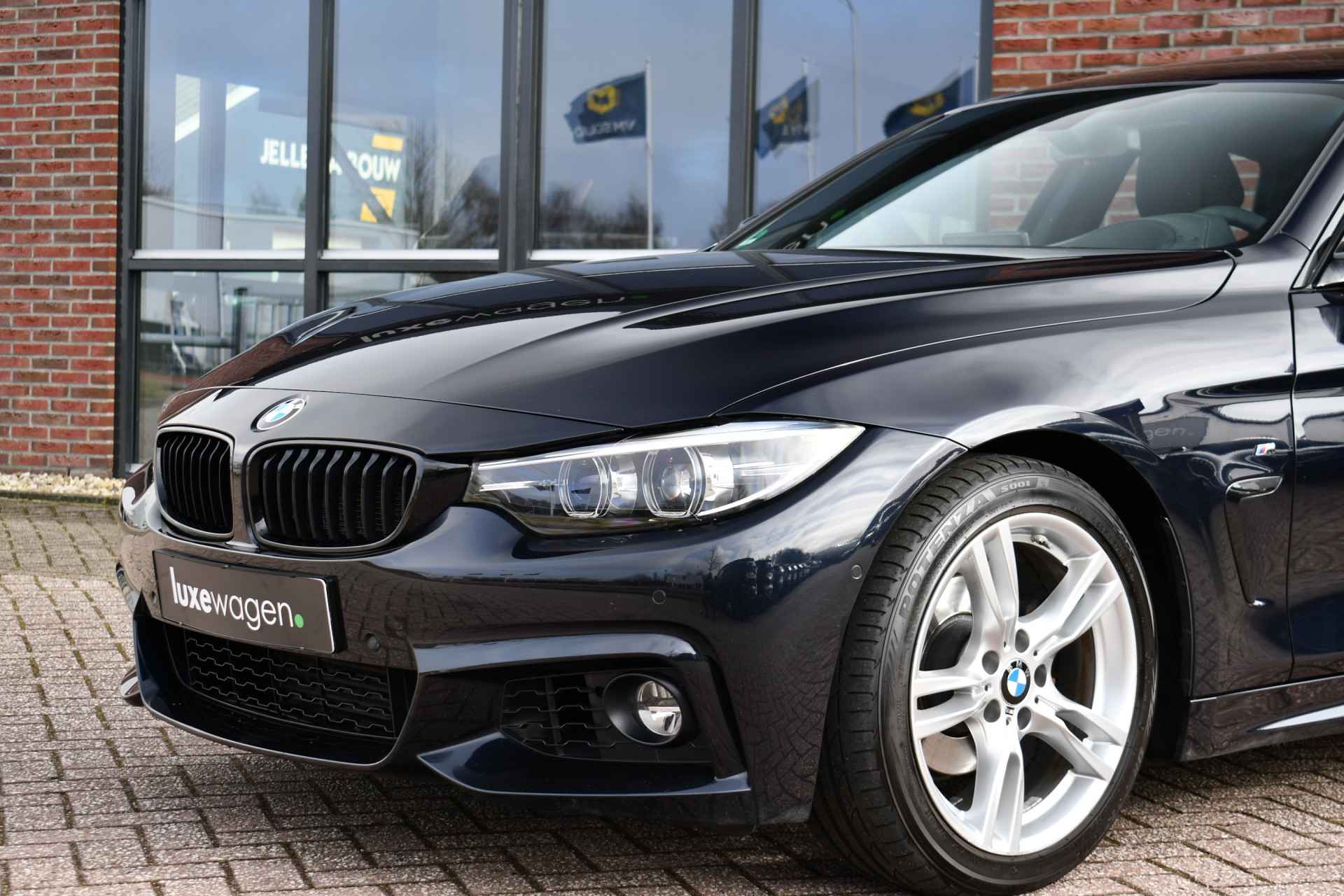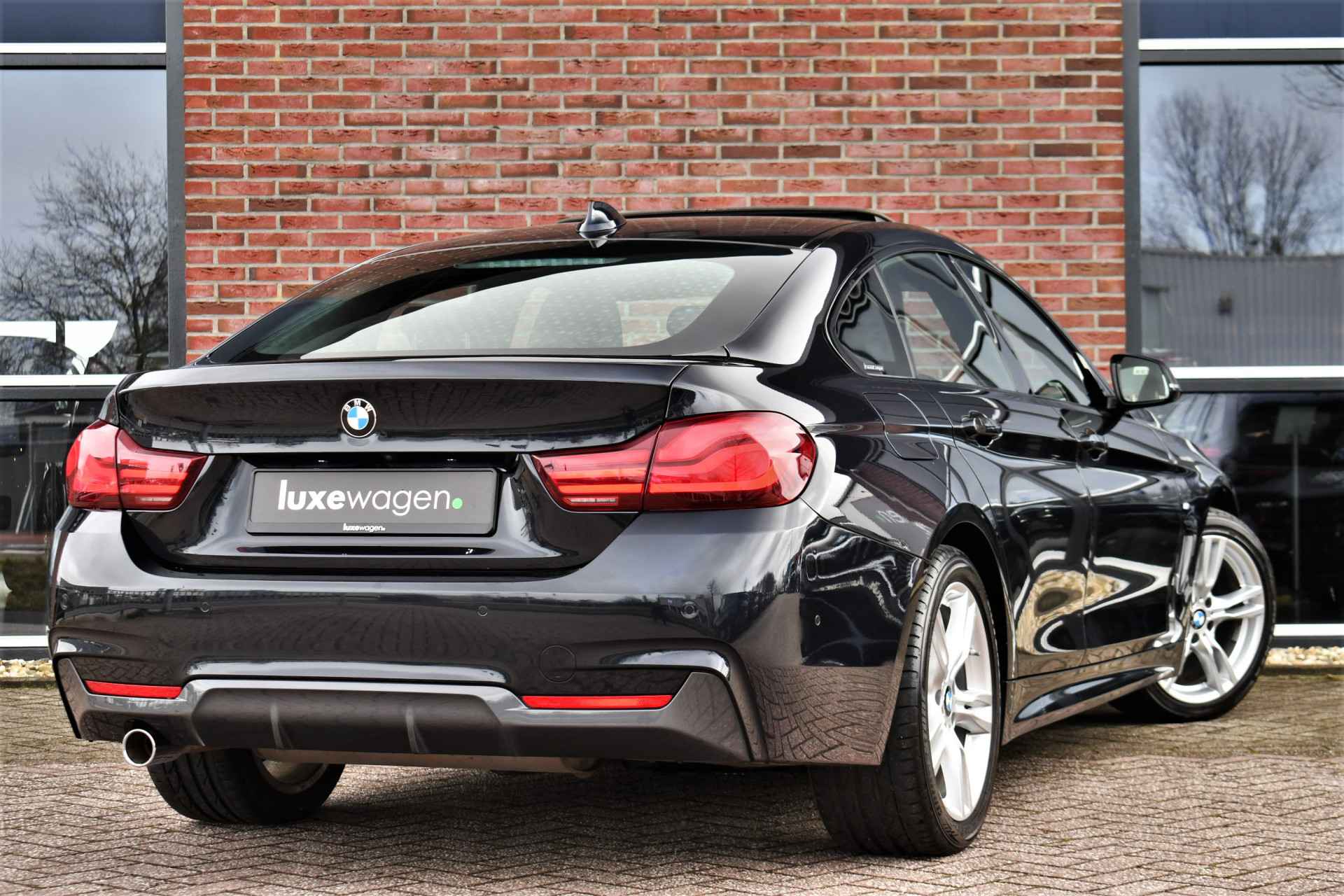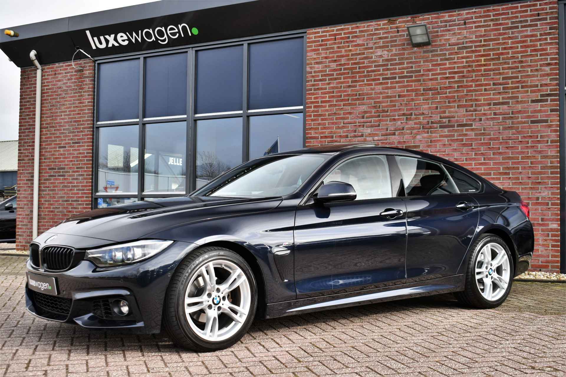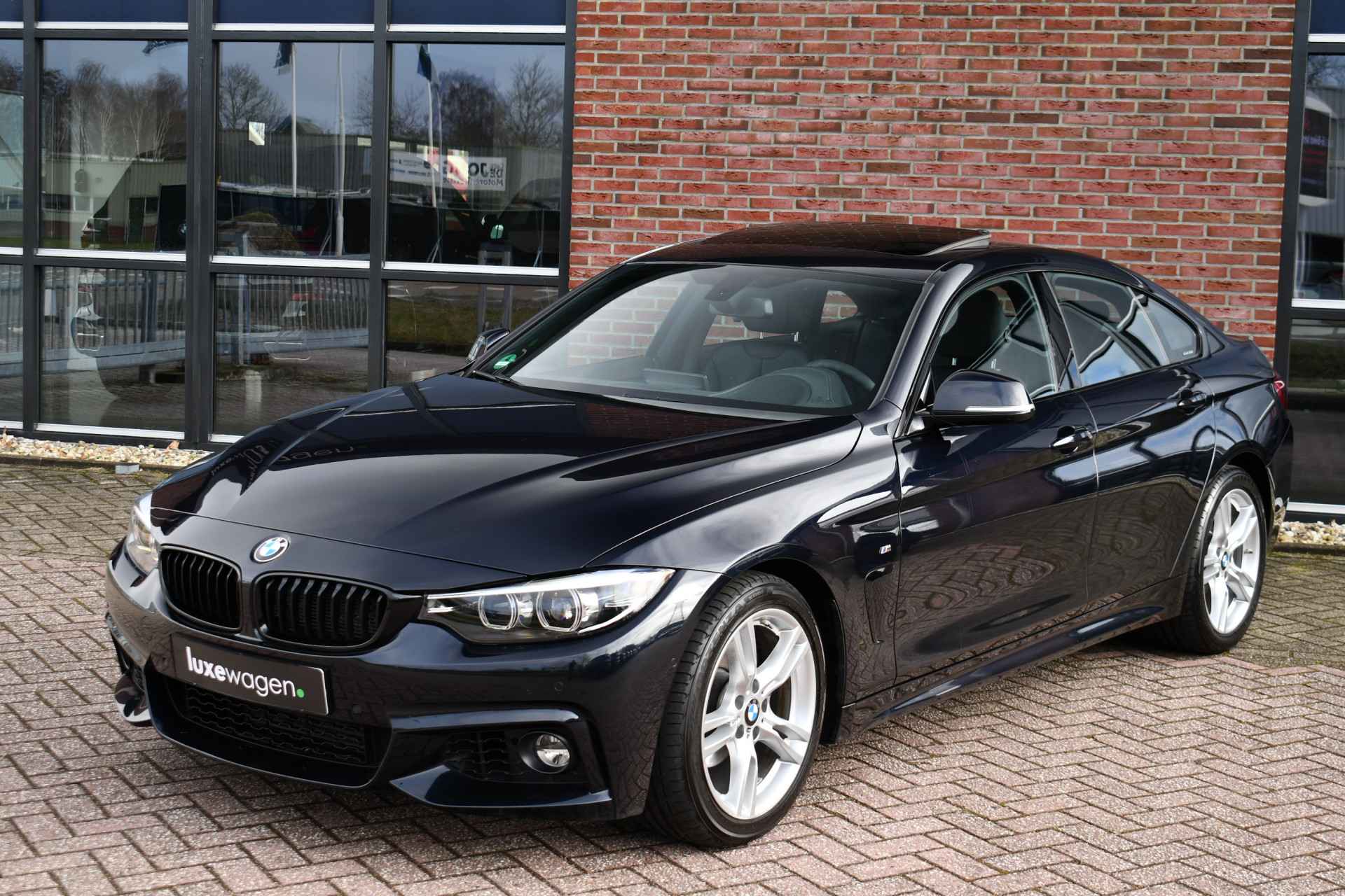 Nederlands geleverde 4-serie Gran Coupe in de kleur Carbon zwart, keurig onderhouden en compleet met: M-Sport pakket, elektrisch glazen dak, head-up display, camera achter, HiFi met DAB en compleet shadow line!