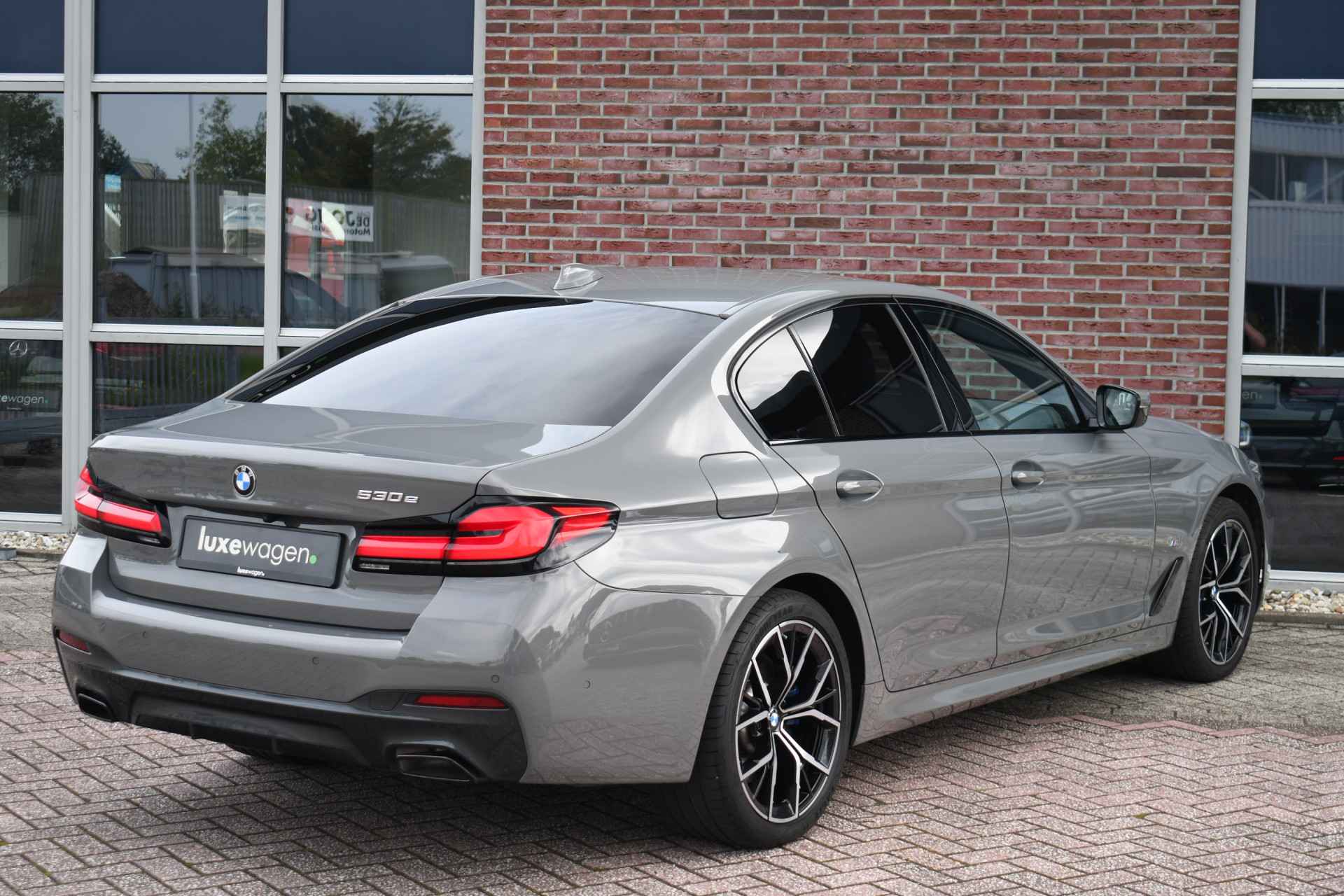 Deze 530e in Alvitgrau (uniek!) komt binnen. Compleet met adaptieve cruise control, elektrische trekhaak, head-up display, adaptieve demping, elektrische achterklep, compleet shadow line, etc! Getoonde 19 inch velgen hebben een meerprijs, wordt standaard geleverd op de originele 18 inch -sport wielen (styling 662M).