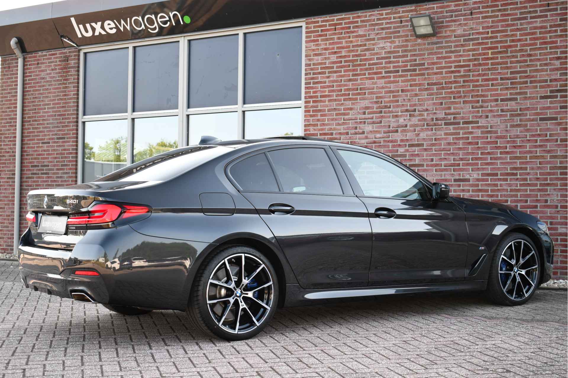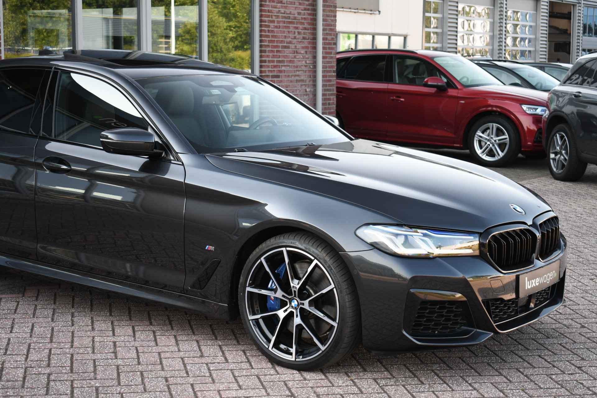 Bomvolle 540i Limousine M-Sport van het nieuwste model (LCI). Nieuwprijs eur. 110.855,-. Rechtstreeks afkomstig van BMW AG Duitsland met fabrieksgarantie tot en met dec-2023. Getoonde 20 inch originele BMW velgen hebben een meerprijs, wordt standaard geleverd op de originele 18 inch M-Sport velgen. Smetteloze auto, afkomstig van de eerste eigenaar. Met de perfecte opties: M-Sportpakket, panoramadak, comfortzetels, Laser-LED, Live Cockpit Prof, Driving Assistent Plus, head-up display, adaptief onderstel, display key met afstand parkeren, topview 3D-camera's, elektrische trekhaak, etc!