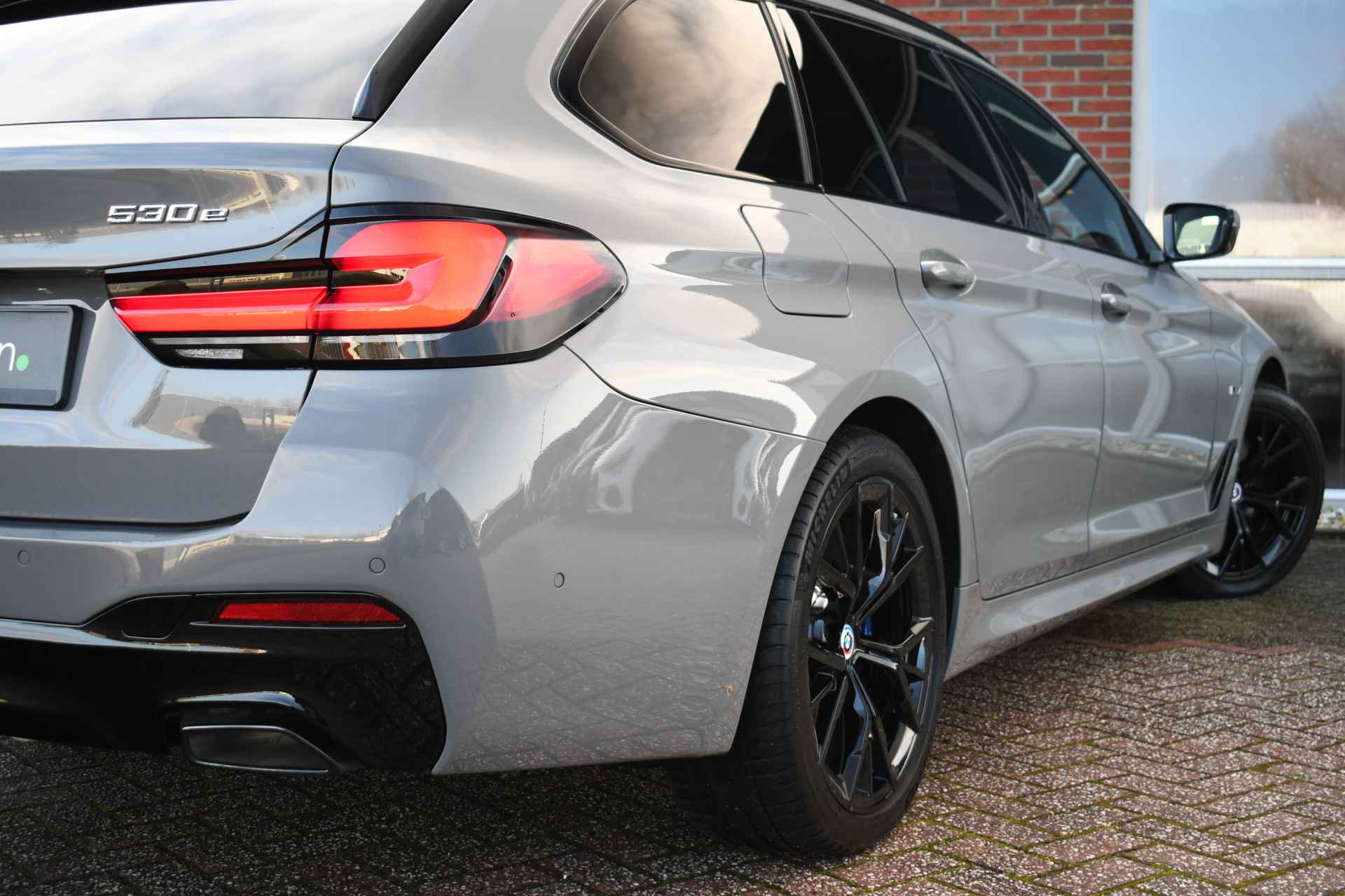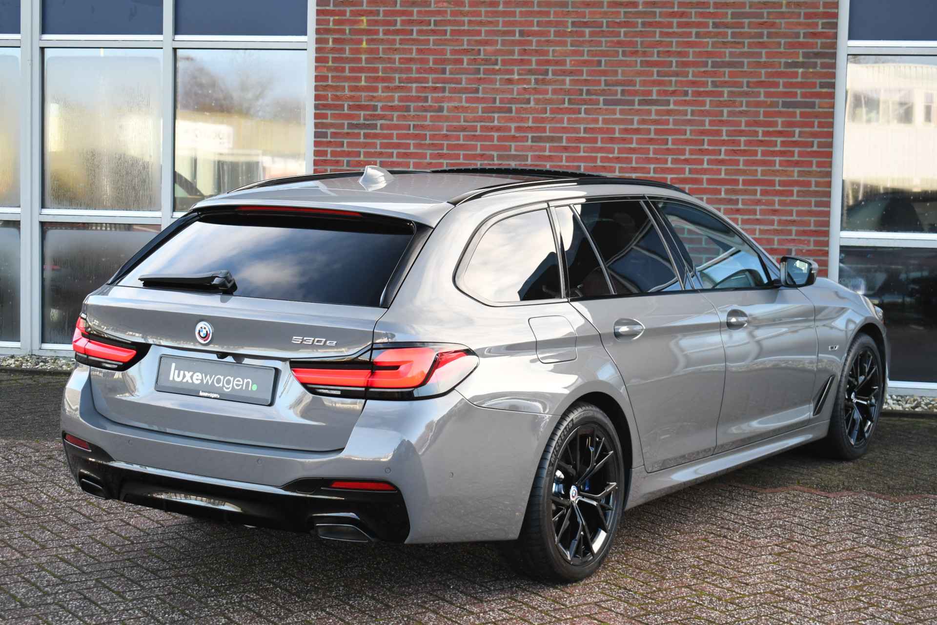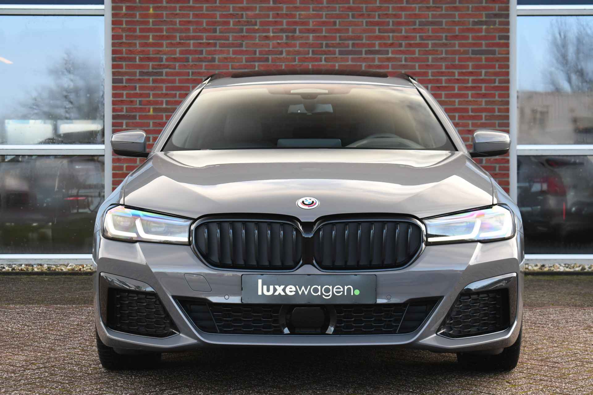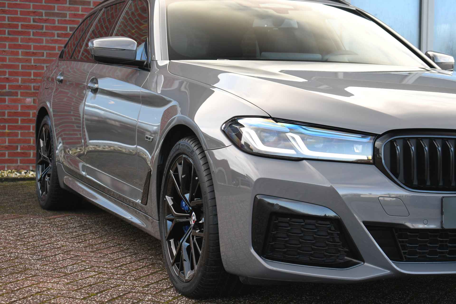 Deze 530e Touring M-Sport in de unieke kleur Bernstein grau is bijzonder compleet met panoramadak, adaptieve cruise, laser-LED, el. trekhaak, head-up display, shadow-line etc!