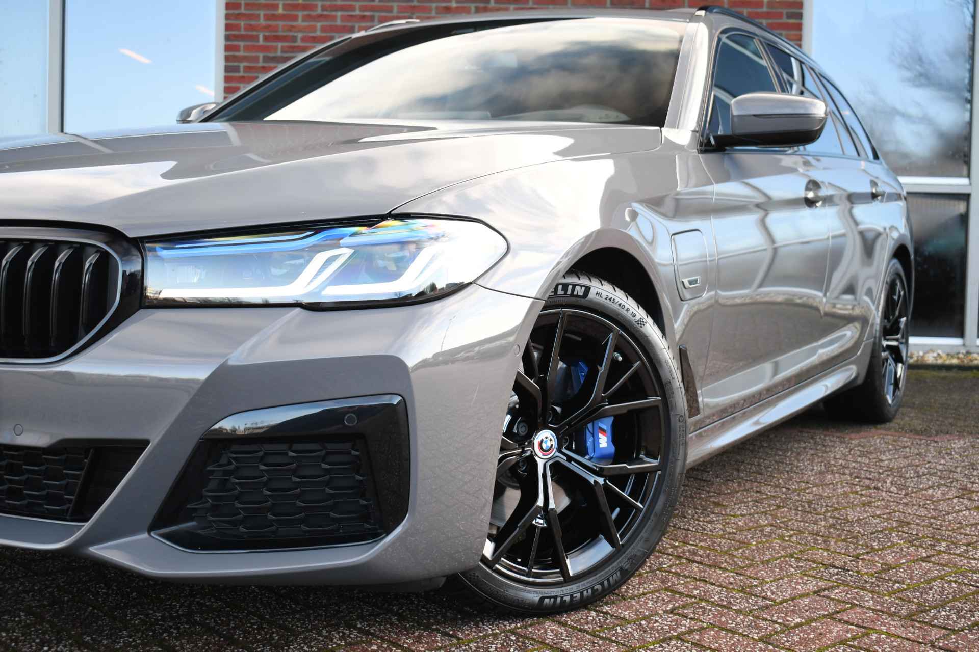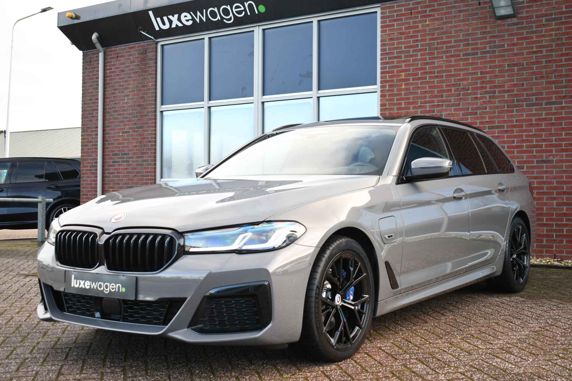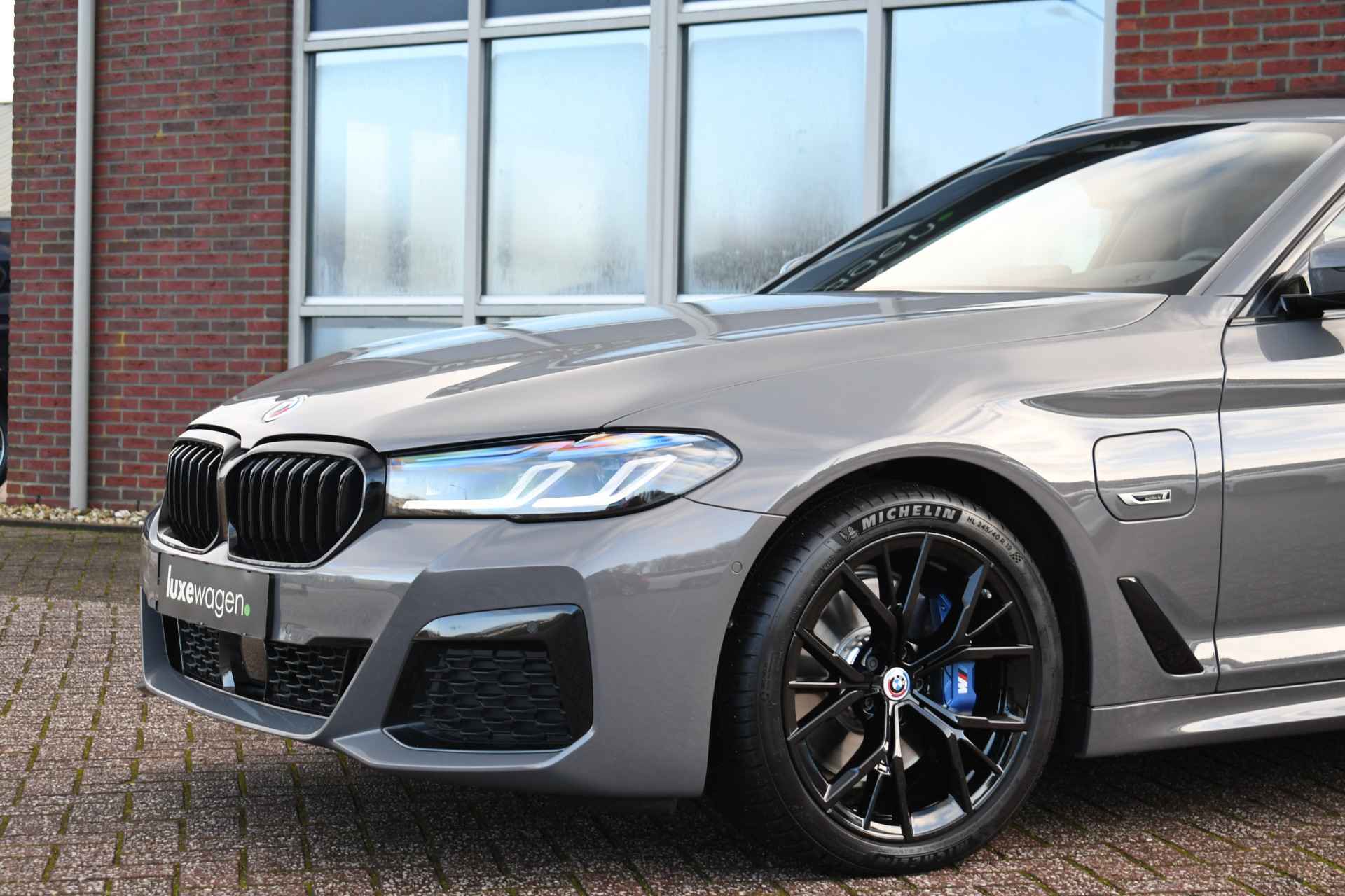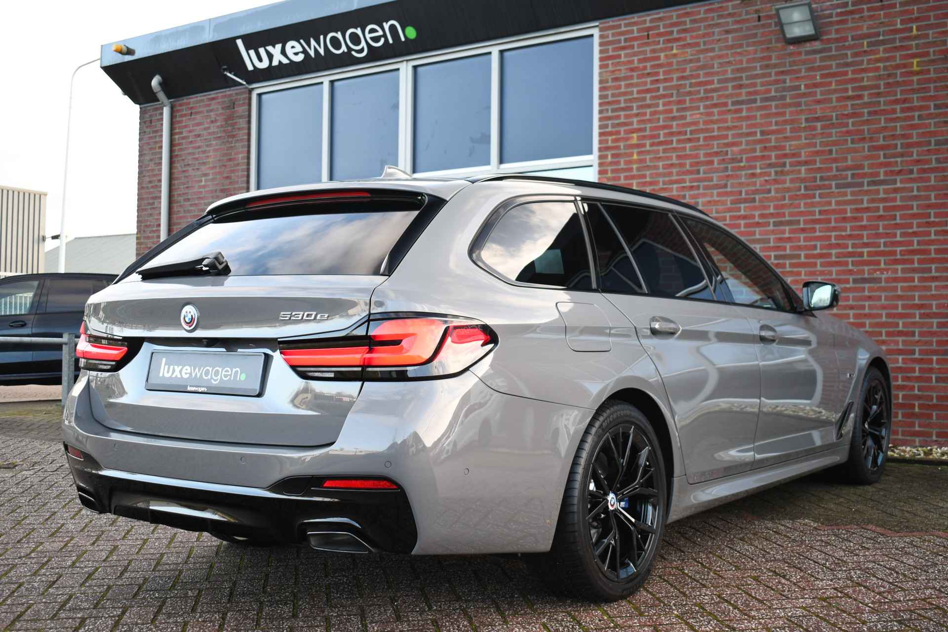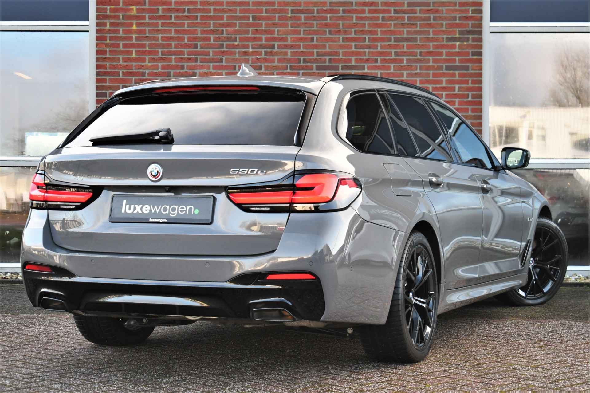 Deze 530e Touring M-Sport in de unieke kleur Bernstein grau is bijzonder compleet met panoramadak, adaptieve cruise, laser-LED, el. trekhaak, head-up display, shadow-line etc!