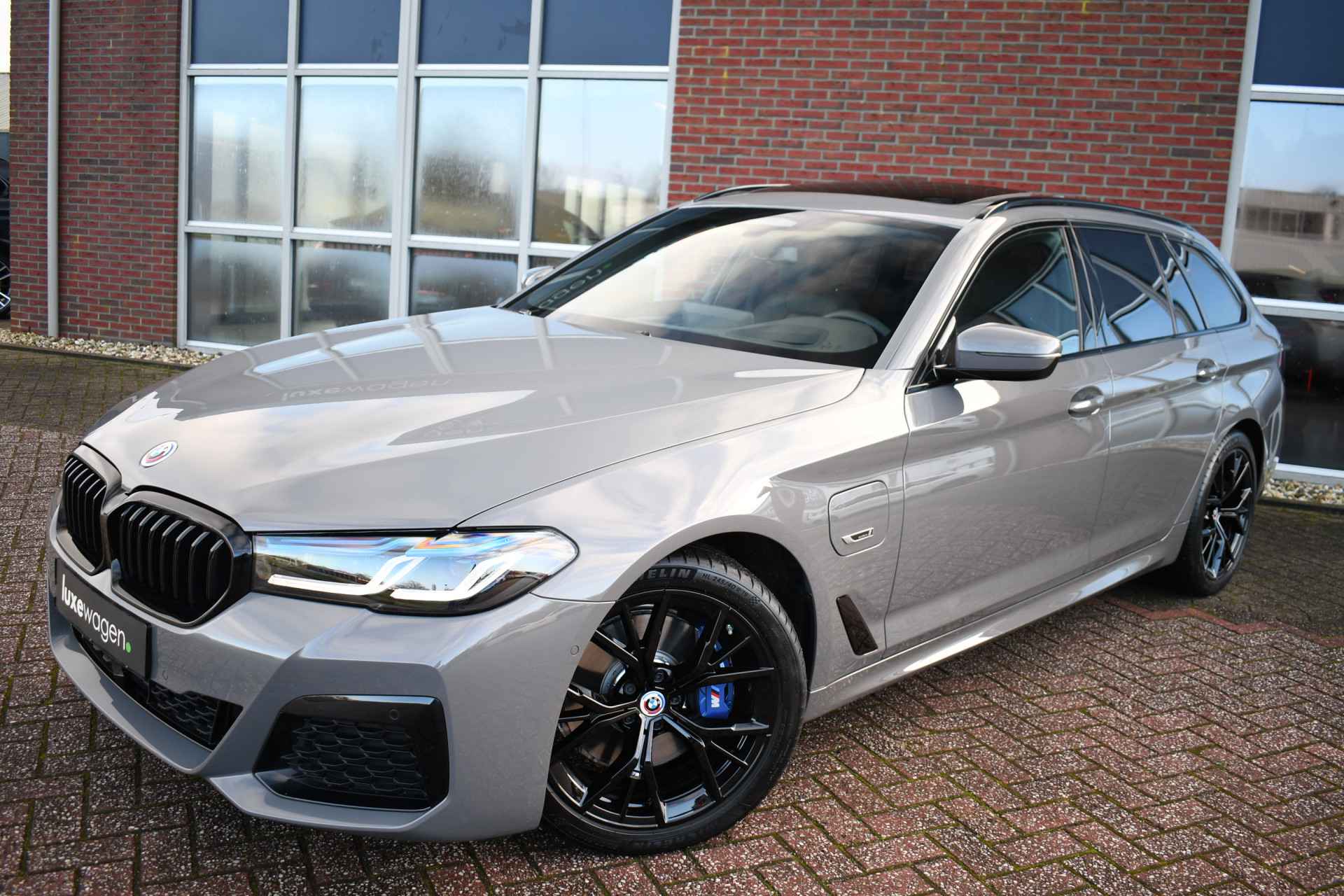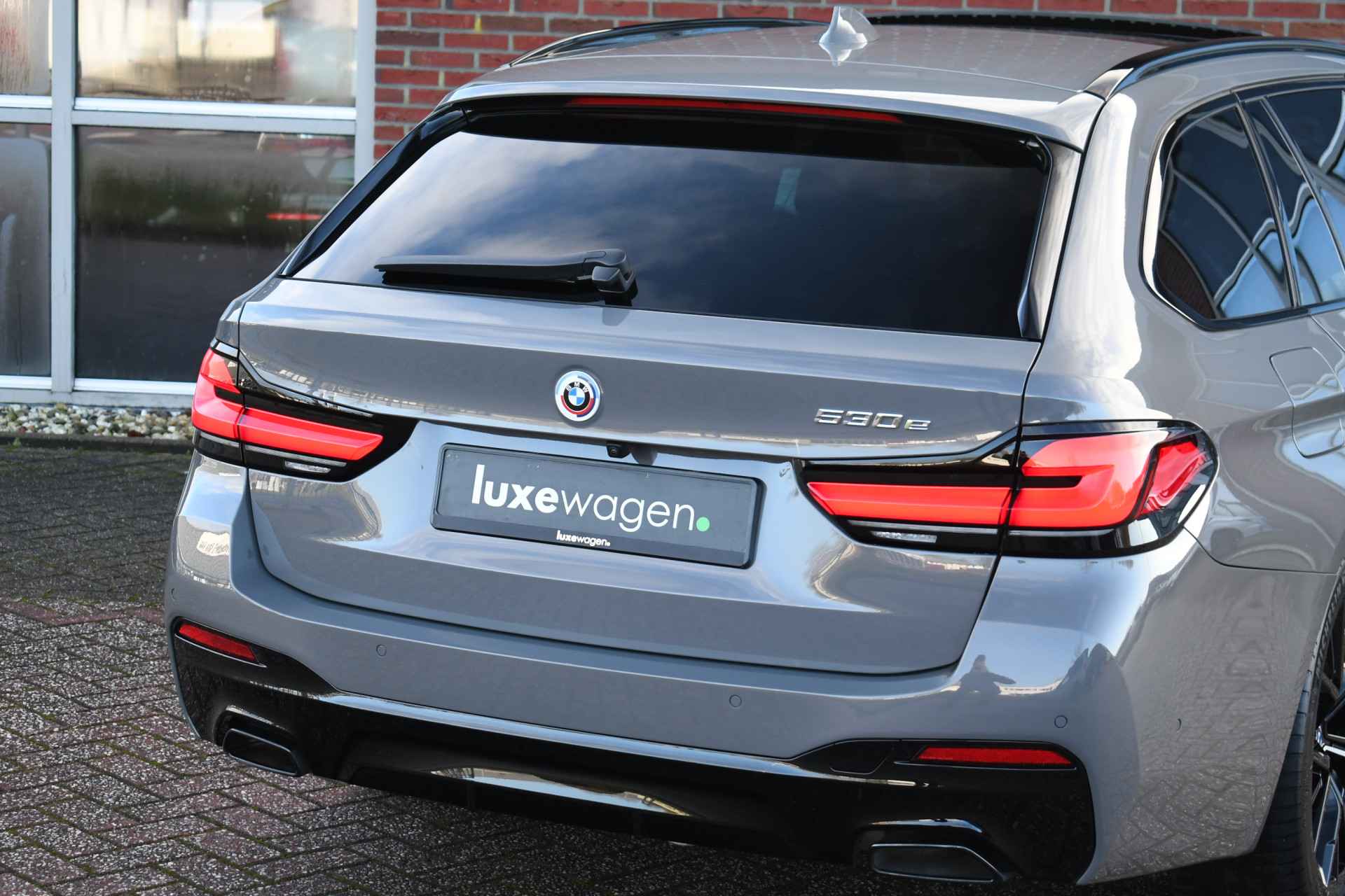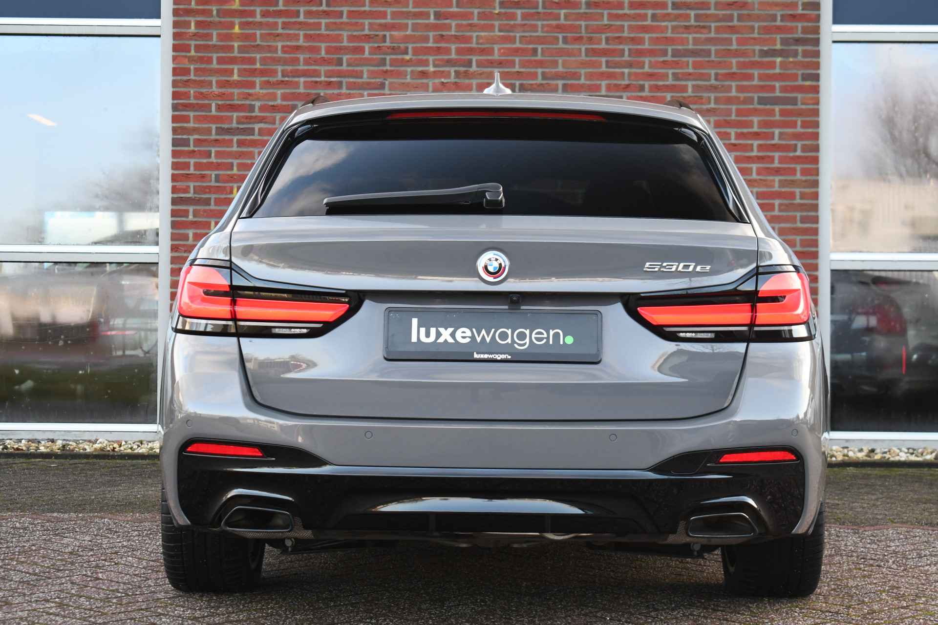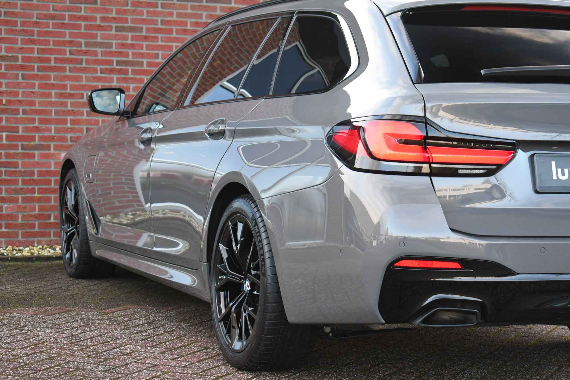 Deze 530e Touring M-Sport in de unieke kleur Bernstein grau is bijzonder compleet met panoramadak, adaptieve cruise, laser-LED, el. trekhaak, head-up display, shadow-line etc!