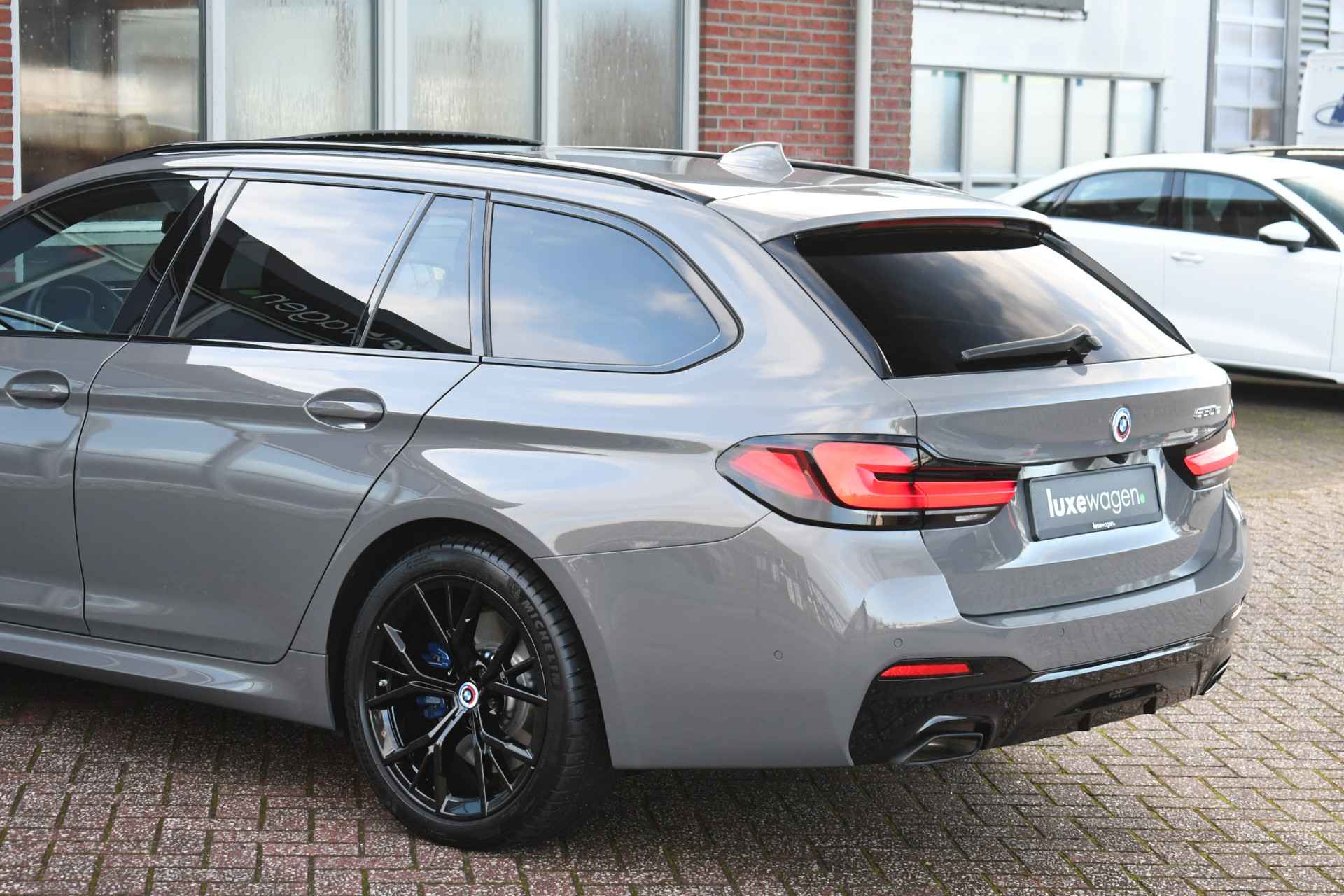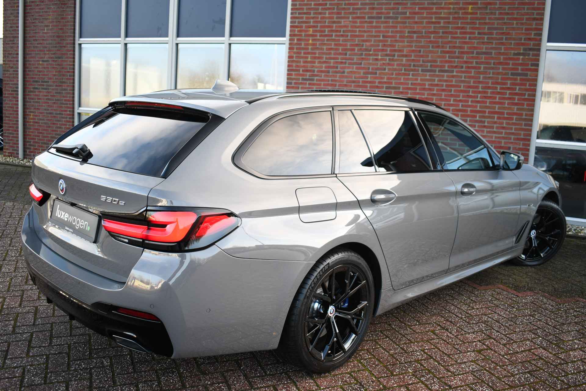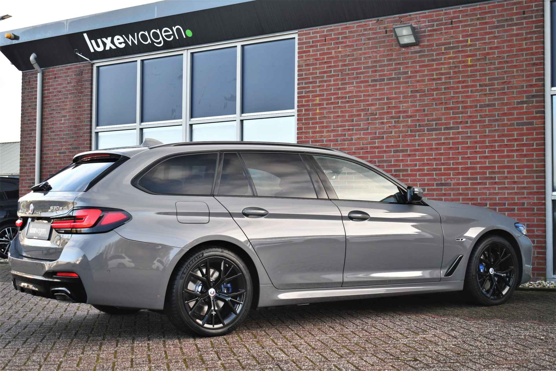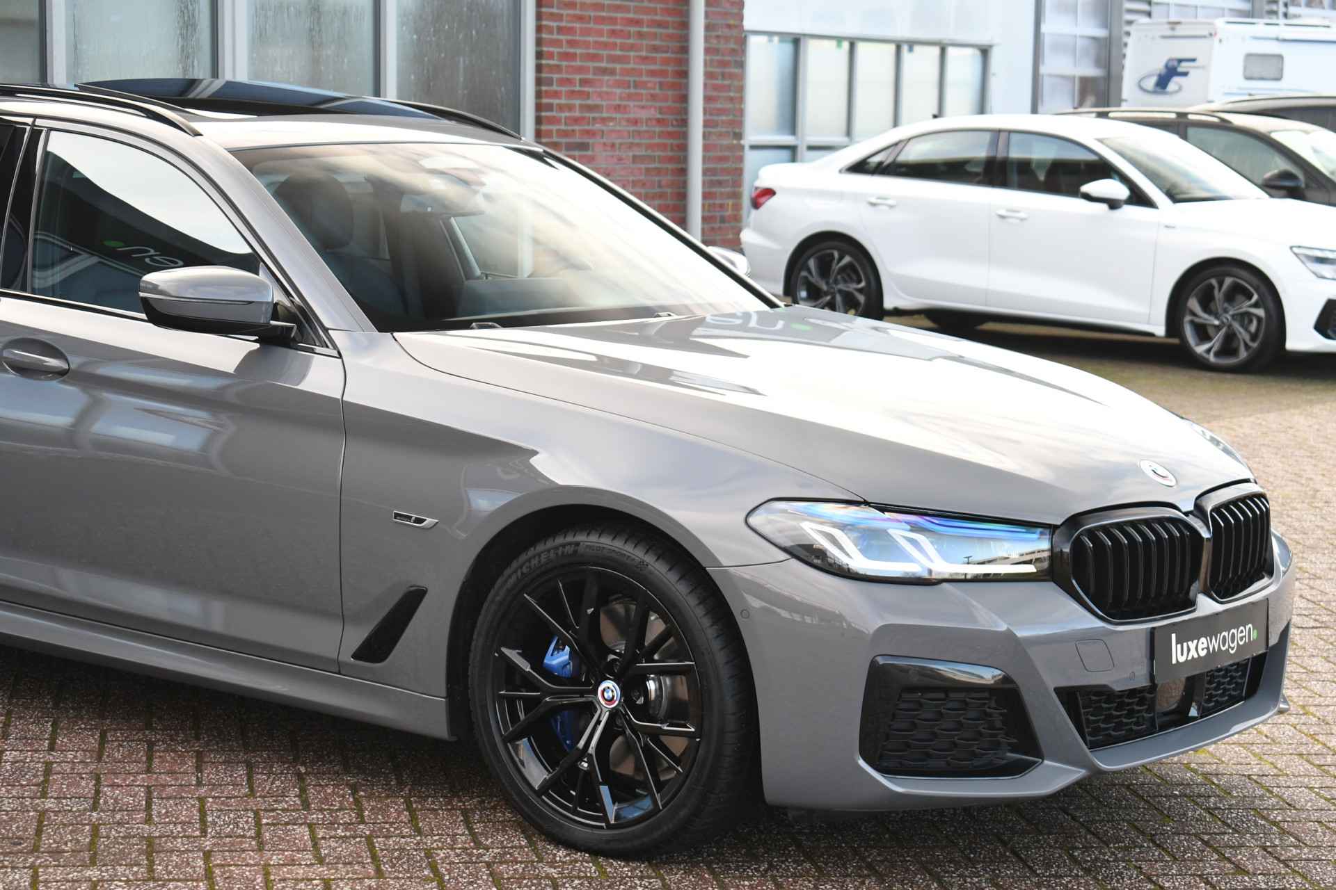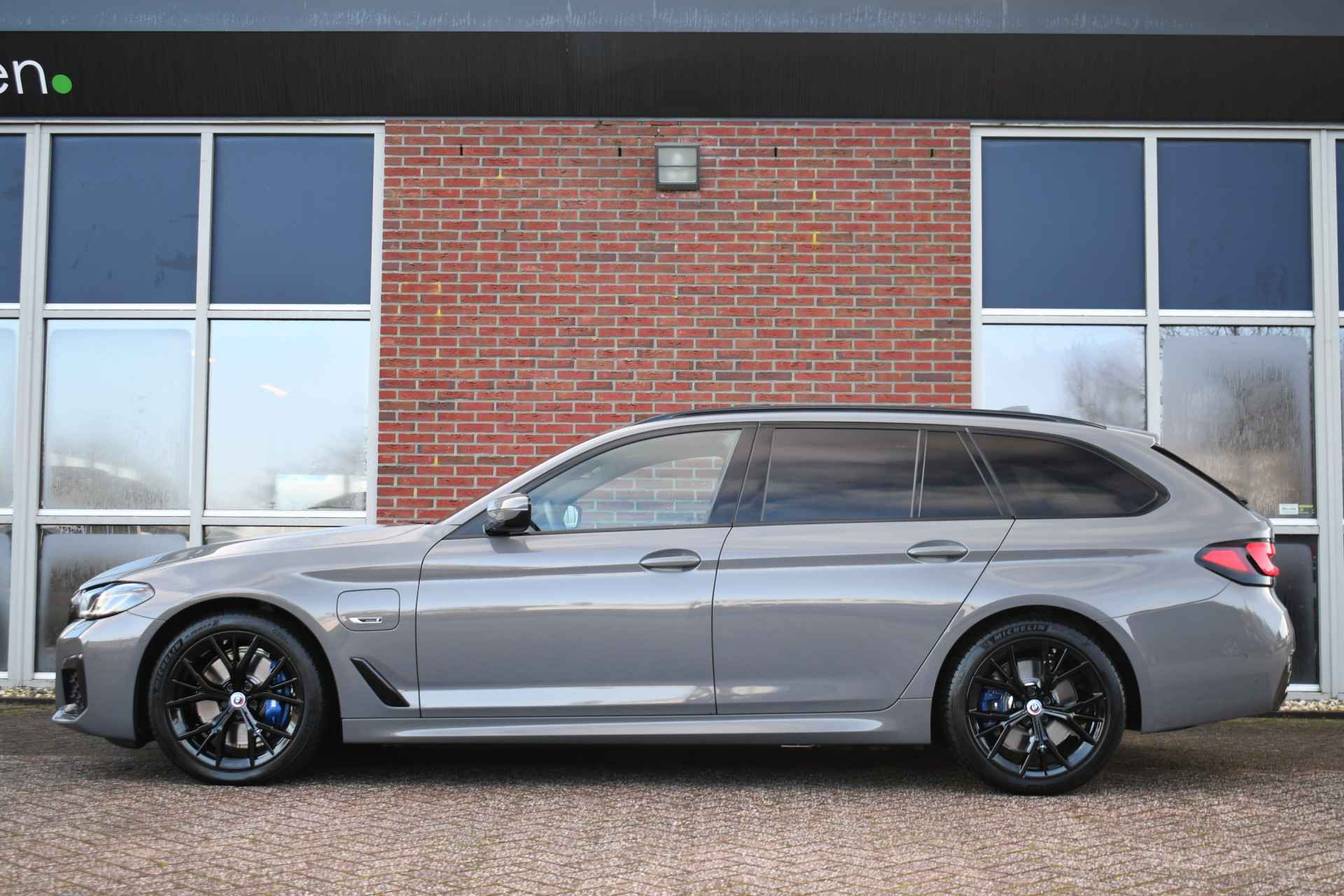 Deze 530e Touring M-Sport in de unieke kleur Bernstein grau is bijzonder compleet met panoramadak, adaptieve cruise, laser-LED, el. trekhaak, head-up display, shadow-line etc!