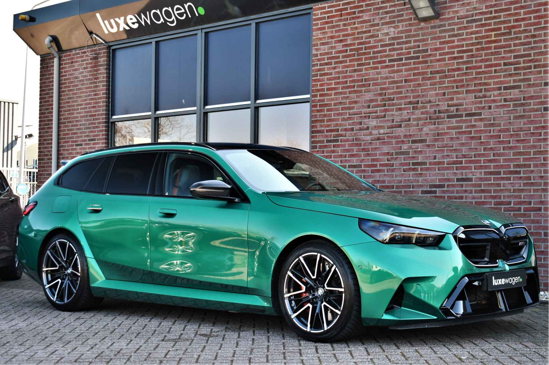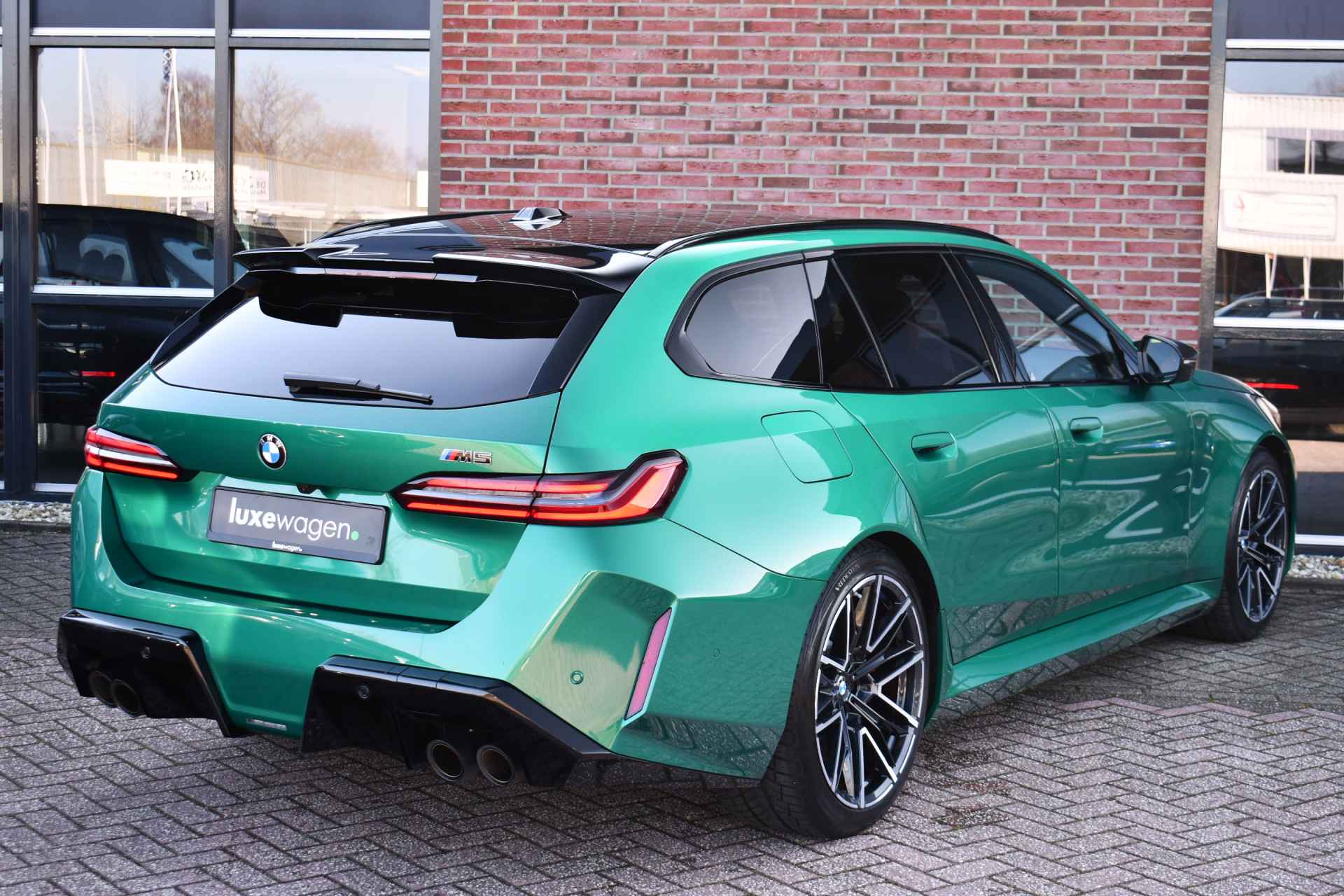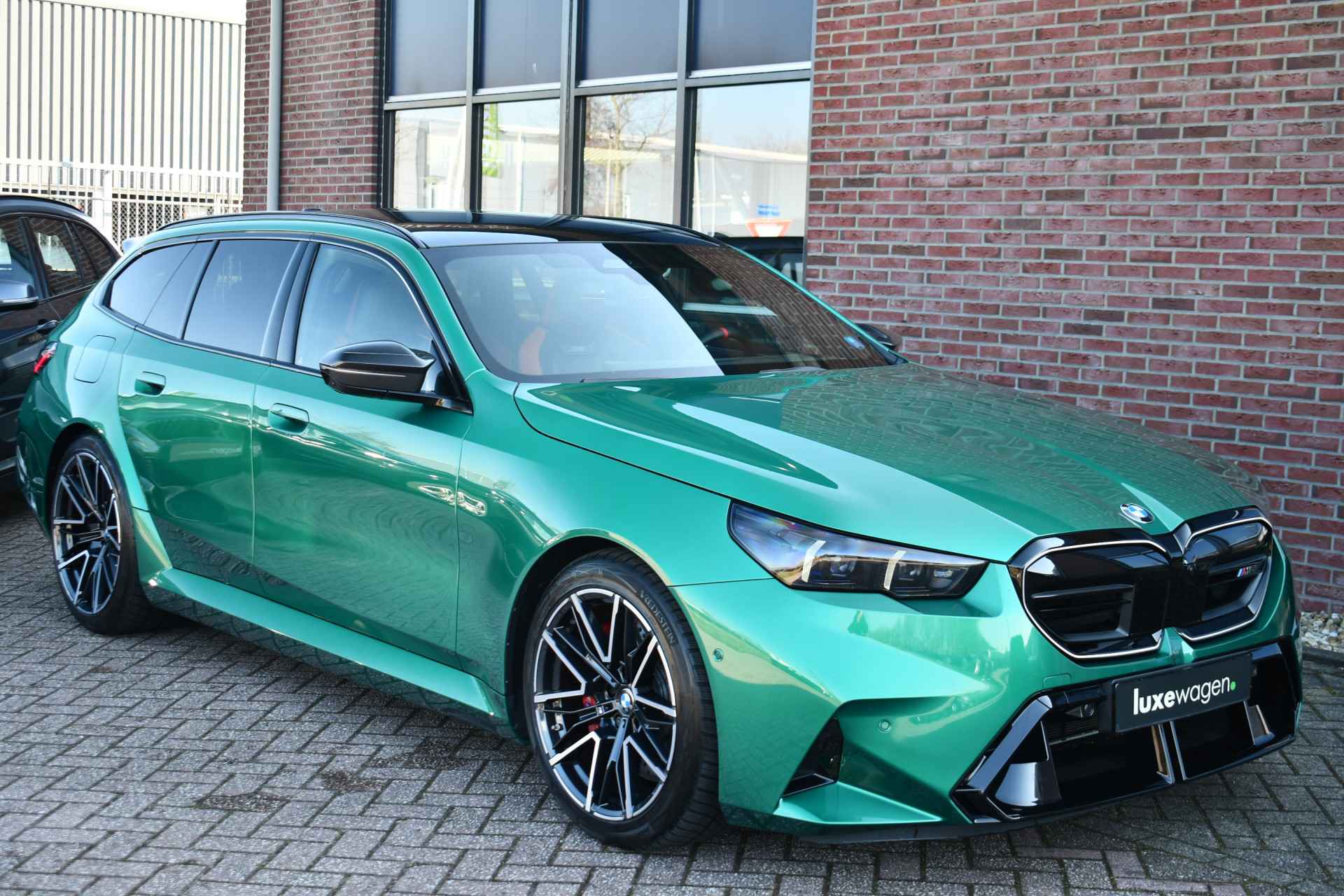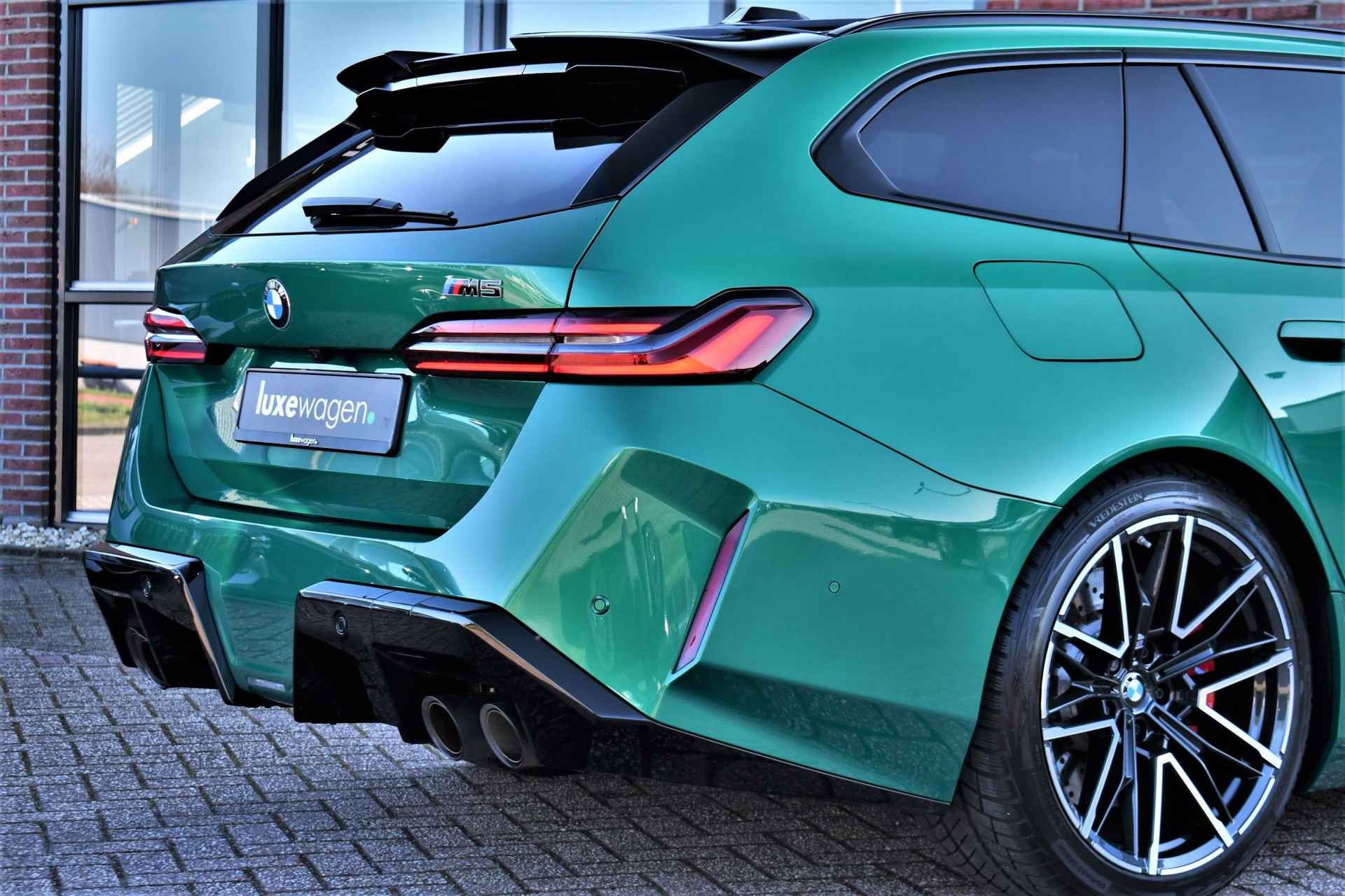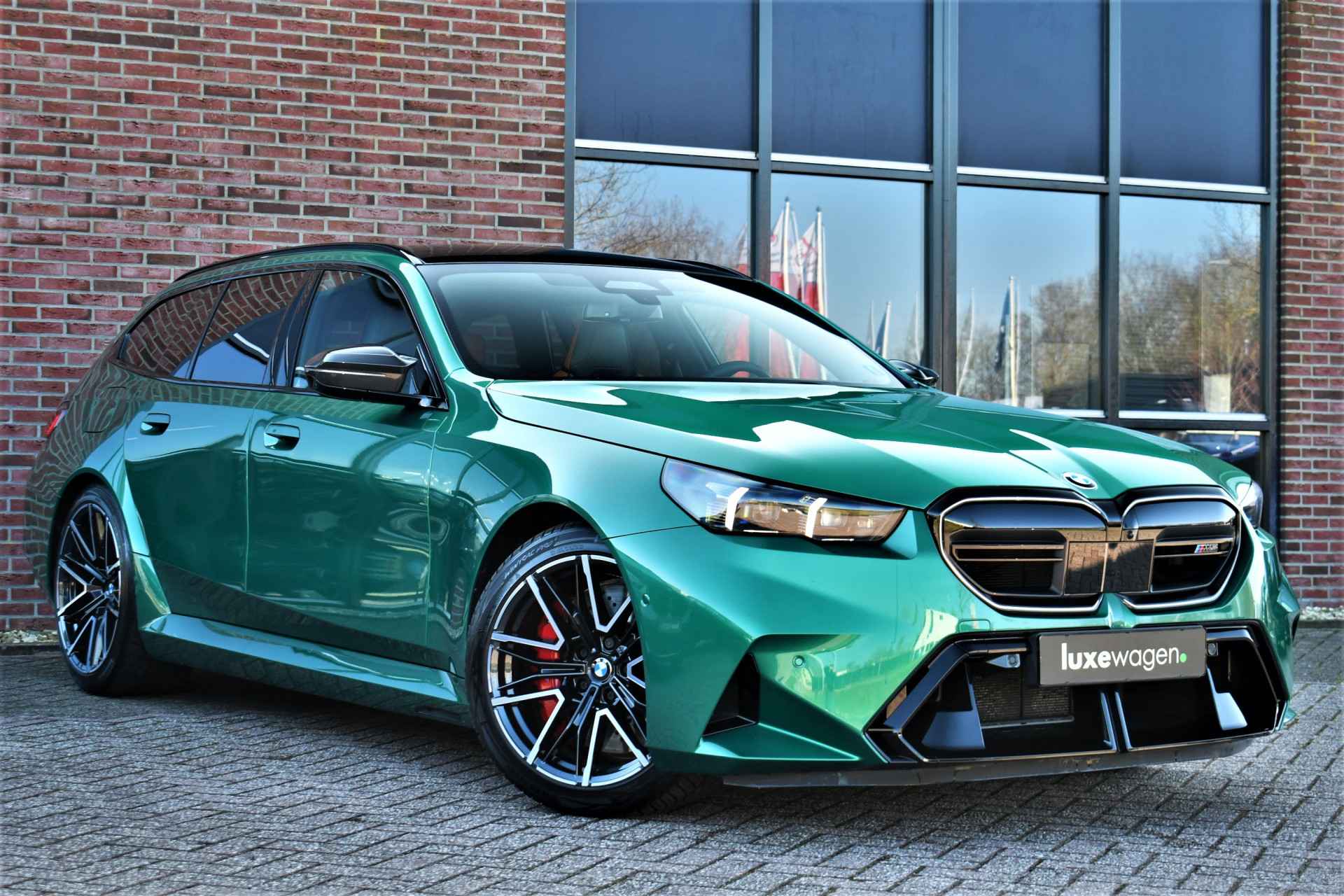 Smetteloze M5 Touring, afkomstig van BMW AG. Veel opties: panoramadak, Driving assistent profesional, M-Driverspack, 2x TV schermen achterin, Comfort-pack, alcantara hemelbekleding, carbon spiegelkappen, stoelverkoeling, stuurverwarming, achterbankverwarming, Bowers & Wilkens, etc. Reeds voorzien van klasse 4 alarmsysteem.