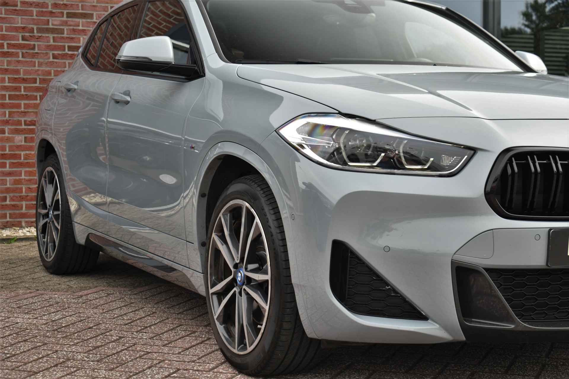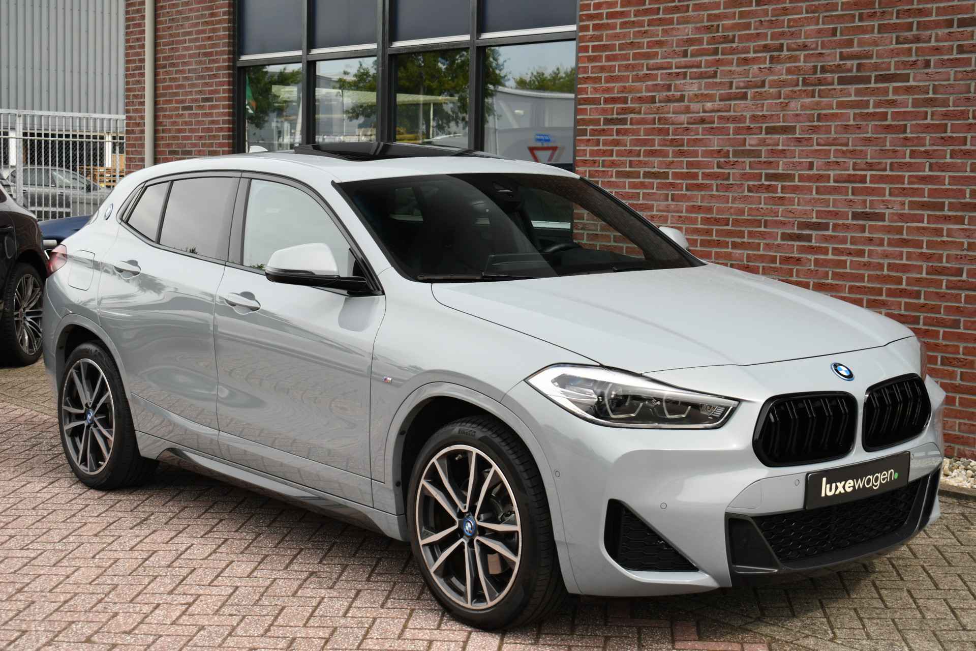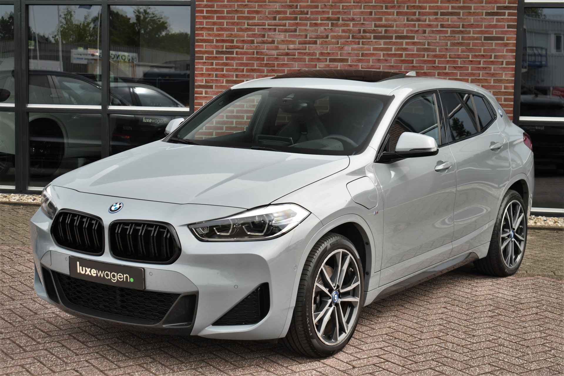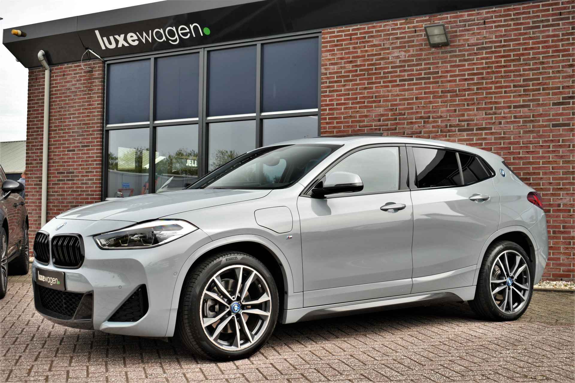 Deze hybride X2 is perfect uitgevoerd in Brookyn grey met zwarte lederen M-zetels. En veel voller worden ze niet: M-Sportpakket, panoramadak, 19 inch velgen, camera achter, head-up display, elektrisch verstelbare stoelen, elektrische achterklep, etc!
