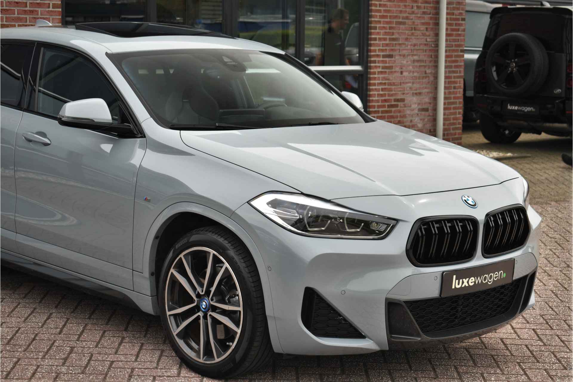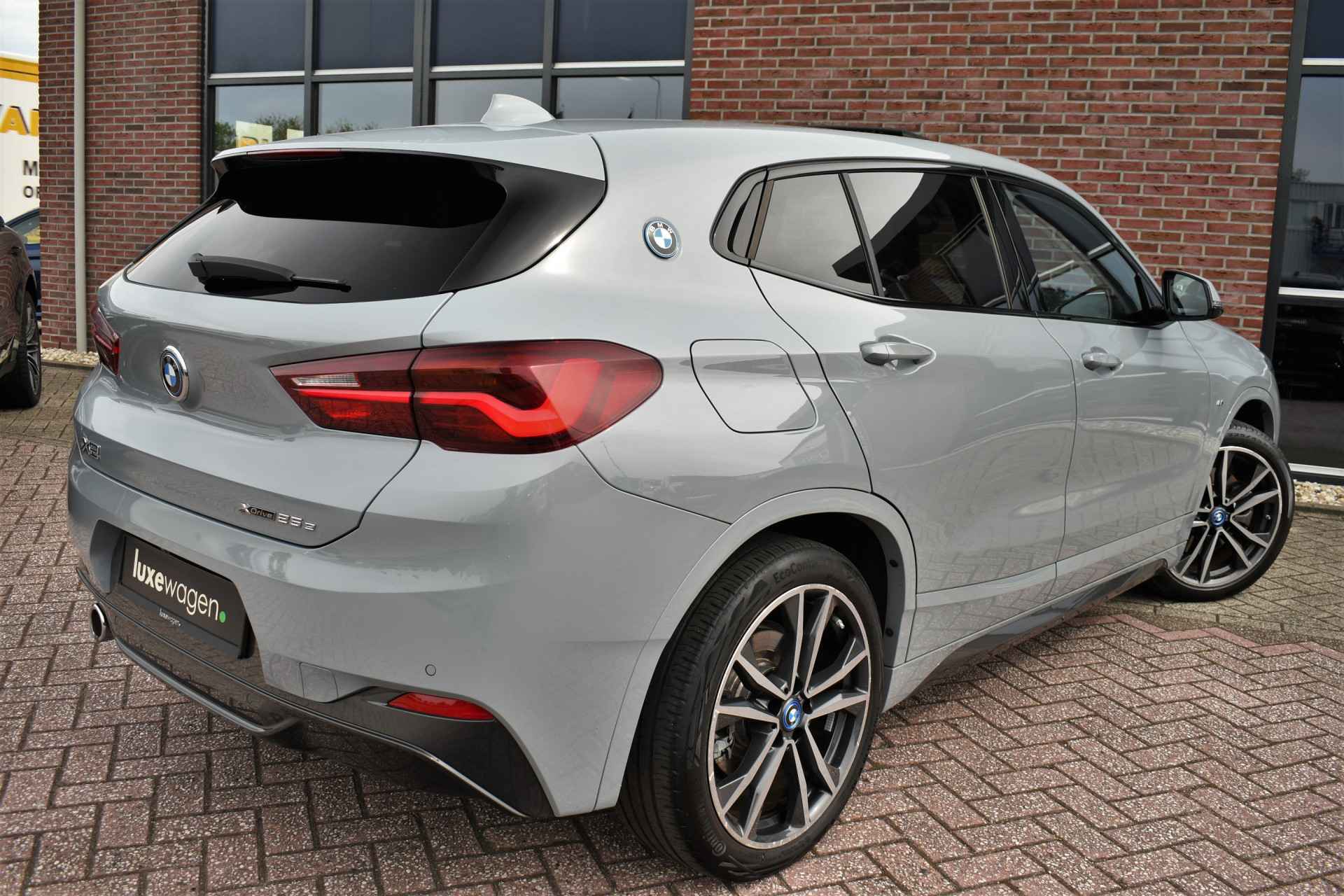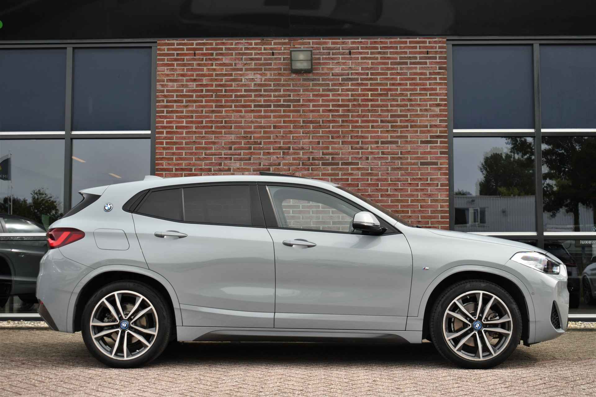 Deze hybride X2 is perfect uitgevoerd in Brookyn grey met zwarte lederen M-zetels. En veel voller worden ze niet: M-Sportpakket, panoramadak, 19 inch velgen, camera achter, head-up display, elektrisch verstelbare stoelen, elektrische achterklep, etc!