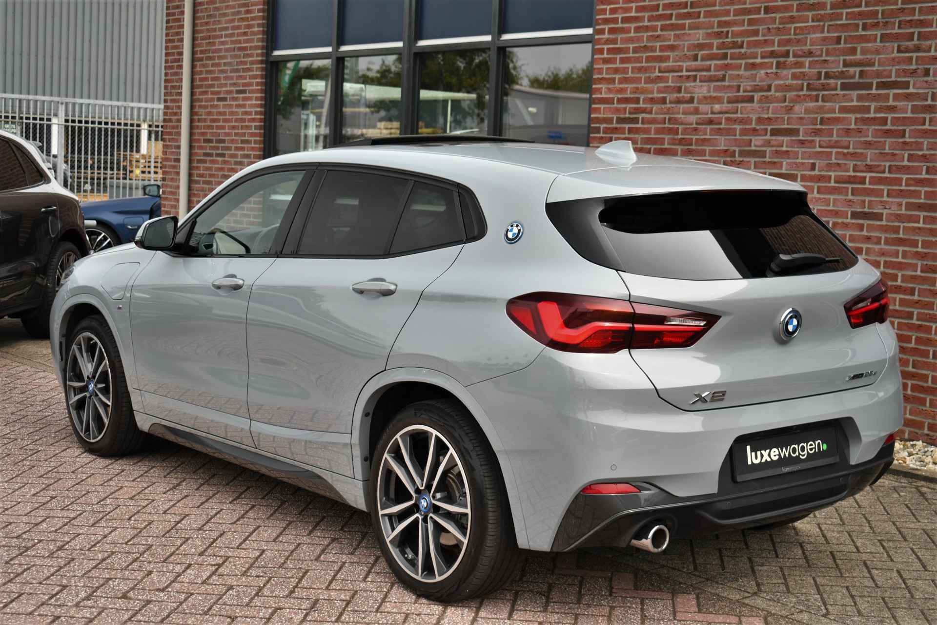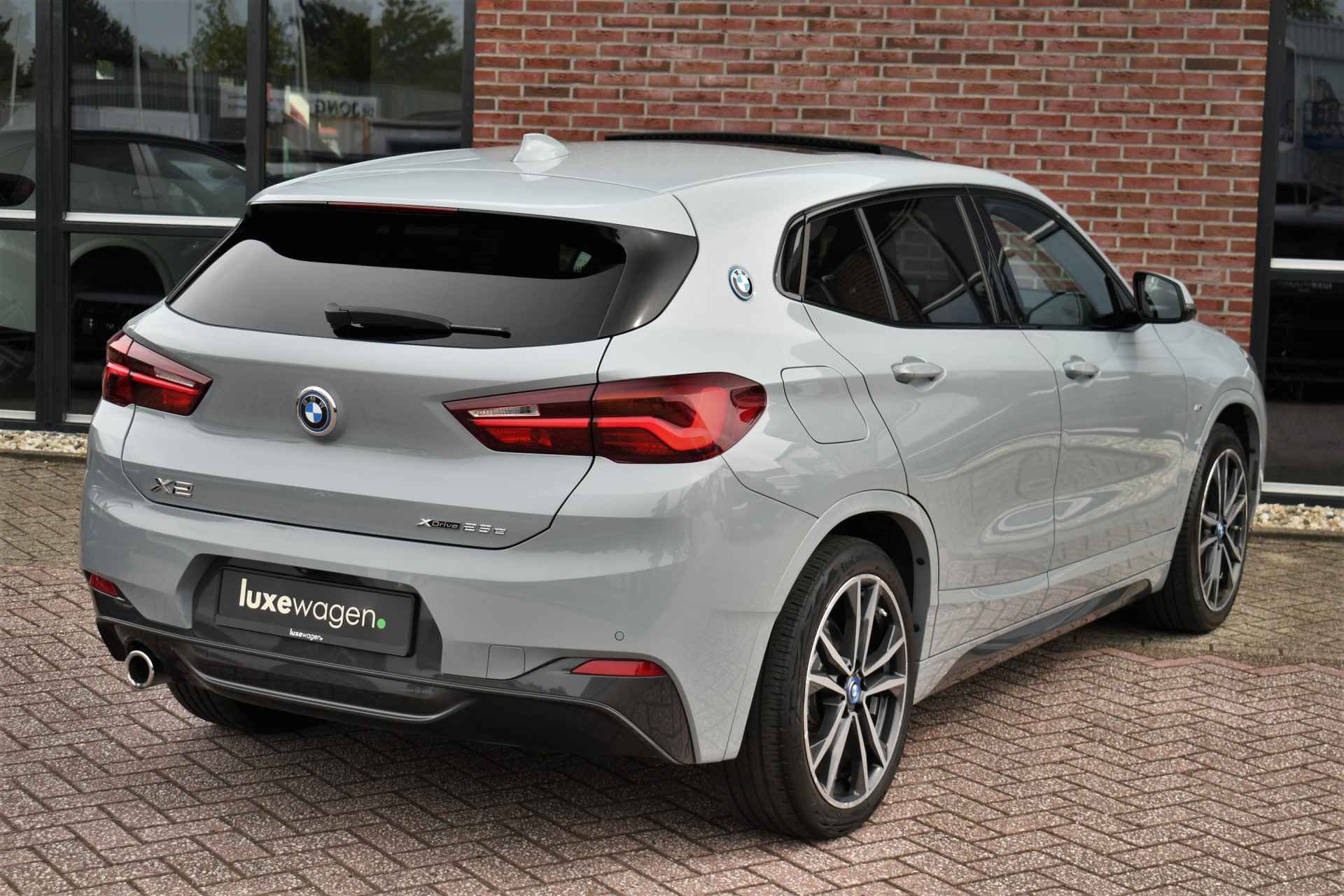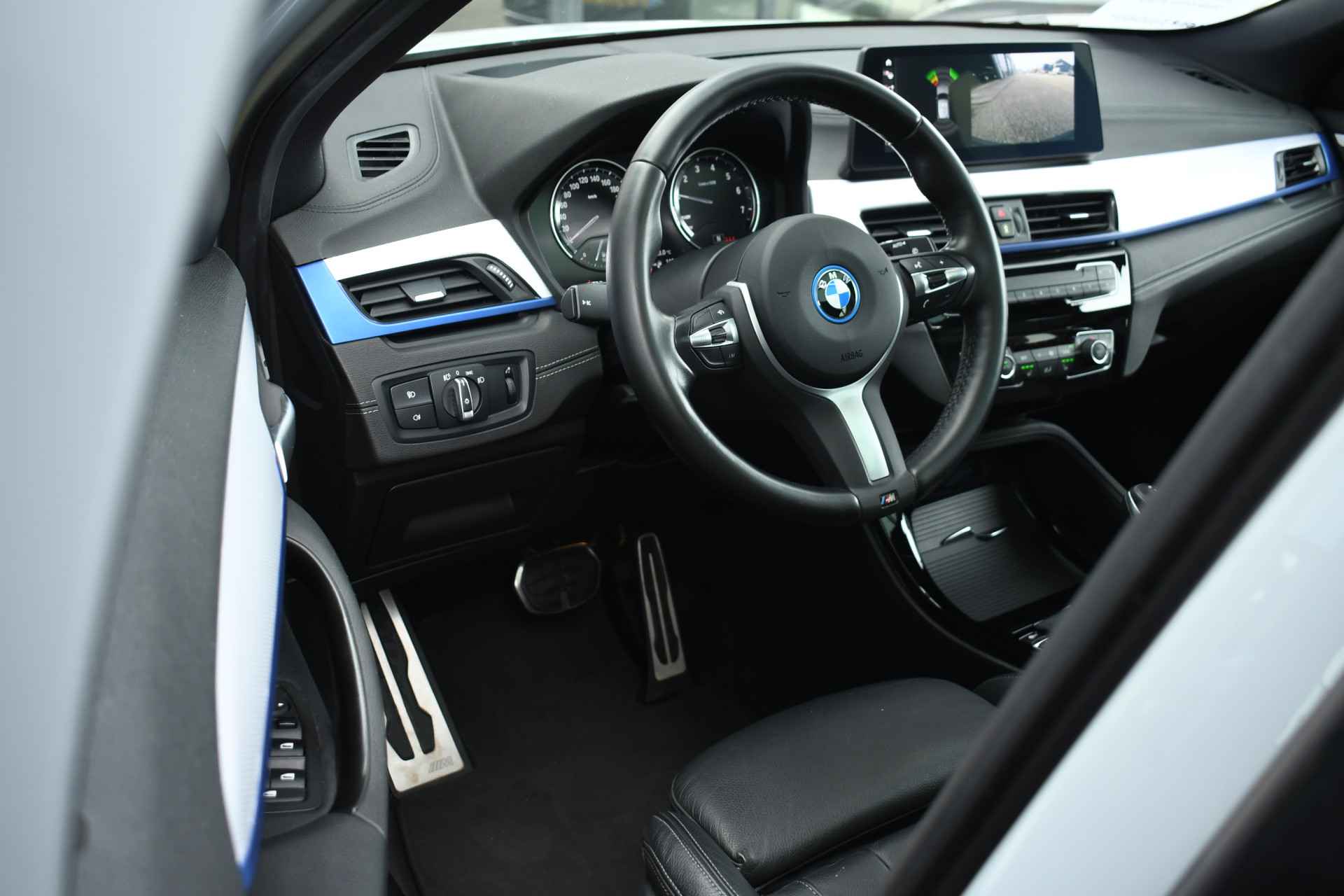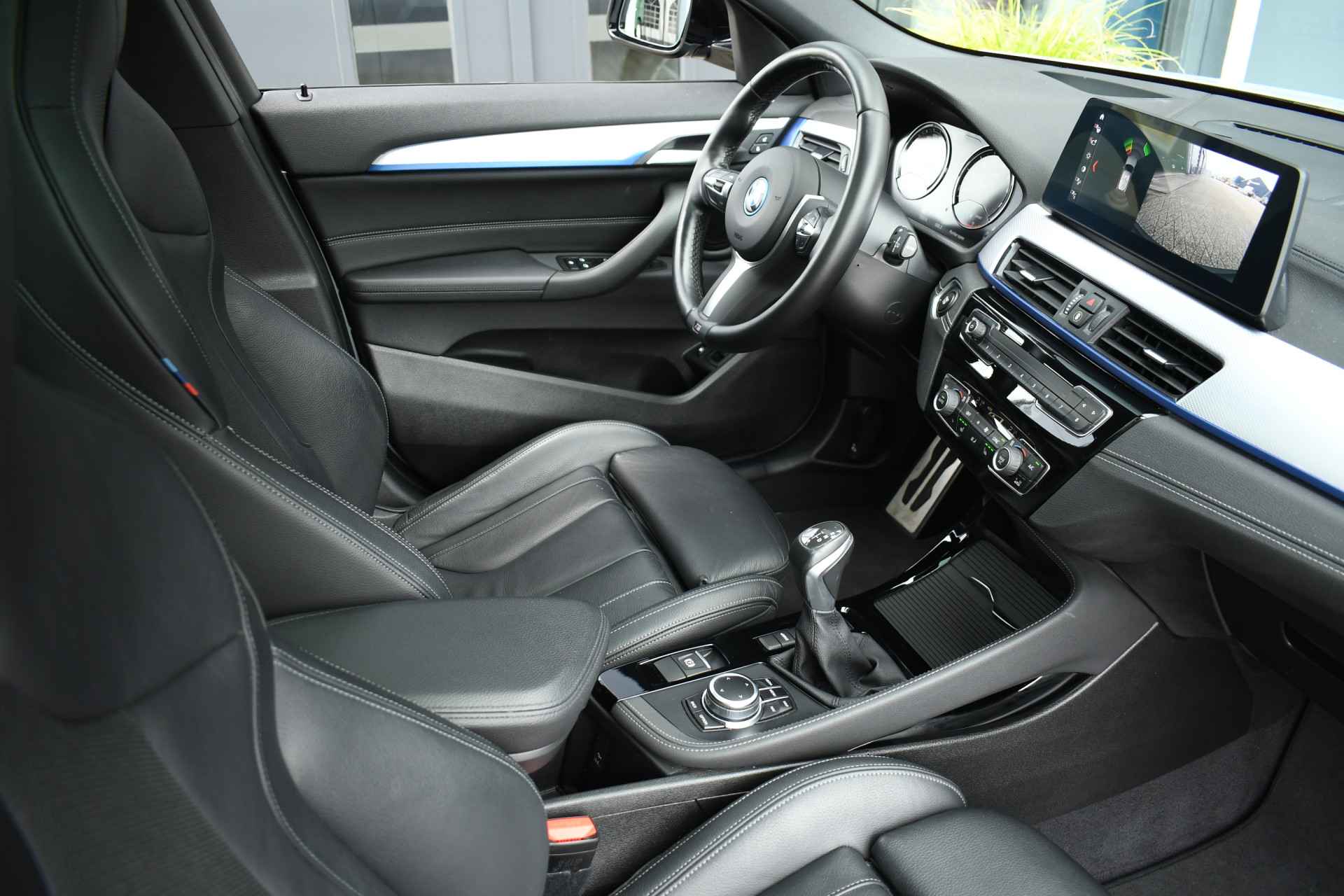 Deze hybride X2 is perfect uitgevoerd in Brookyn grey met zwarte lederen M-zetels. En veel voller worden ze niet: M-Sportpakket, panoramadak, 19 inch velgen, camera achter, head-up display, elektrisch verstelbare stoelen, elektrische achterklep, etc!