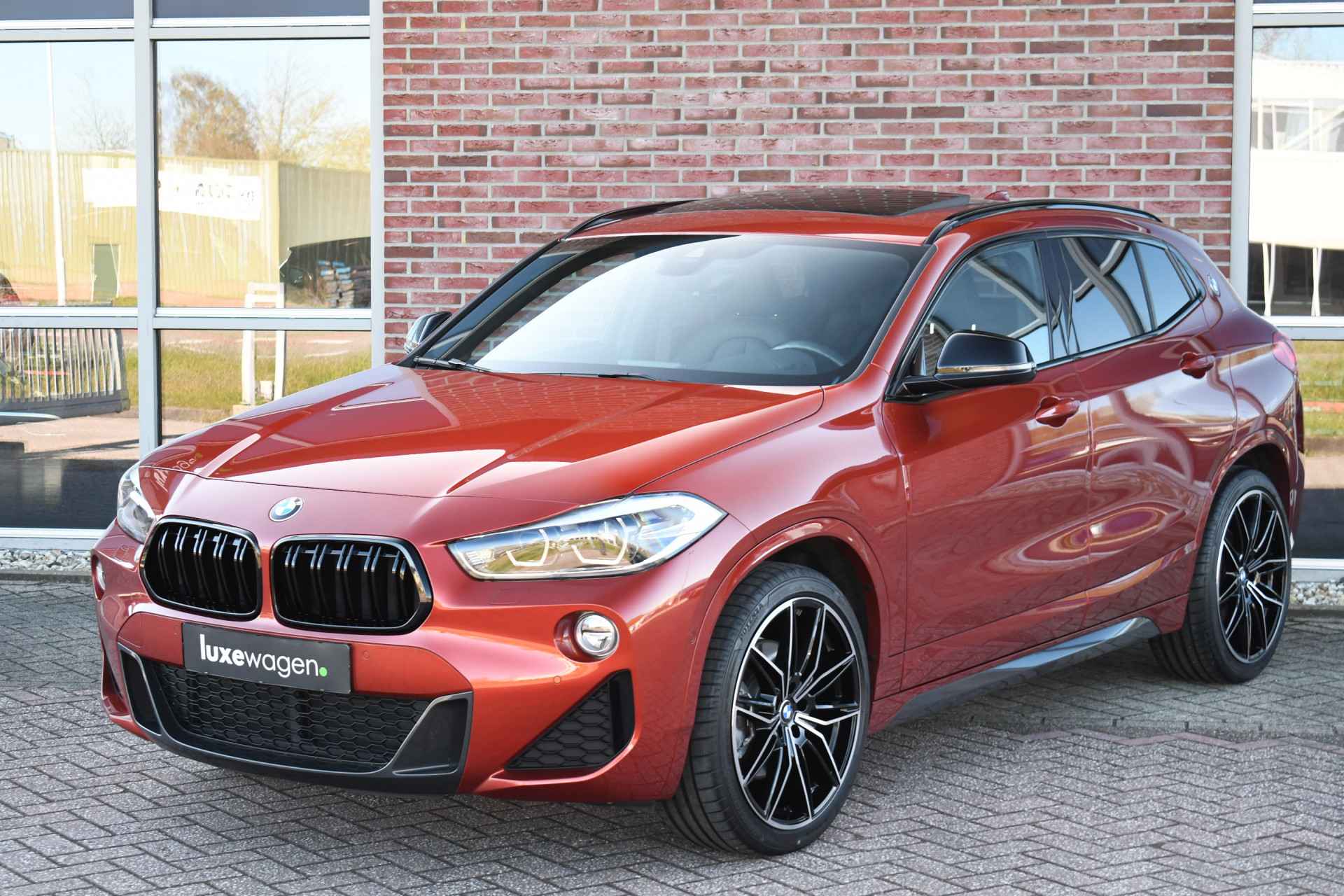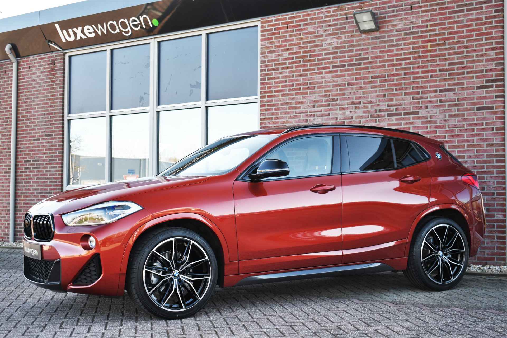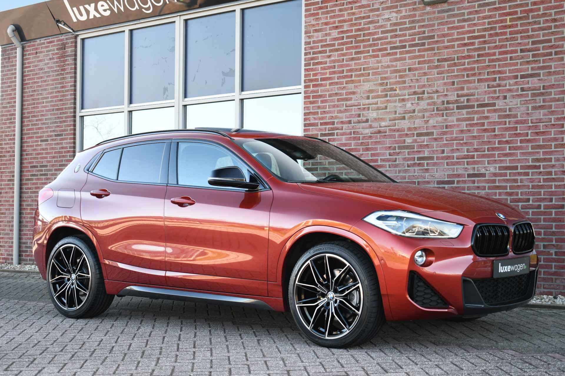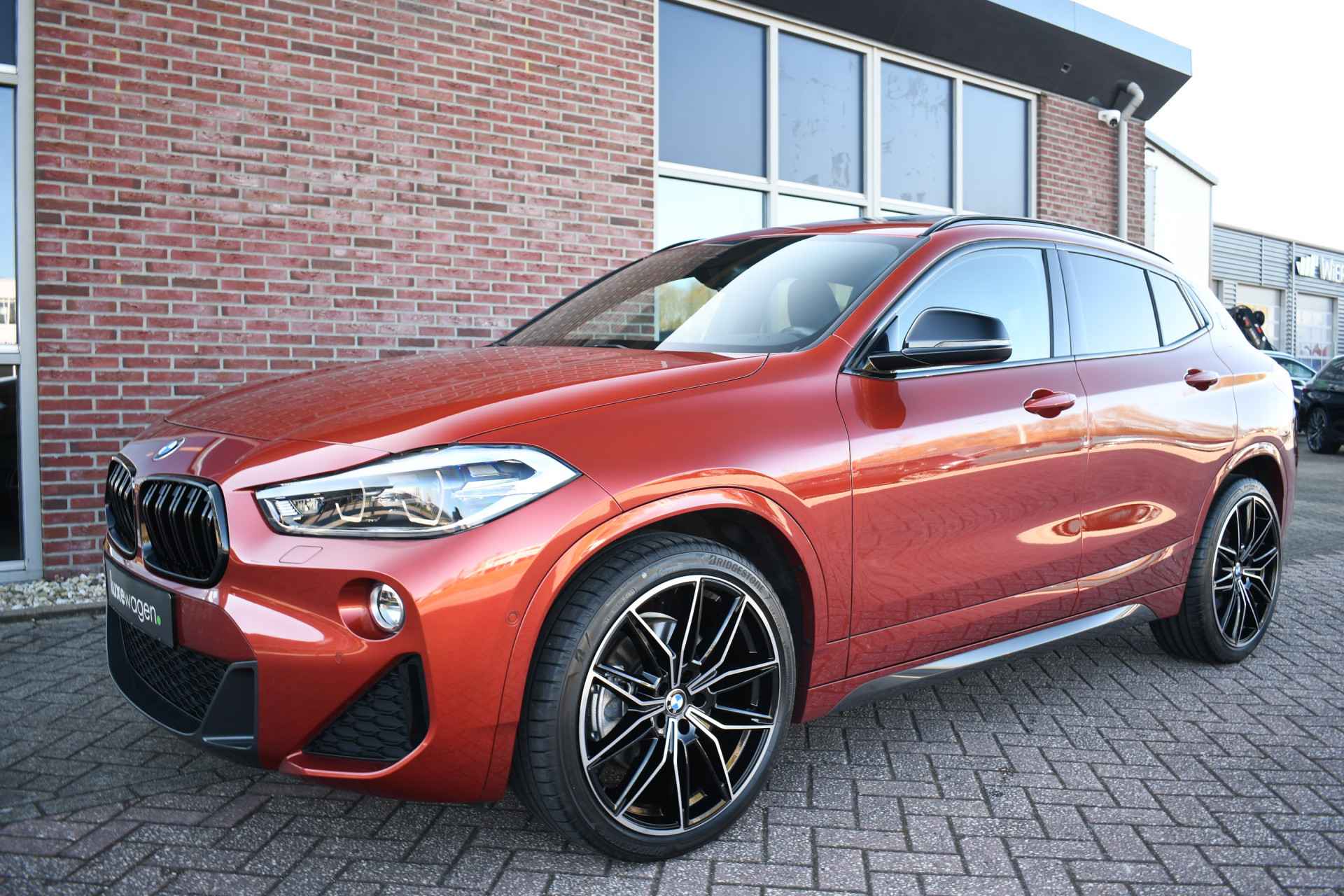 Voller worden ze niet! Smetteloze X2 in de fantastische kleur Sunset Orange. Met o.a. M-Sportpakket, panoramadak, head-up display, adaptieve cruise control, afneembare trekhaak (nog nieuw in de verpakking!), harman/kardon audio, 20 inch velgen, elektrische stoelen met memory, etc, etc!