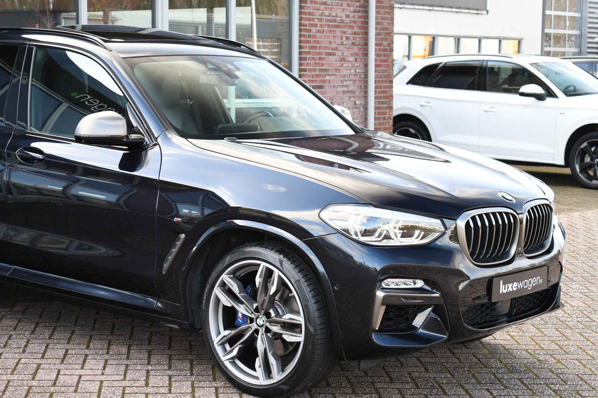 Smetteloze en nagenoeg full options X3 M40i, met o.a. panoramadak, adaptieve cruise, 360-camera's, head-up display, harman/kardon, elektrische trekhaak, adaptief M-onderstel, M-differentieel, gebarenbesturing, etc! Dealer onderhouden en afkomstig van de eerste eigenaar.