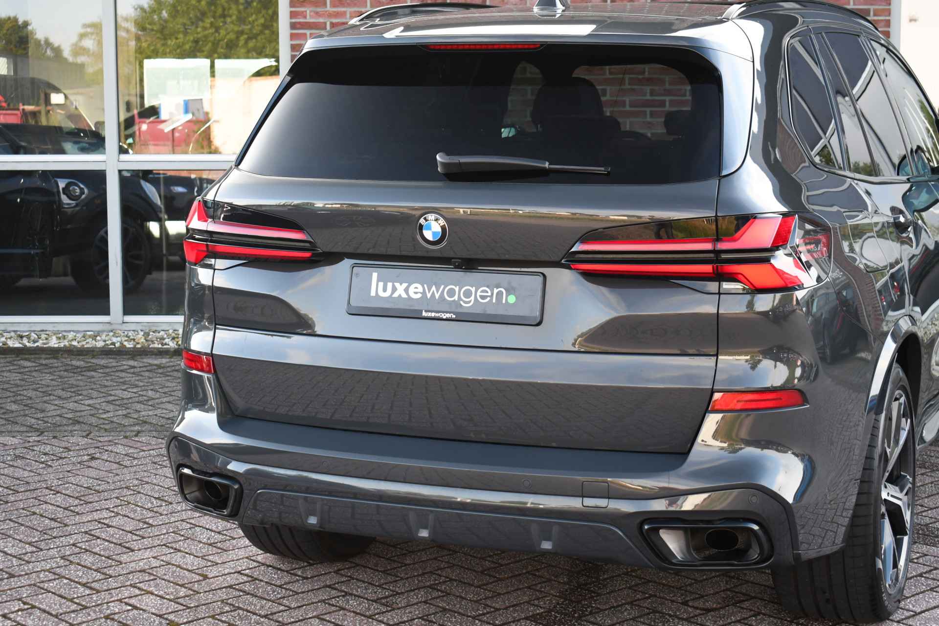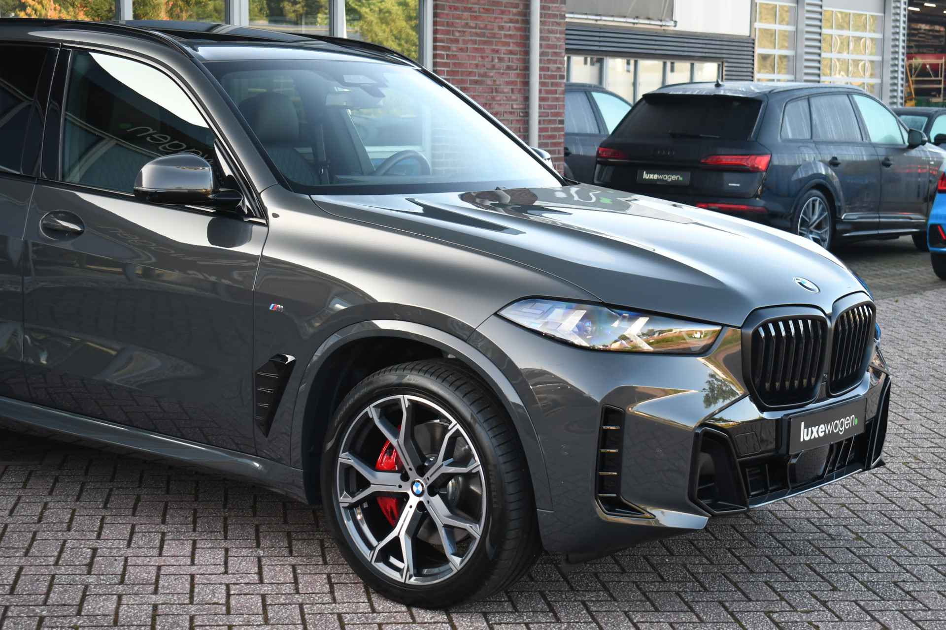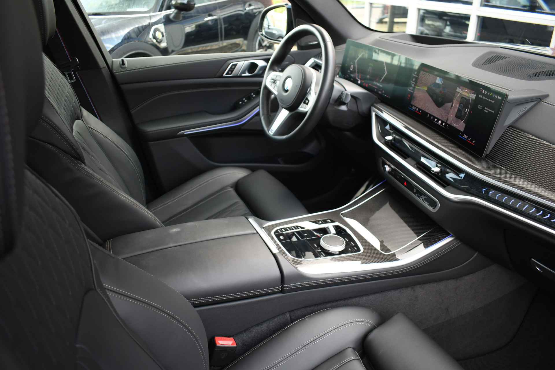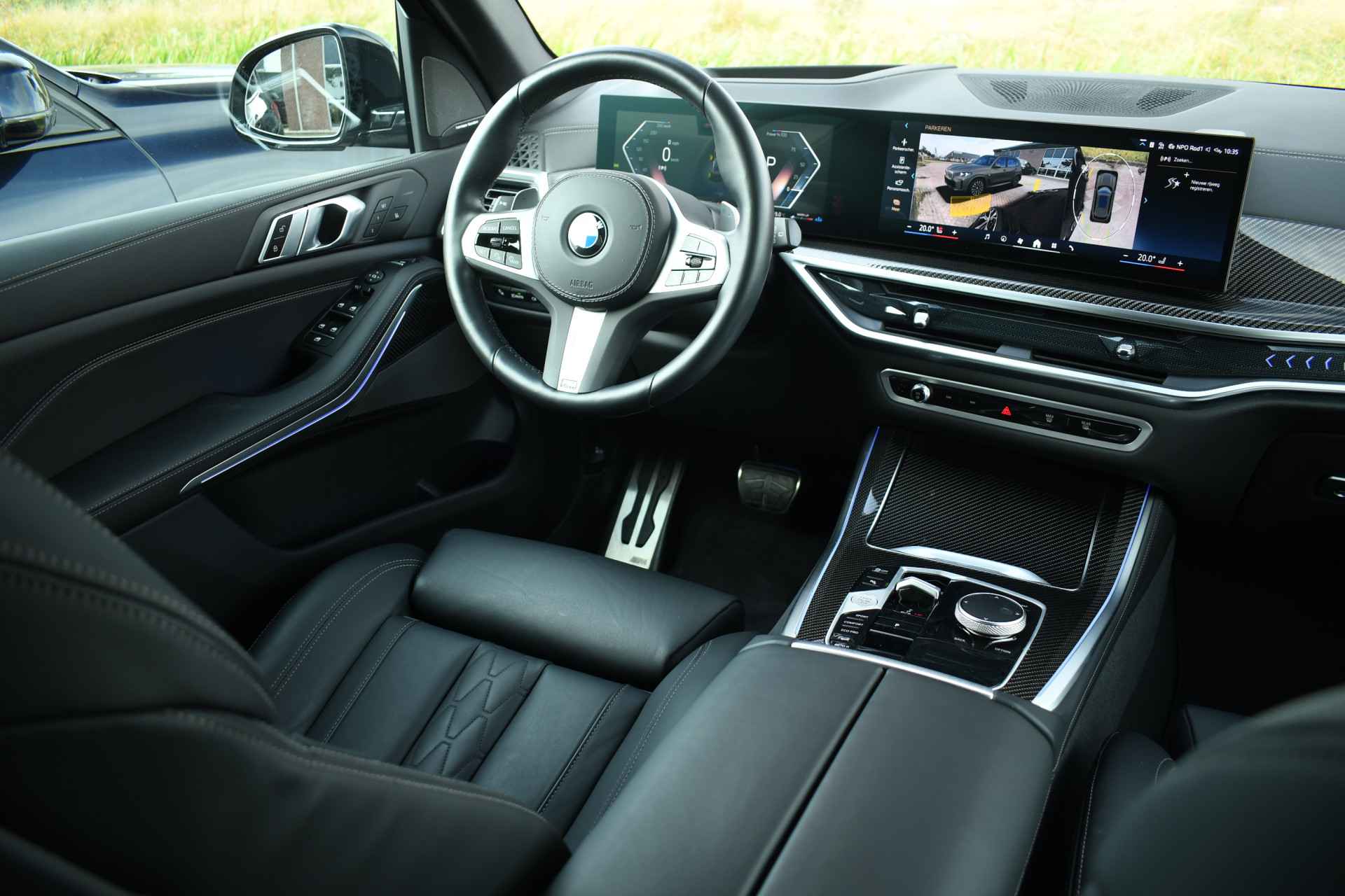 Betreft een grijskenteken uitvoering (2-persoons) Prijs is exclusief btw, inclusief ombouw naar grijs kenteken. Veel voller worden ze niet! Deze X5 van het nieuwste model is uitgevoerd in Dravit grau met zwart leder en vol opties! Met M-Sport Pro-, Travel-, Innovation- en Comfort-pack, bestaande uit o.a. panoramadak, comfortstoelen, elektrische trekhaak, adaptieve cruise, 360 graden camerasysteem, harman/kardon, verlichte (iconic) grille, rode remklauwen, adaptief onderstel, M-Sport uitlaat, carbon interieurlijsten, gebarenbesturing, etc.