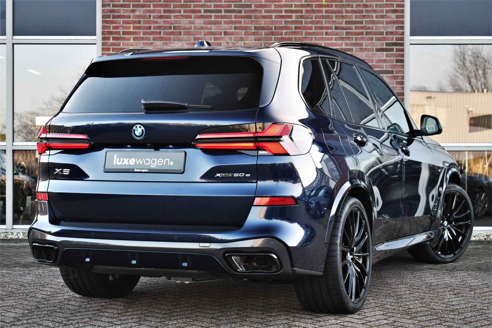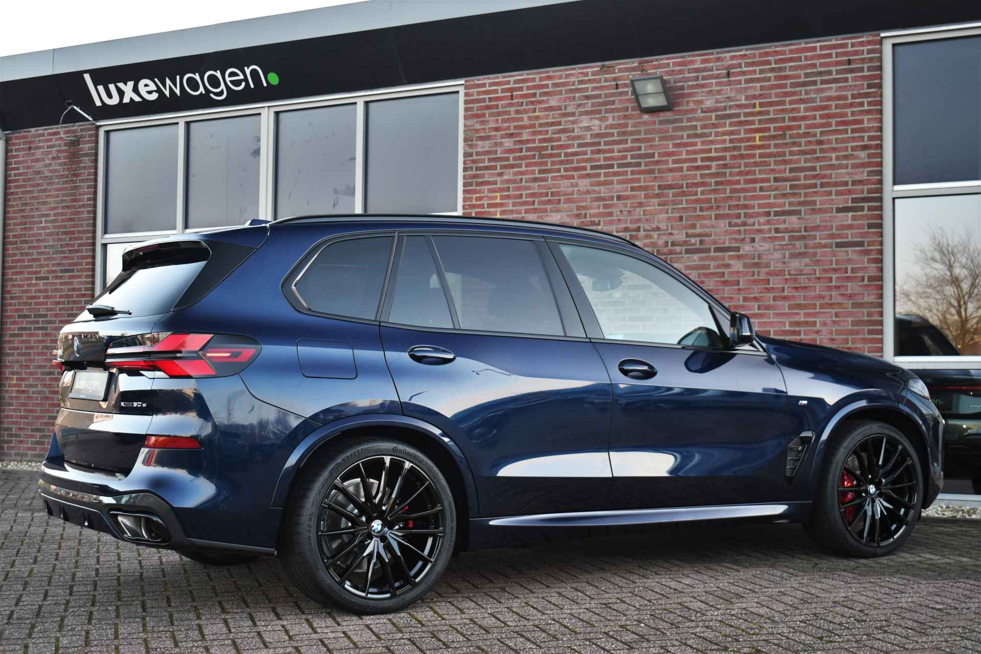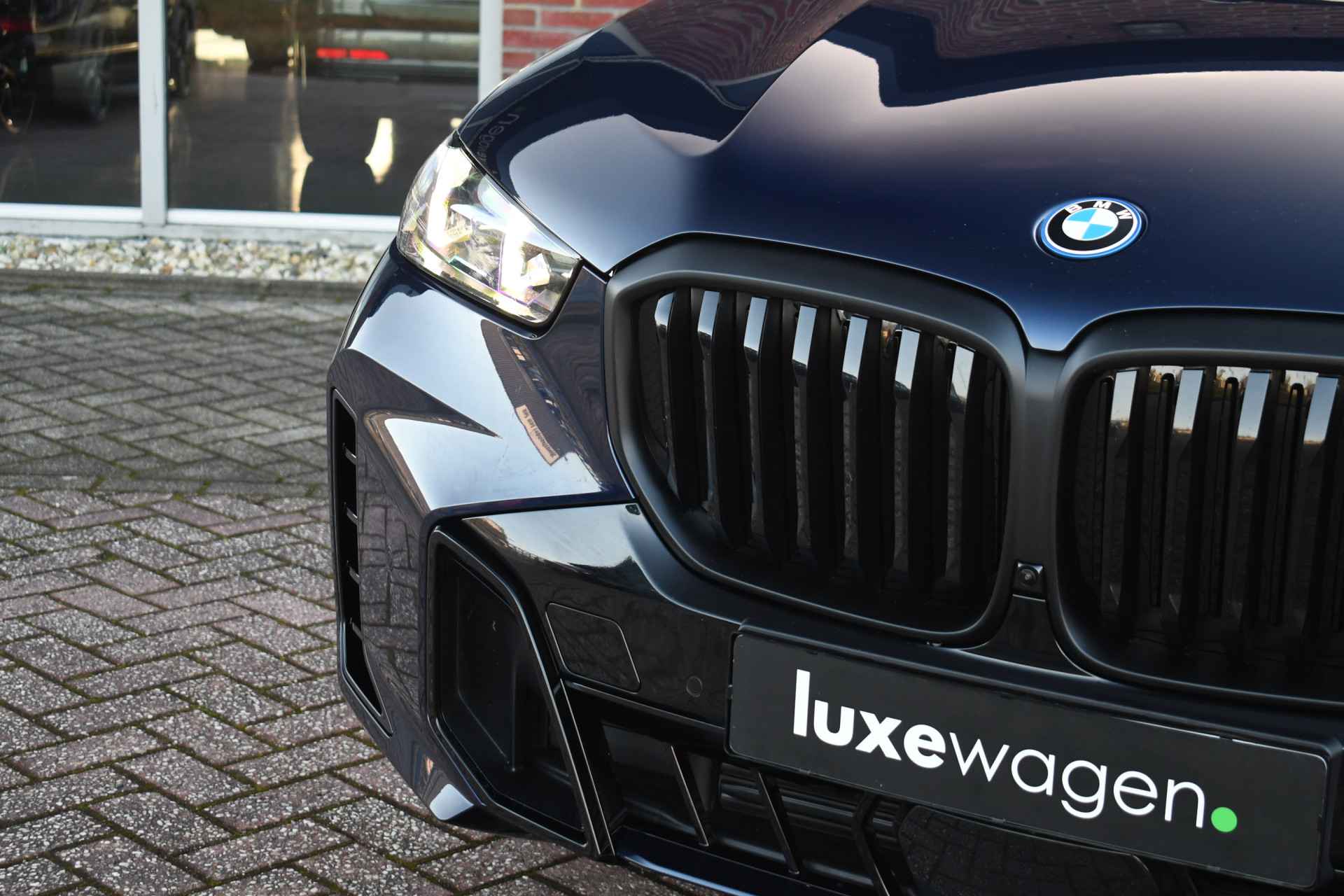Deze nieuwe X5 xDrive50e staat in onze showroom en is direct leverbaar. Perfecte kleurcombinatie in Tanzanitblauw met zwart leder met ruitstiksel. Compleet met: - M-Sport Pro pakket (rode remklauwen, verlichte grille, M-gordels, compleet shadowline incl koplampen), - Exclusive pakket (massage, leder dashboard, glazen pook), - Innovatie pakket (harman/kardon, head-up, driving ast. prof met oa. adaptieve cruise, parking ast. prof met 360 camera), - Tavel pack (panoramadak en zonneschermen), - comfortstoelen met ventilatie en massage, - elektrische trekhaak, - 21 inch velgen Y-spaak, - luchtvering rondom. Zie optielijst voor de exacte specificaties! Direct leverbaar!