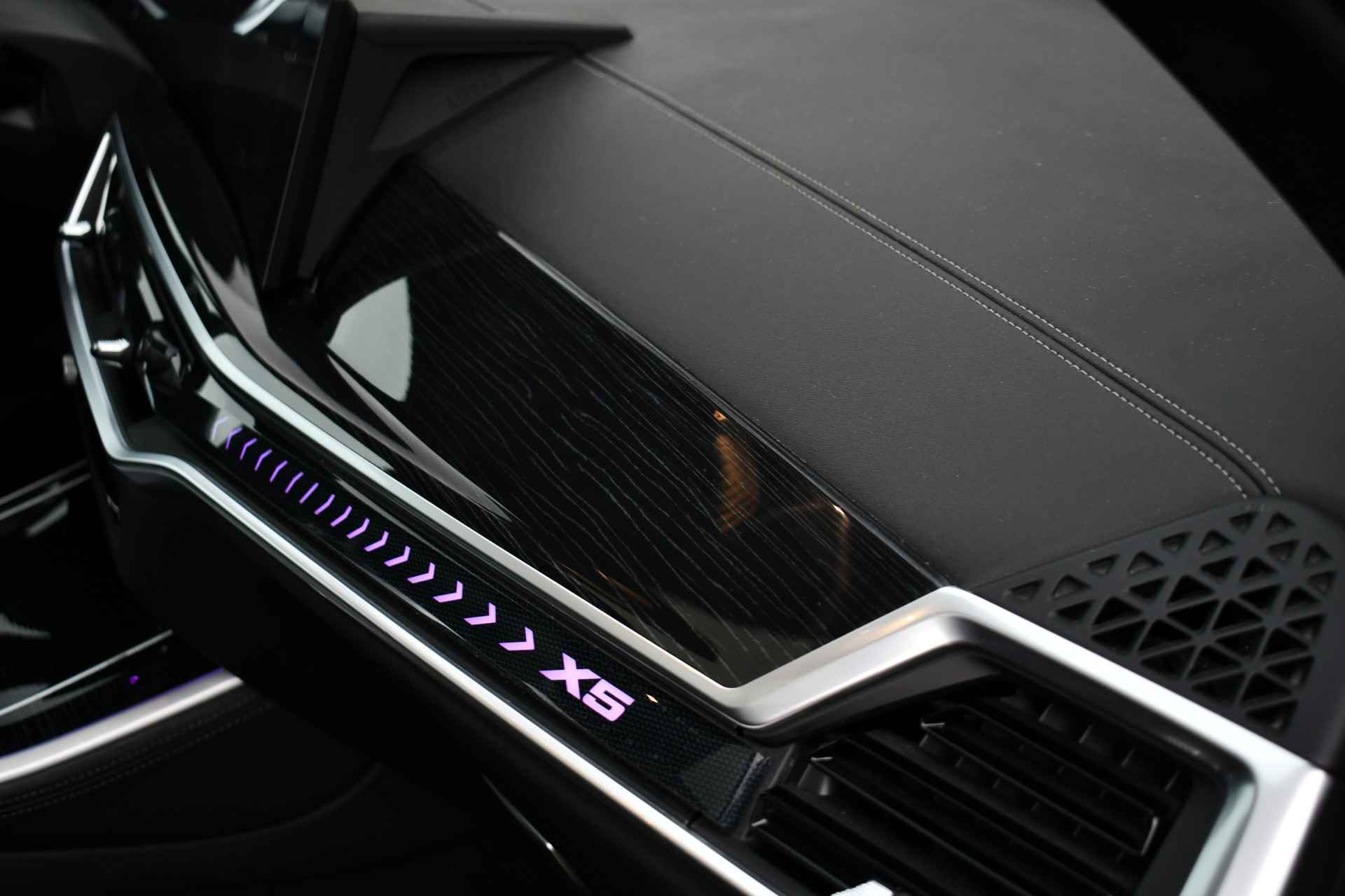 Deze X5 mag zich met recht een luxewagen noemen, dankzij het uitgebreide optiepakket: M-Sportpakket, skylounge (verlicht) panoramadak, adaptieve cruise control, head-up display, harman/kardon audio, 360 graden camera, comfortstoelen, 22 inch velgen, stuurwielverwarming, shadowline (met zwarte grille), etc! (Comfort + Travel + Innovation pack). BTW-auto.